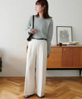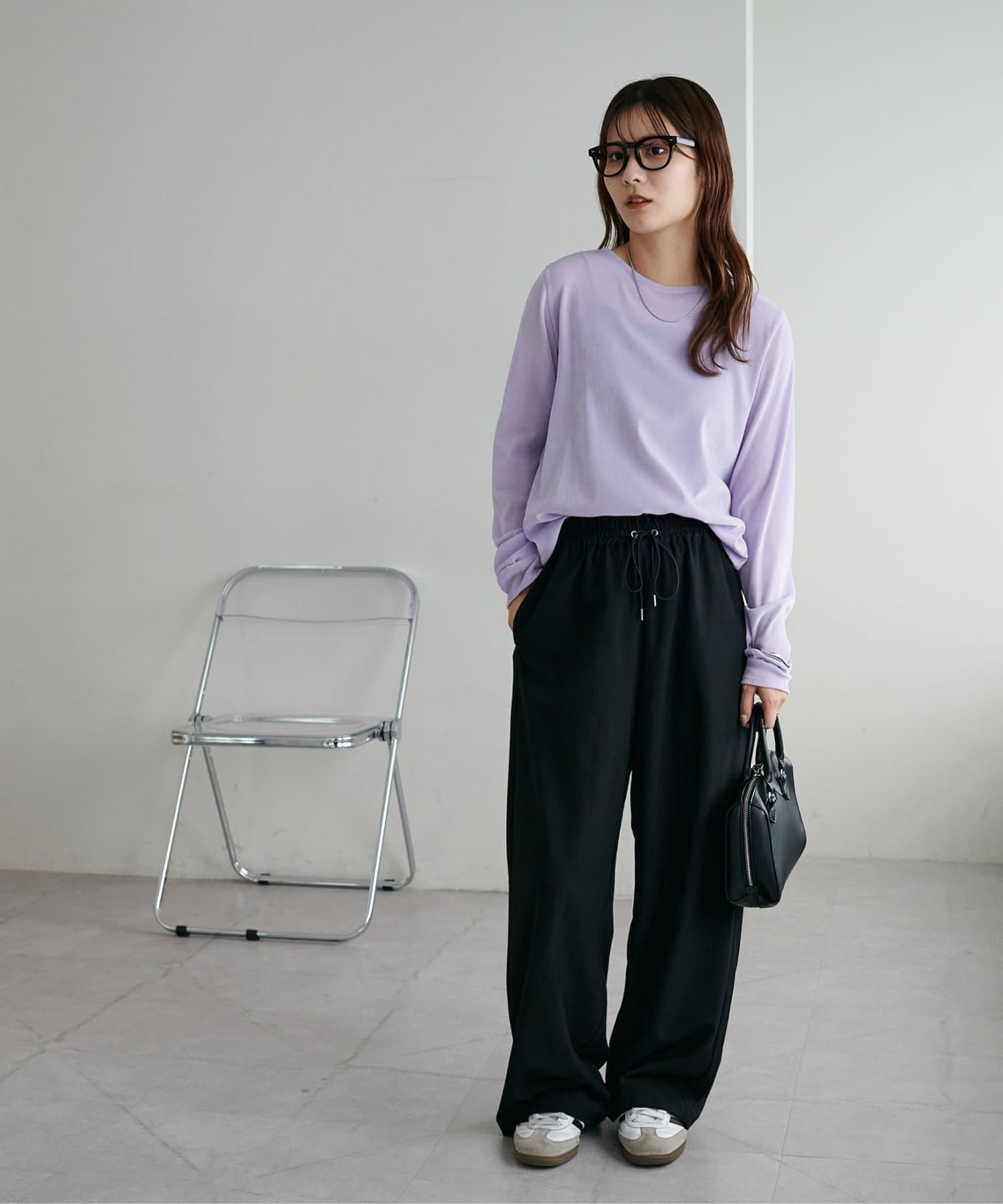 程よく伸縮性のある生地感で、リラックスして着用を楽しめるアイテムです。