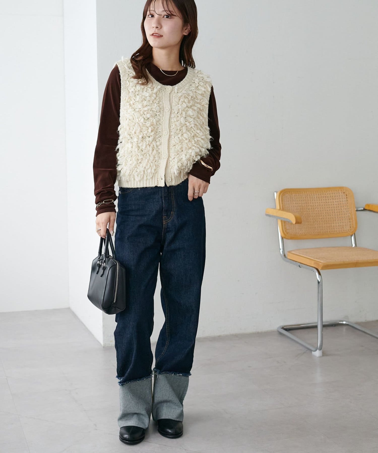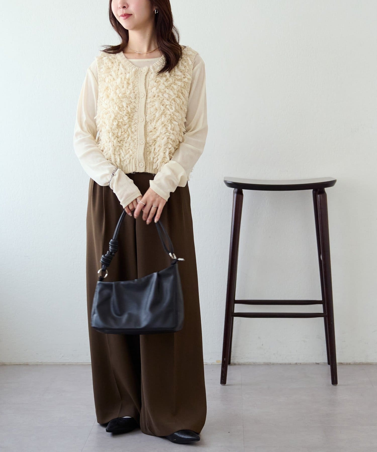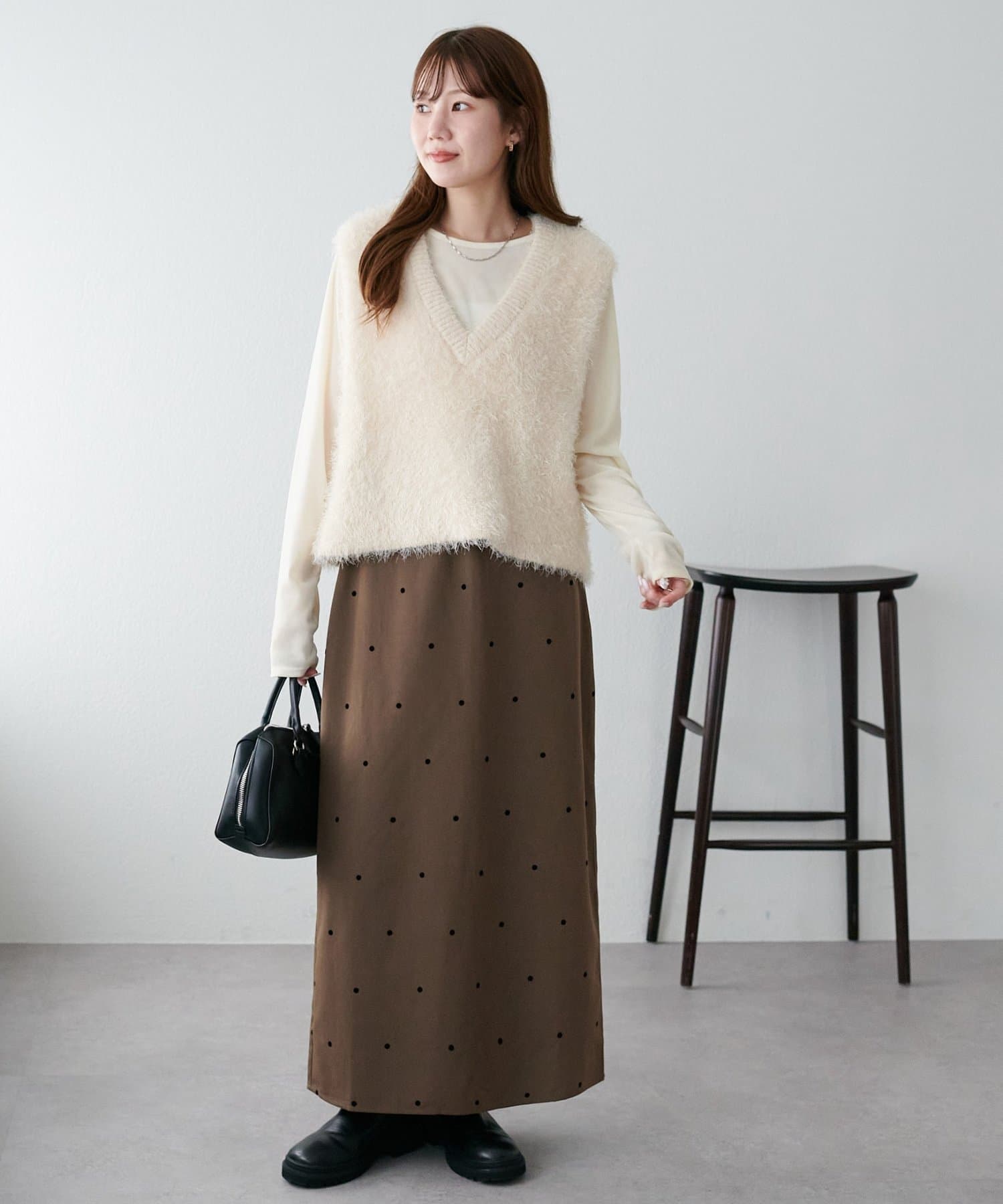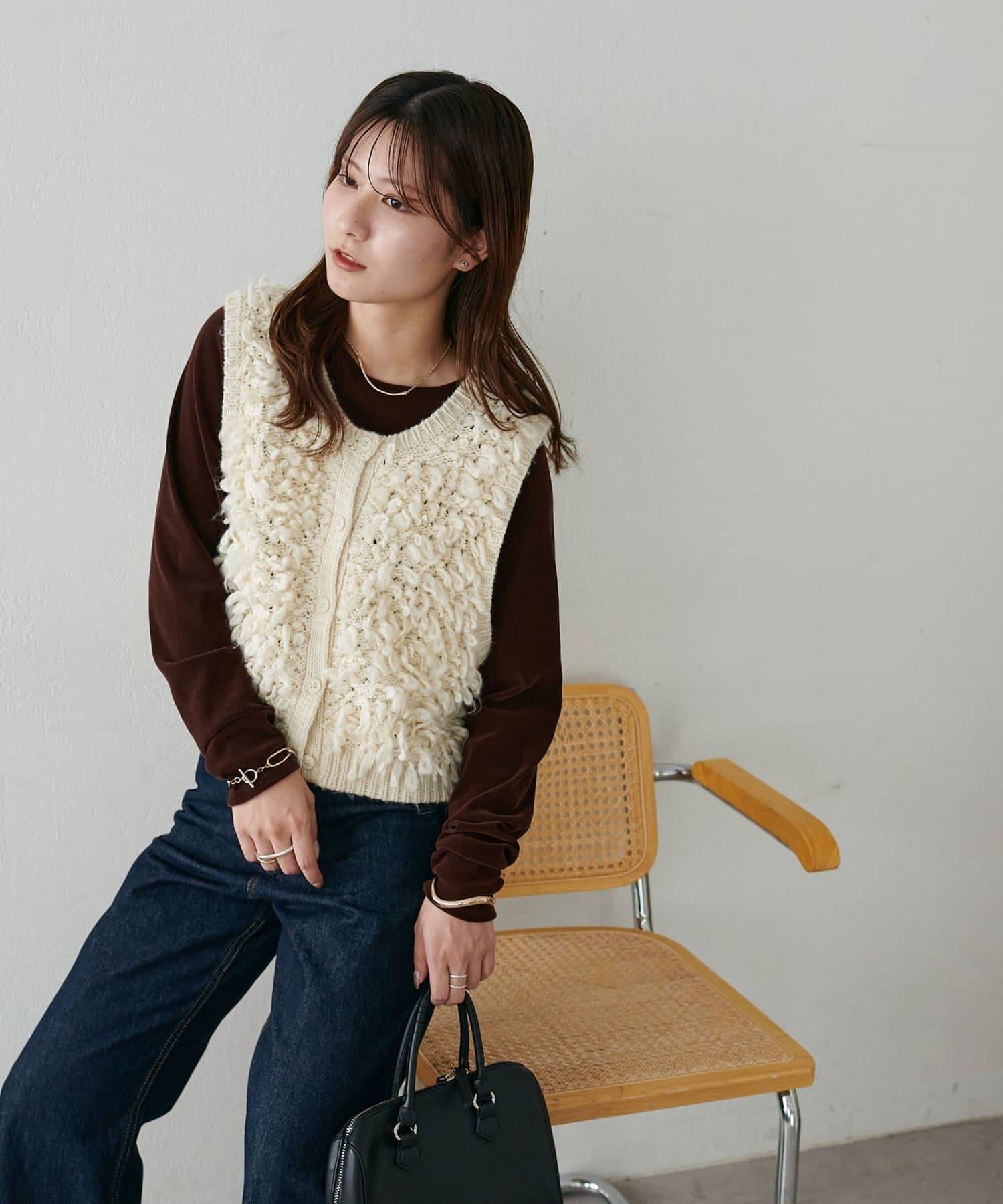 フロッキーメッシュで高見えする素材なので、シンプルに一枚で合わせても品のあるコーデに仕上がります!