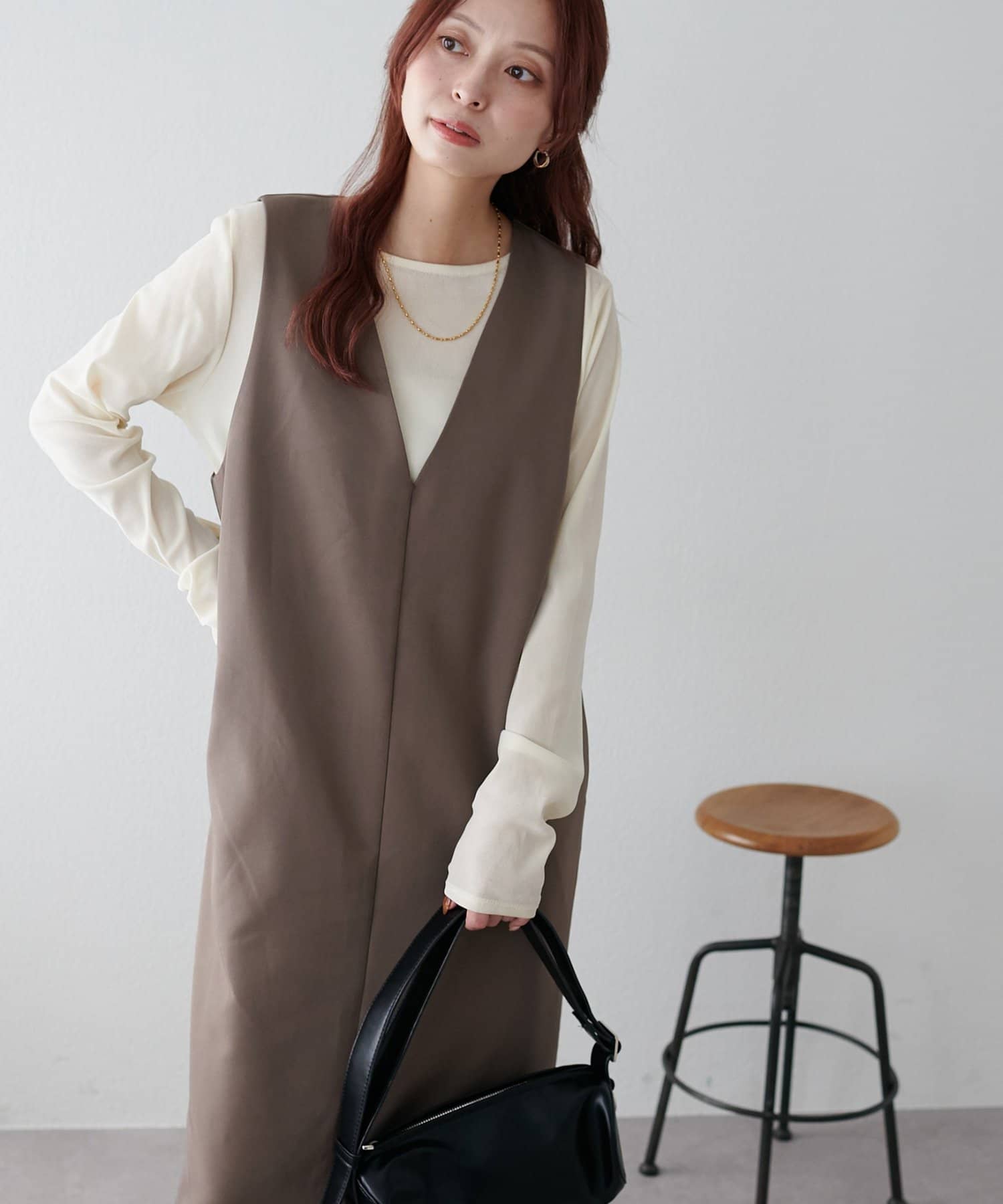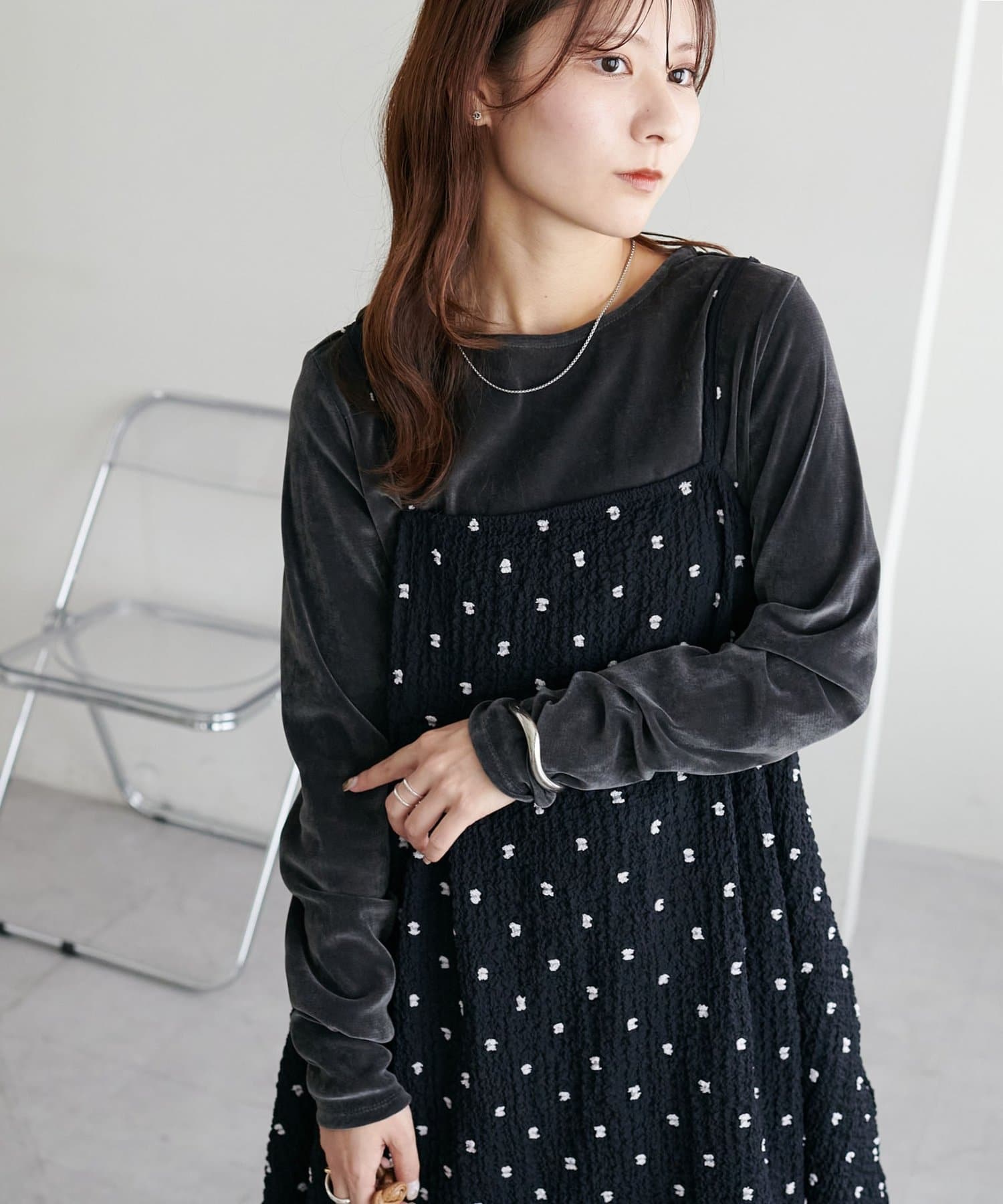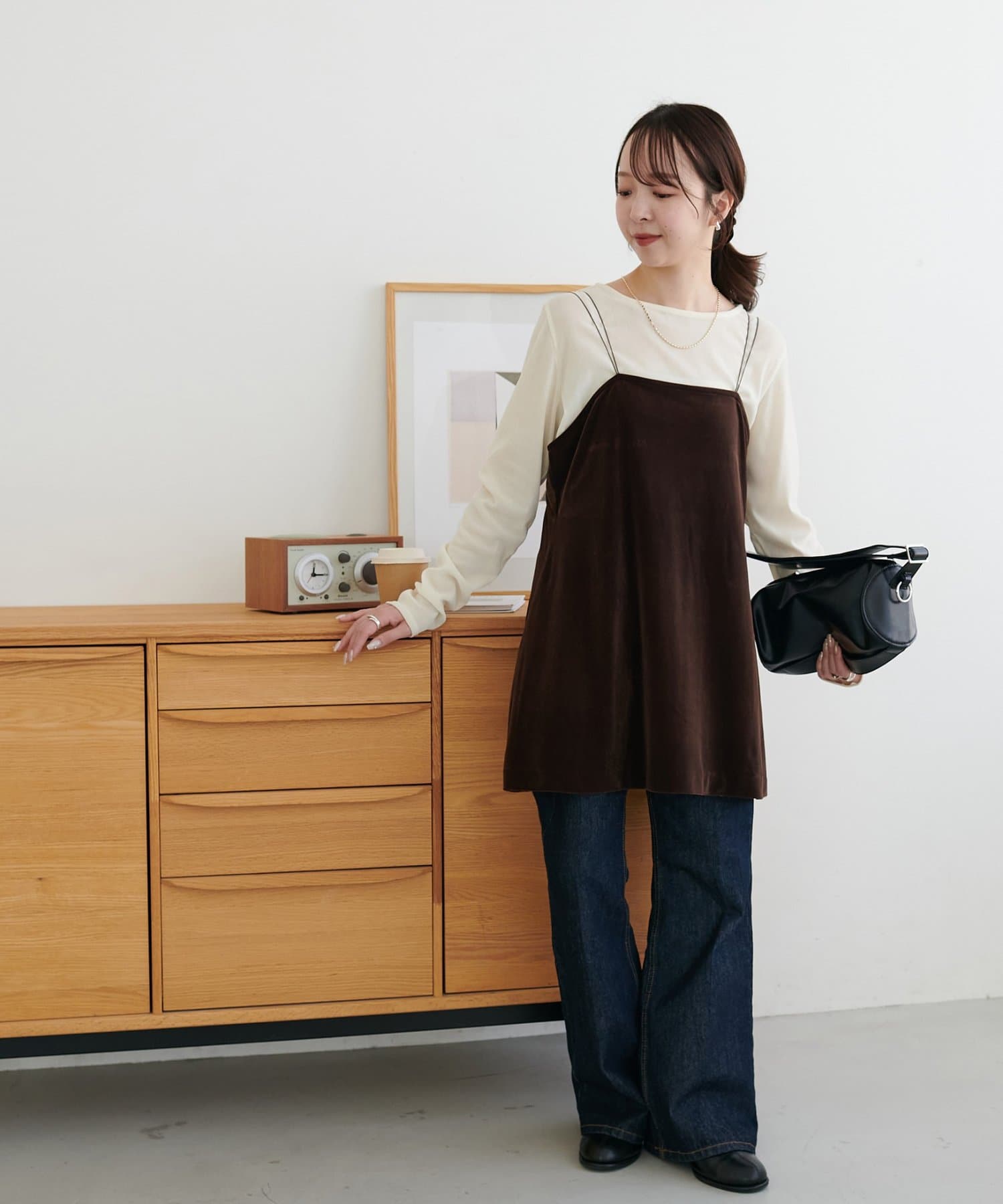 薄手なので、キャミワンピースやベスト、ジャケットのインナーとしても活躍。