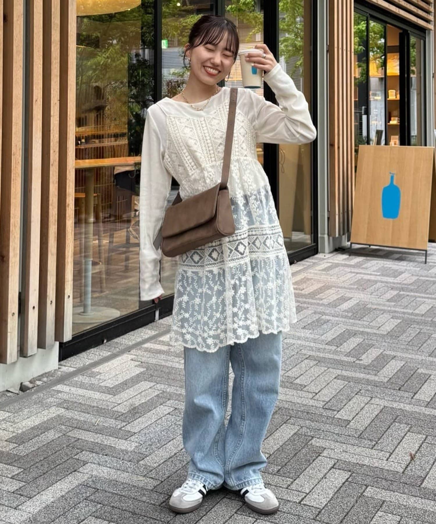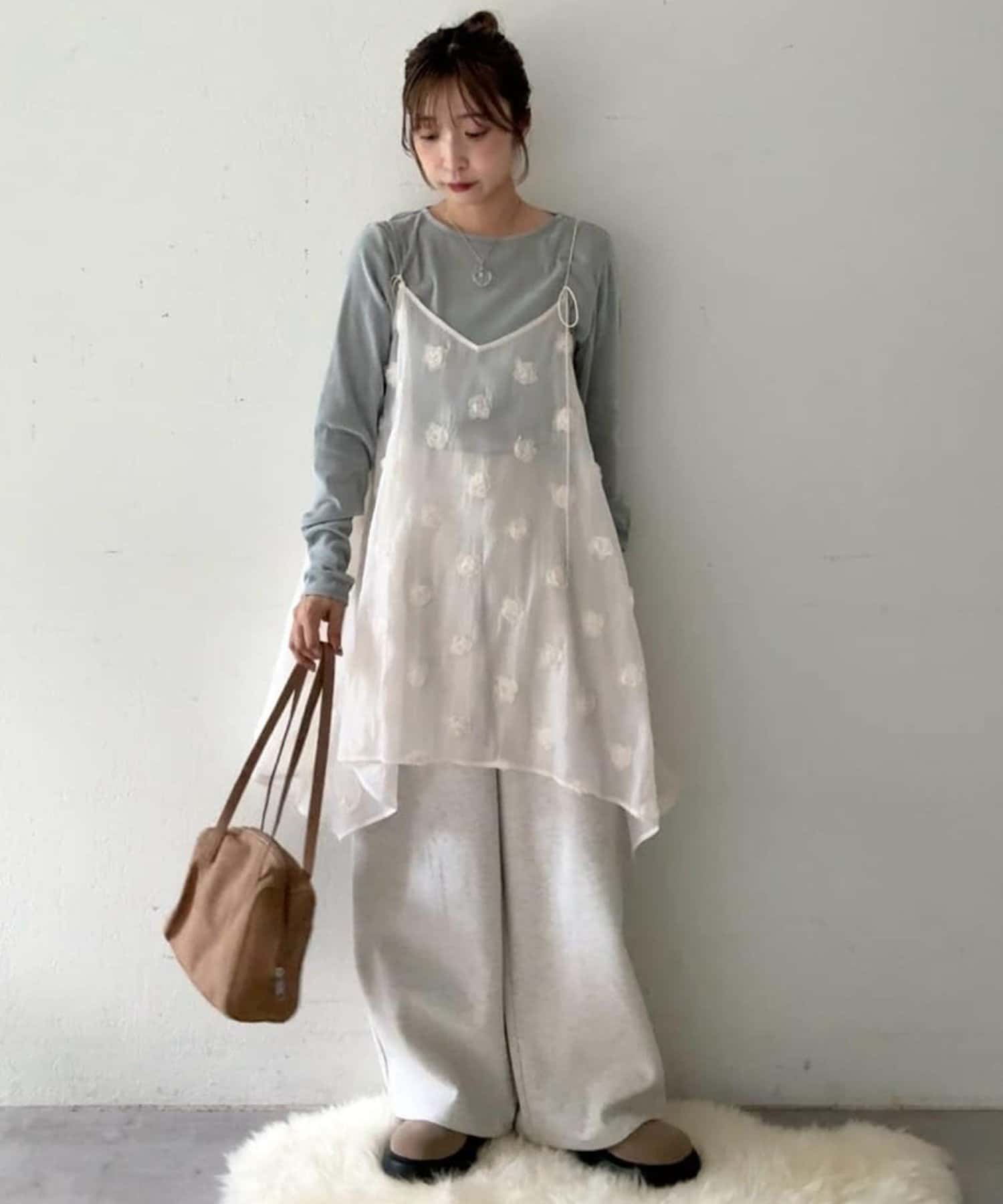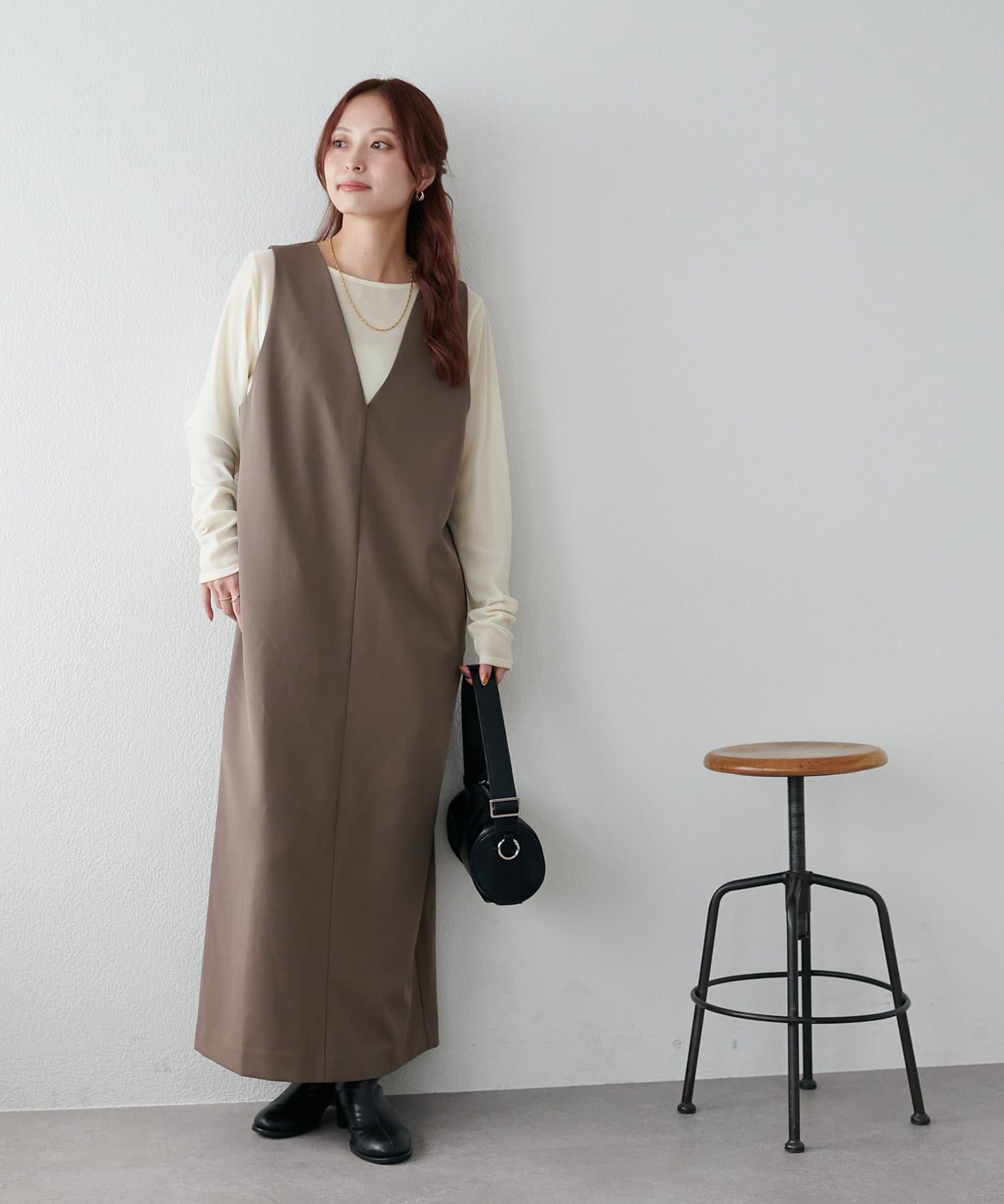 薄手なので、キャミワンピースやベスト、ジャケットのインナーとしても活躍。