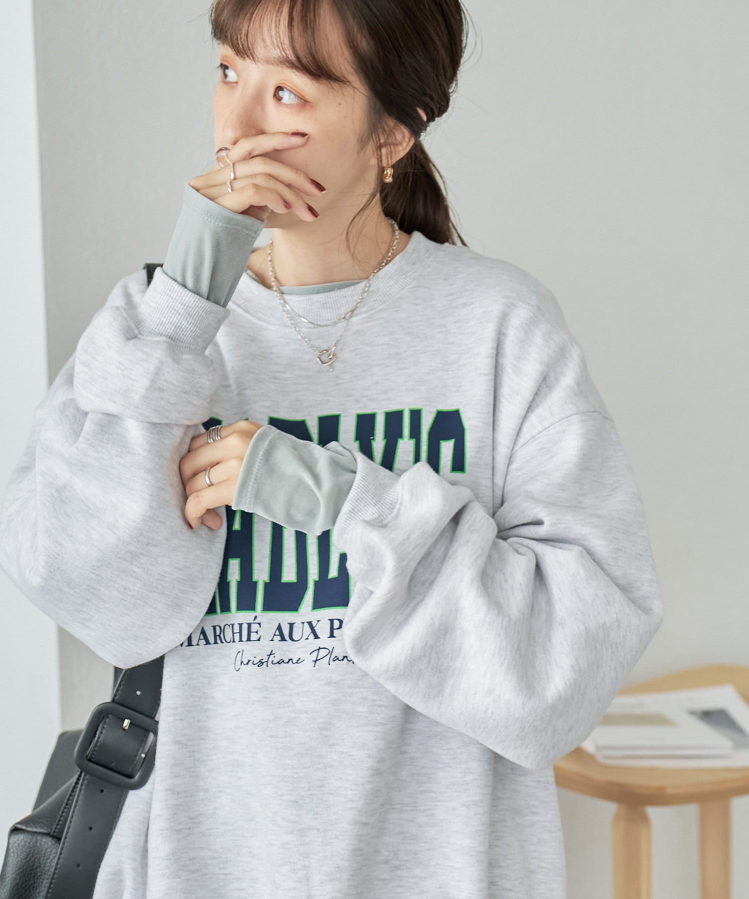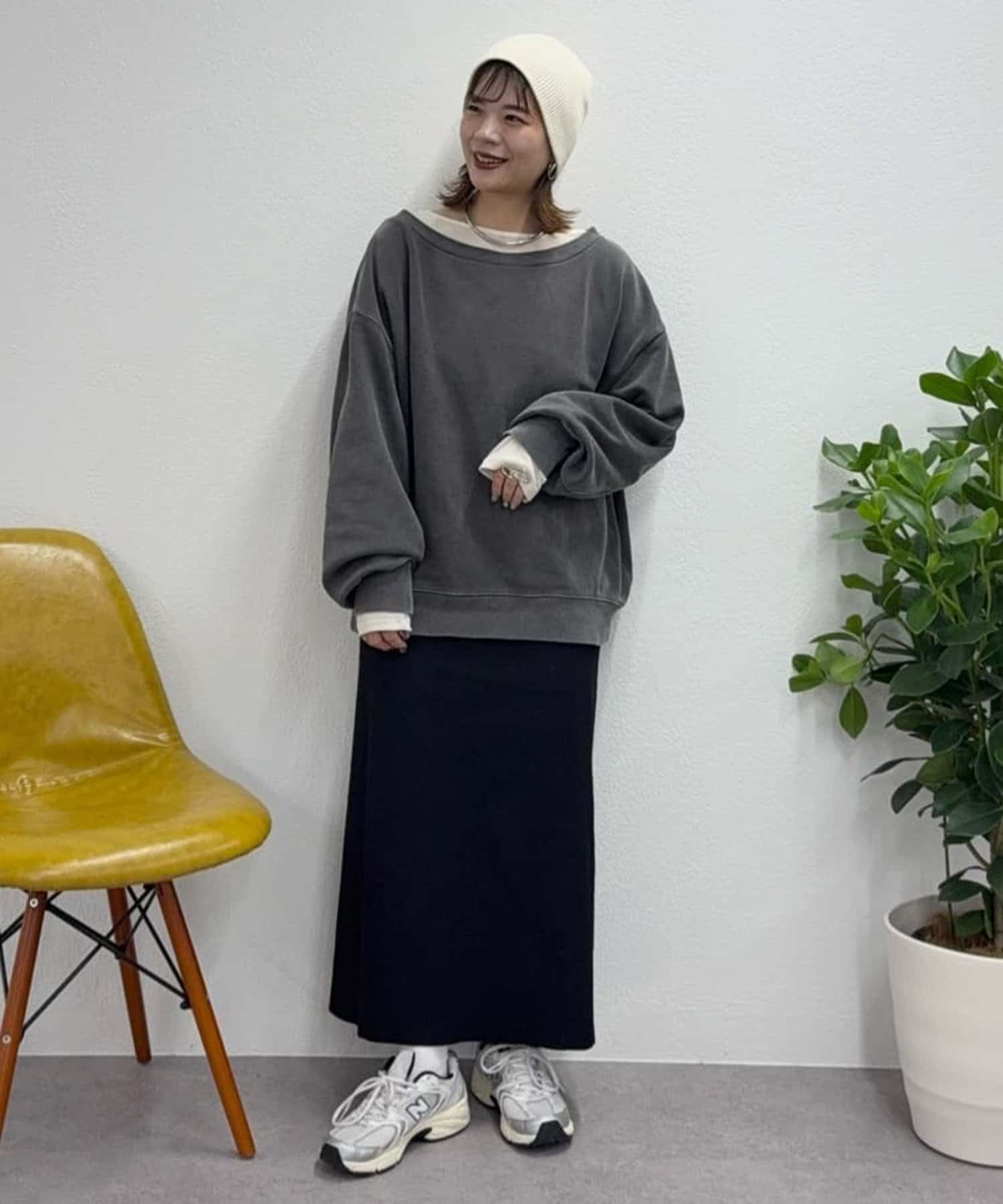 スウェットやニットのインナーに着て、袖からちらっと色味を見せたコーデもおすすめです!