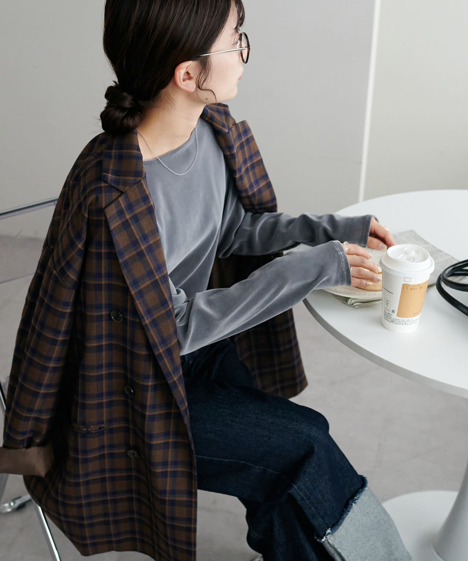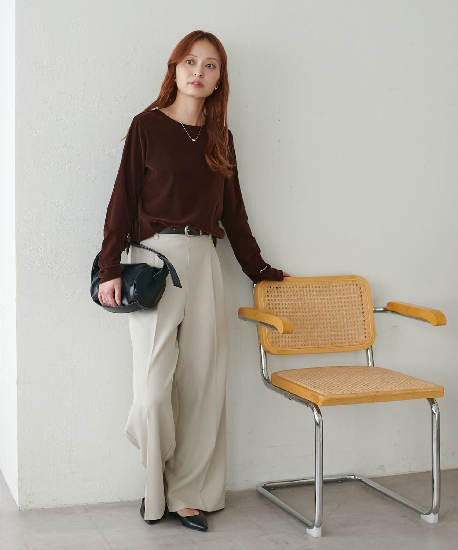 ベロアのような質感で着心地がとても良く、着回しがきくシンプルなデザインなので、とても気に入っています。