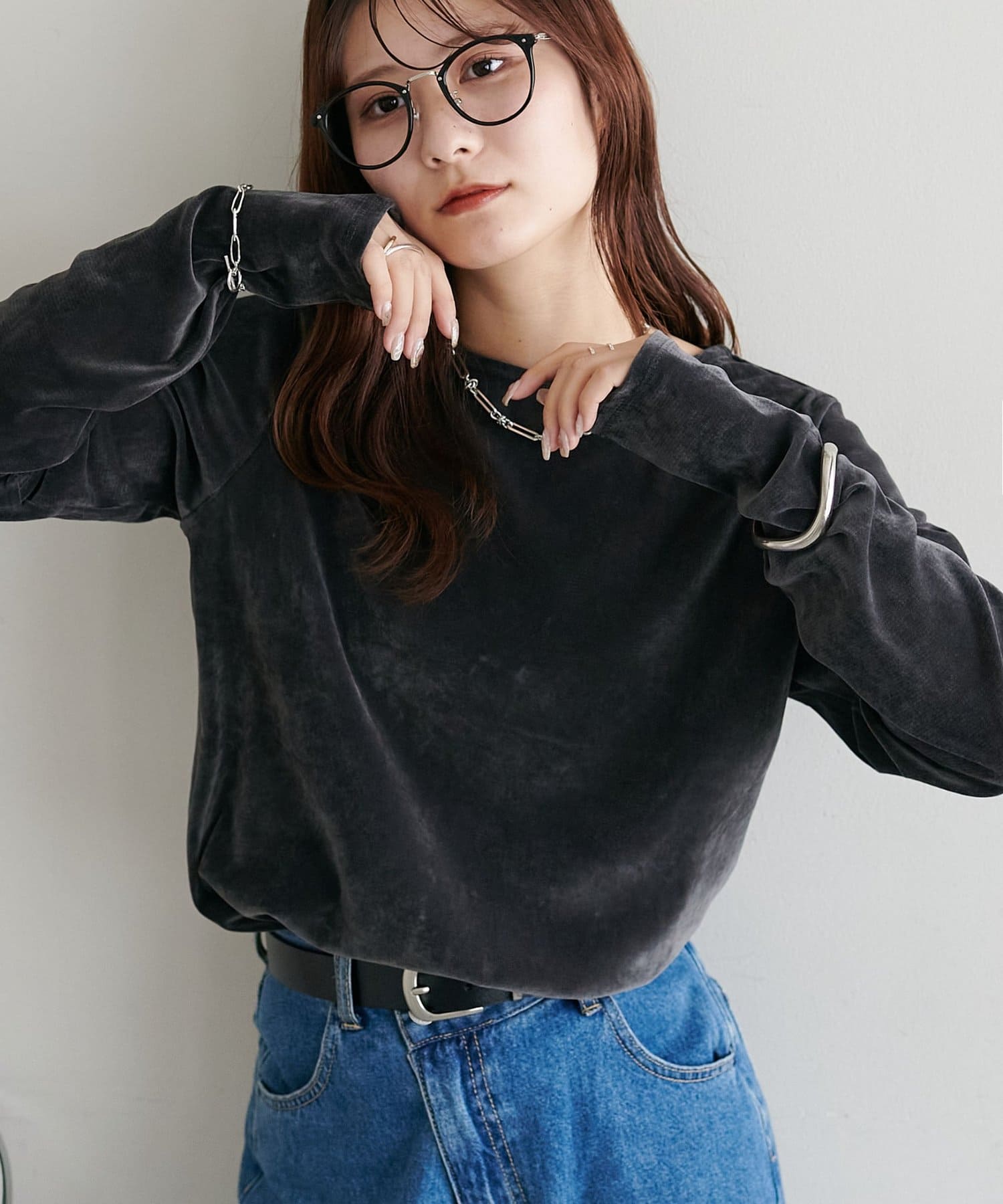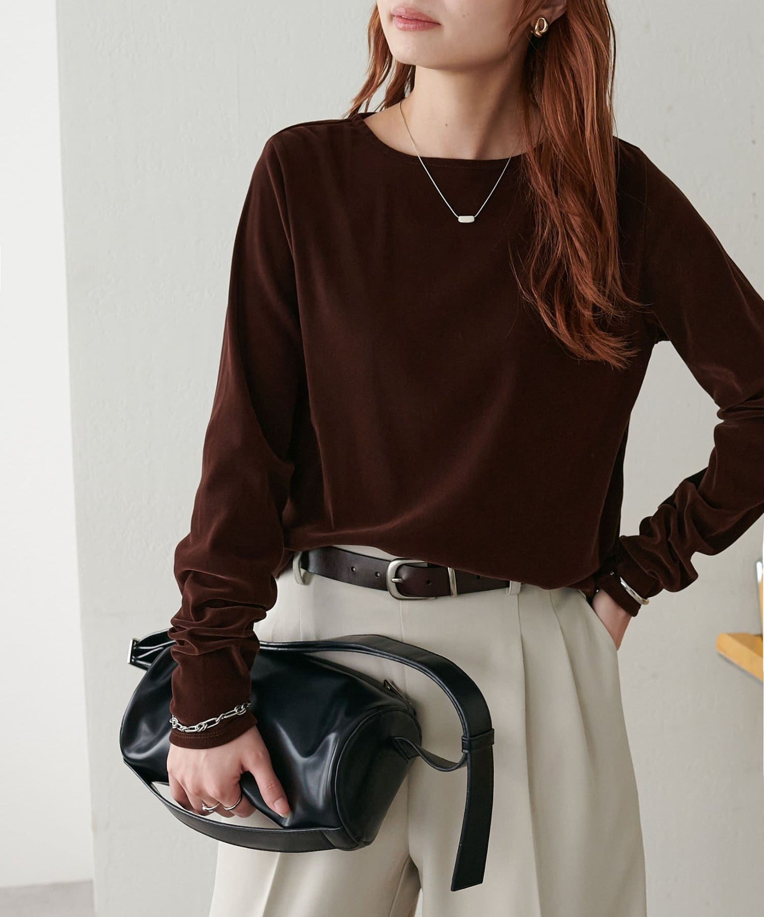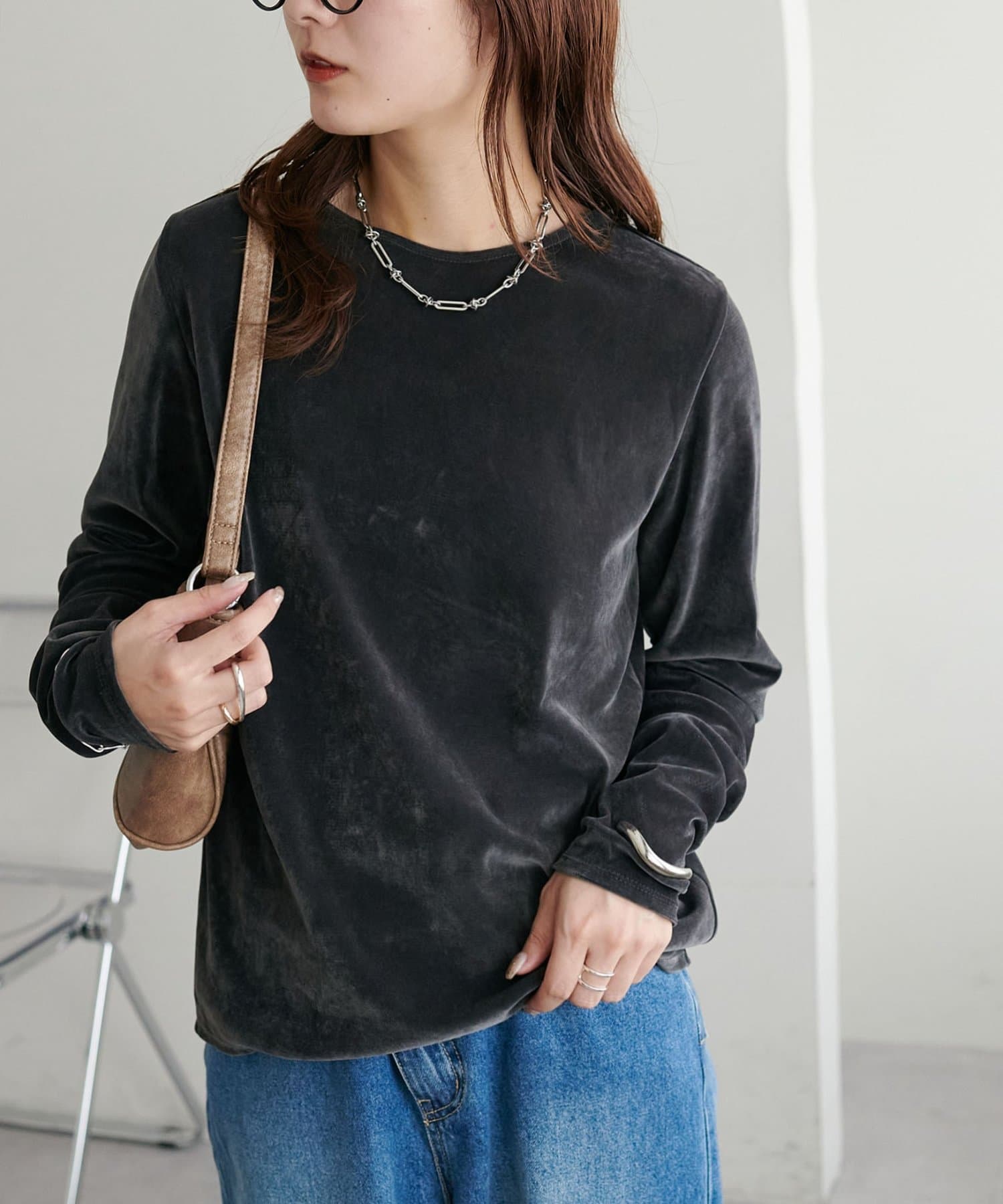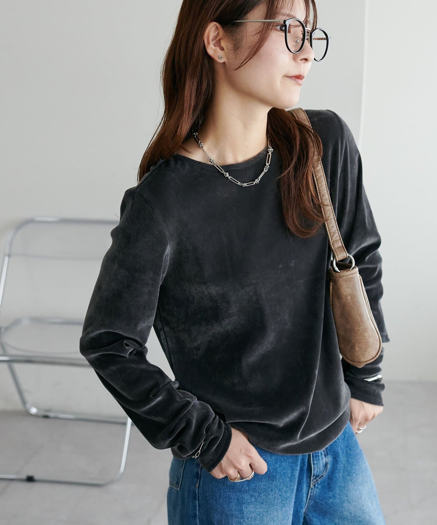 ベロアのような柔らかな触り心地のフロッキー加工を施したロングスリーブ。