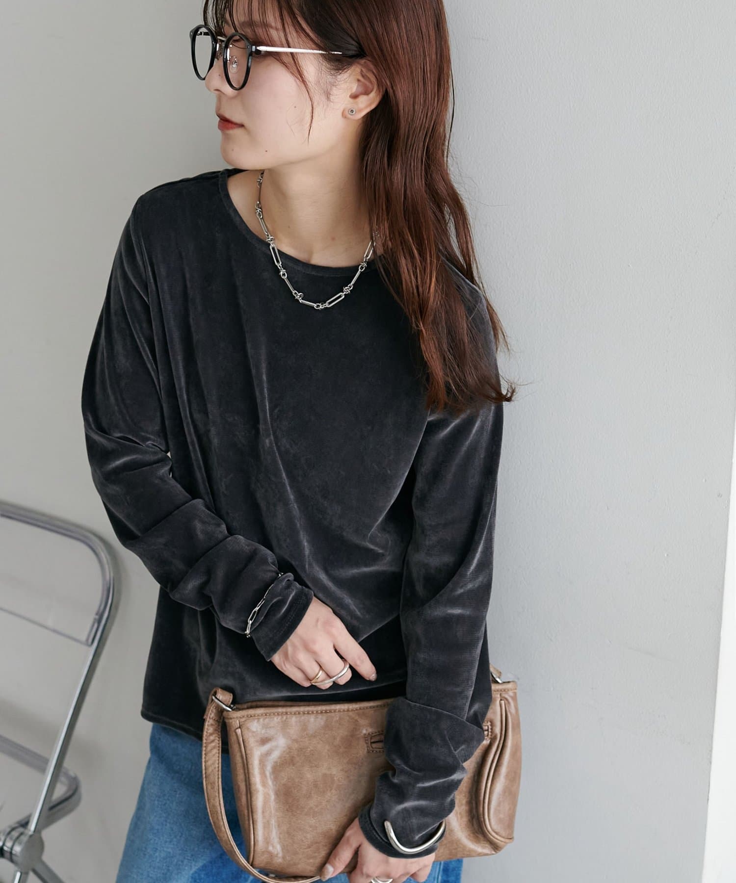 購入場所:店舗ずっとベロア生地のトップスが欲しくて、やっと見つけました。普通のtシャツと比較して、1枚でお洒落になるのでとてもいい買い物をしたと思います。それなりに透けるので、見せシャツを下に着る必要はあるかなって思います。お気に入りになりました。