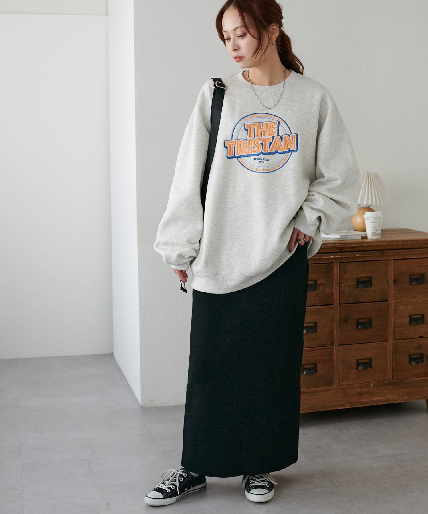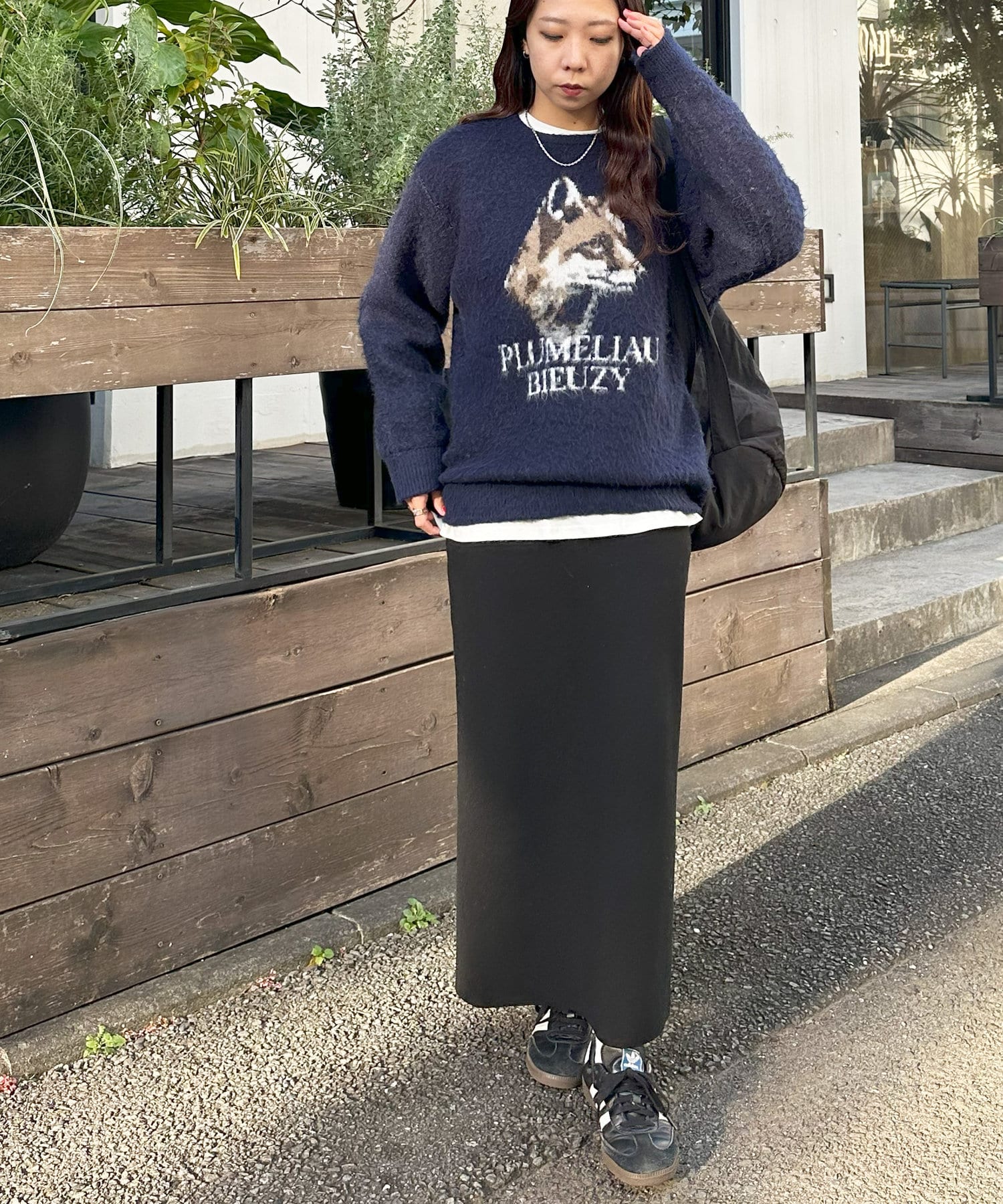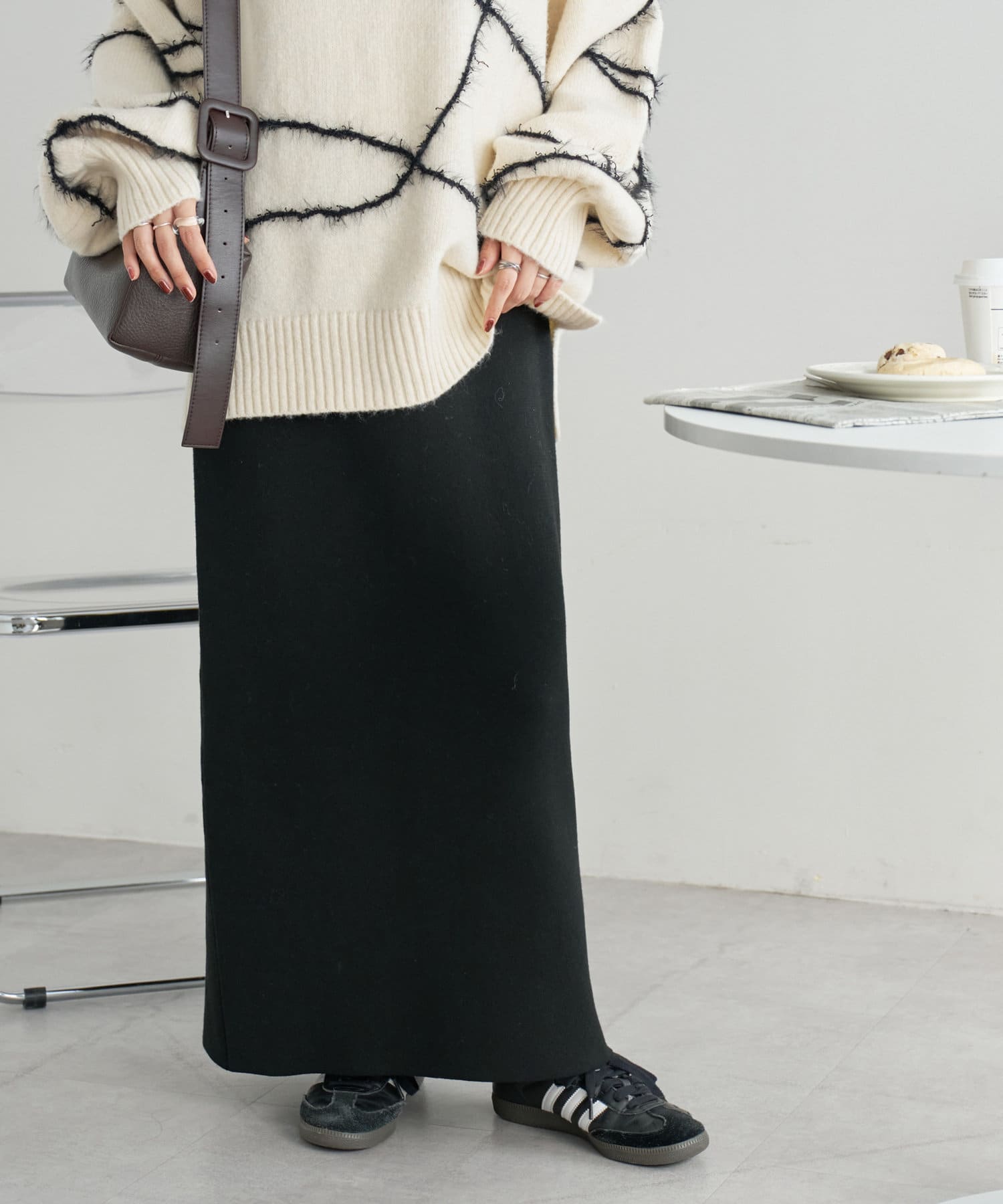 ナロースカートなので、ゆったりとしたスウェットやニットとの合わせがおすすめ〇