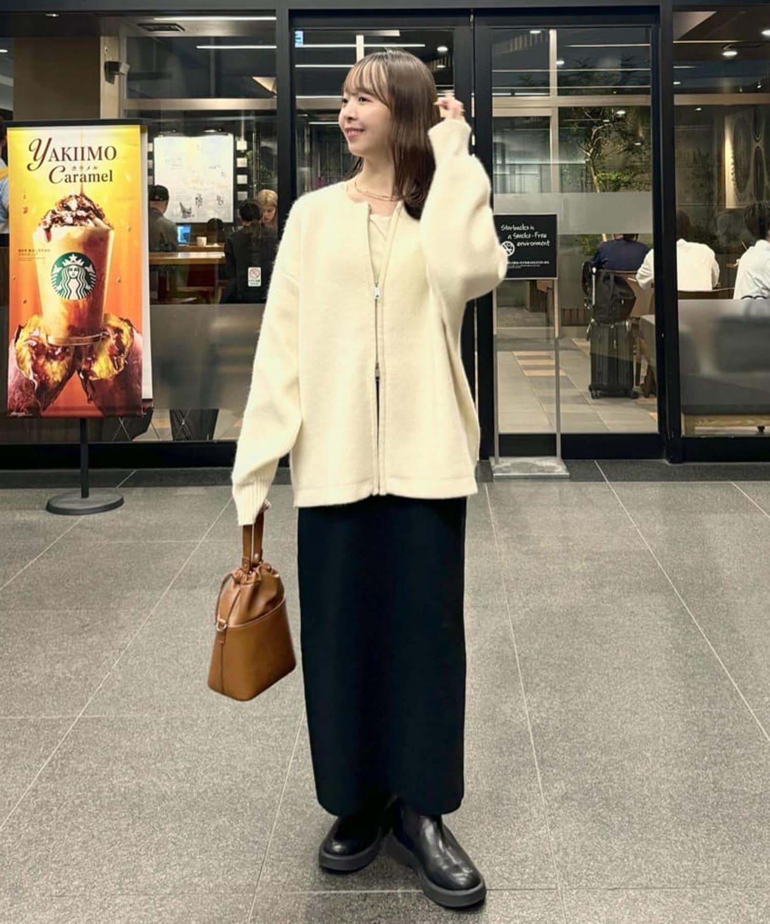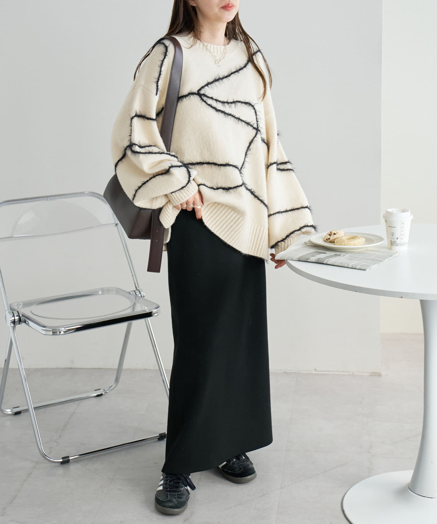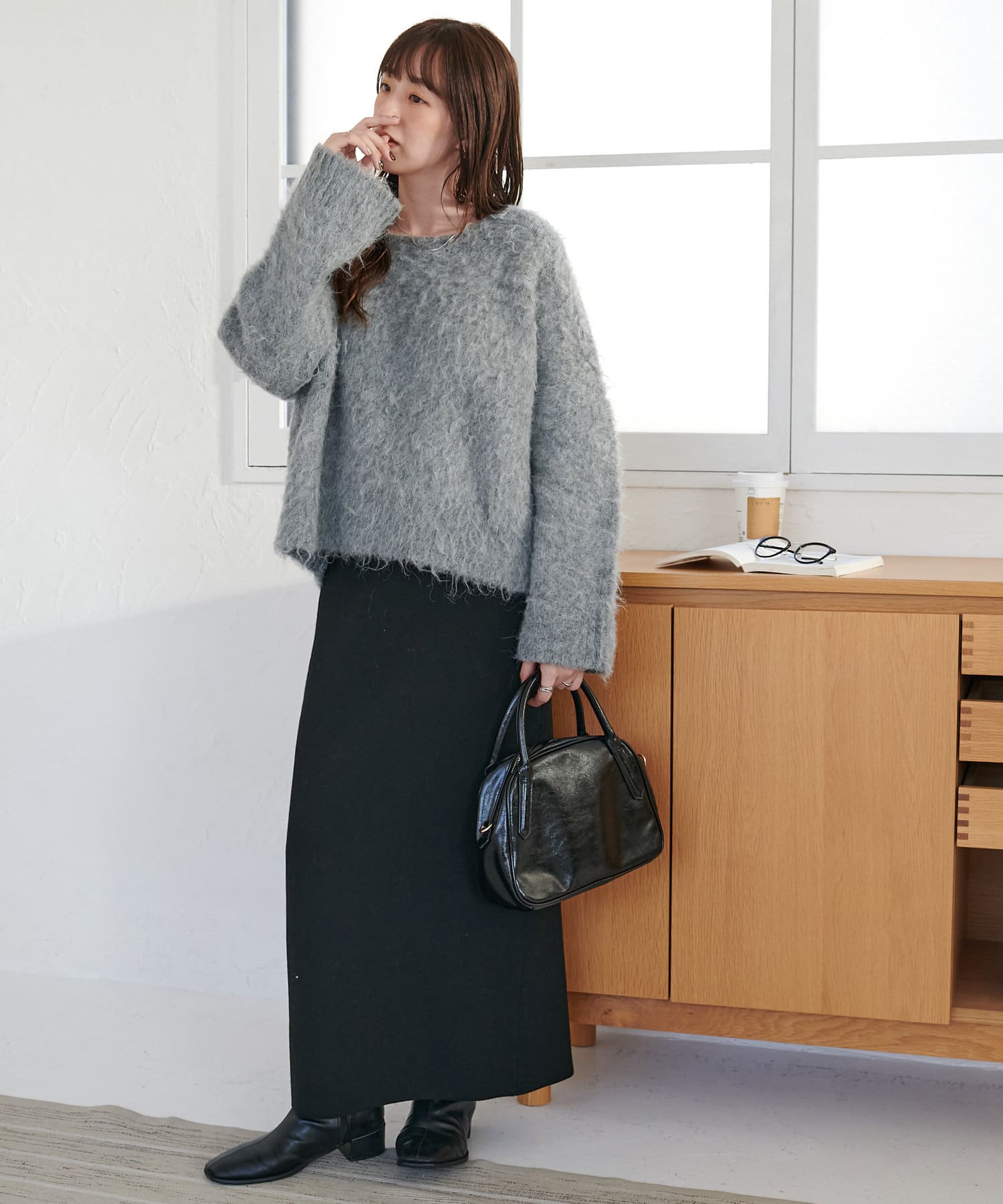 ナロースカートなので、ゆったりとしたスウェットやニットとの合わせがおすすめ〇