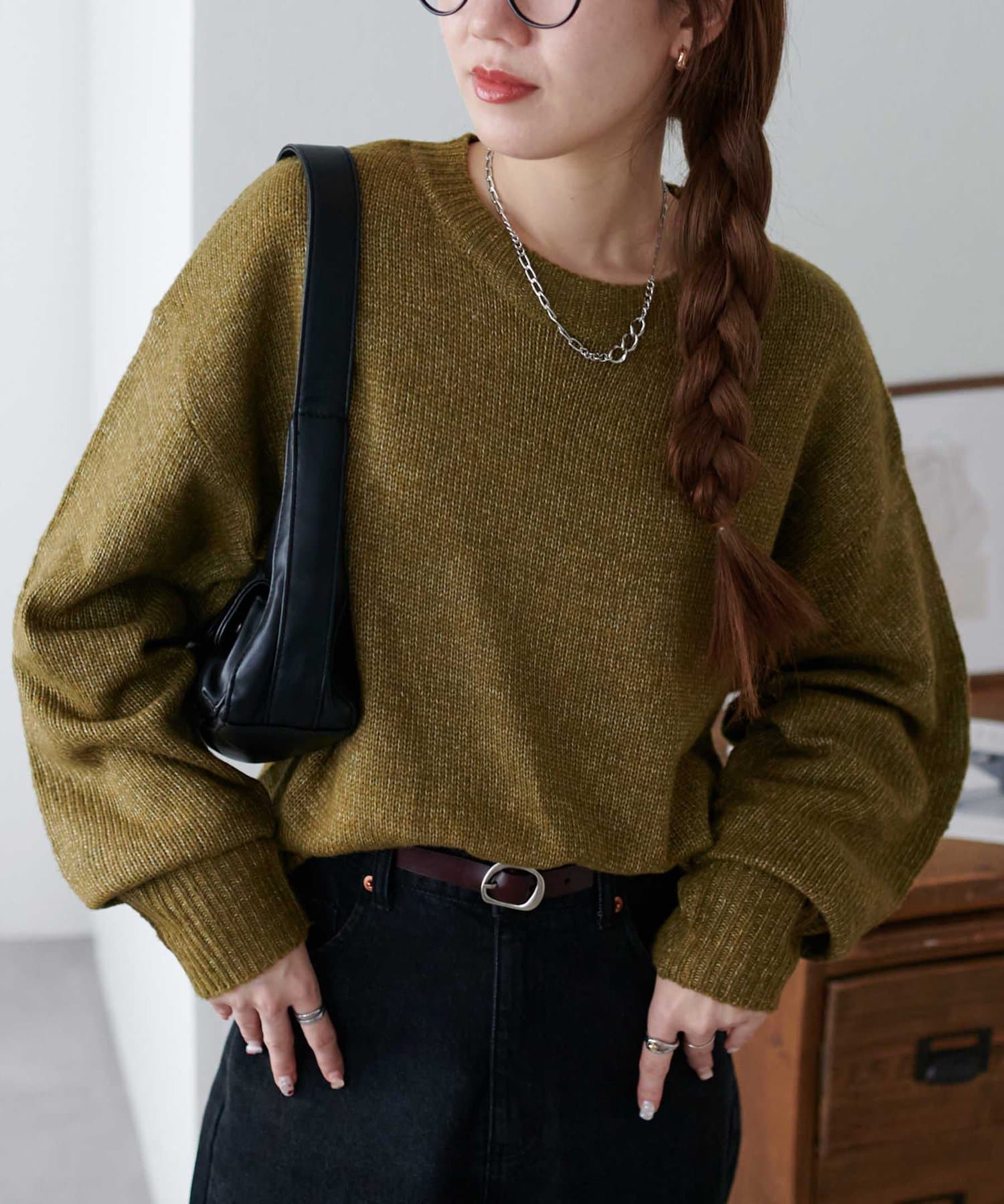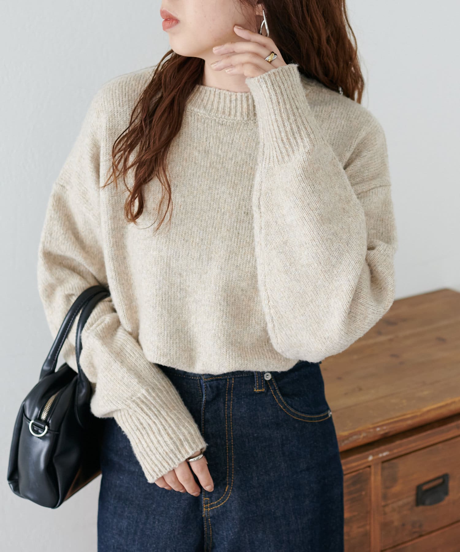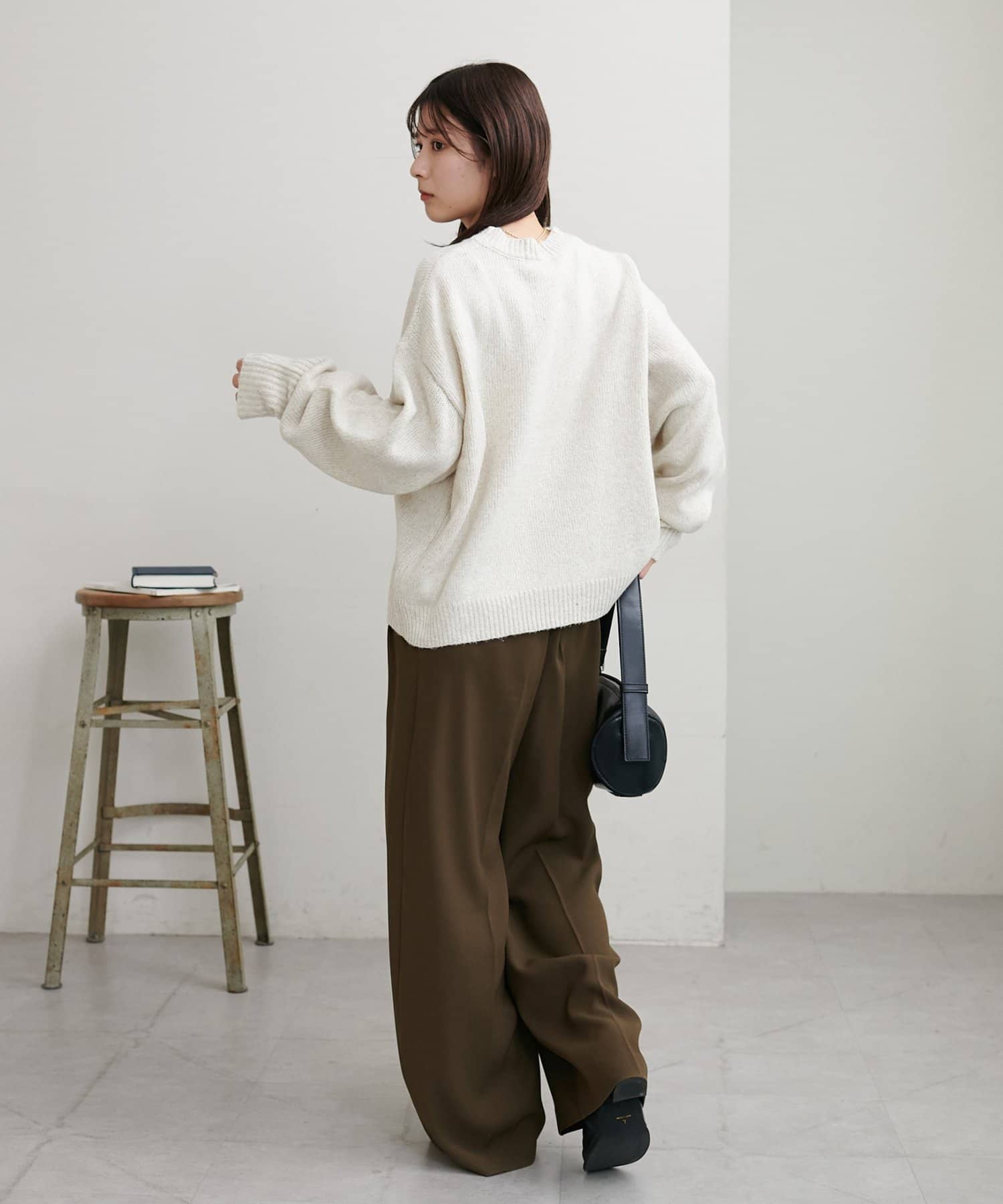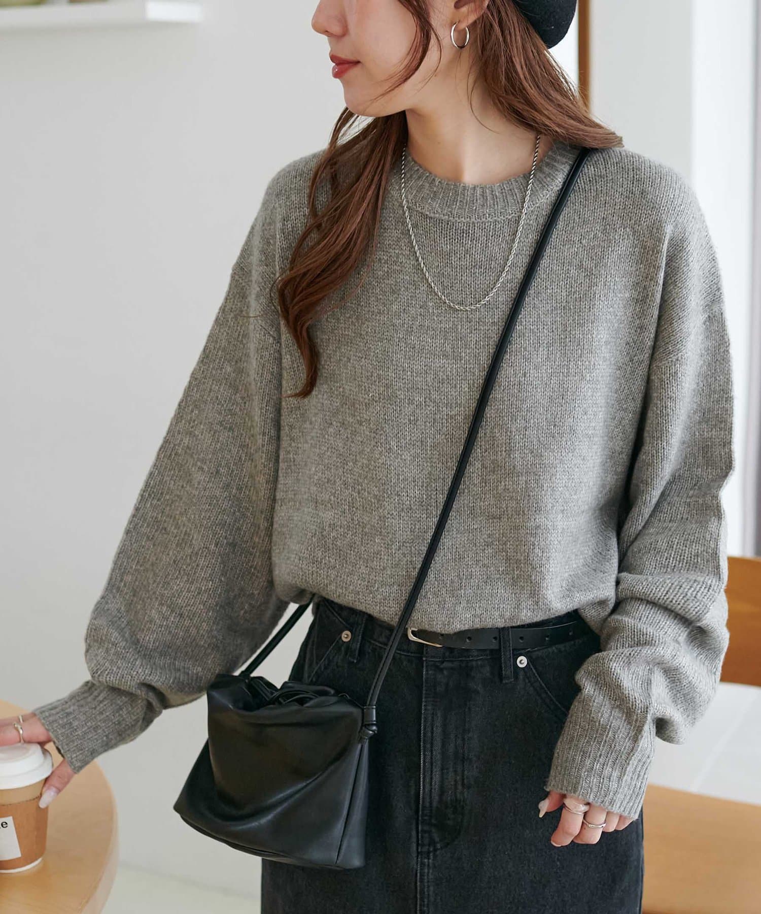 ボリュームのあるボトムとも相性が良く、インしてもアウトでも着回し万能なアイテムです◎。