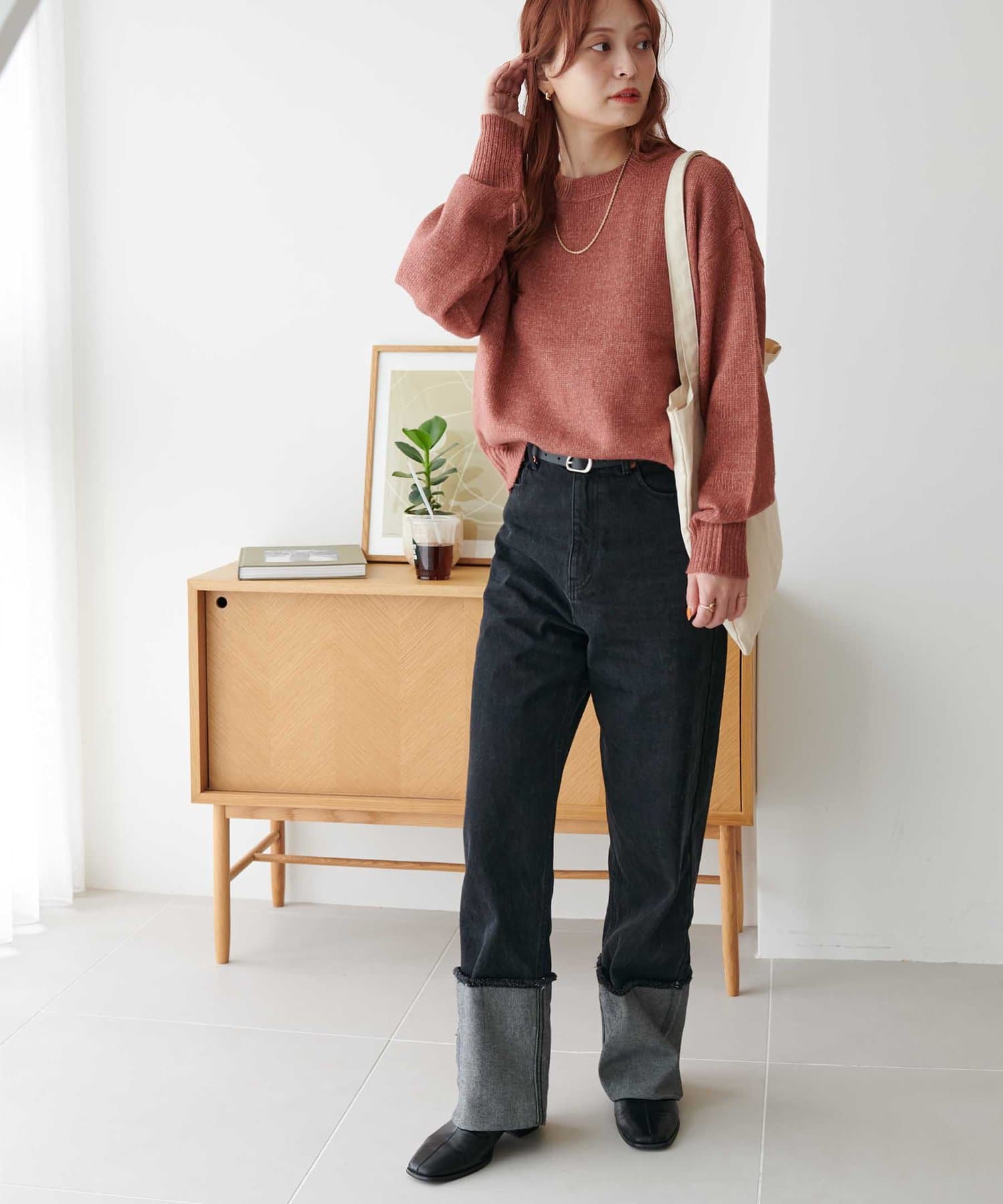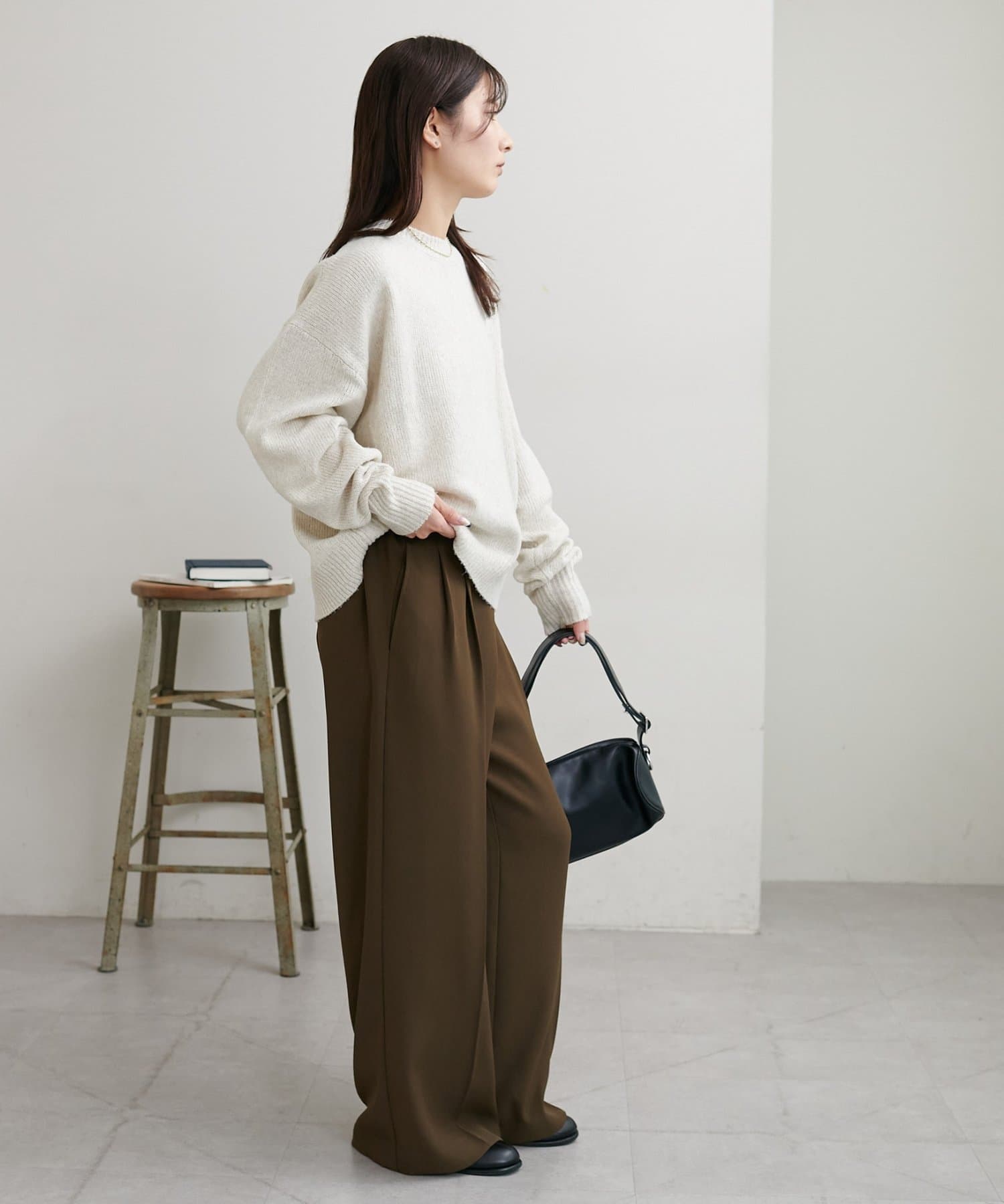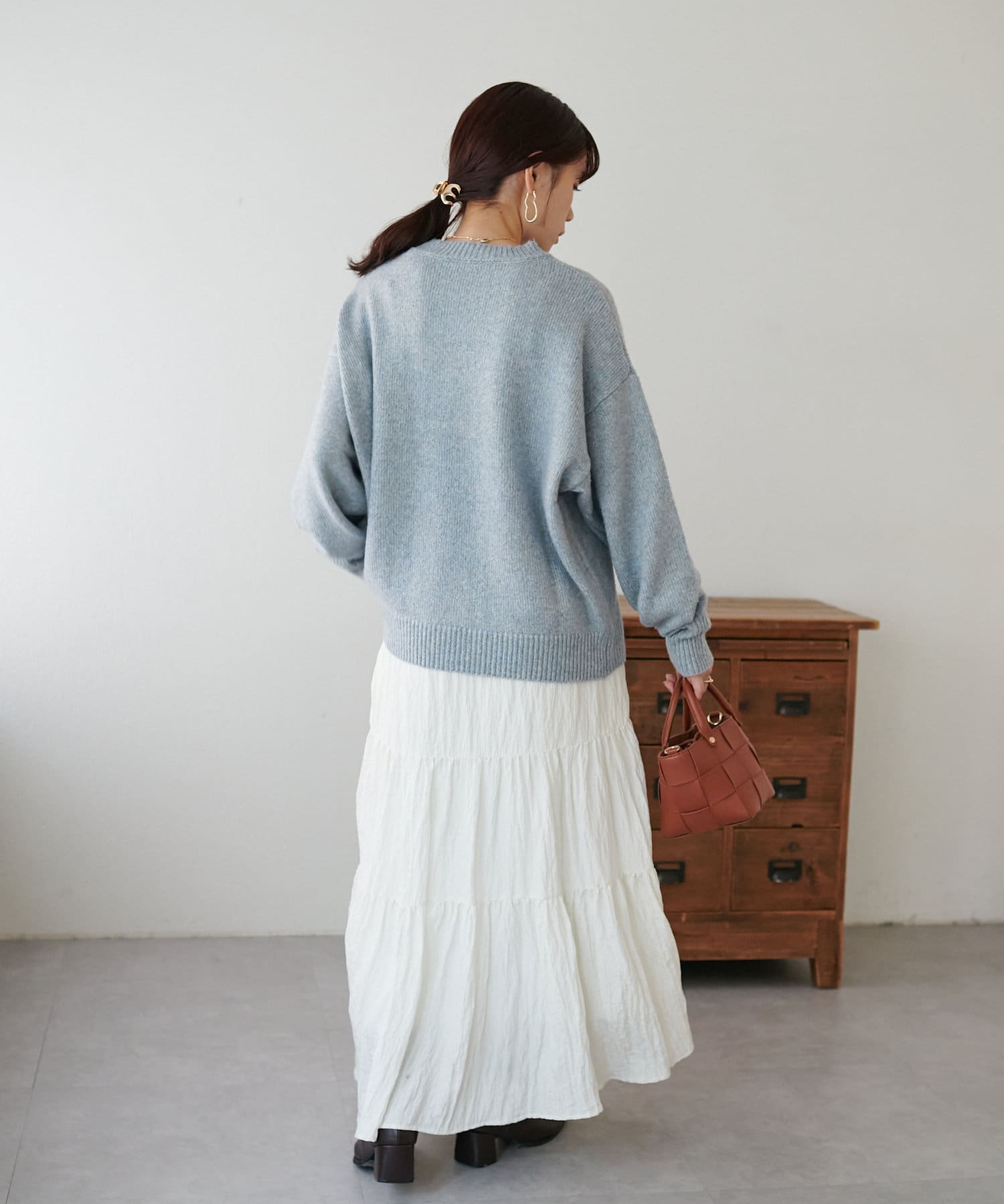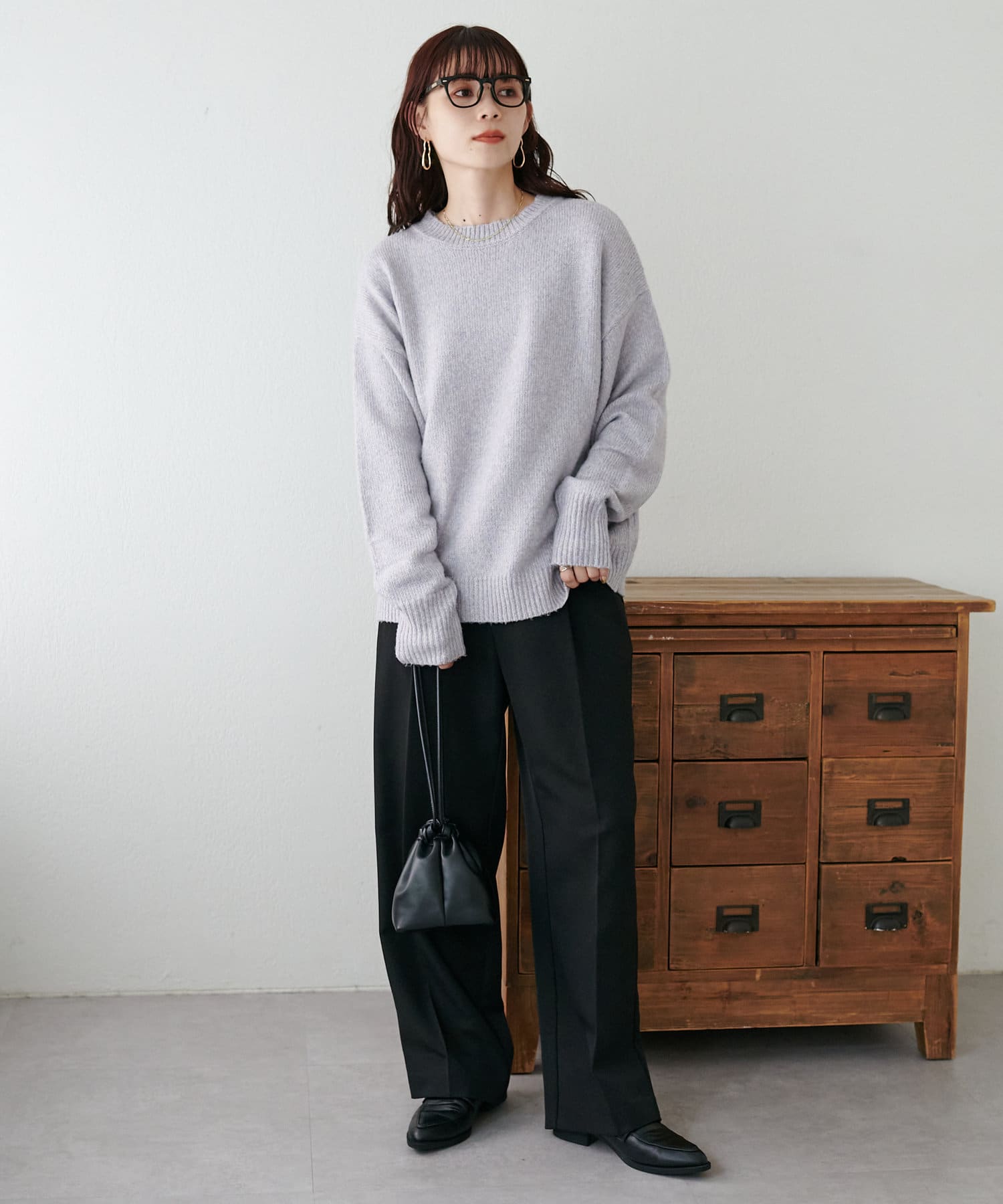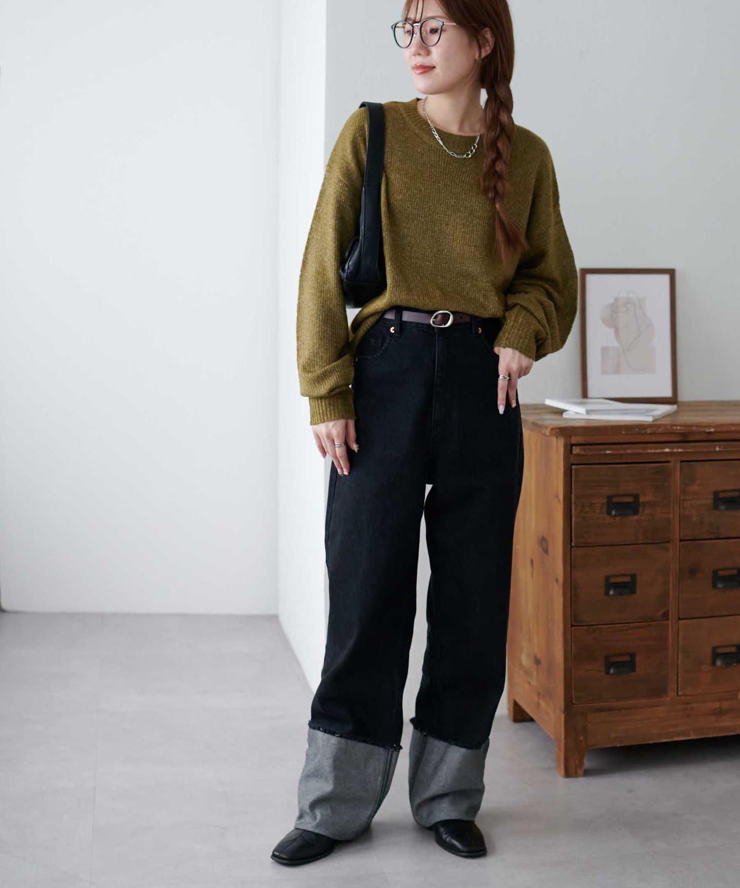 ボリュームのあるボトムとも相性が良く、インしてもアウトでも着回し万能なアイテムです◎。