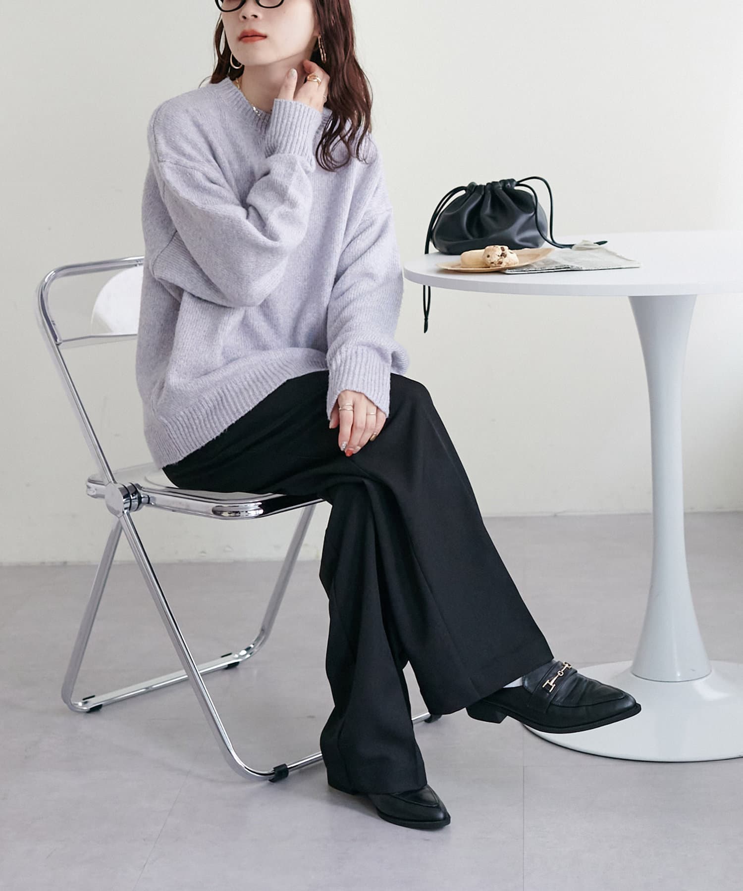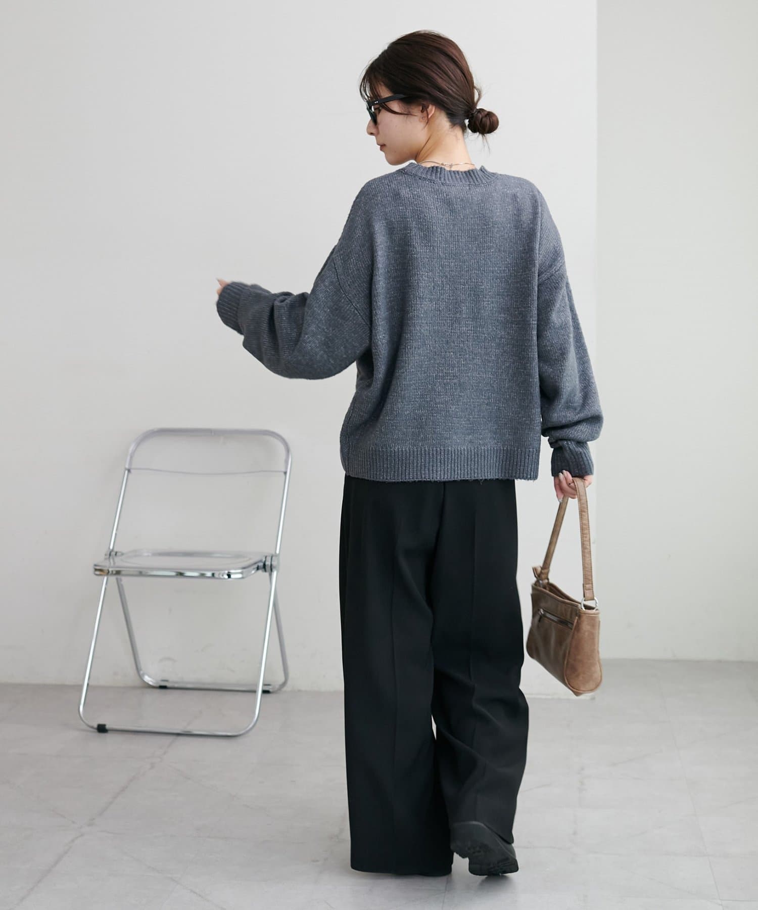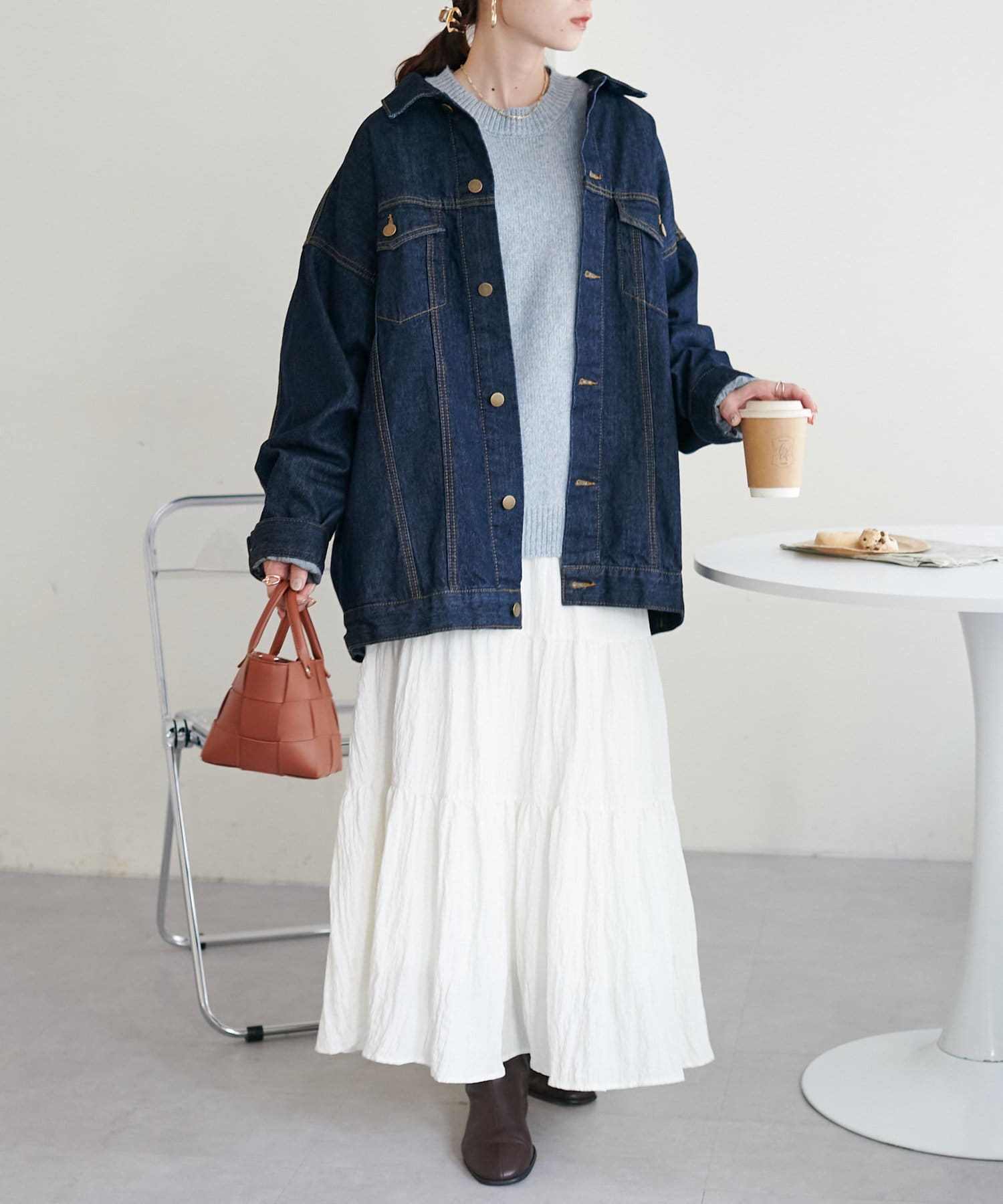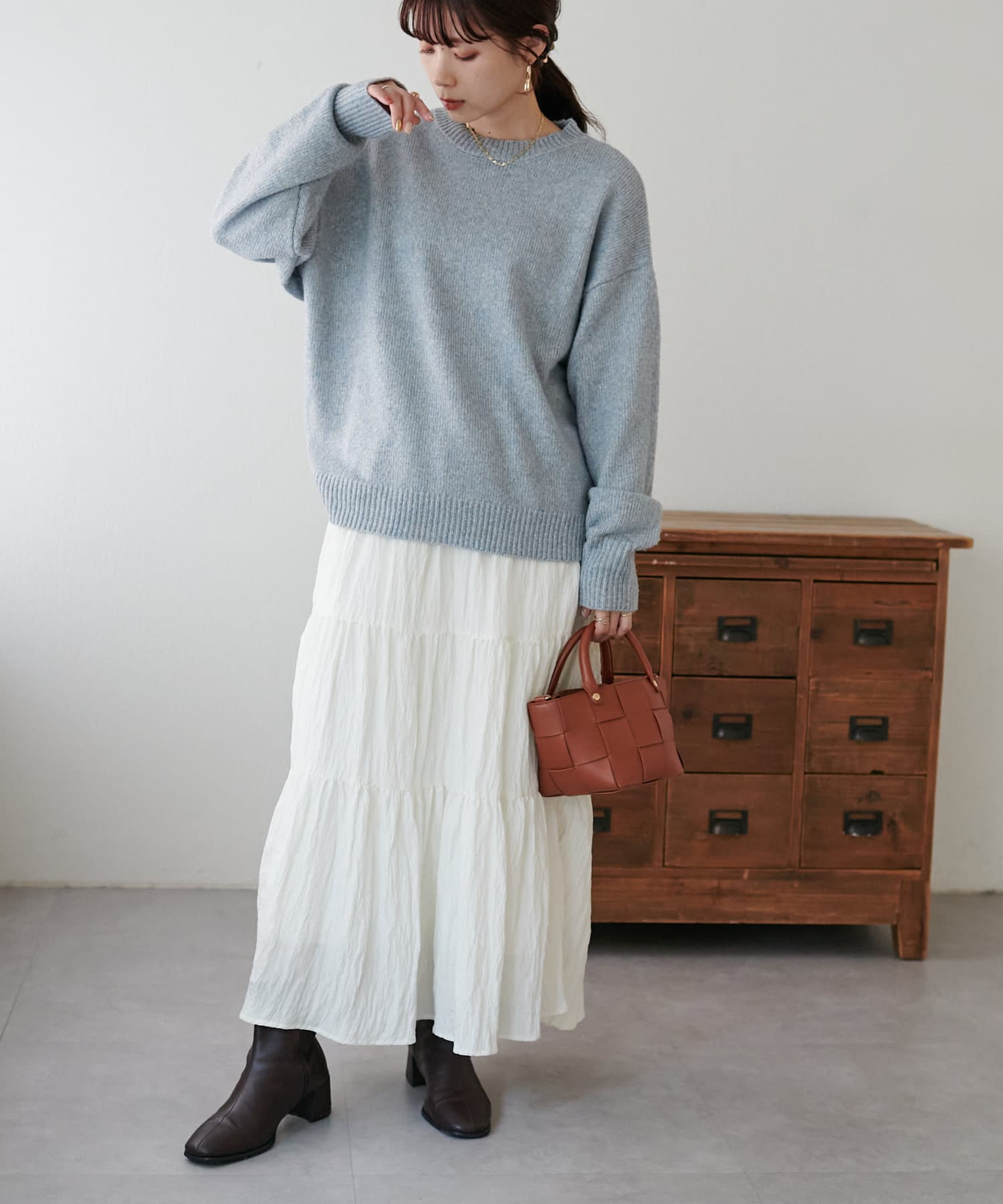 ボリュームのあるボトムとも相性が良く、インしてもアウトでも着回し万能なアイテムです◎。
