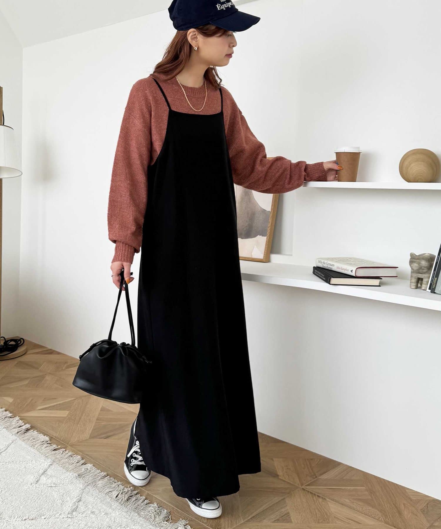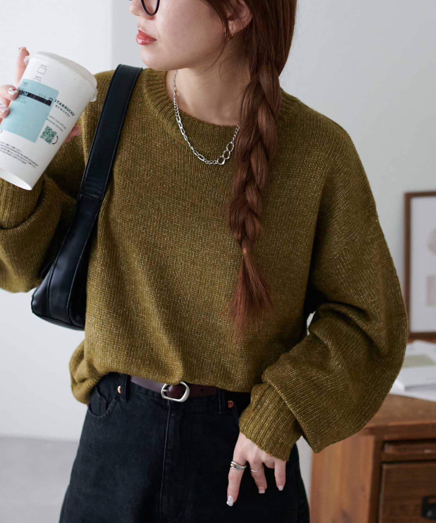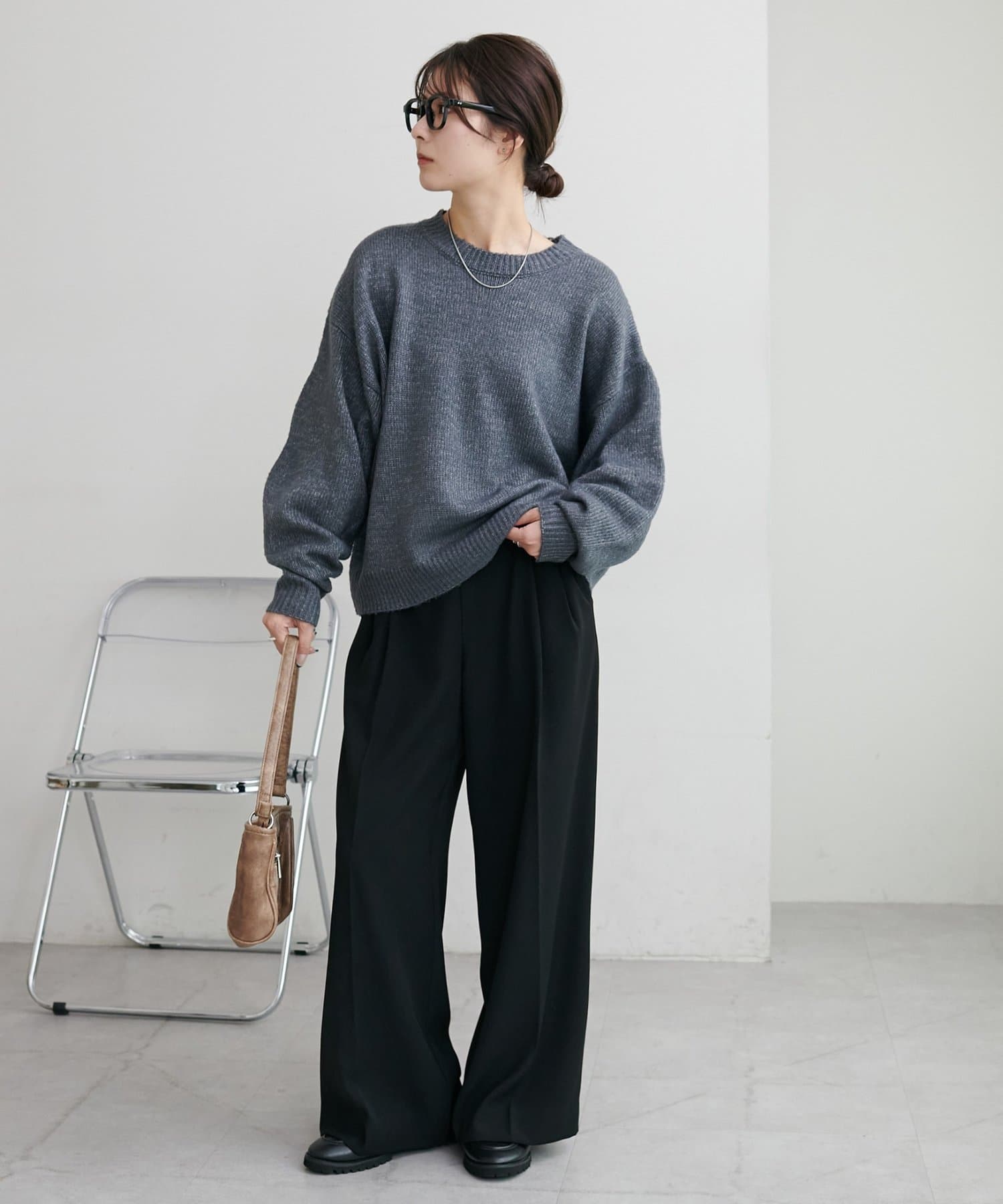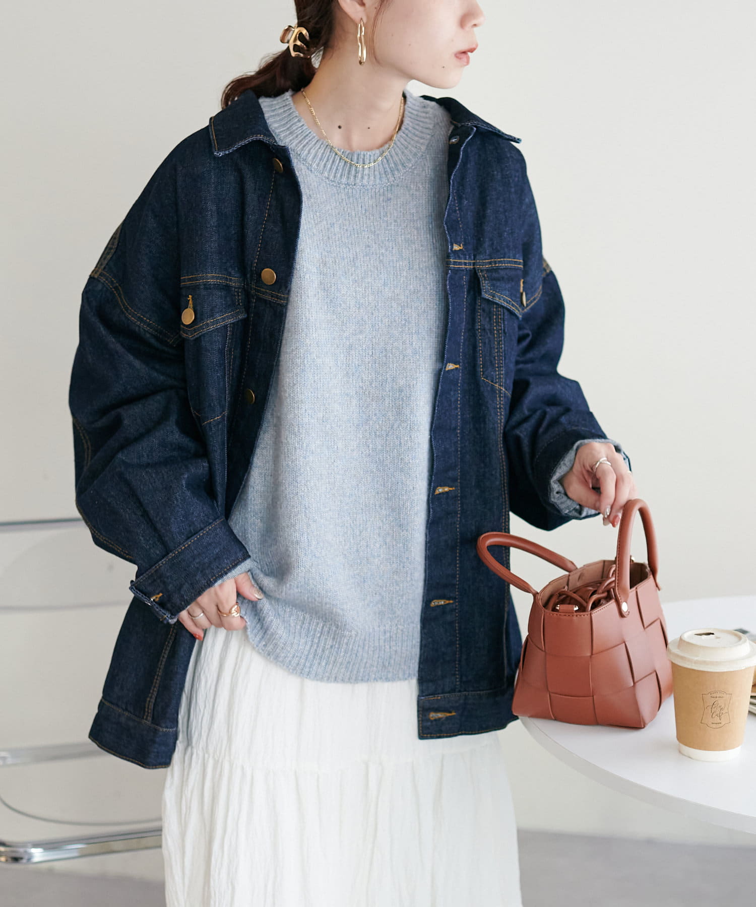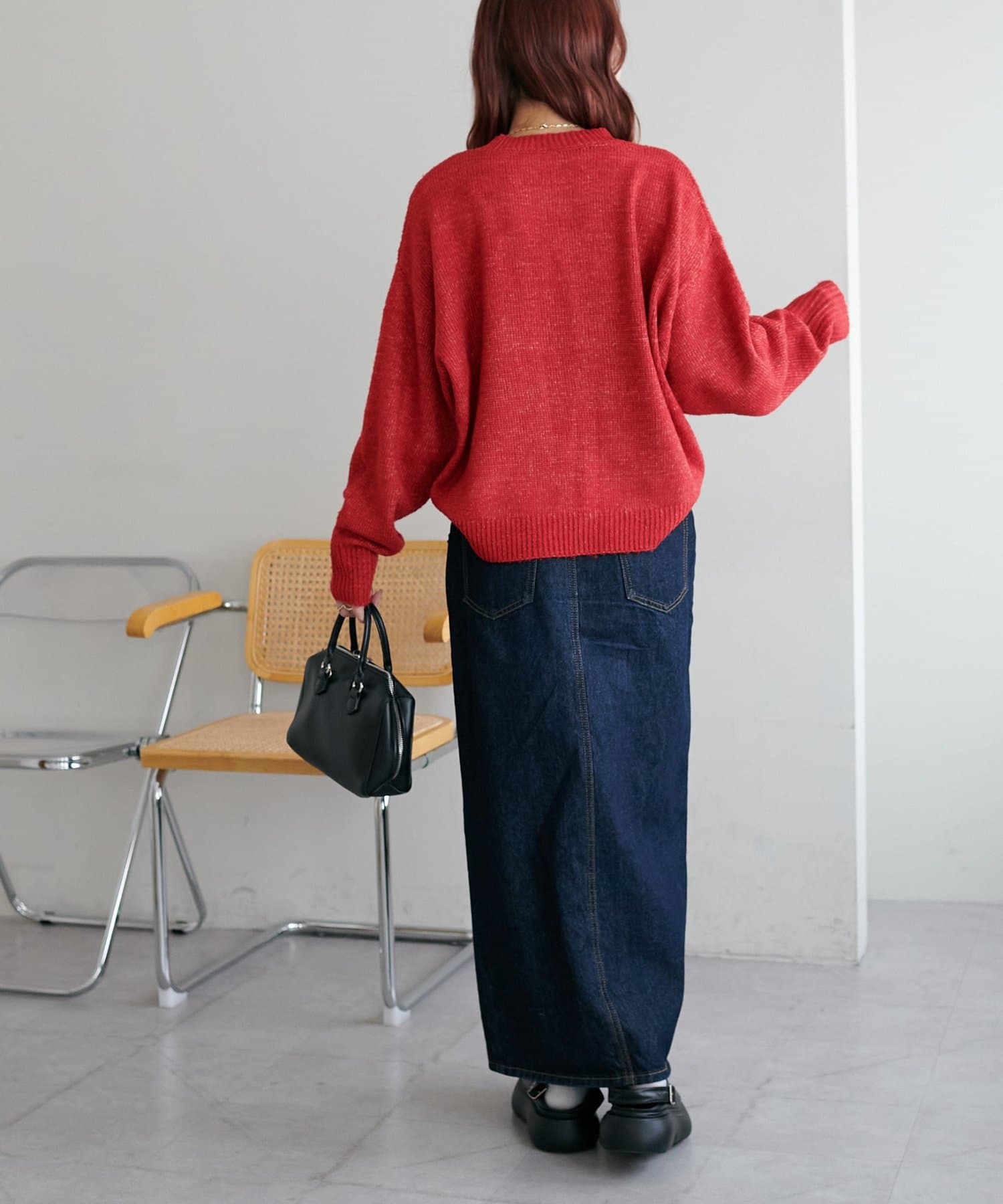 ボリュームのあるボトムとも相性が良く、インしてもアウトでも着回し万能なアイテムです◎。