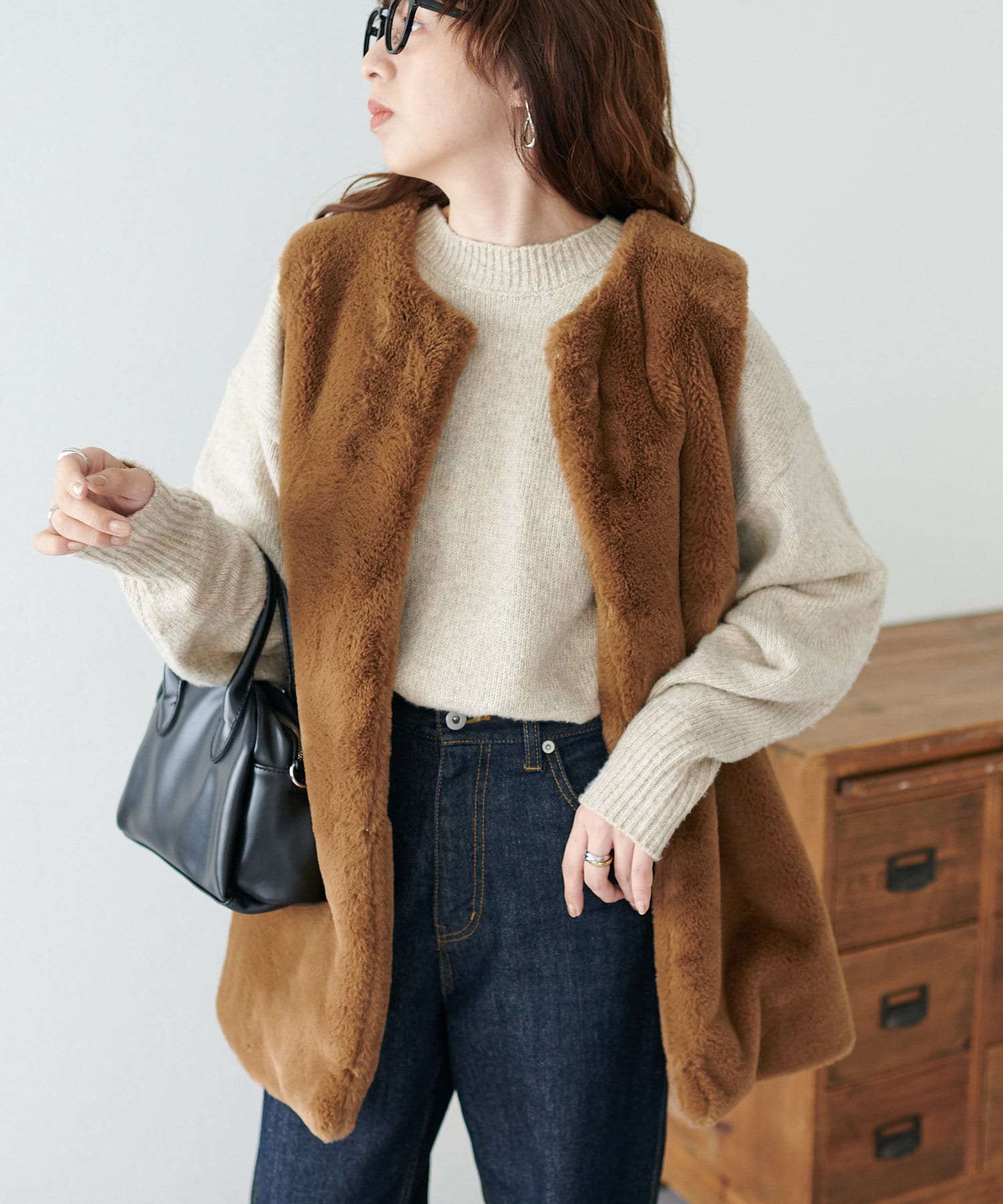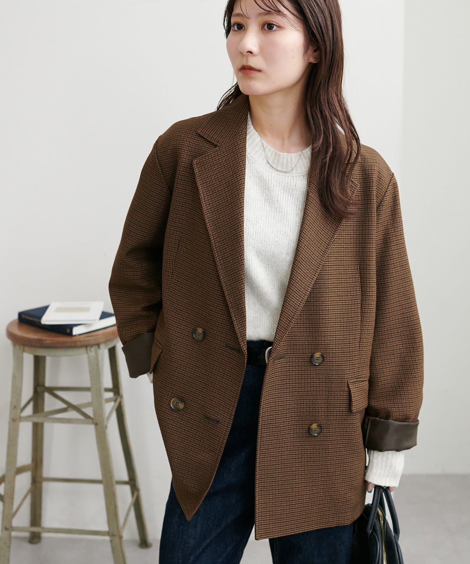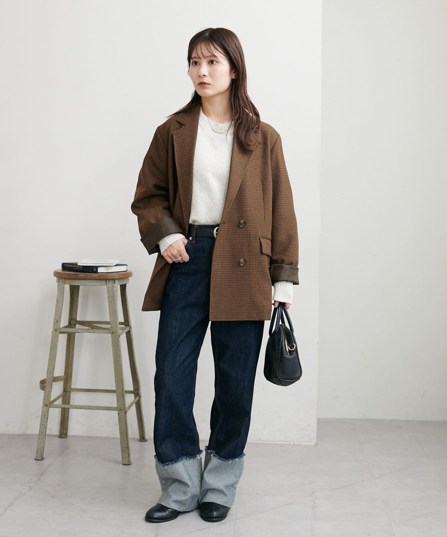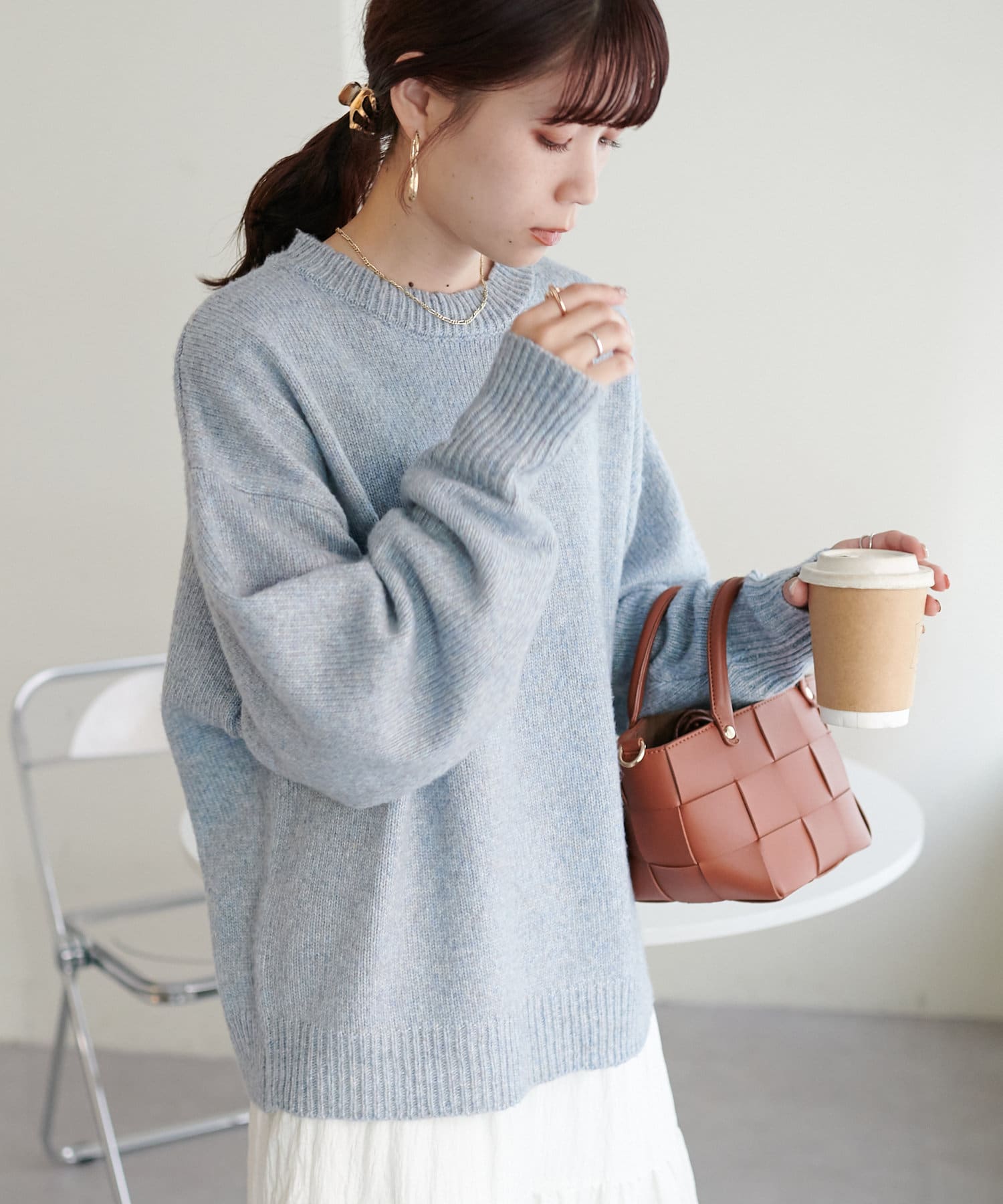 ボリュームのあるボトムとも相性が良く、インしてもアウトでも着回し万能なアイテムです◎。