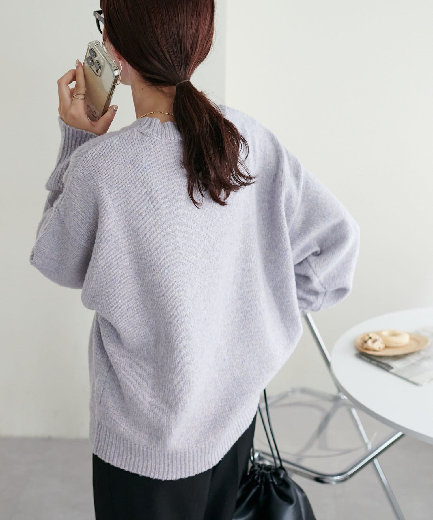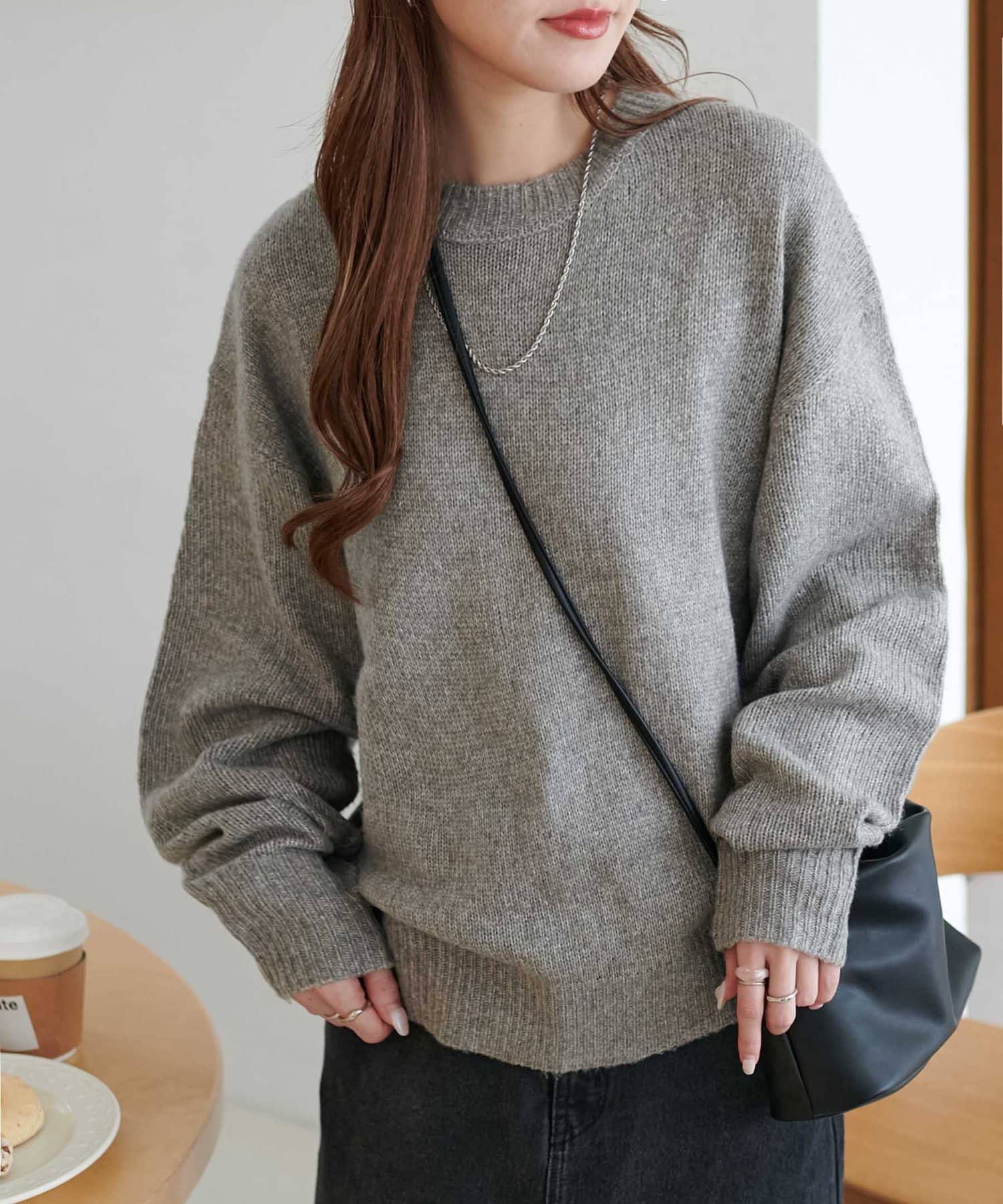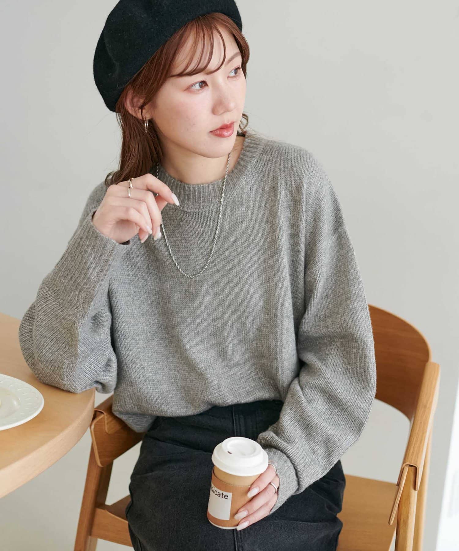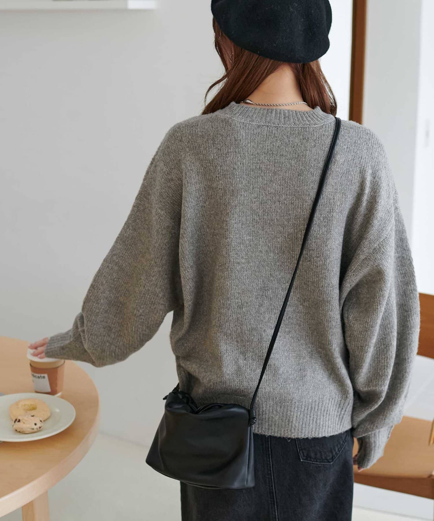 リブの太さやネックラインの開き具合にもこだわり、ラフさの中に大人っぽさをプラス。