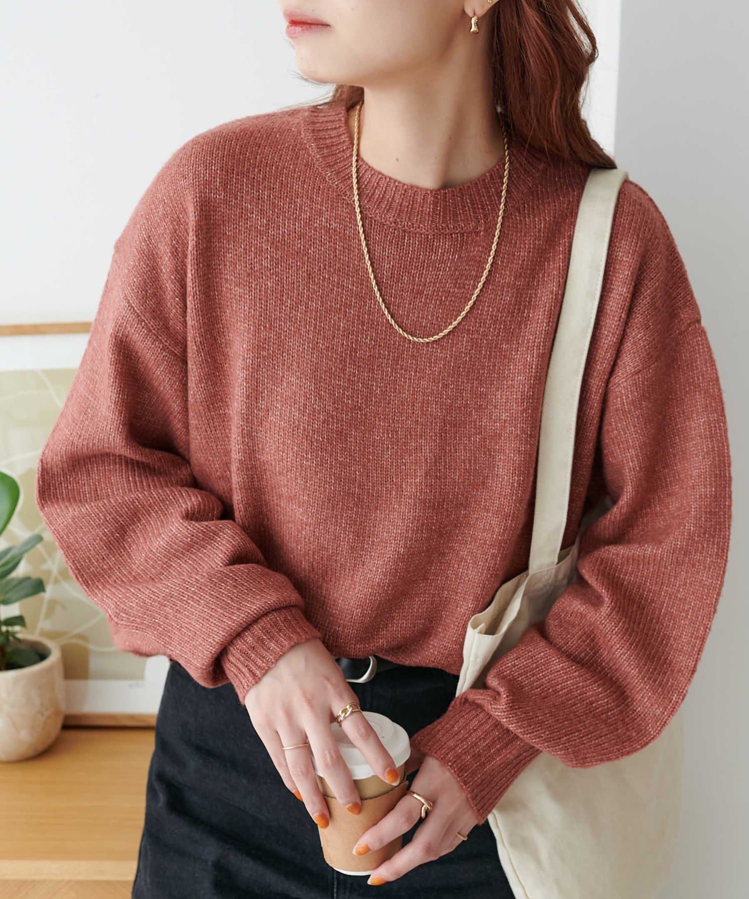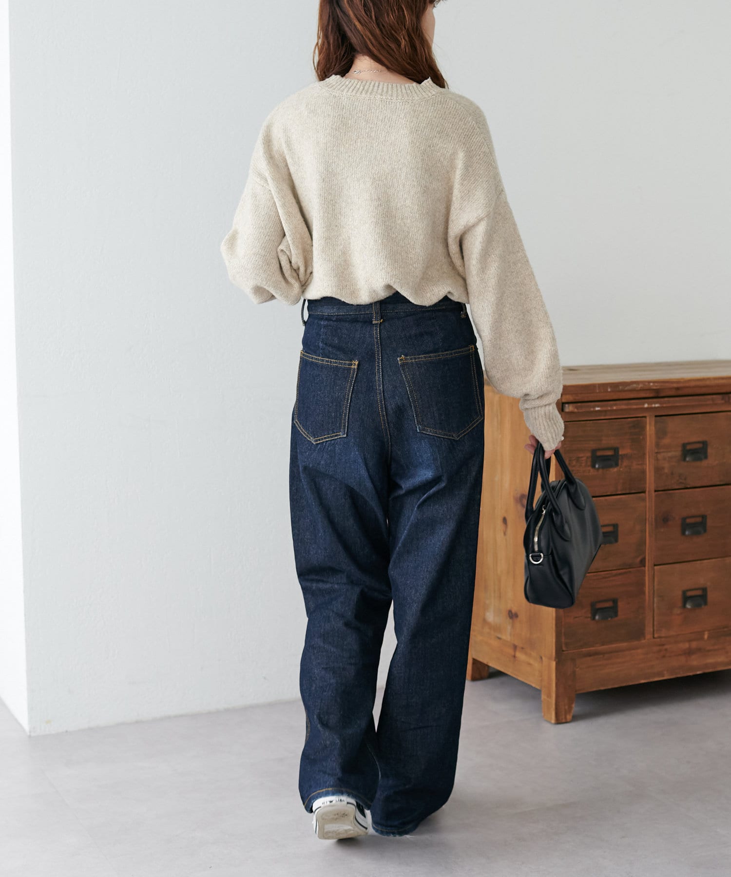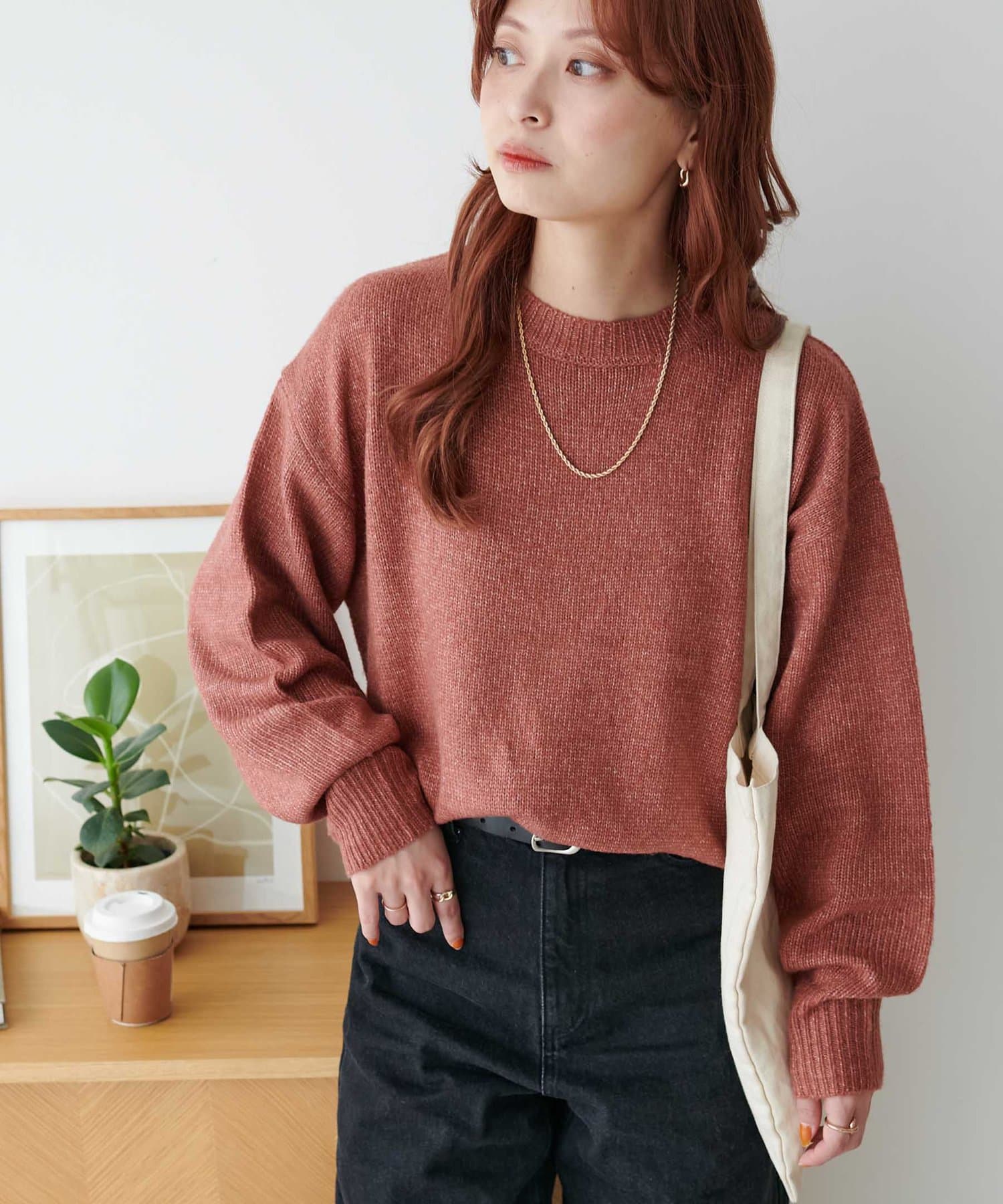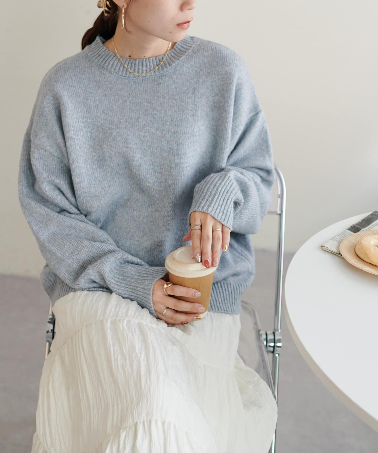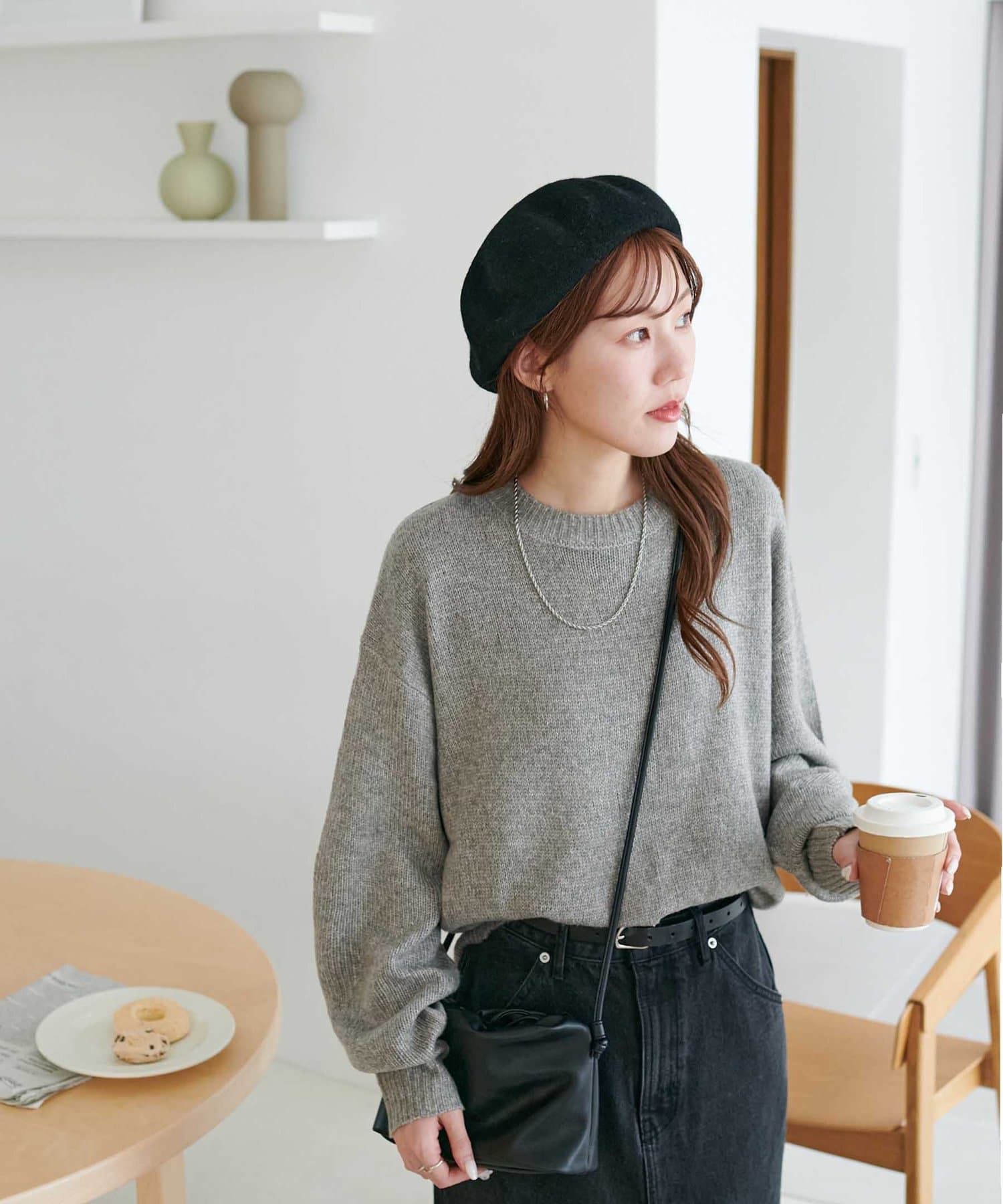 リブの太さやネックラインの開き具合にもこだわり、ラフさの中に大人っぽさをプラス。