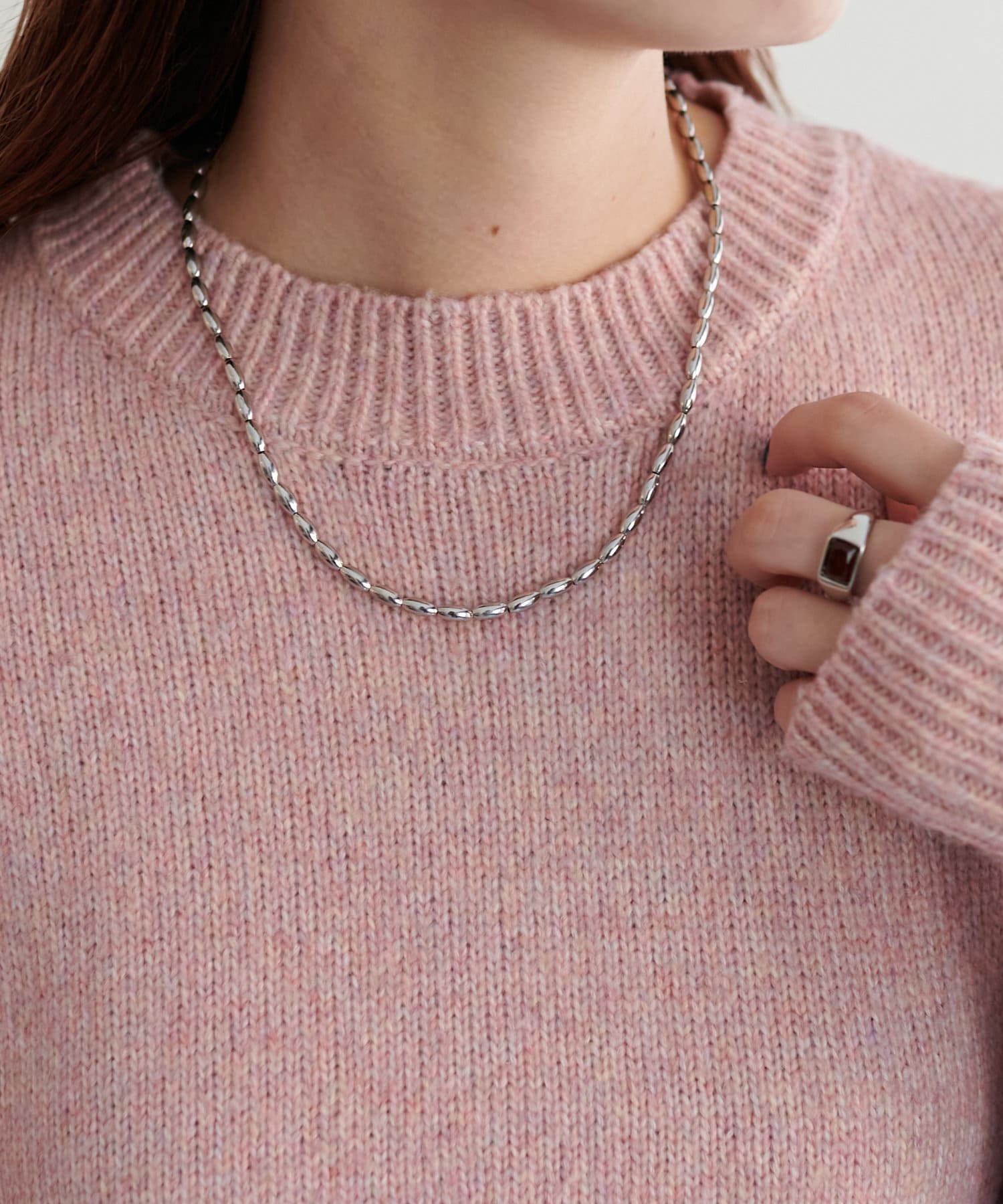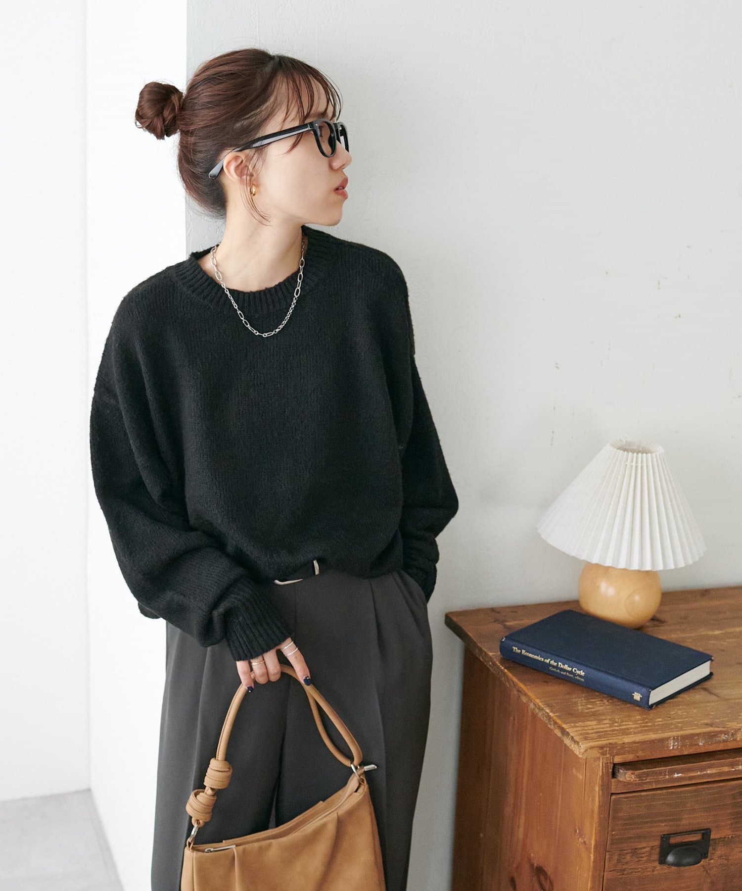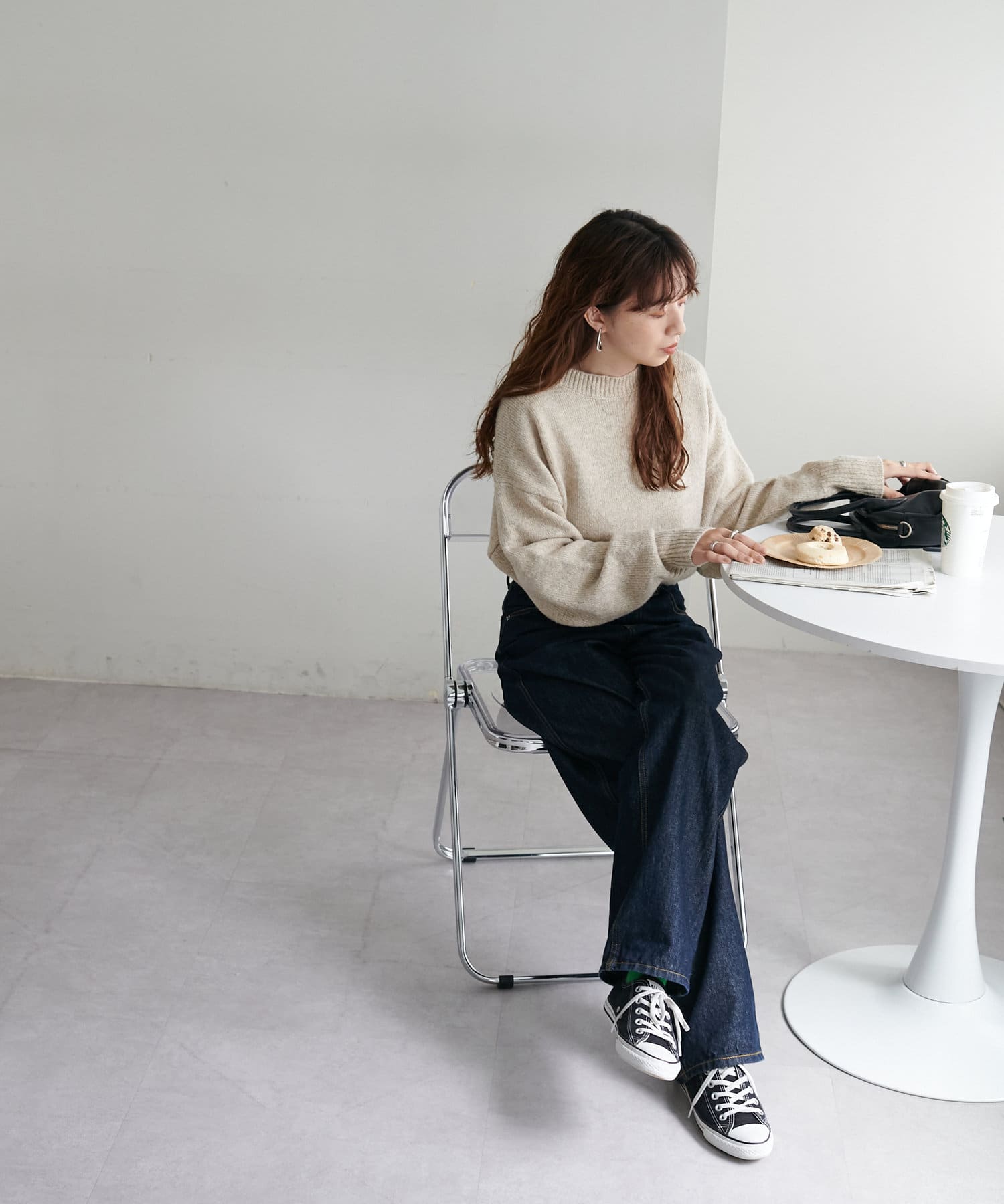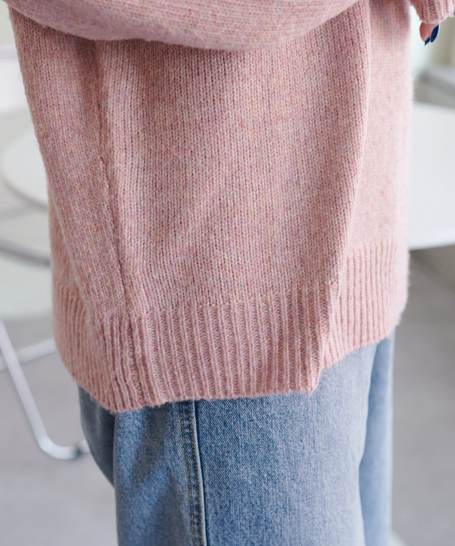 リブの太さやネックラインの開き具合にもこだわり、ラフさの中に大人っぽさをプラス。