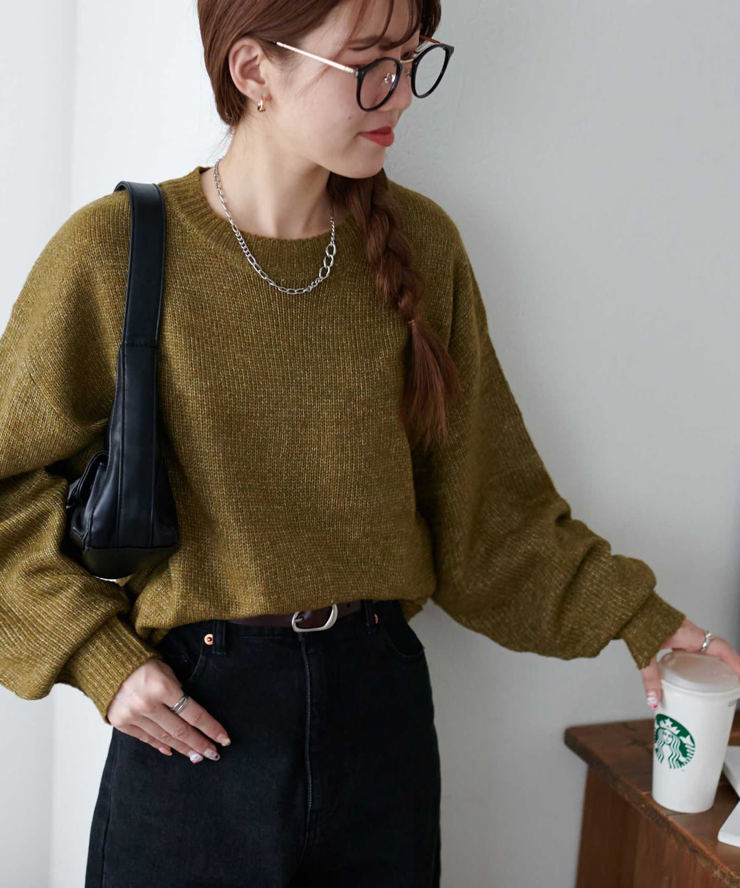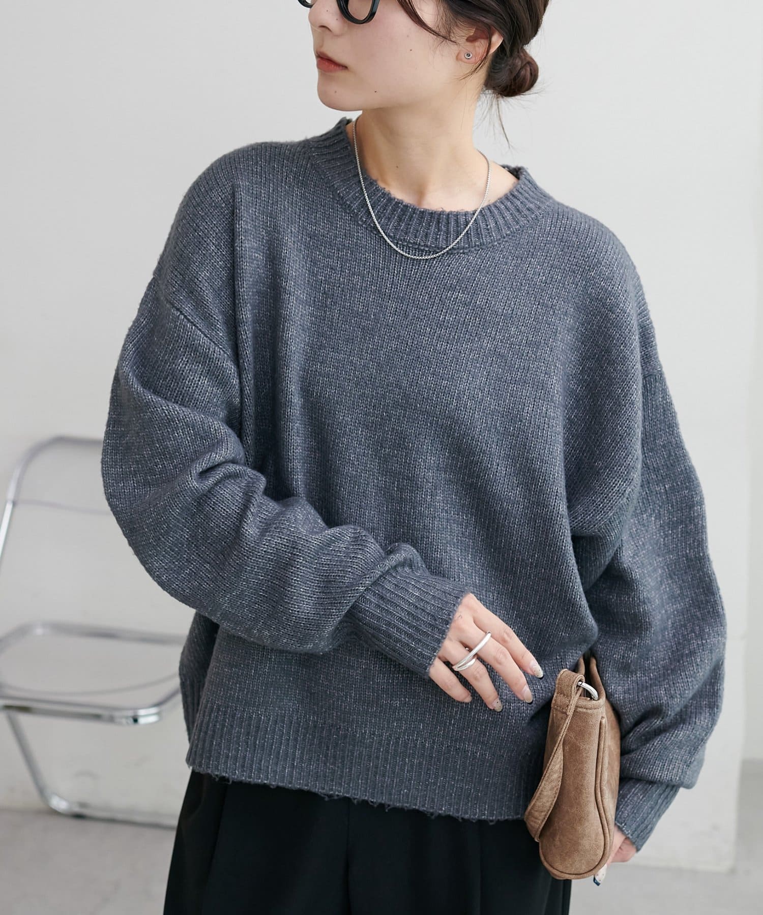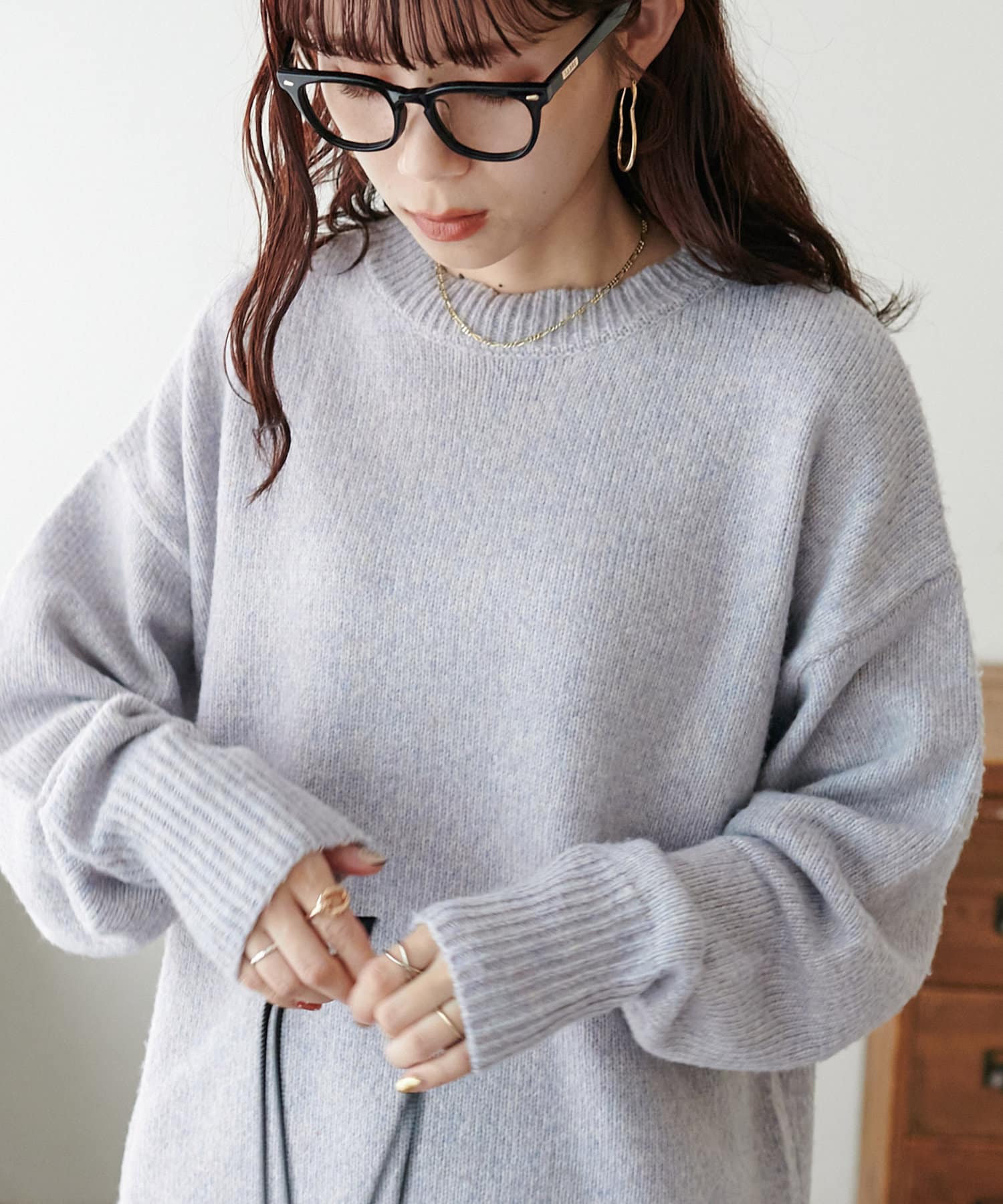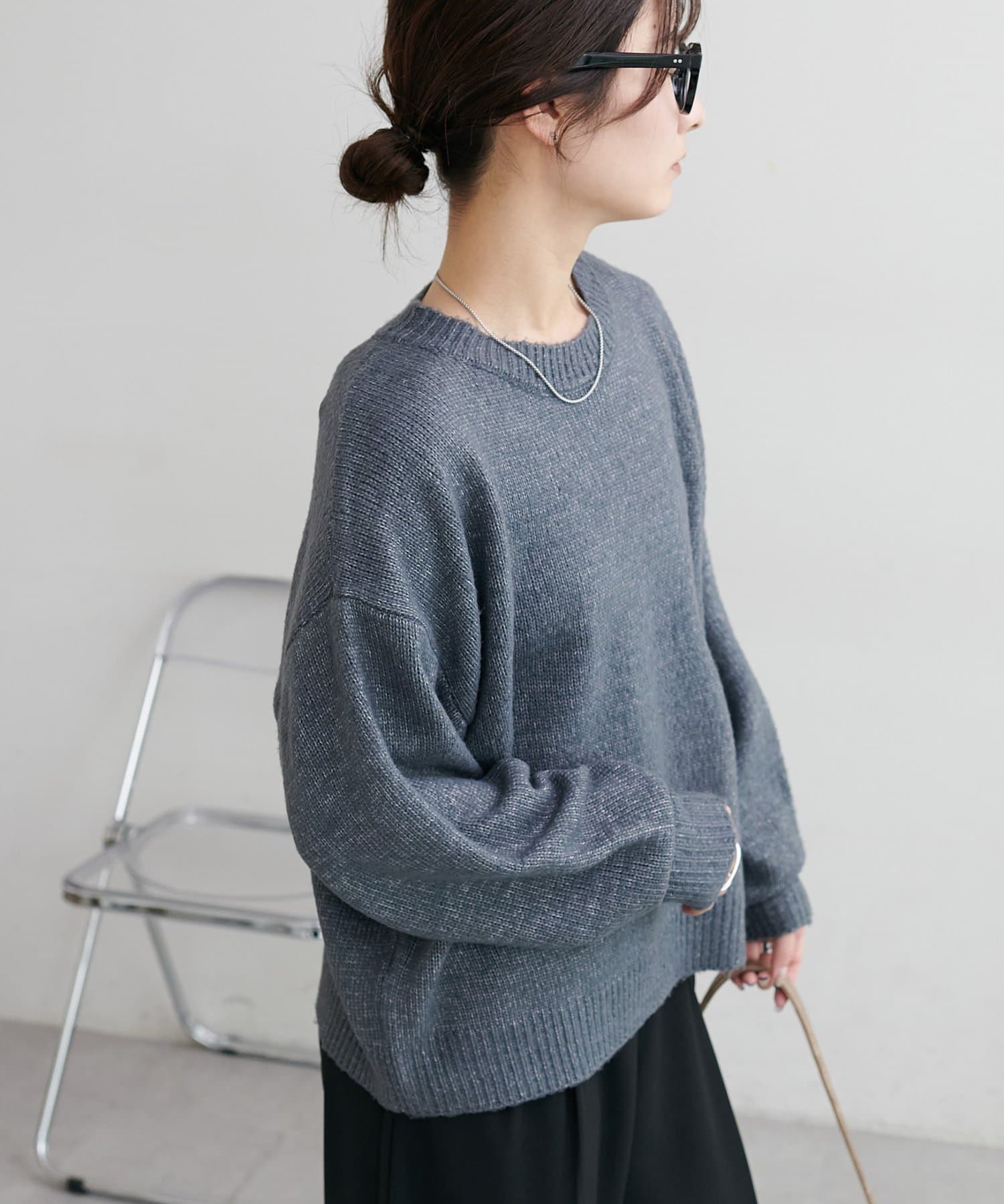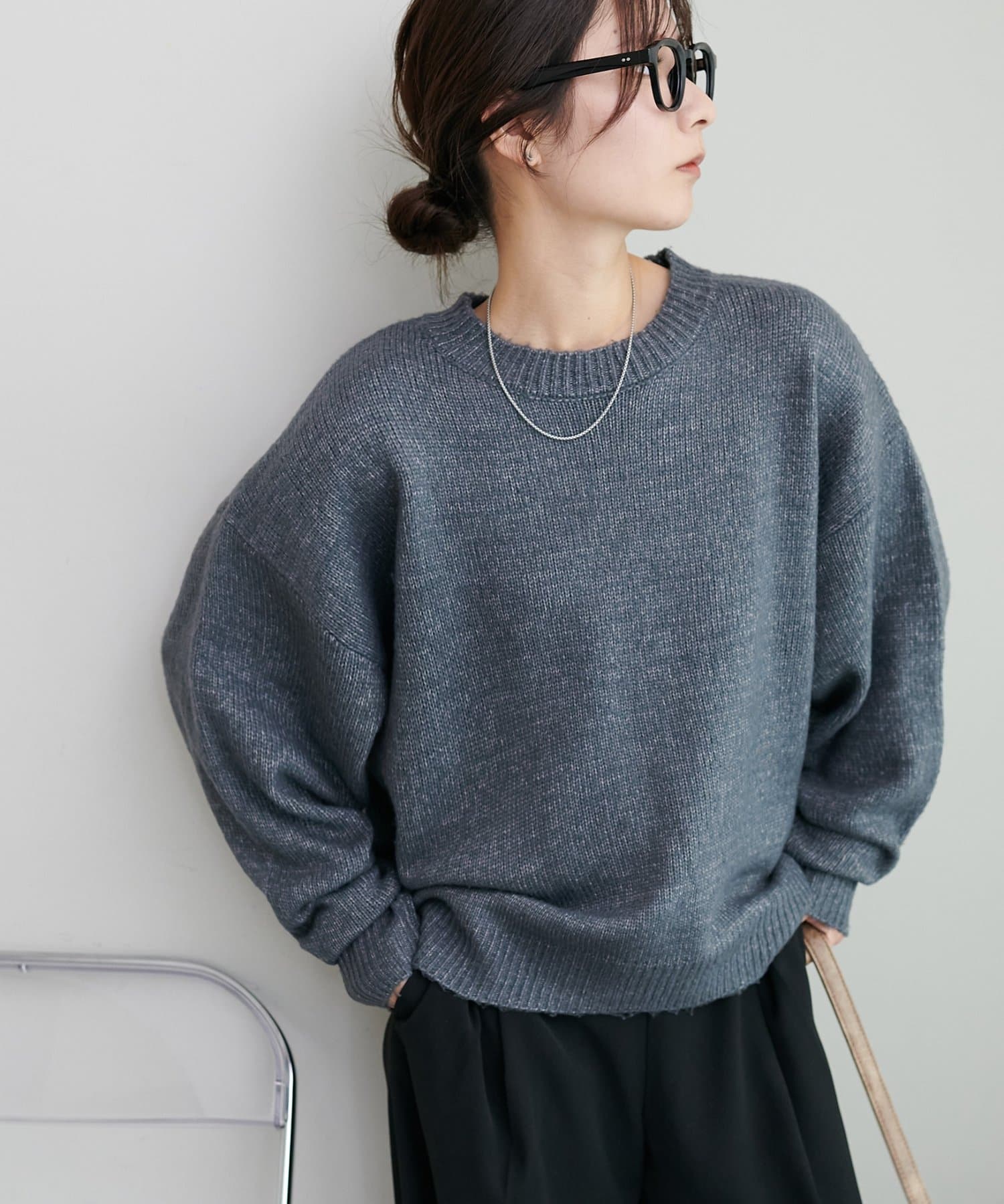 2色以上の糸を使用して作られ、ゆったりとしたシルエットと、長めの袖がこなれた印象のニットプルオーバー。