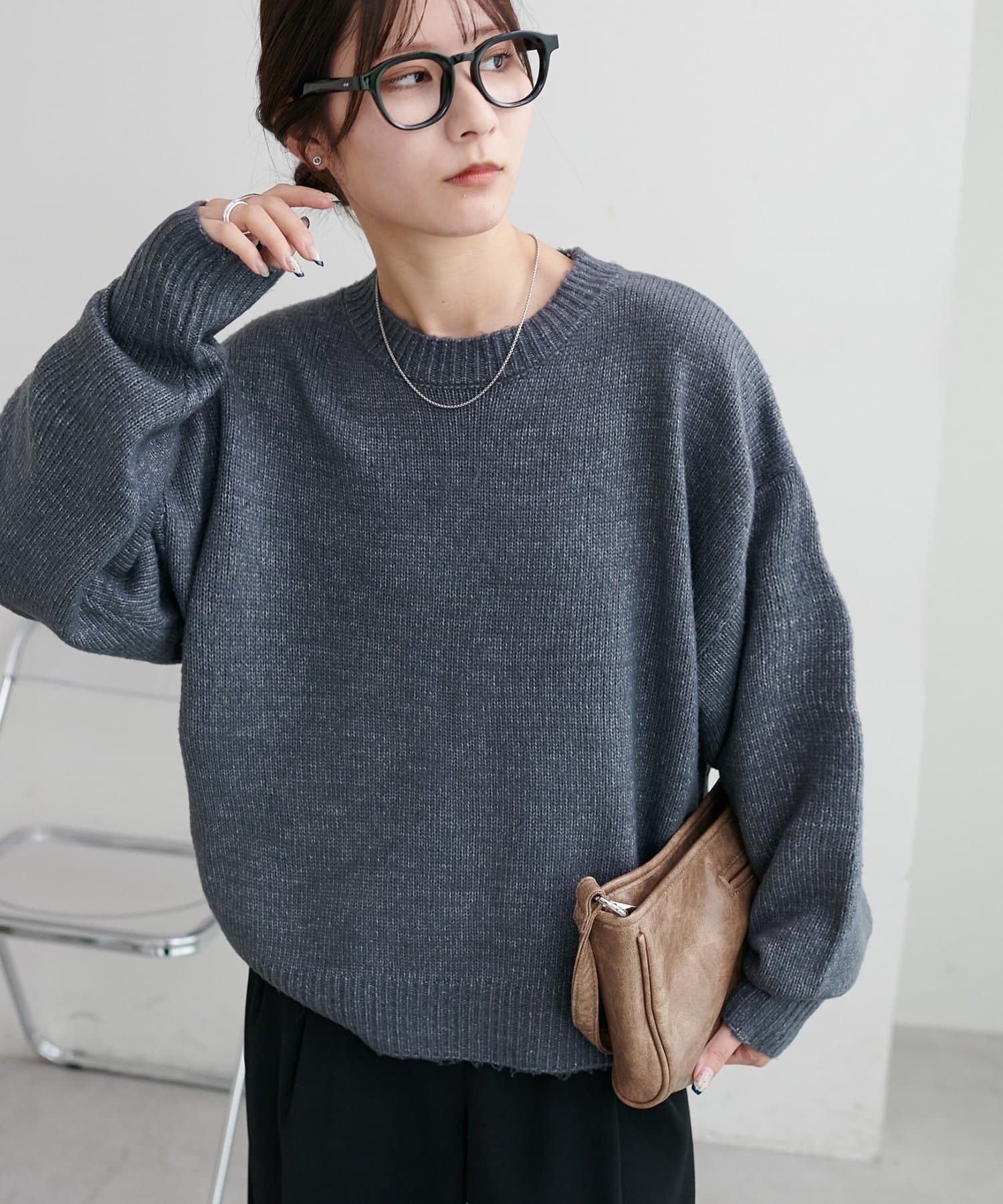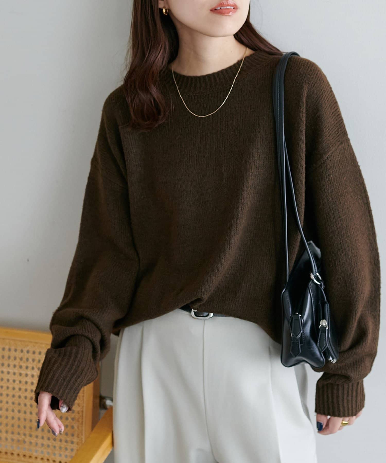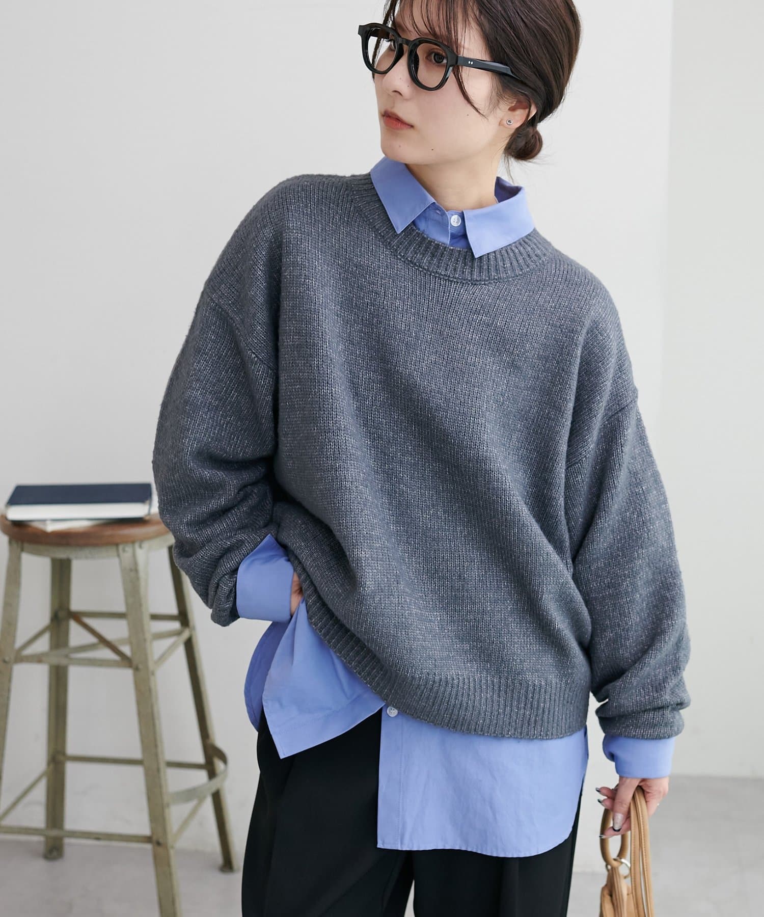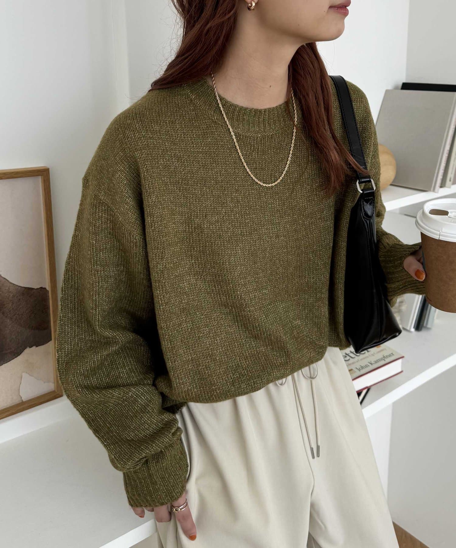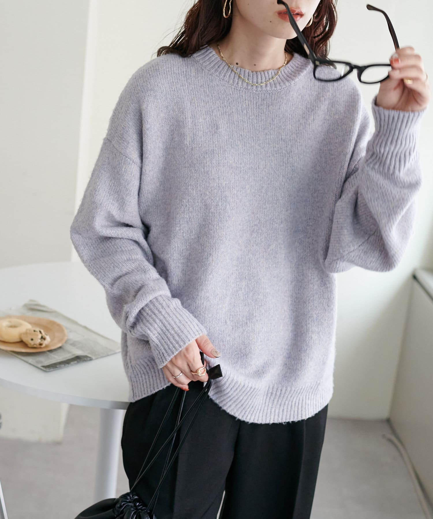 2色以上の糸を使用して作られ、ゆったりとしたシルエットと、長めの袖がこなれた印象のニットプルオーバー。