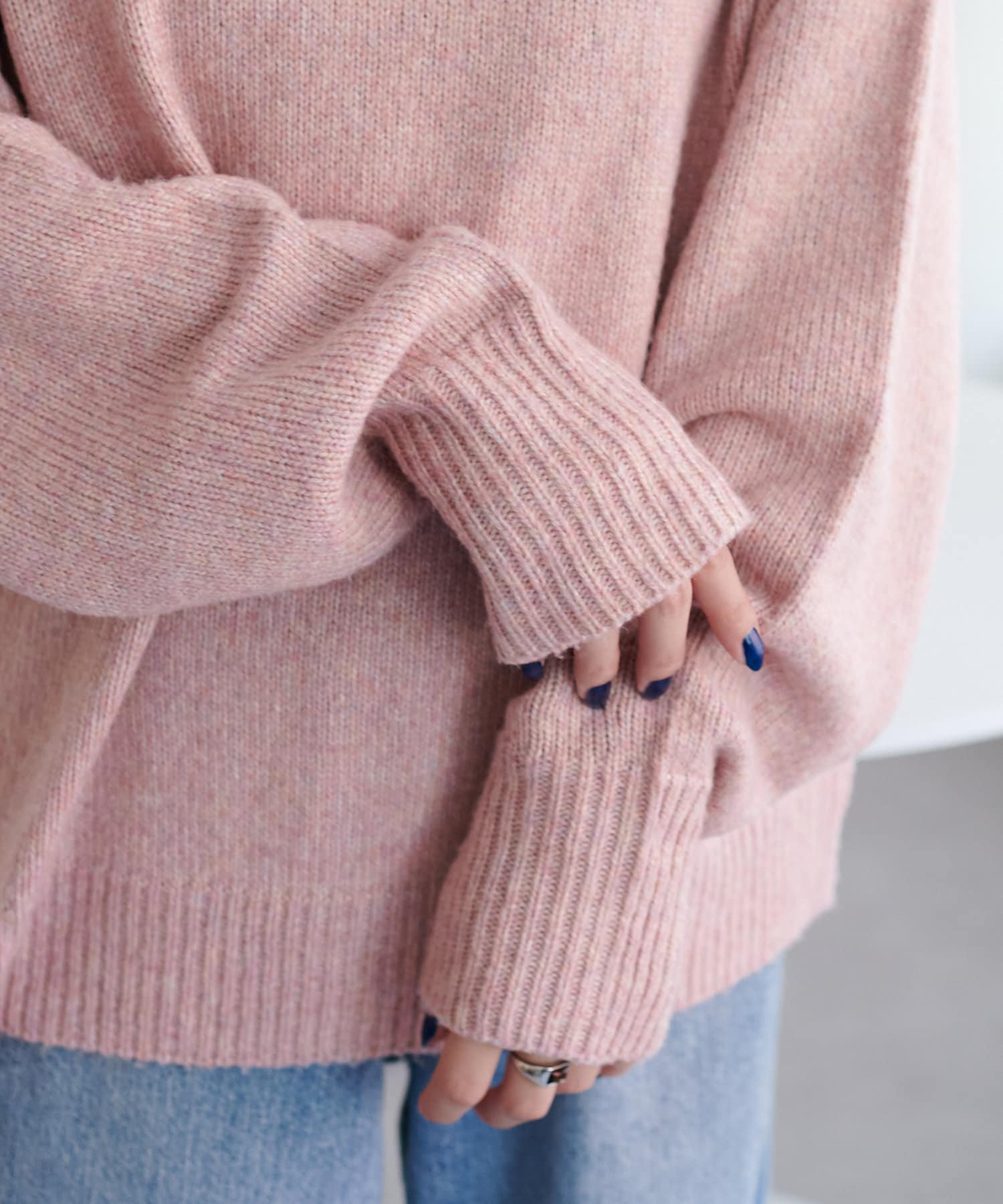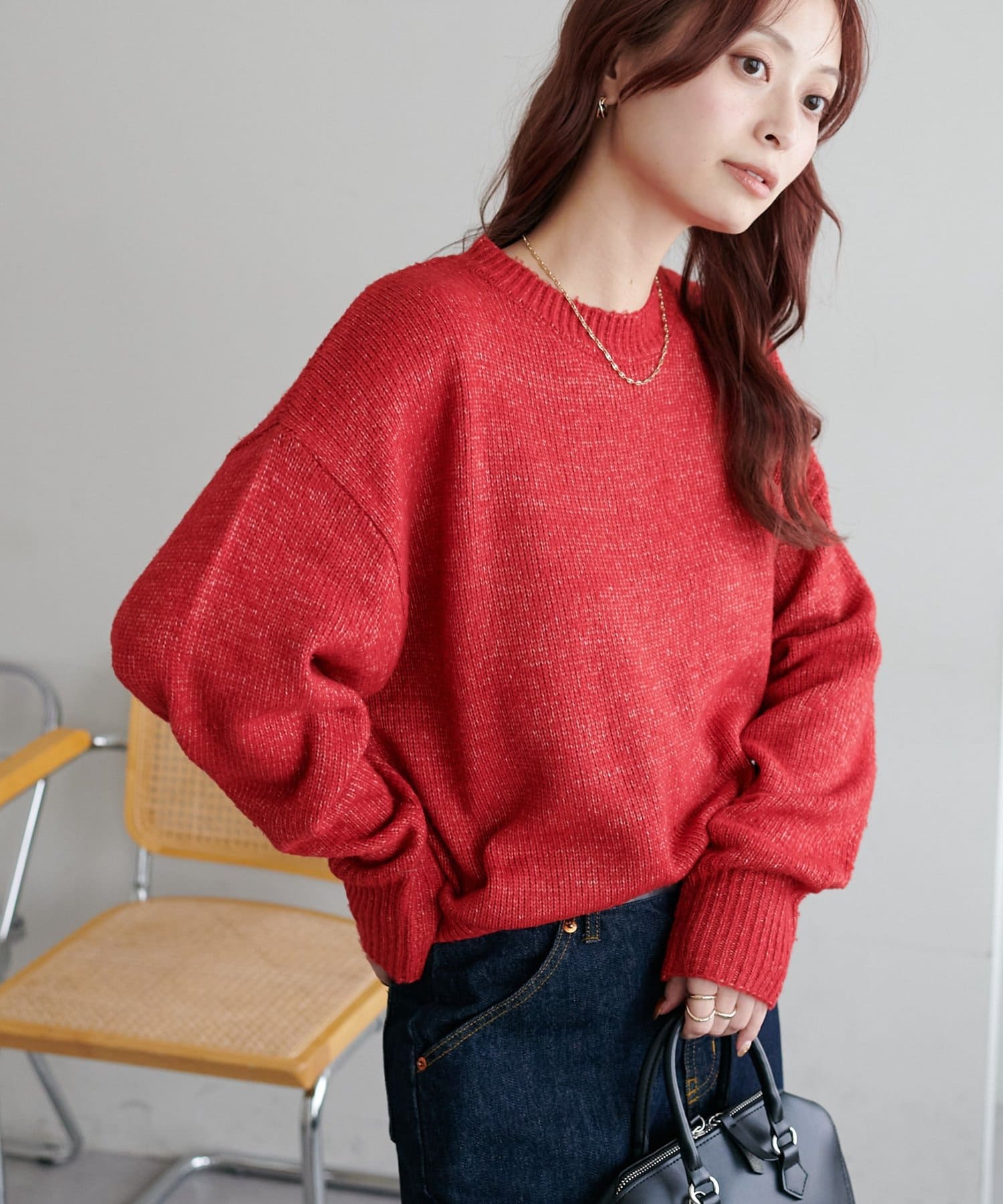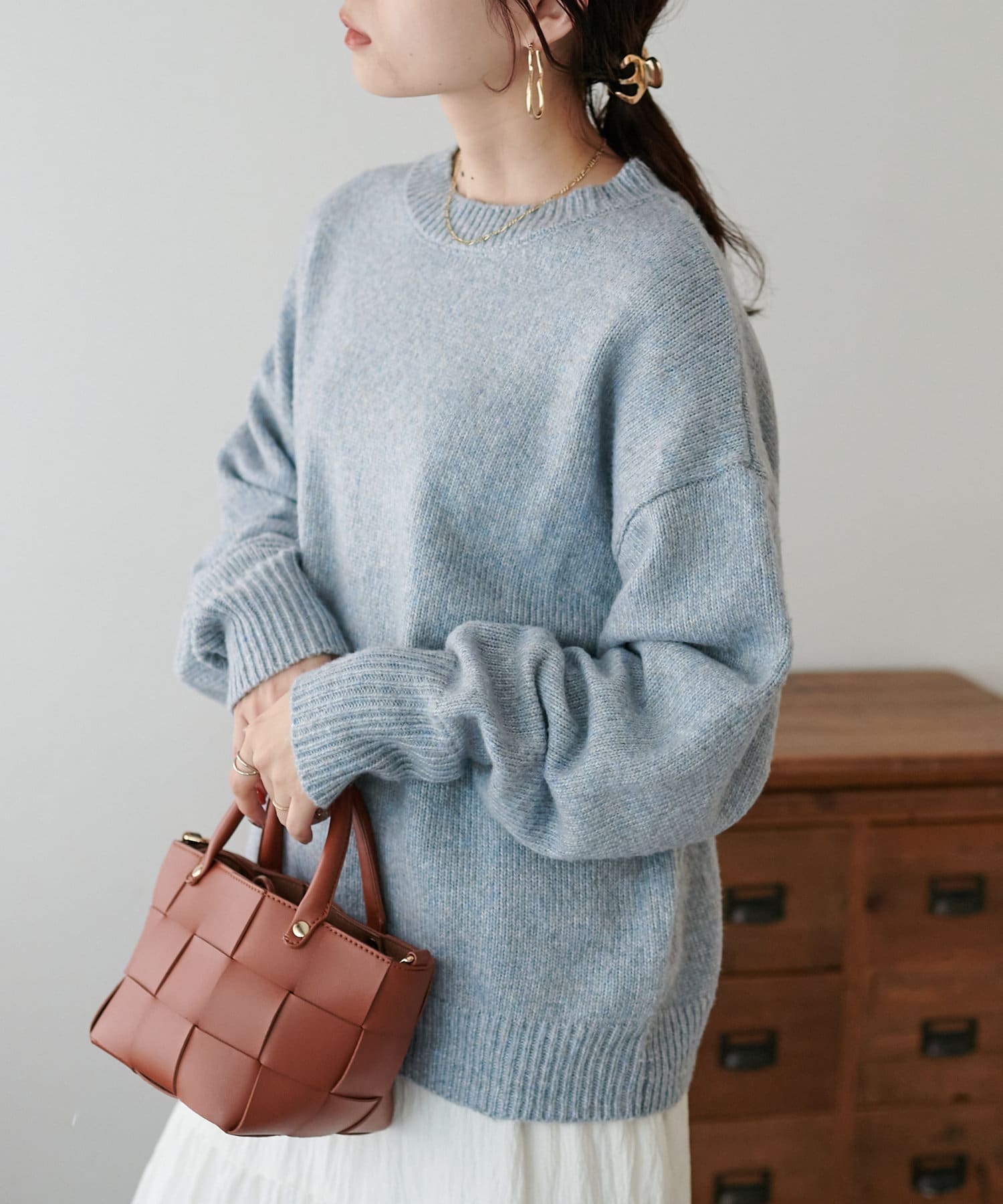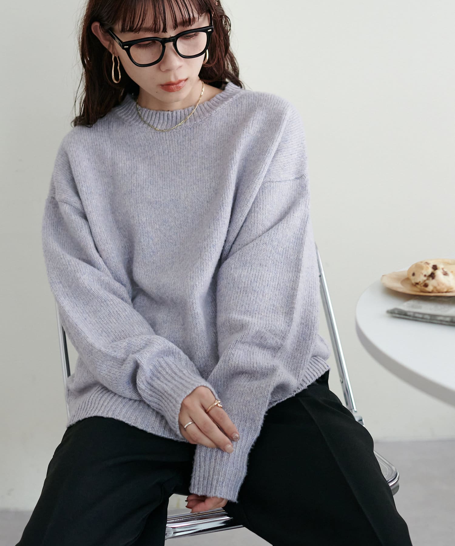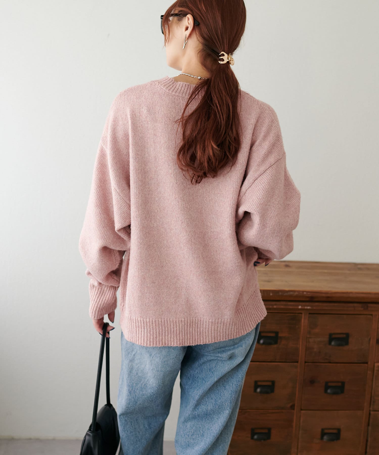 2色以上の糸を使用して作られ、ゆったりとしたシルエットと、長めの袖がこなれた印象のニットプルオーバー。