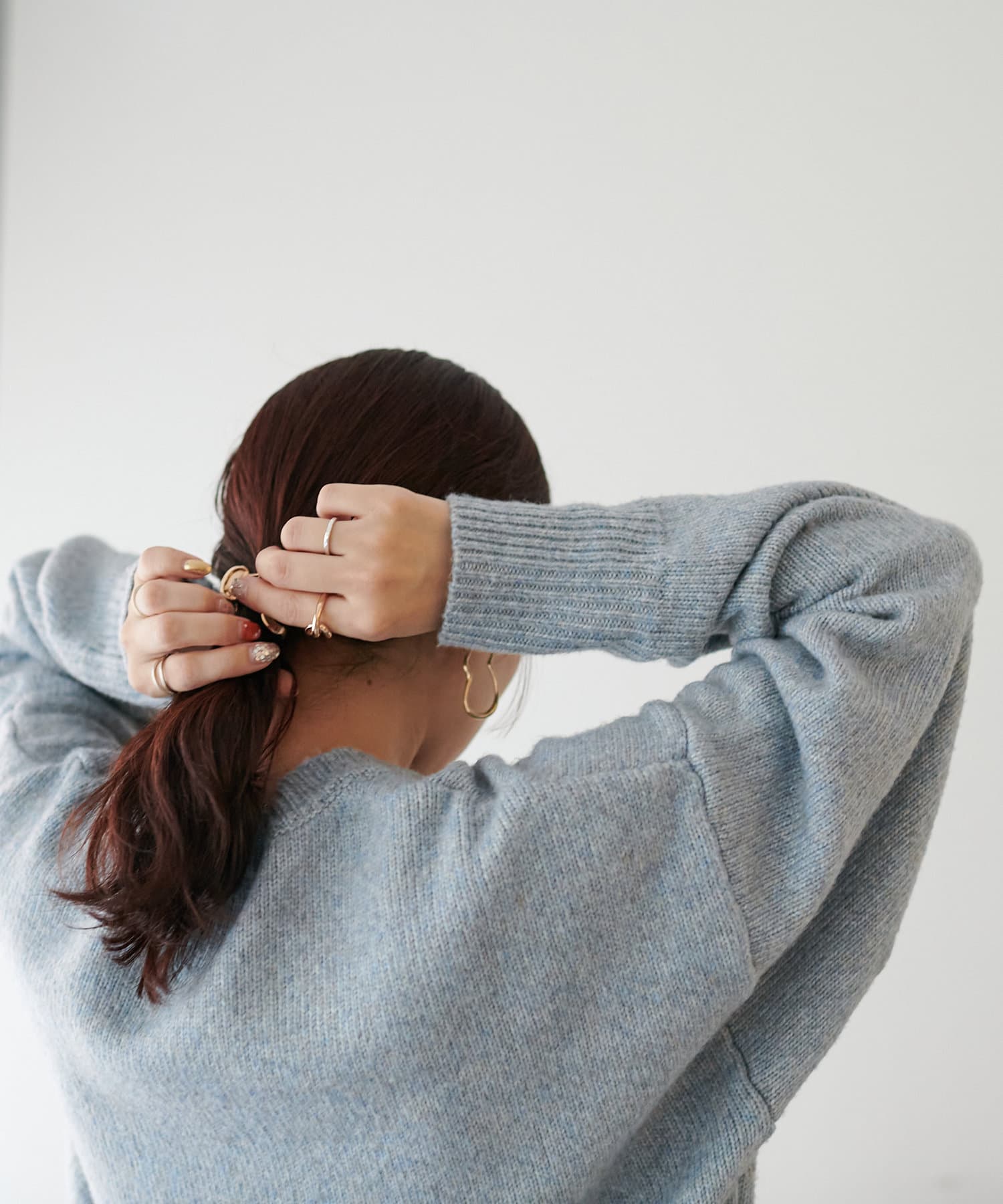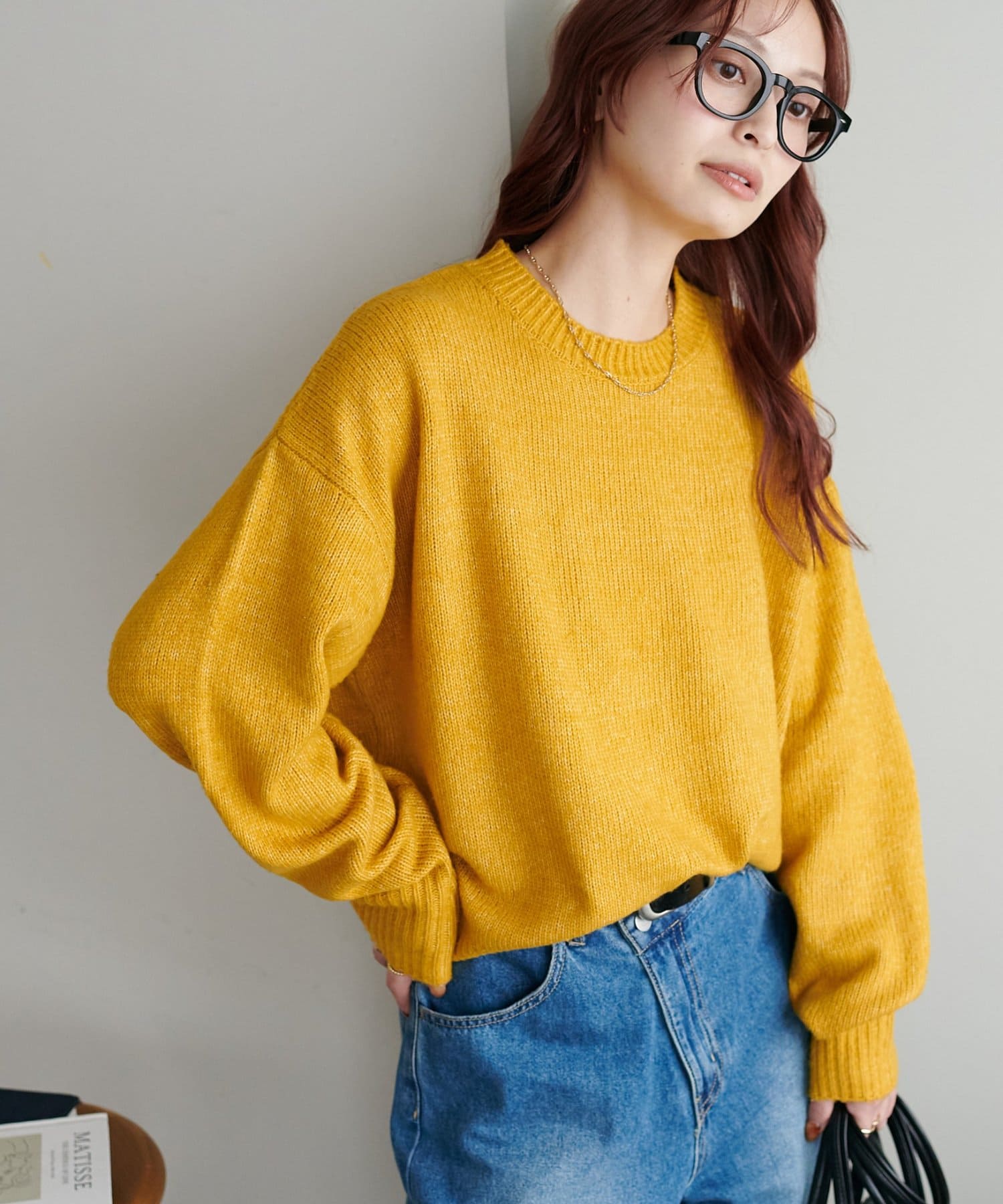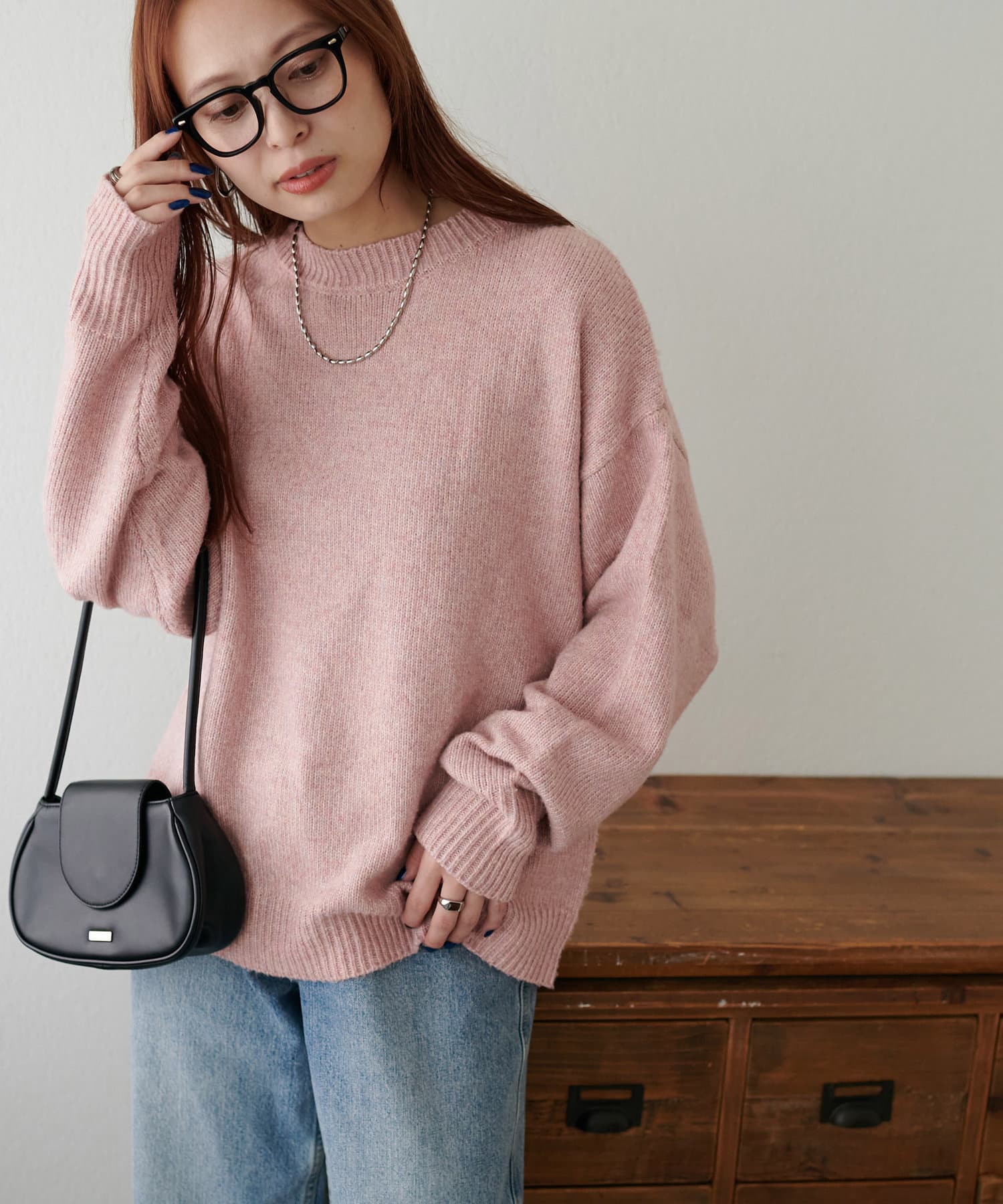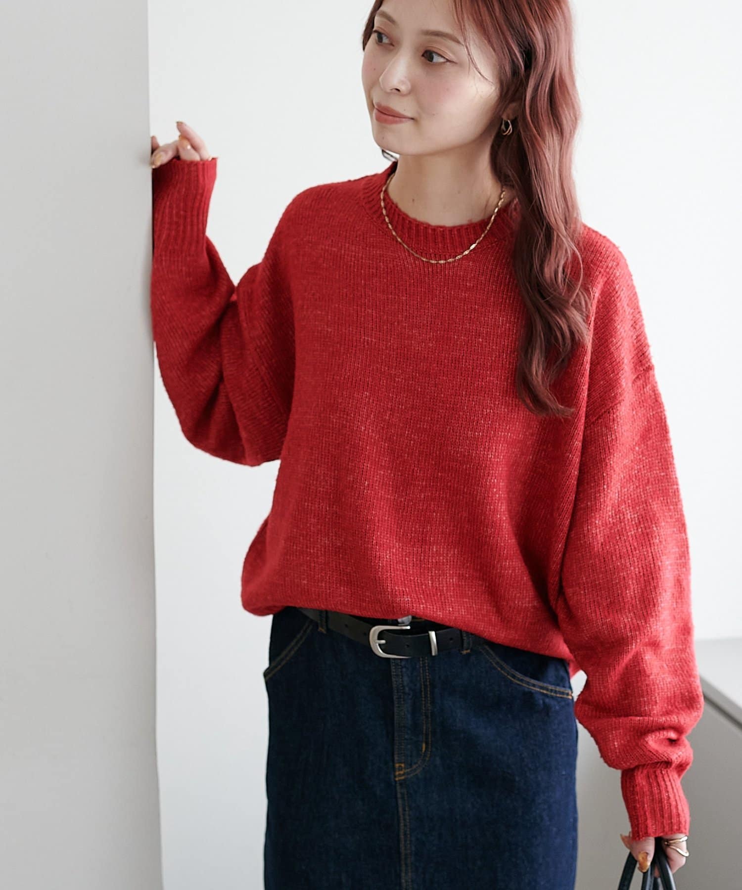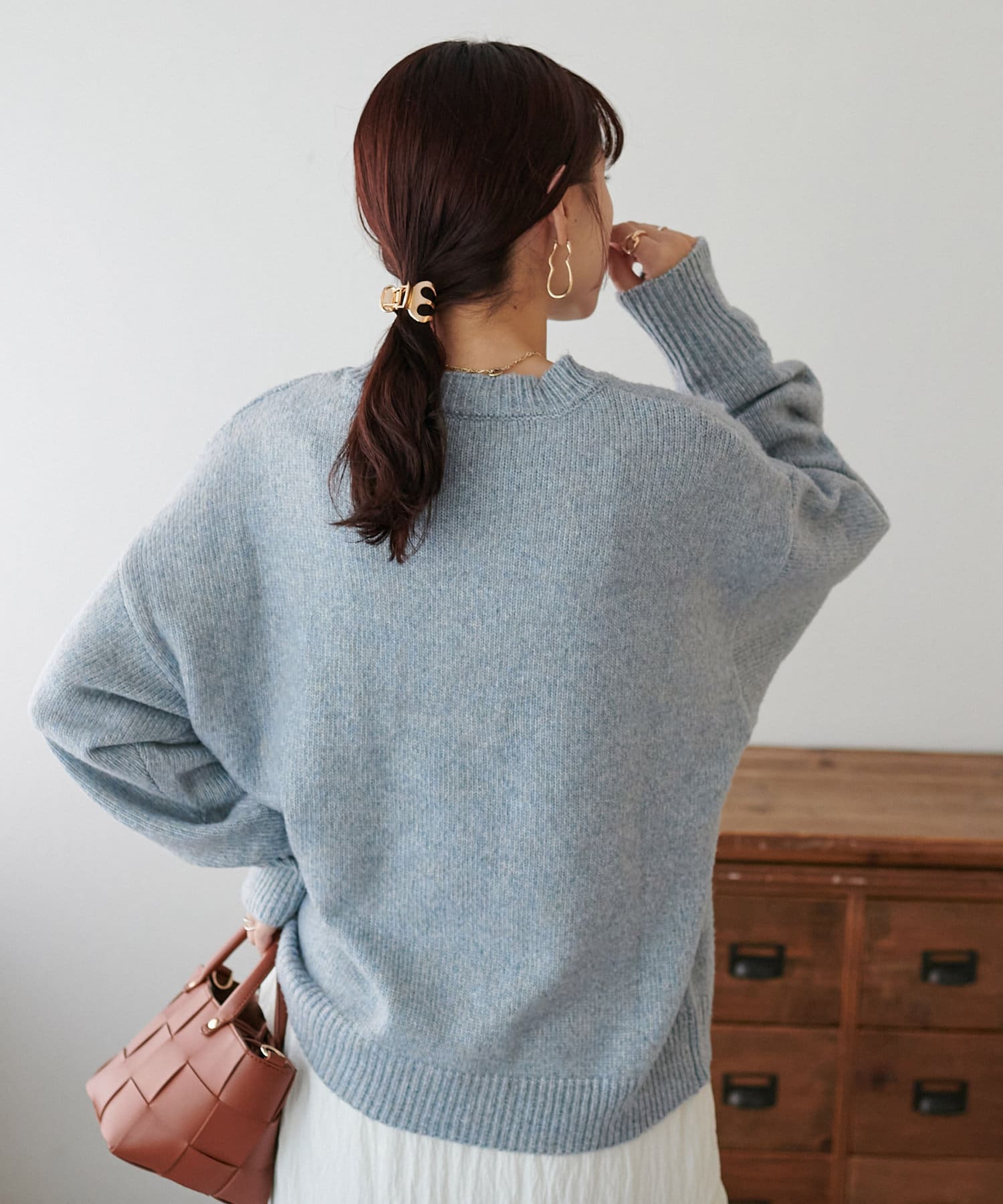 2色以上の糸を使用して作られ、ゆったりとしたシルエットと、長めの袖がこなれた印象のニットプルオーバー。