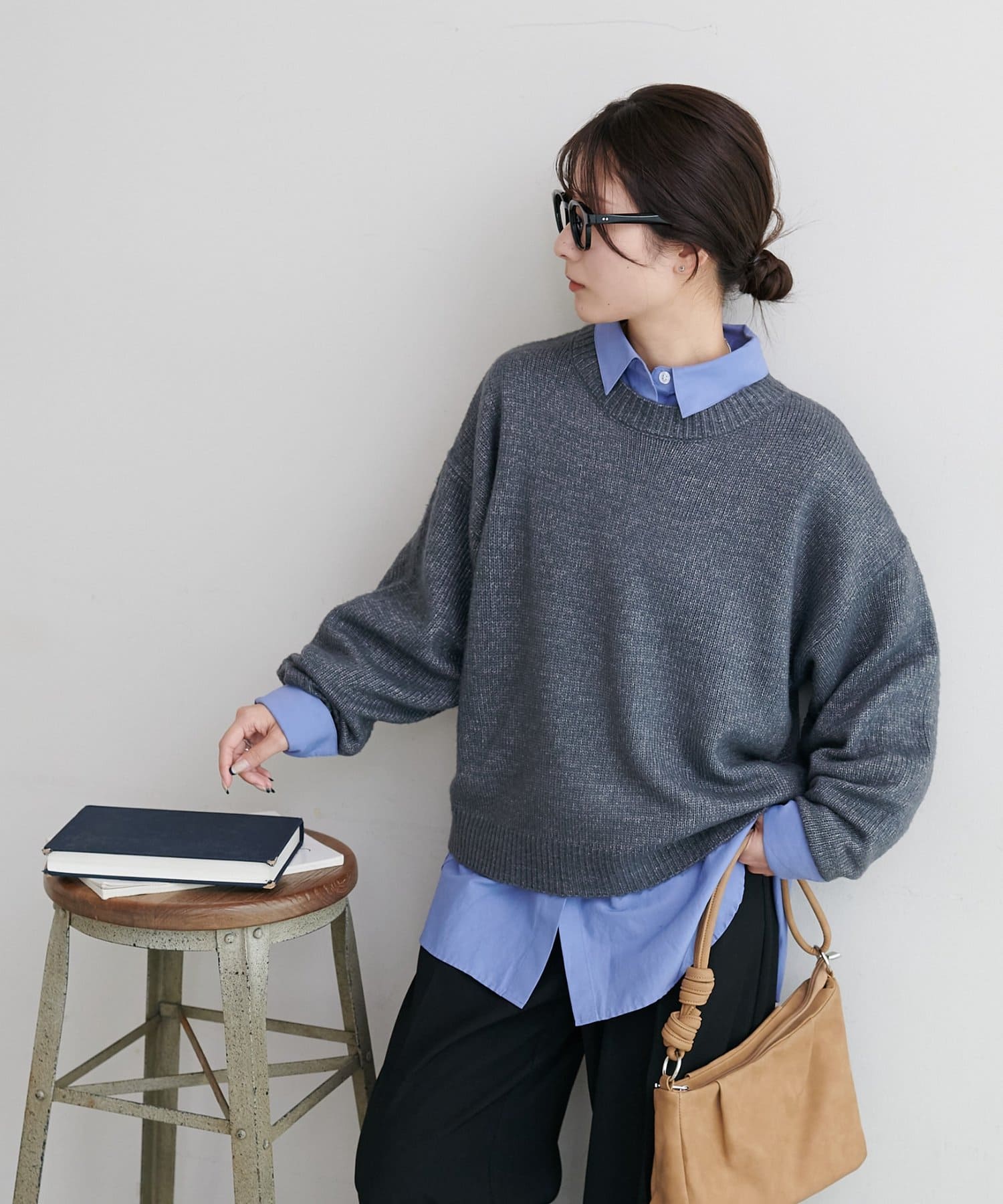 襟付きシャツをインしたり、上からアウターを羽織ってももたつかないサイズ感で、オン・オフ問わず着回せます。