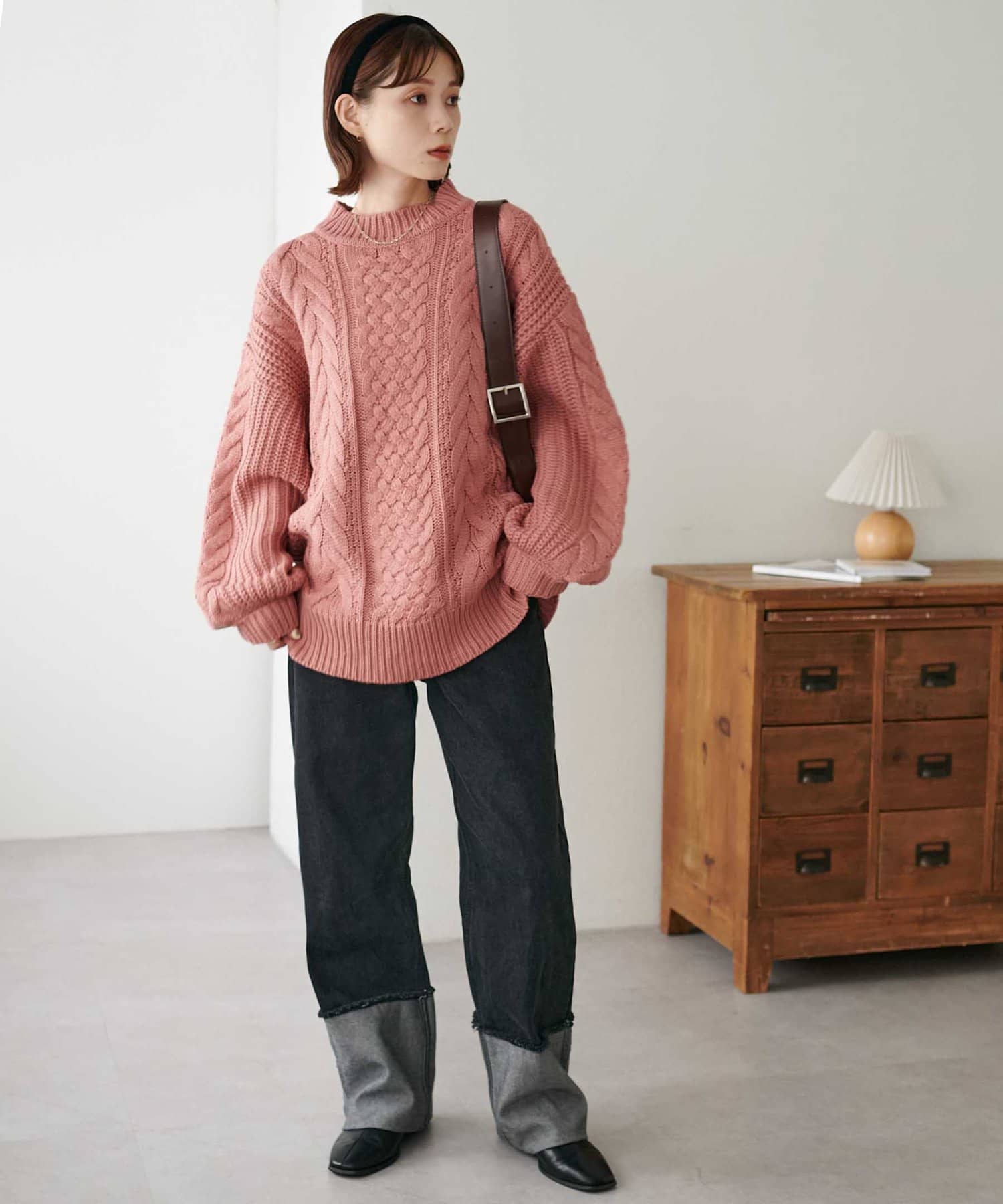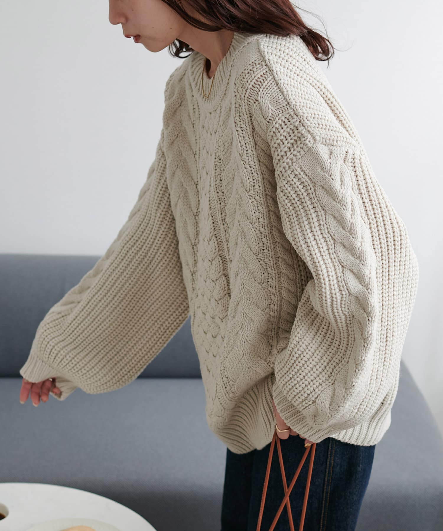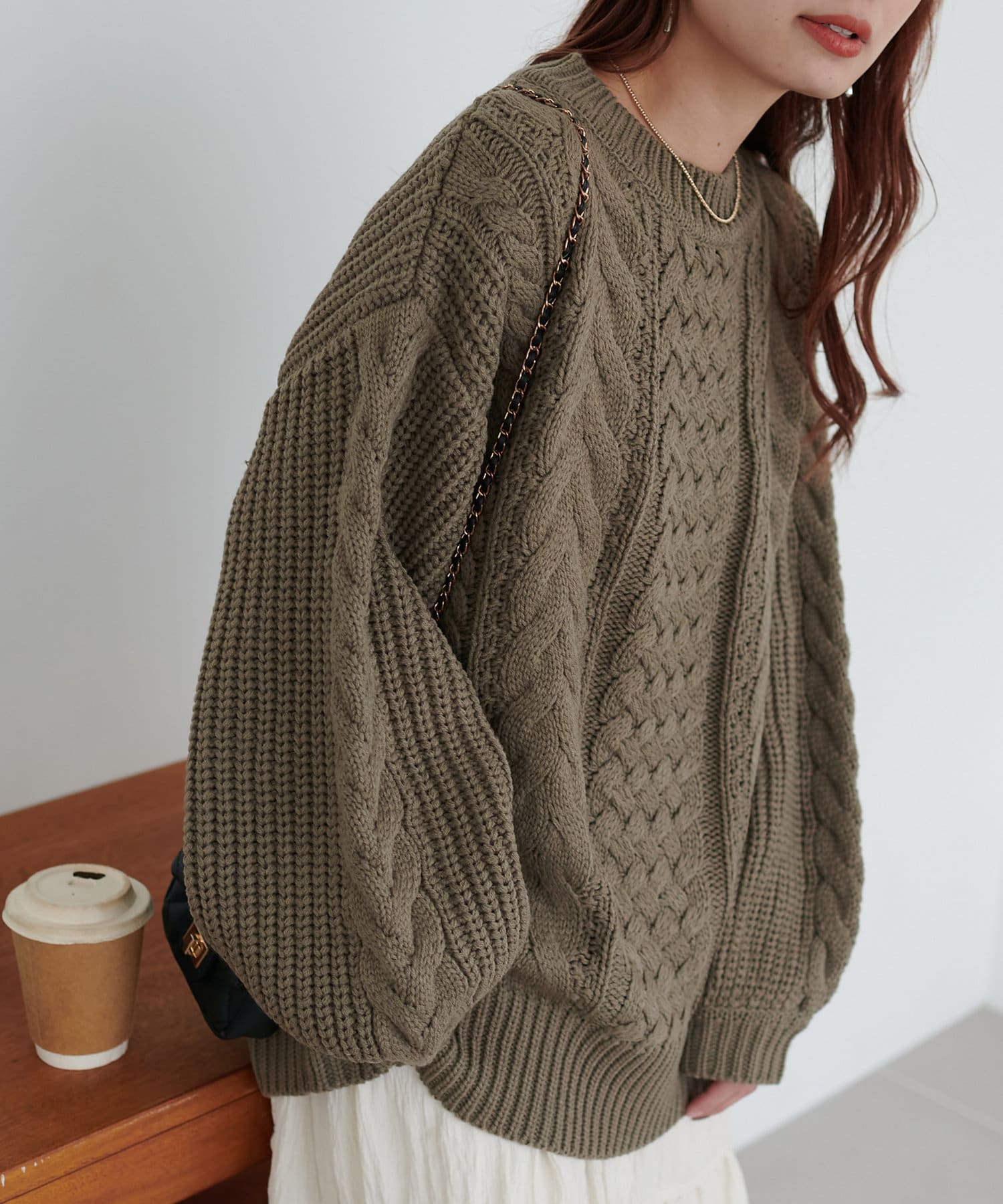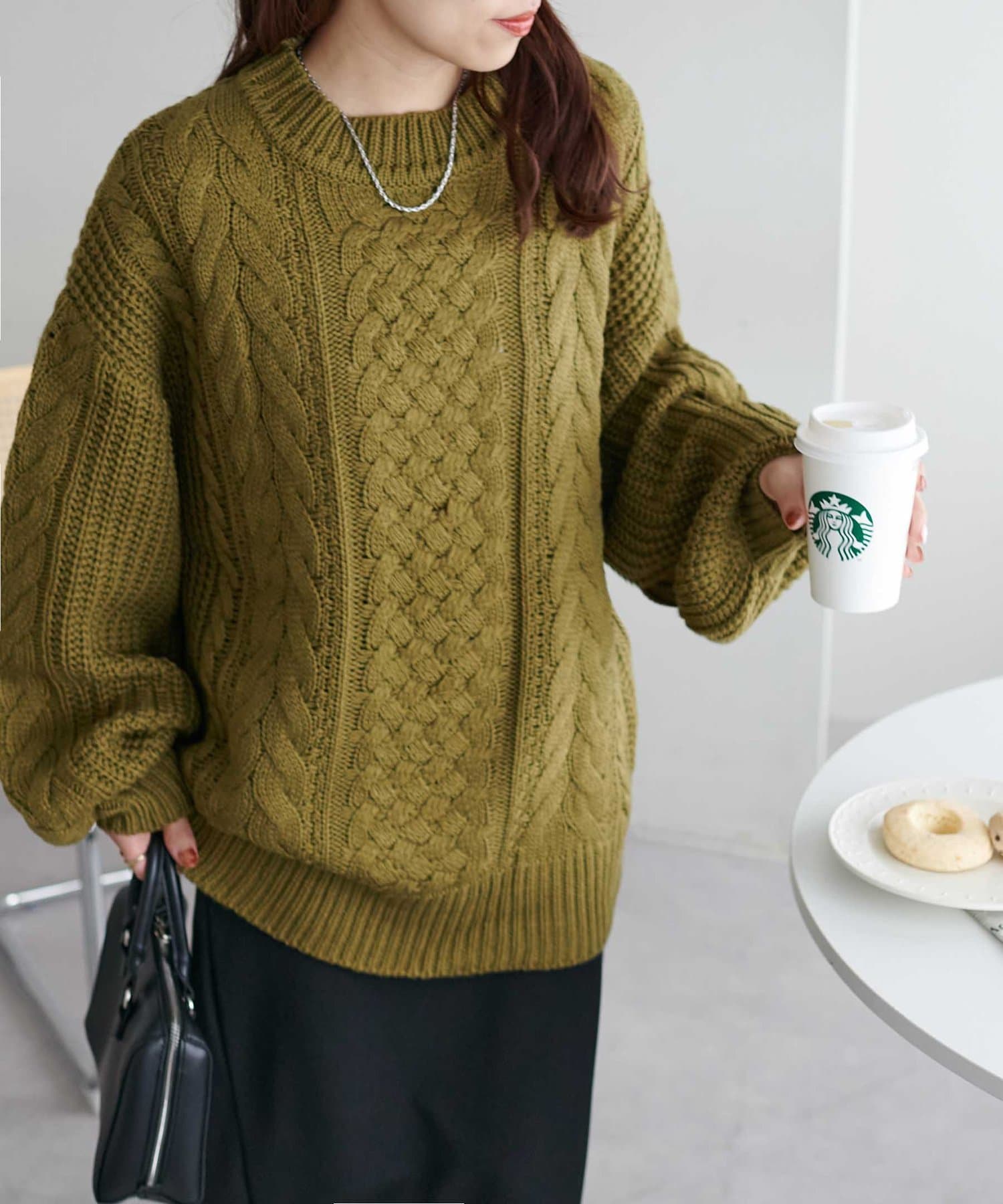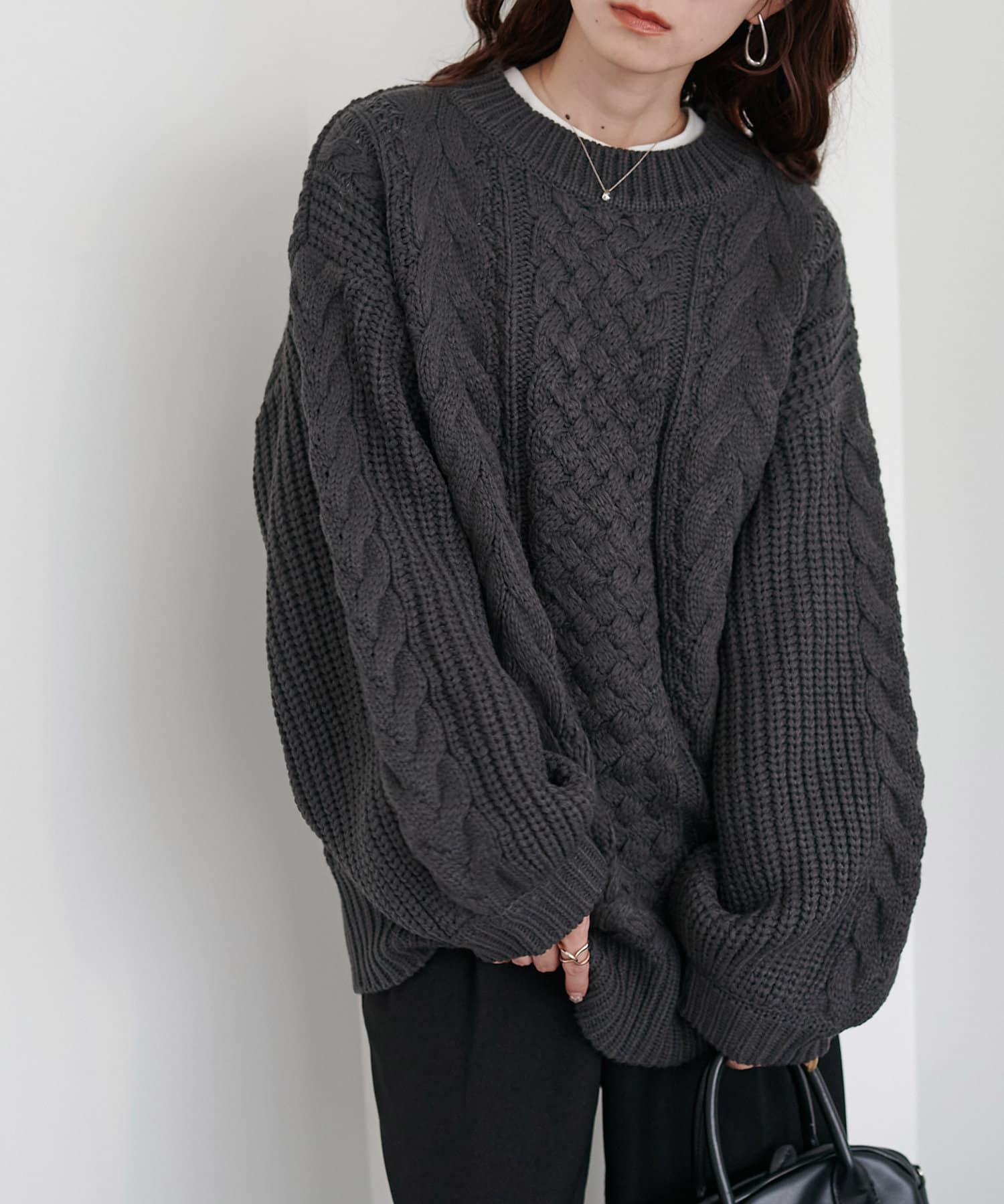 オーバーサイズでたぽっとしたシルエットが可愛いケーブルルーズニット。
