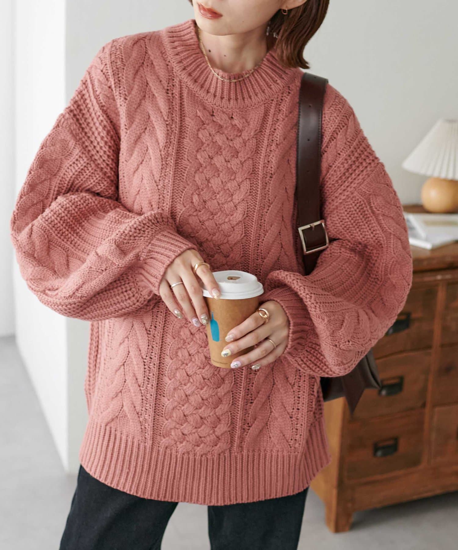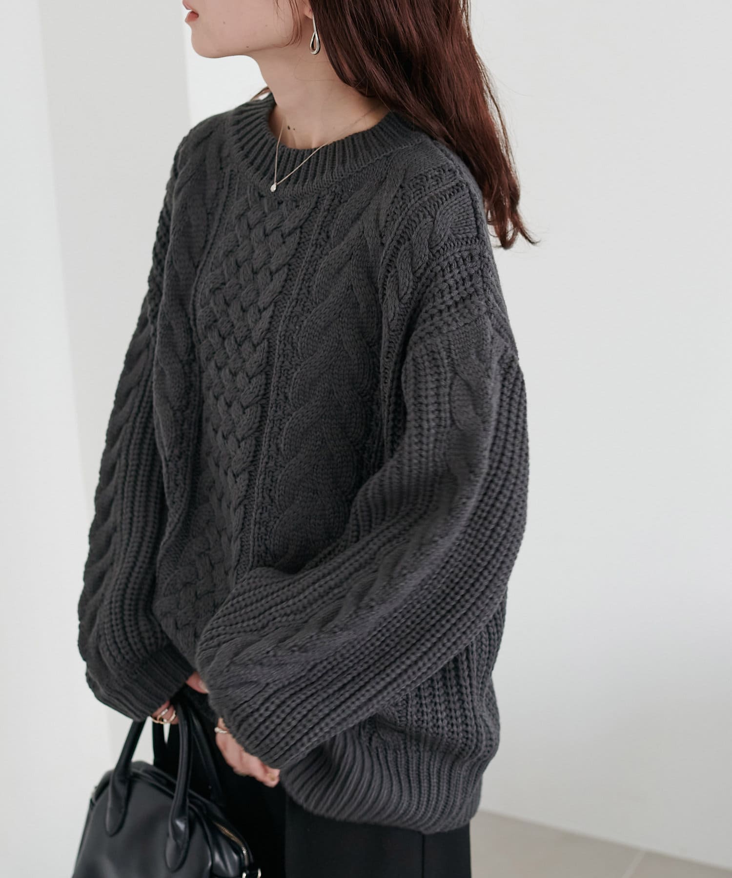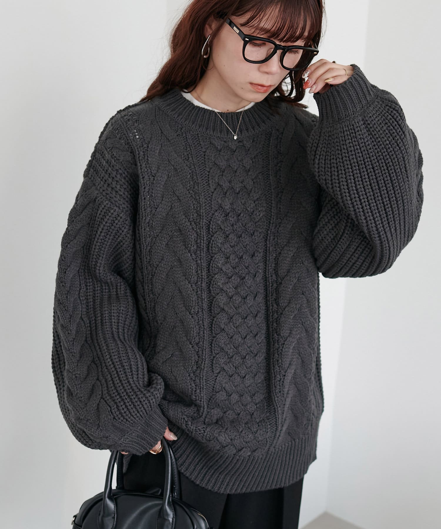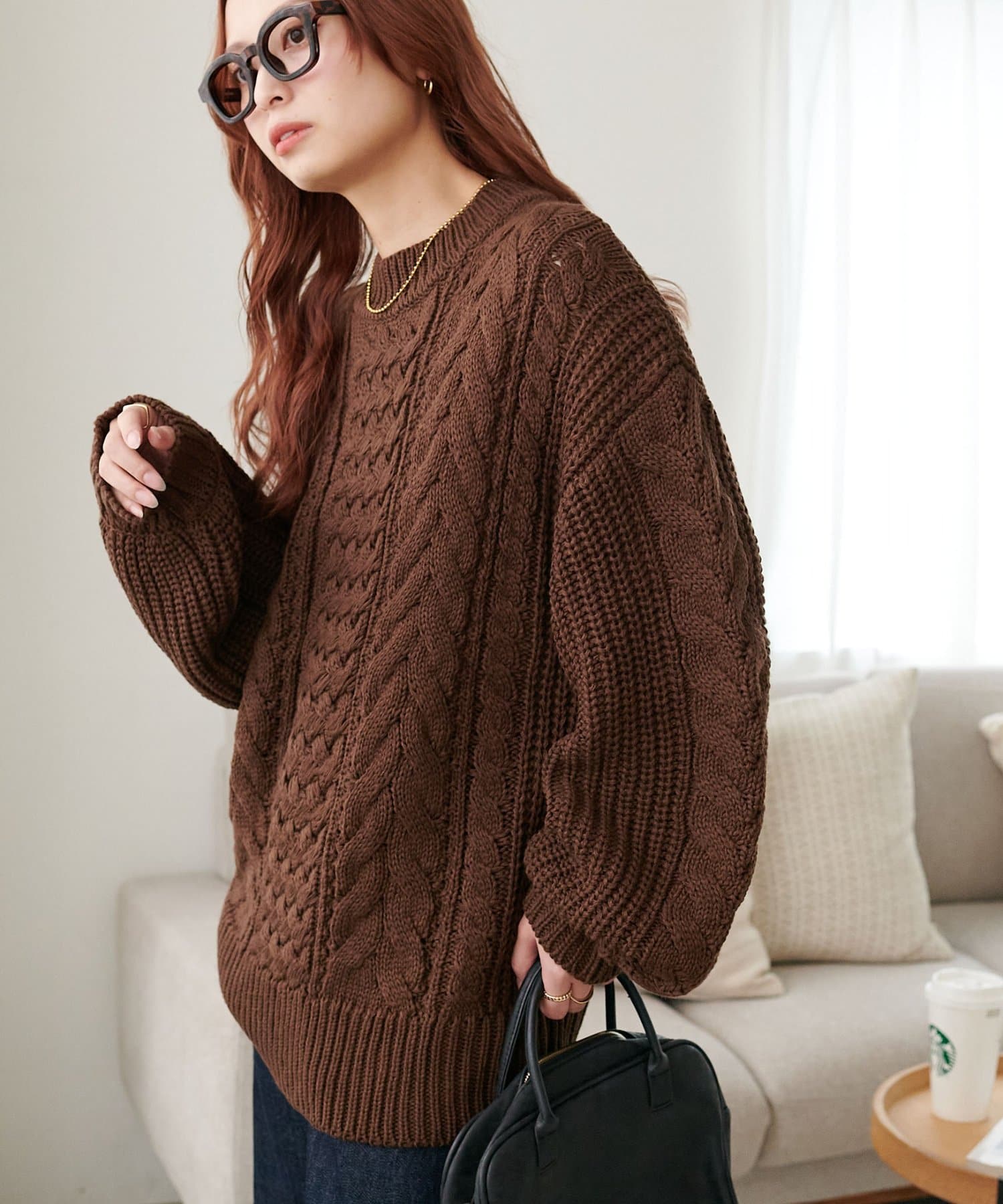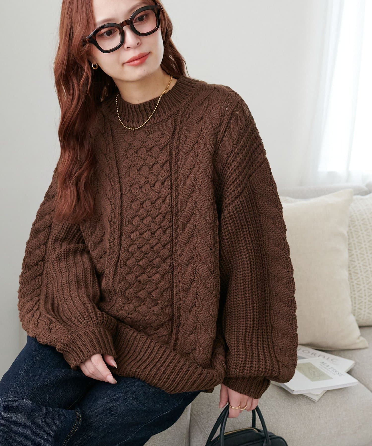 オーバーサイズでたぽっとしたシルエットが可愛いケーブルルーズニット。