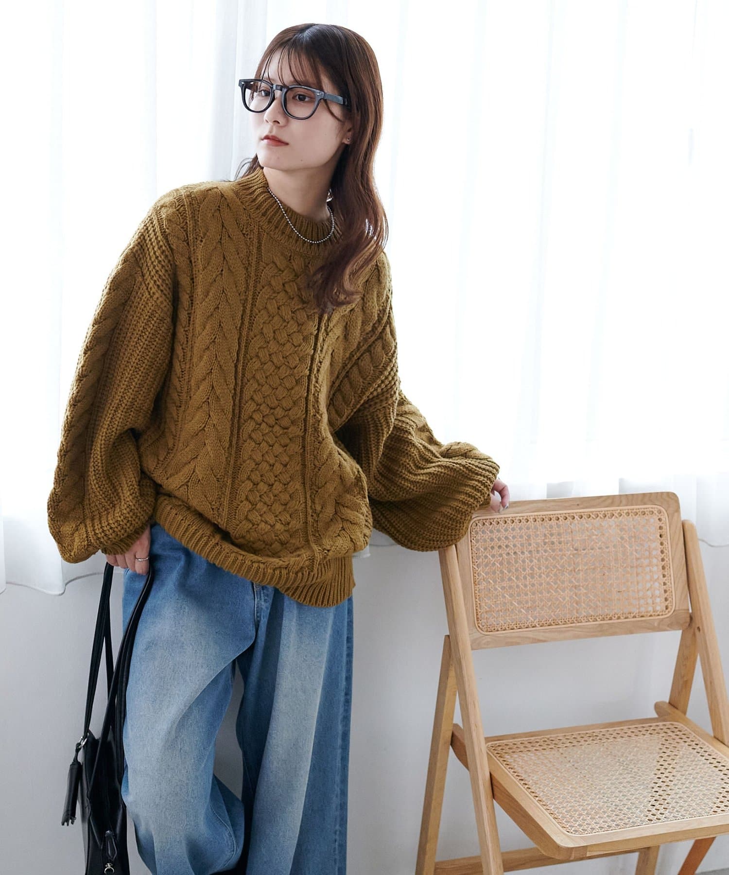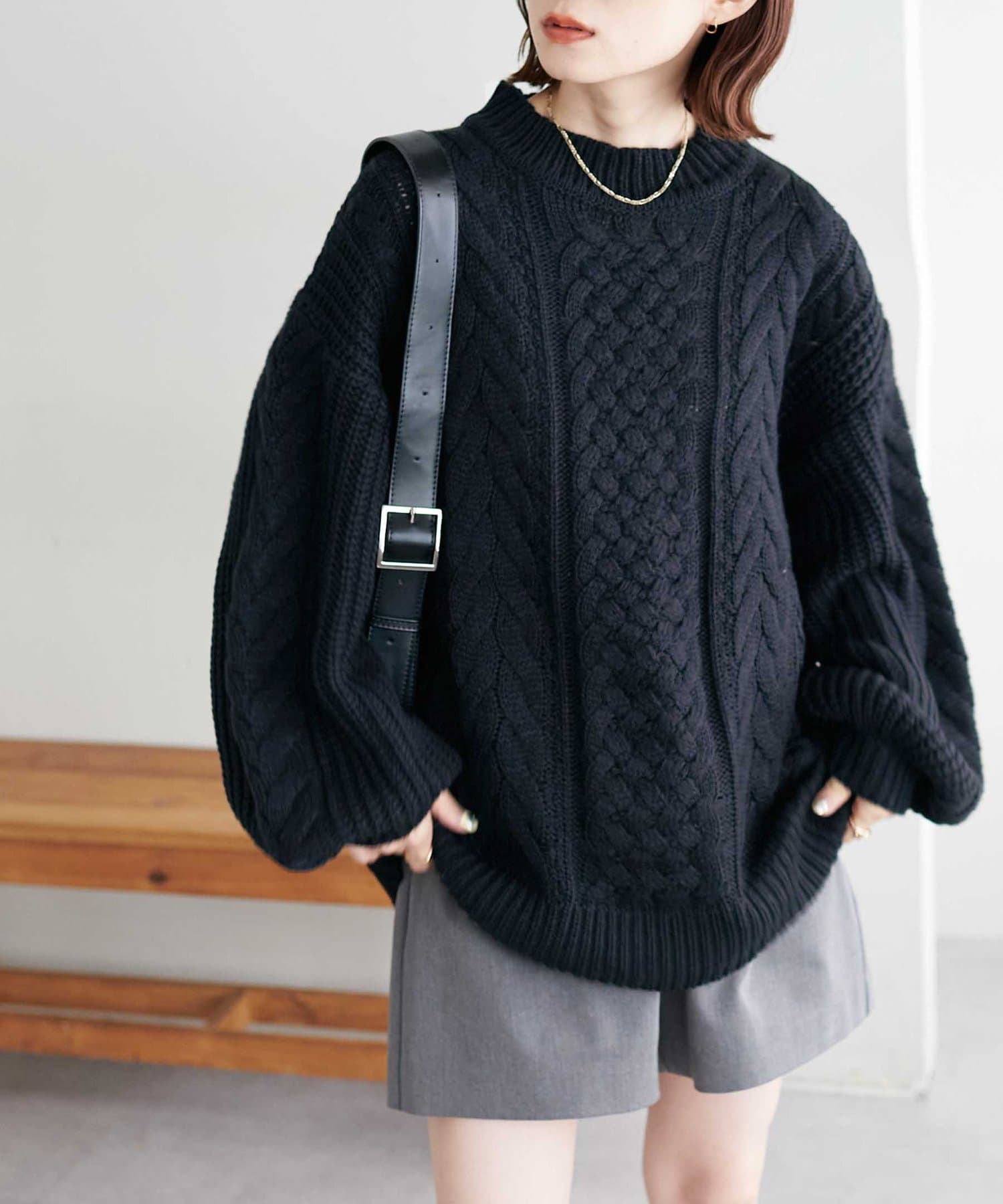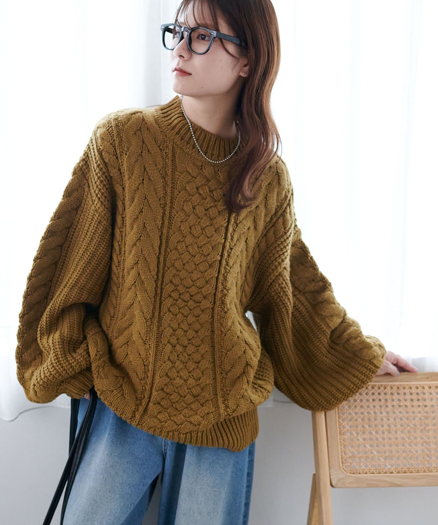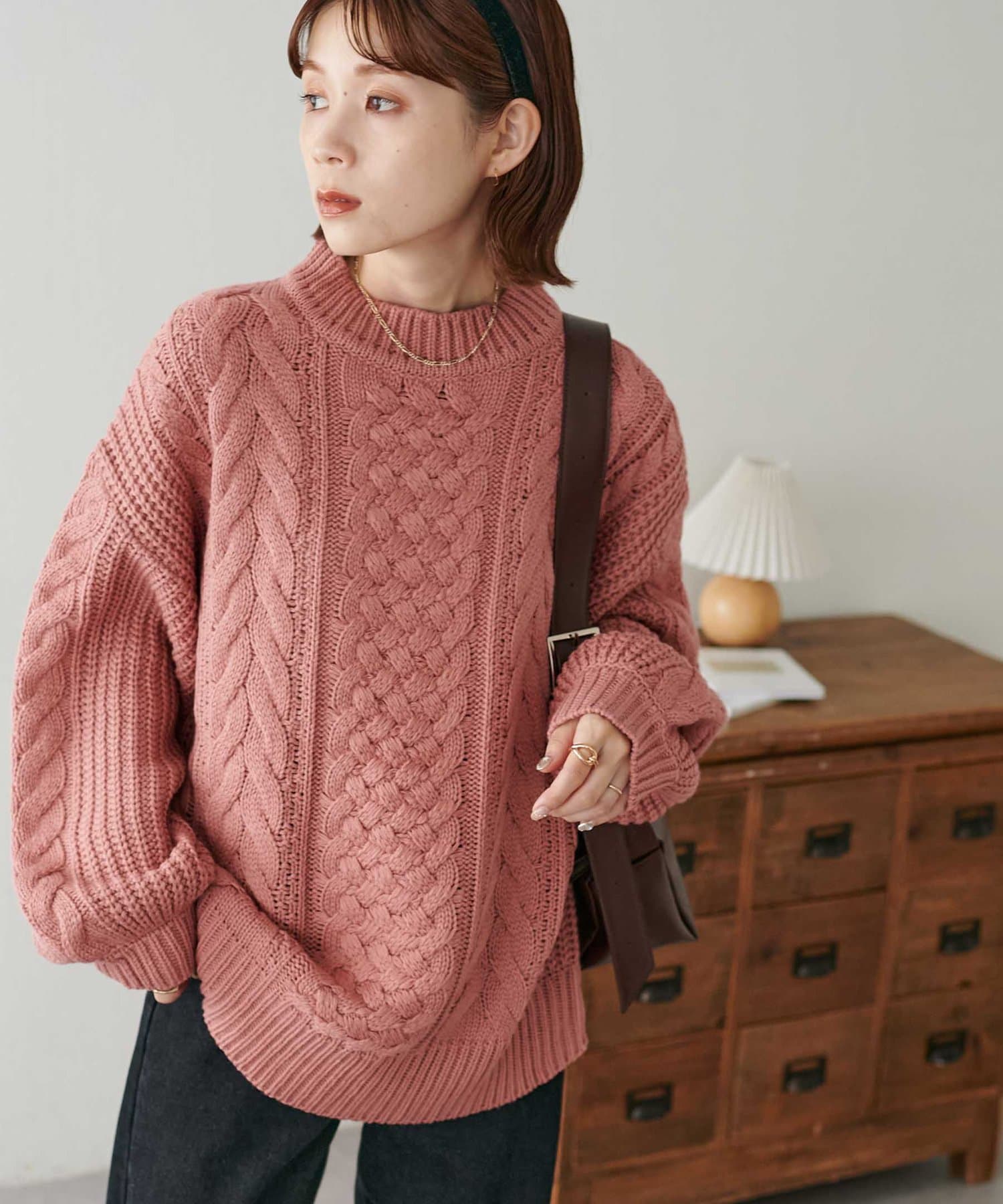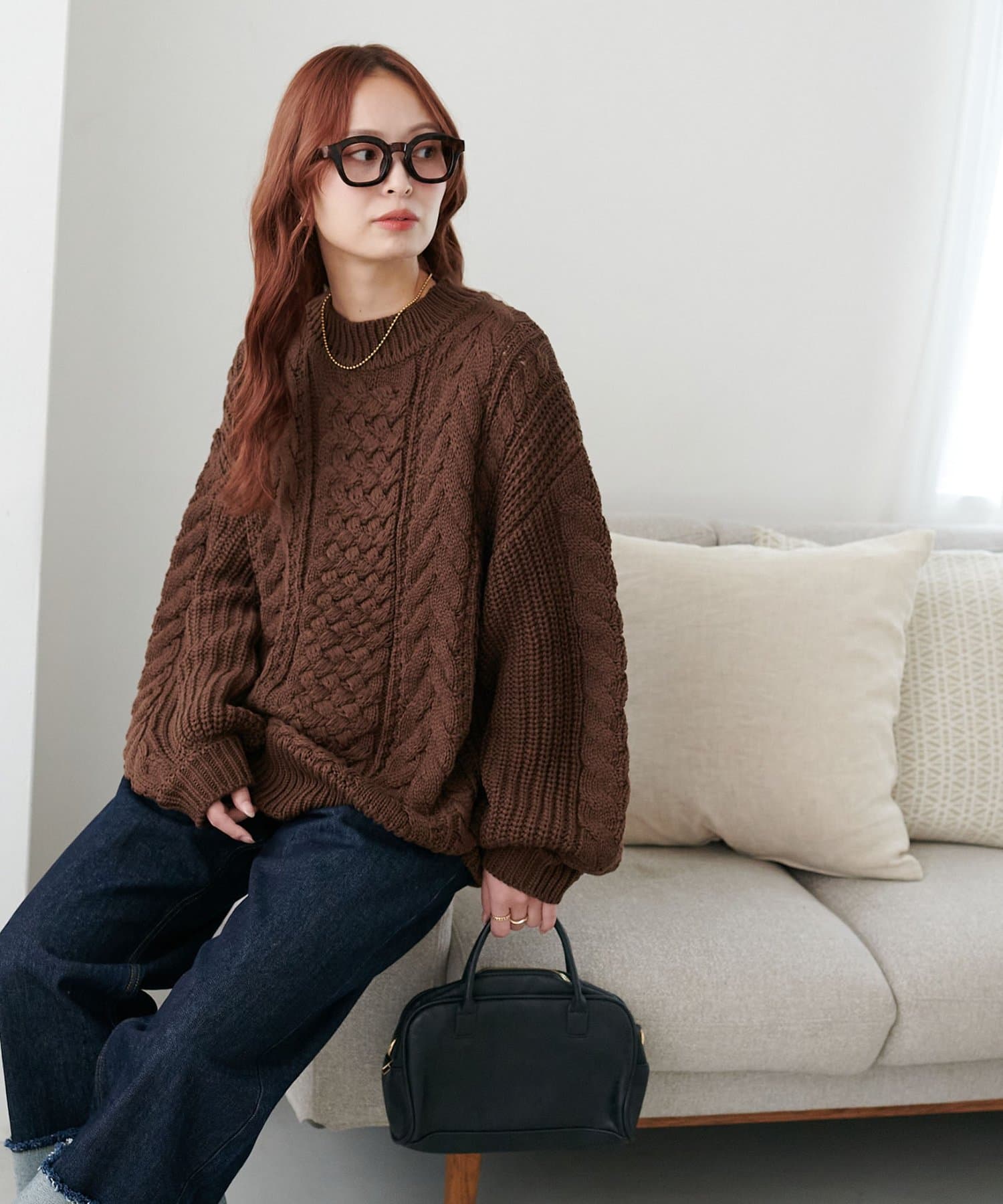 オーバーサイズでたぽっとしたシルエットが可愛いケーブルルーズニット。