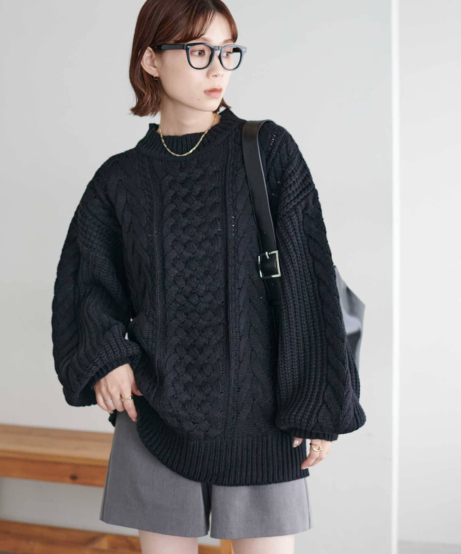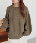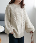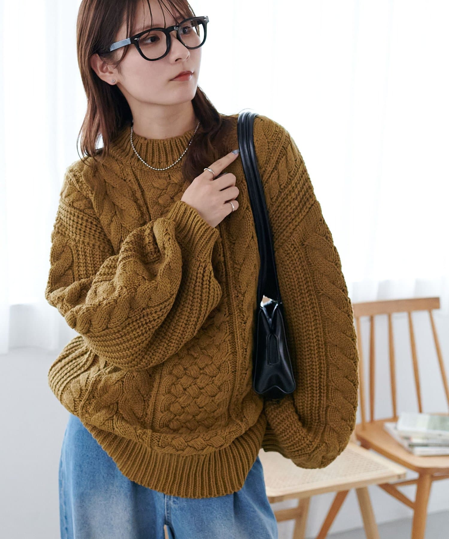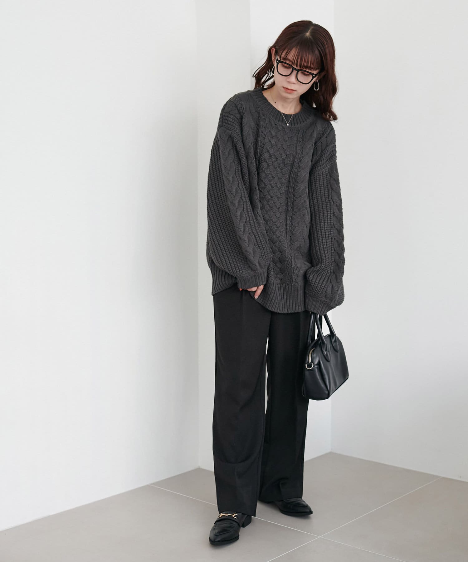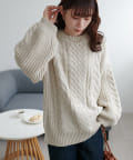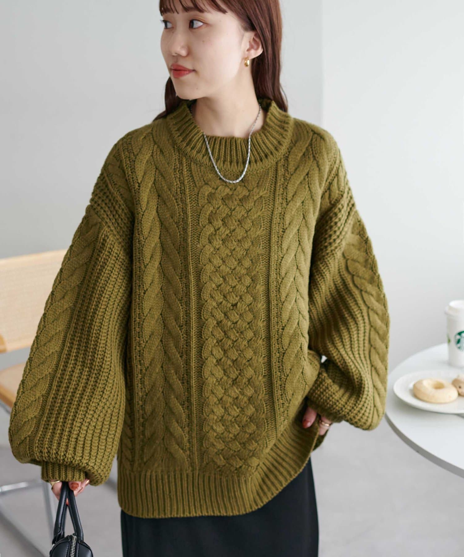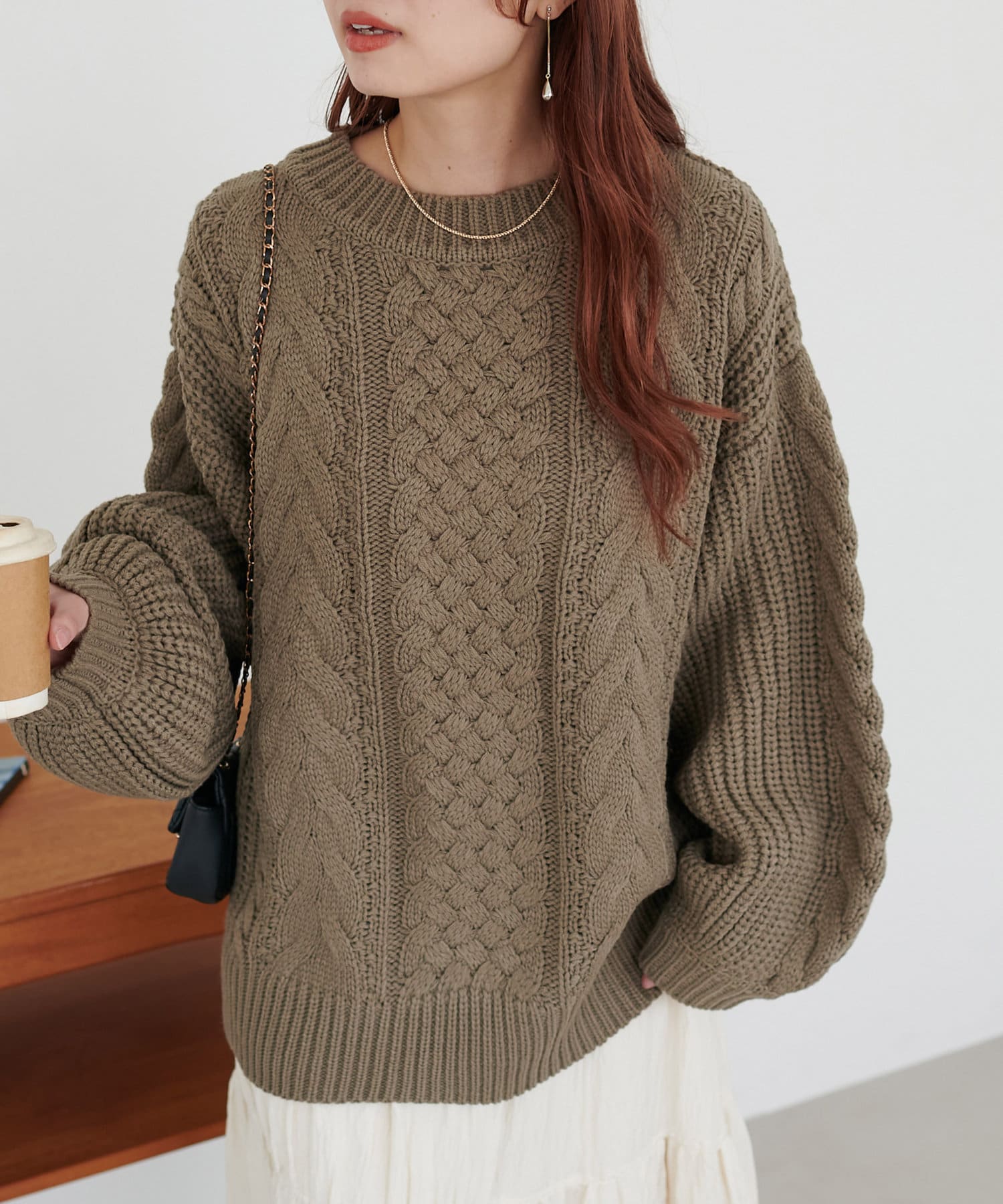オーバーサイズでたぽっとしたシルエットが可愛いケーブルルーズニット。