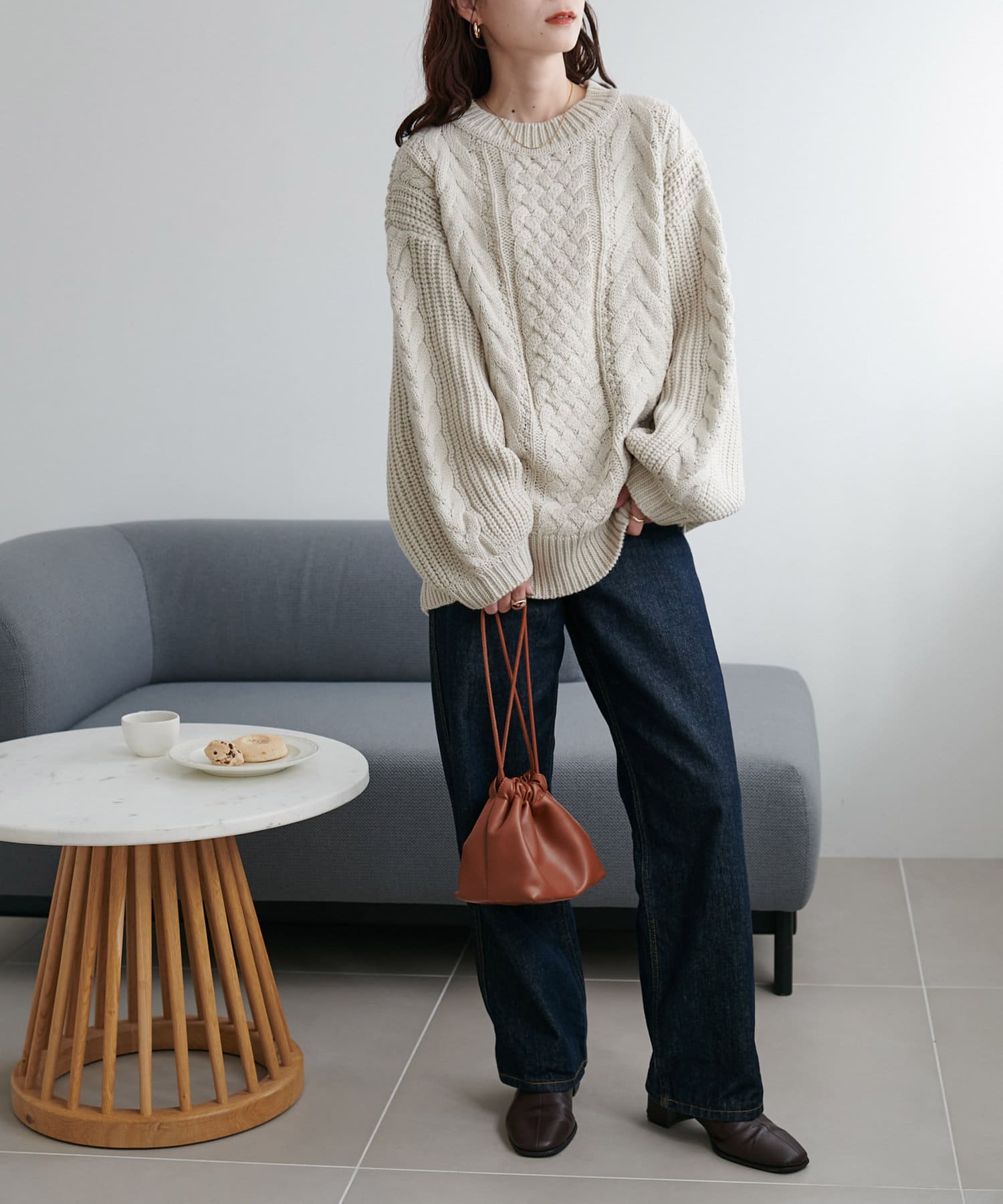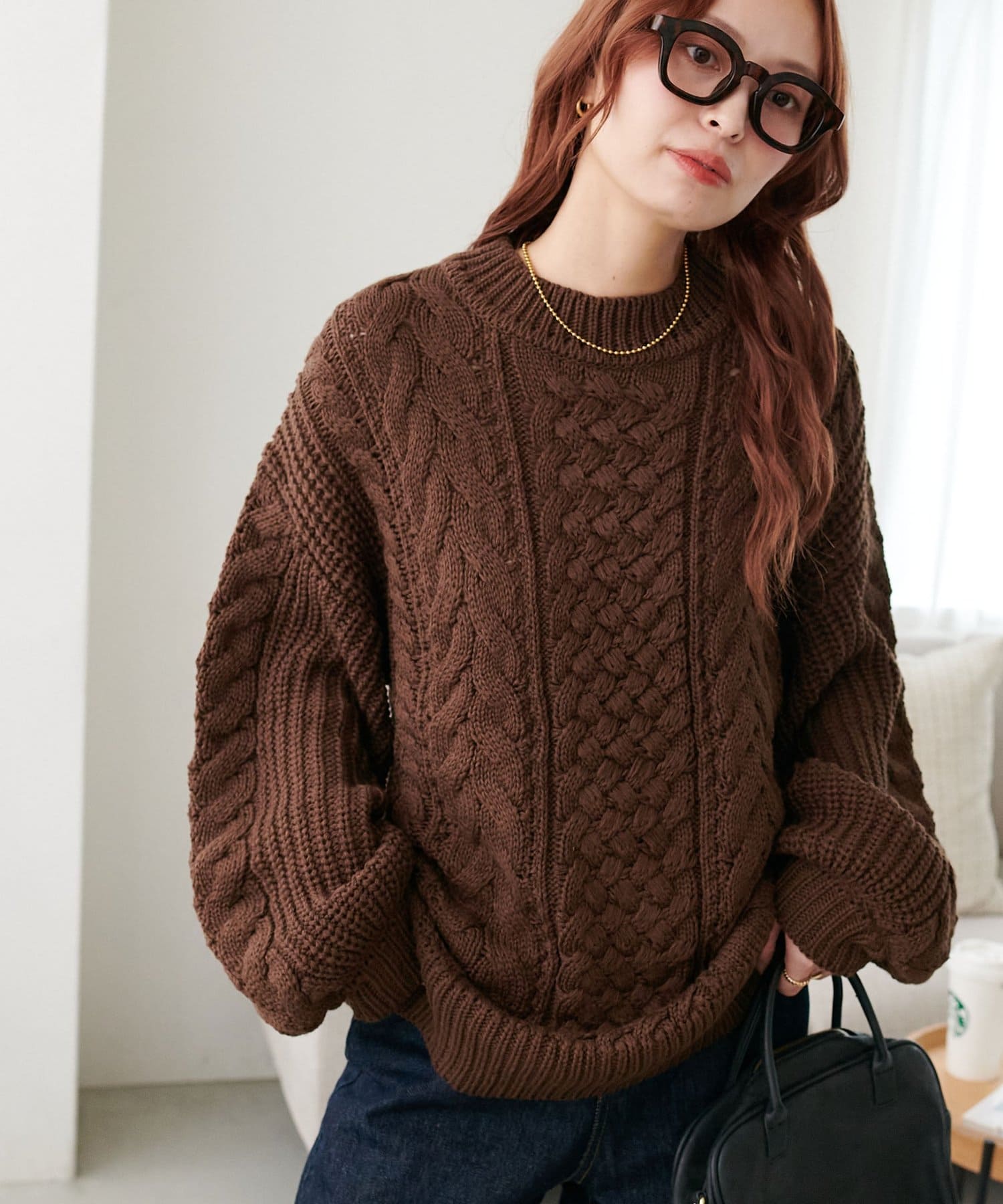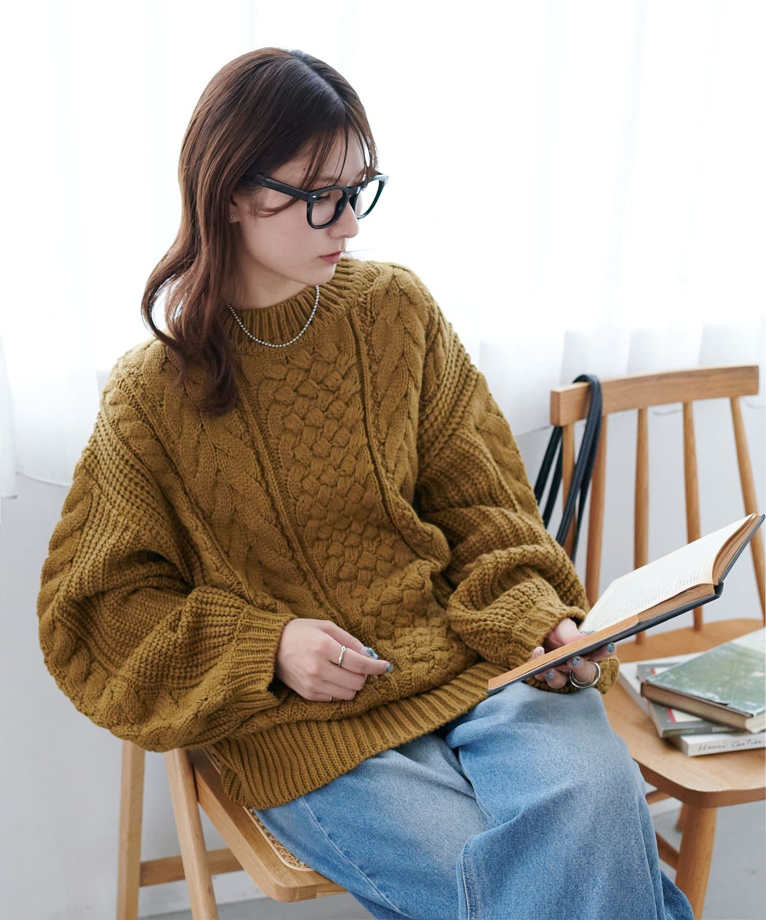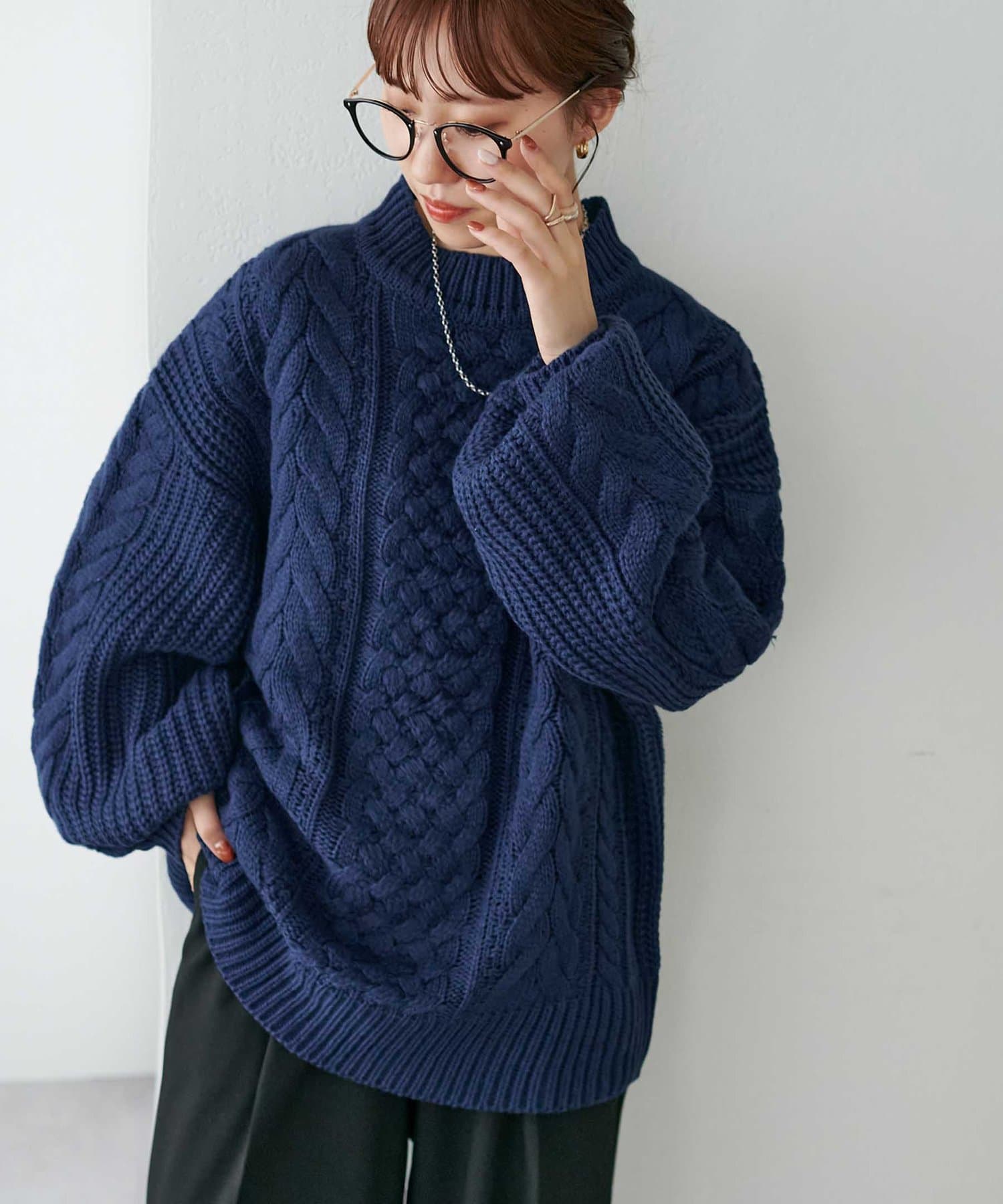 オーバーサイズでたぽっとしたシルエットが可愛いケーブルルーズニット。