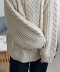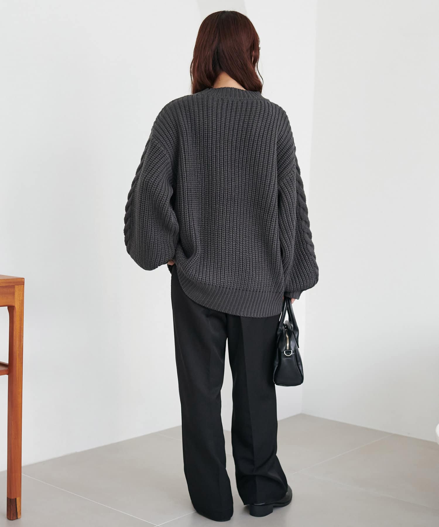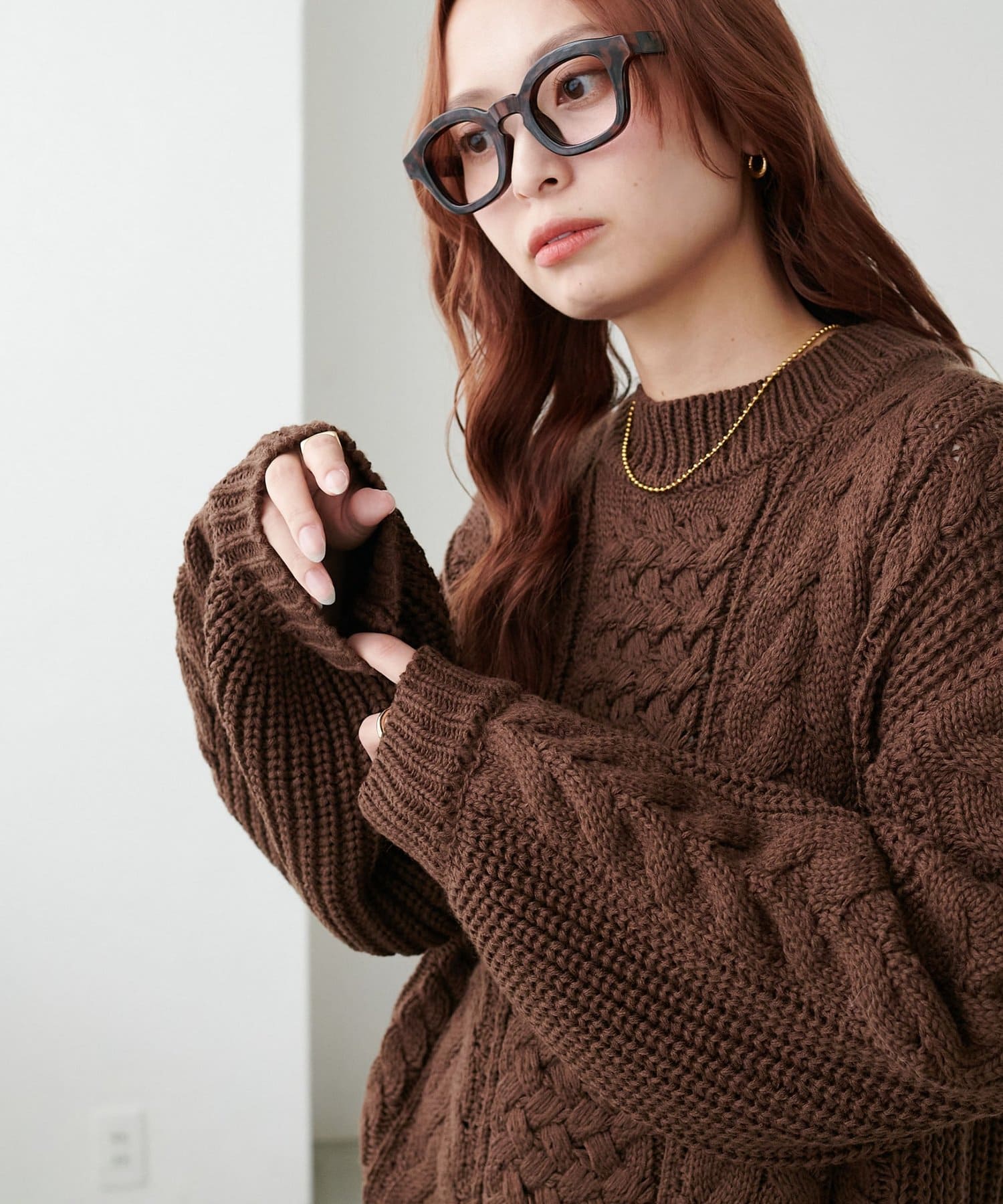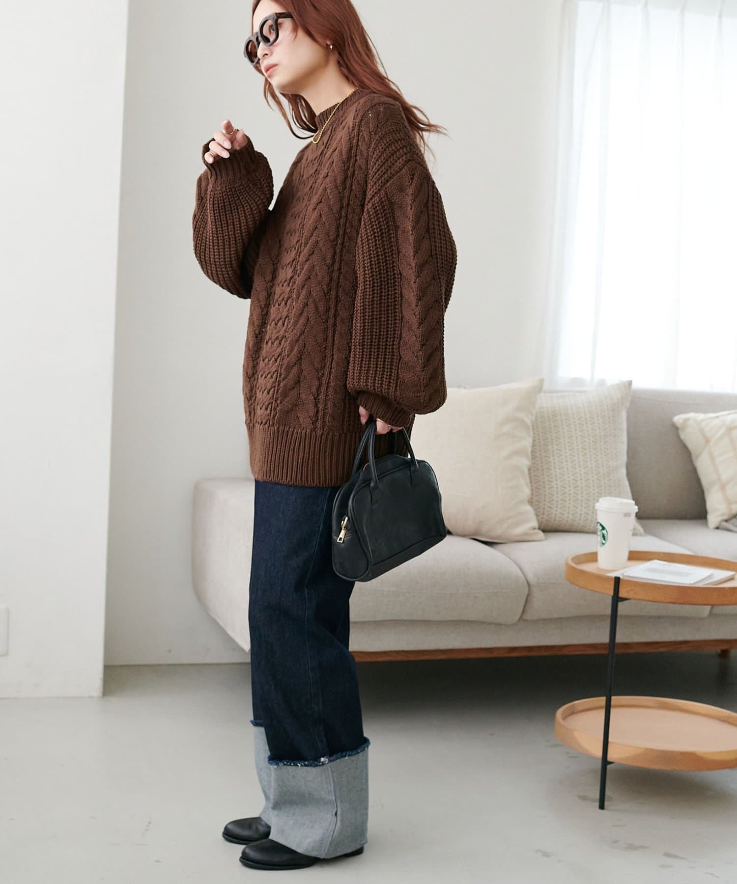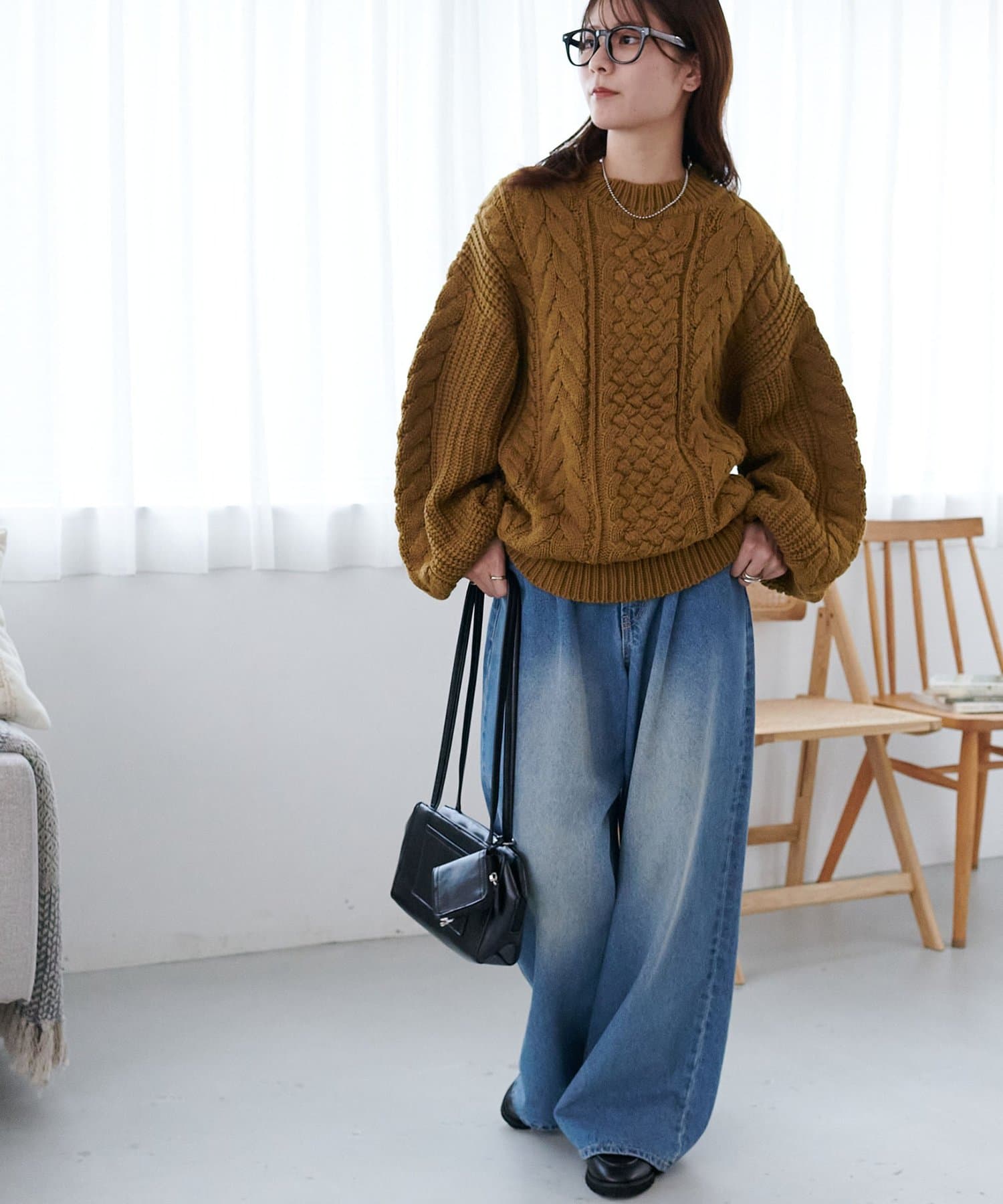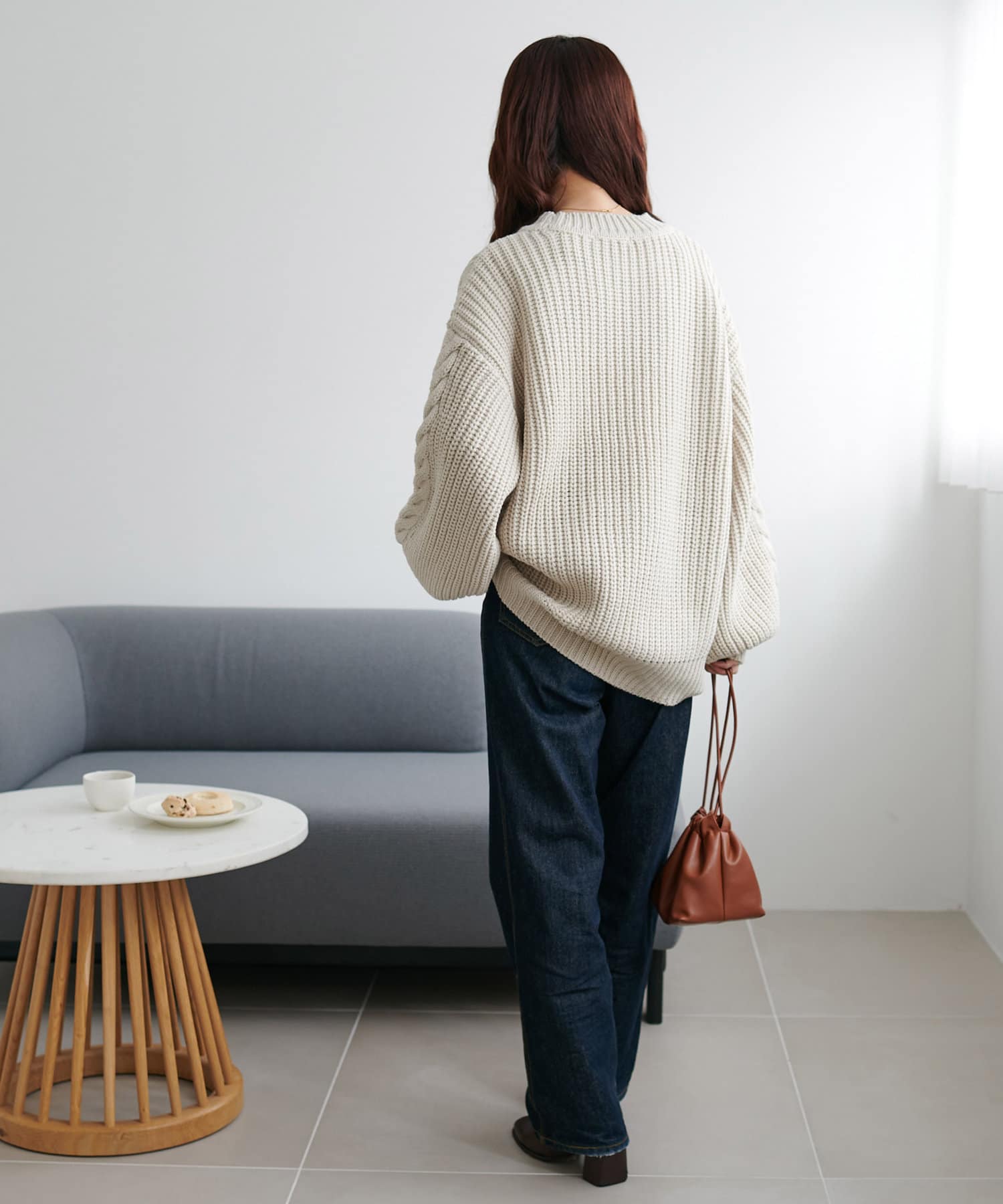 オーバーサイズでたぽっとしたシルエットが可愛いケーブルルーズニット。
