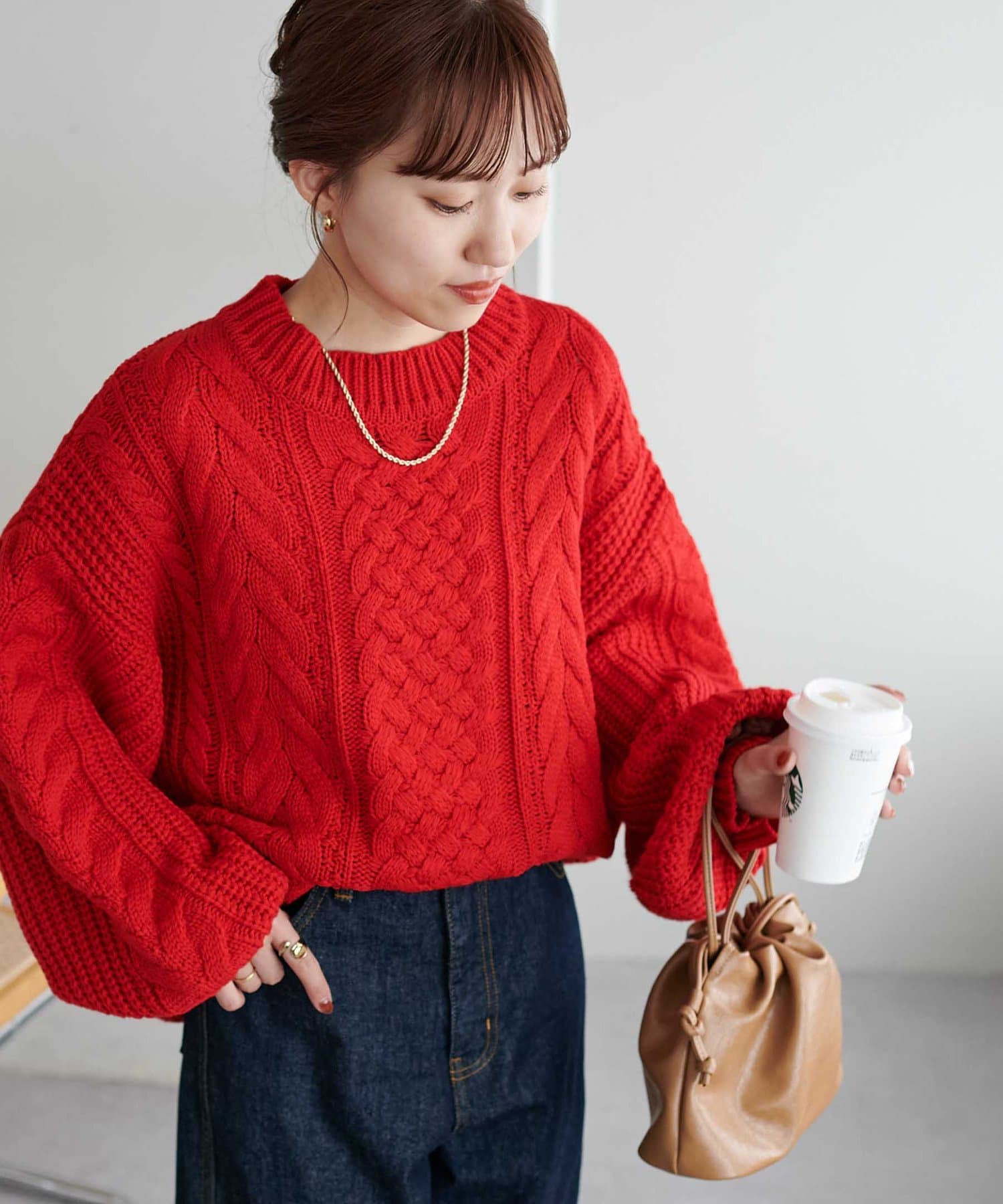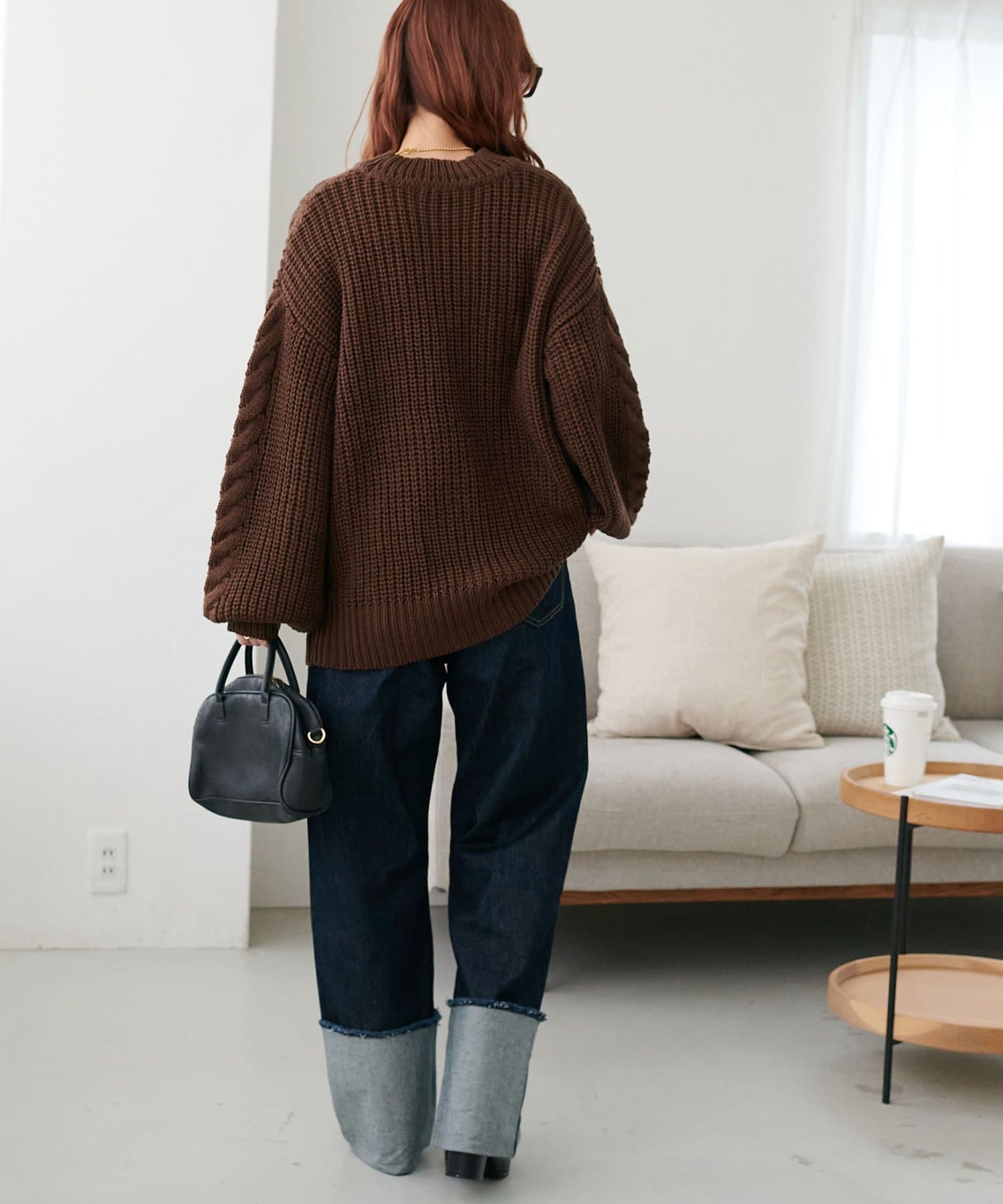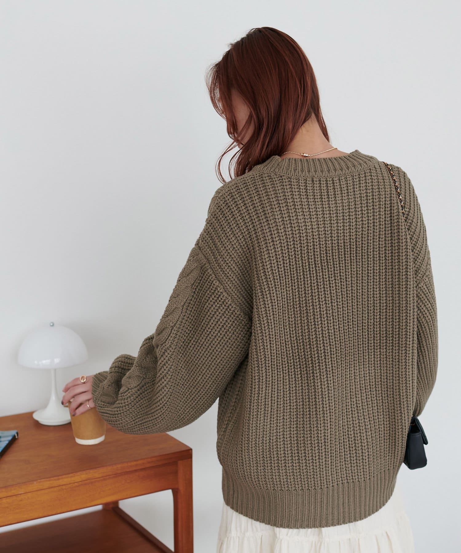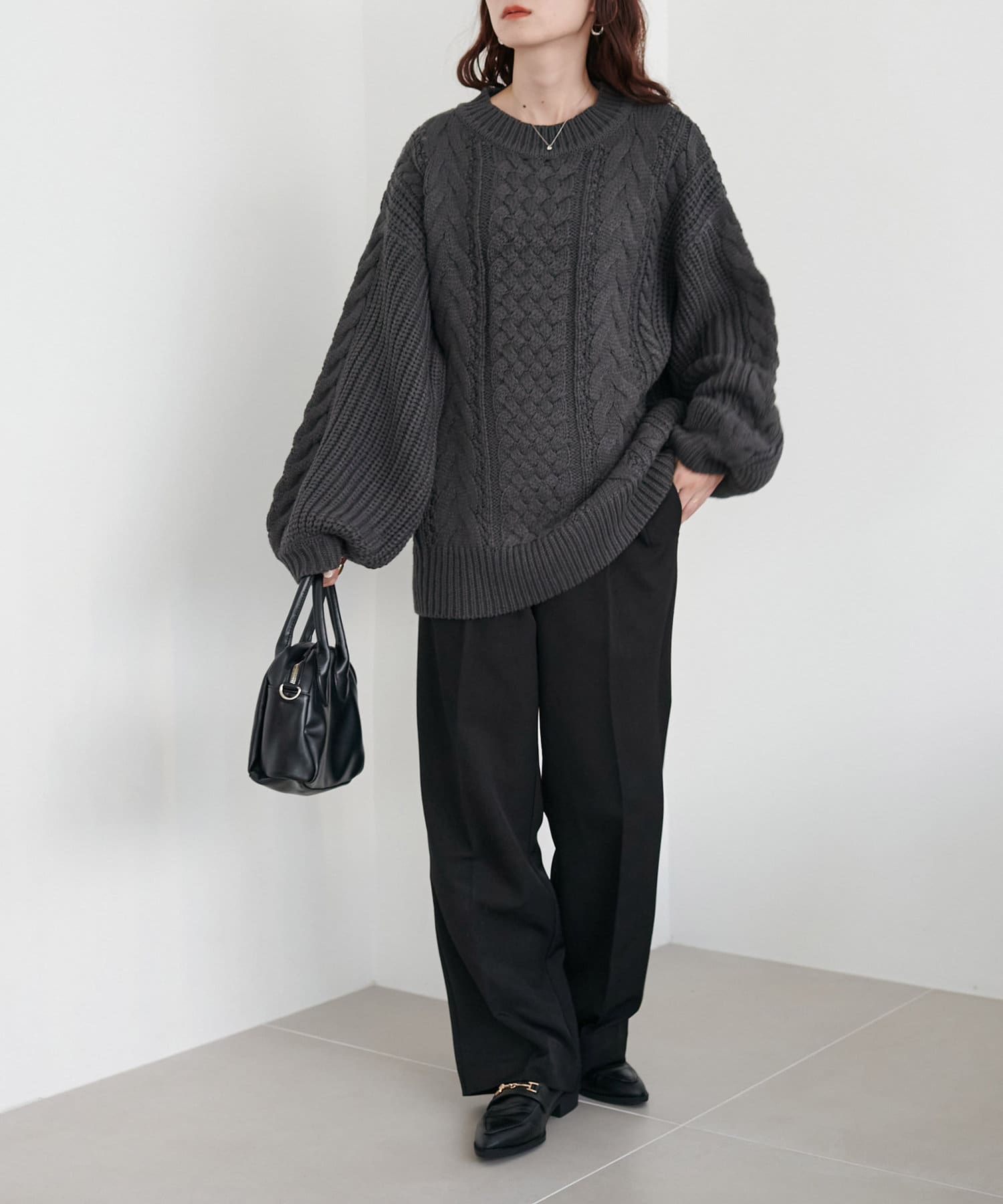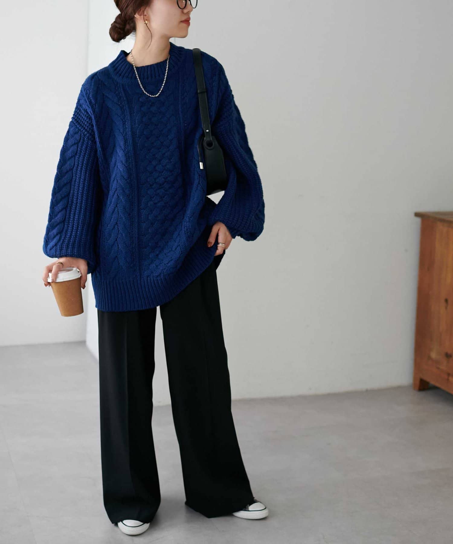 オーバーサイズでたぽっとしたシルエットが可愛いケーブルルーズニット。