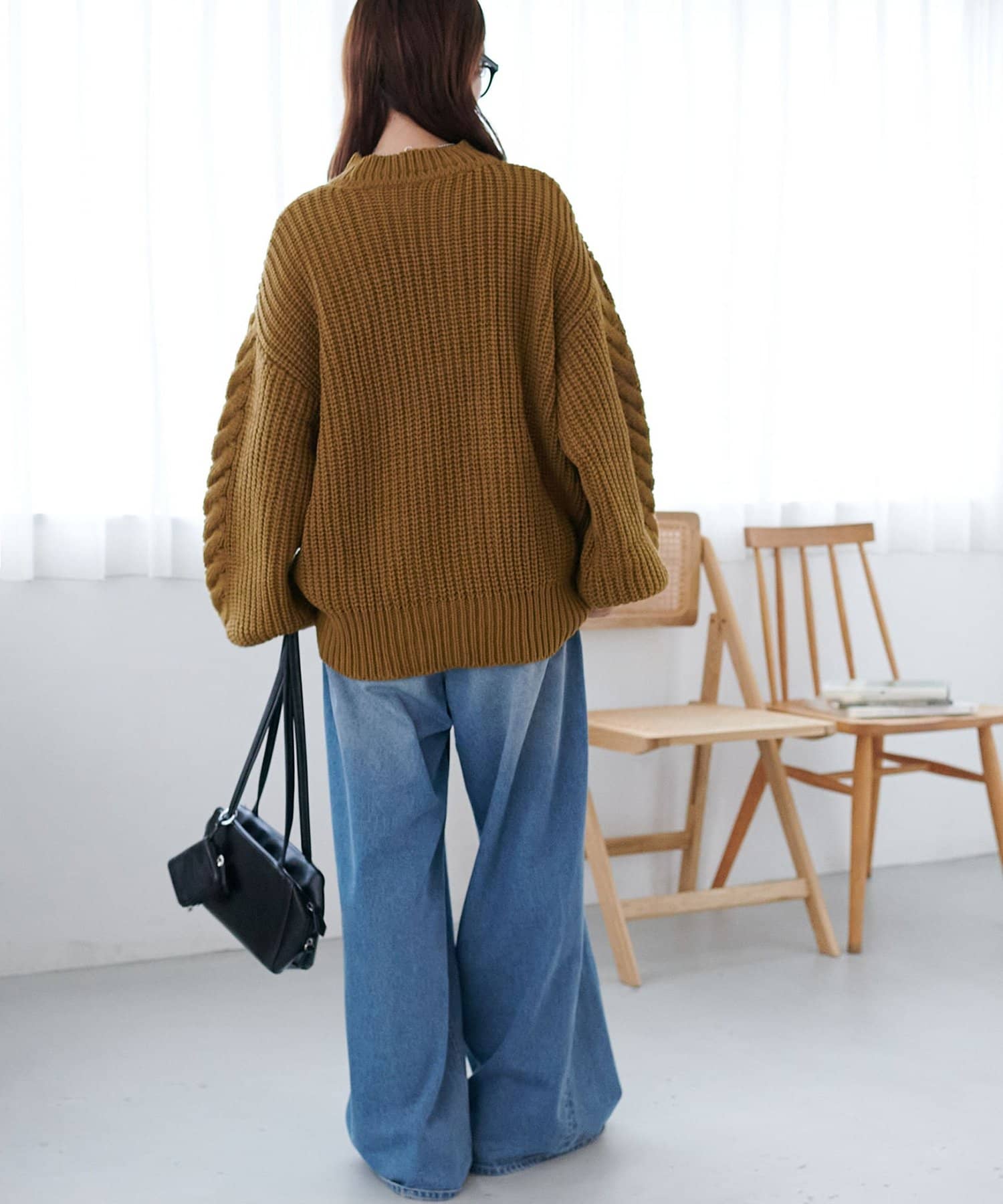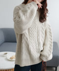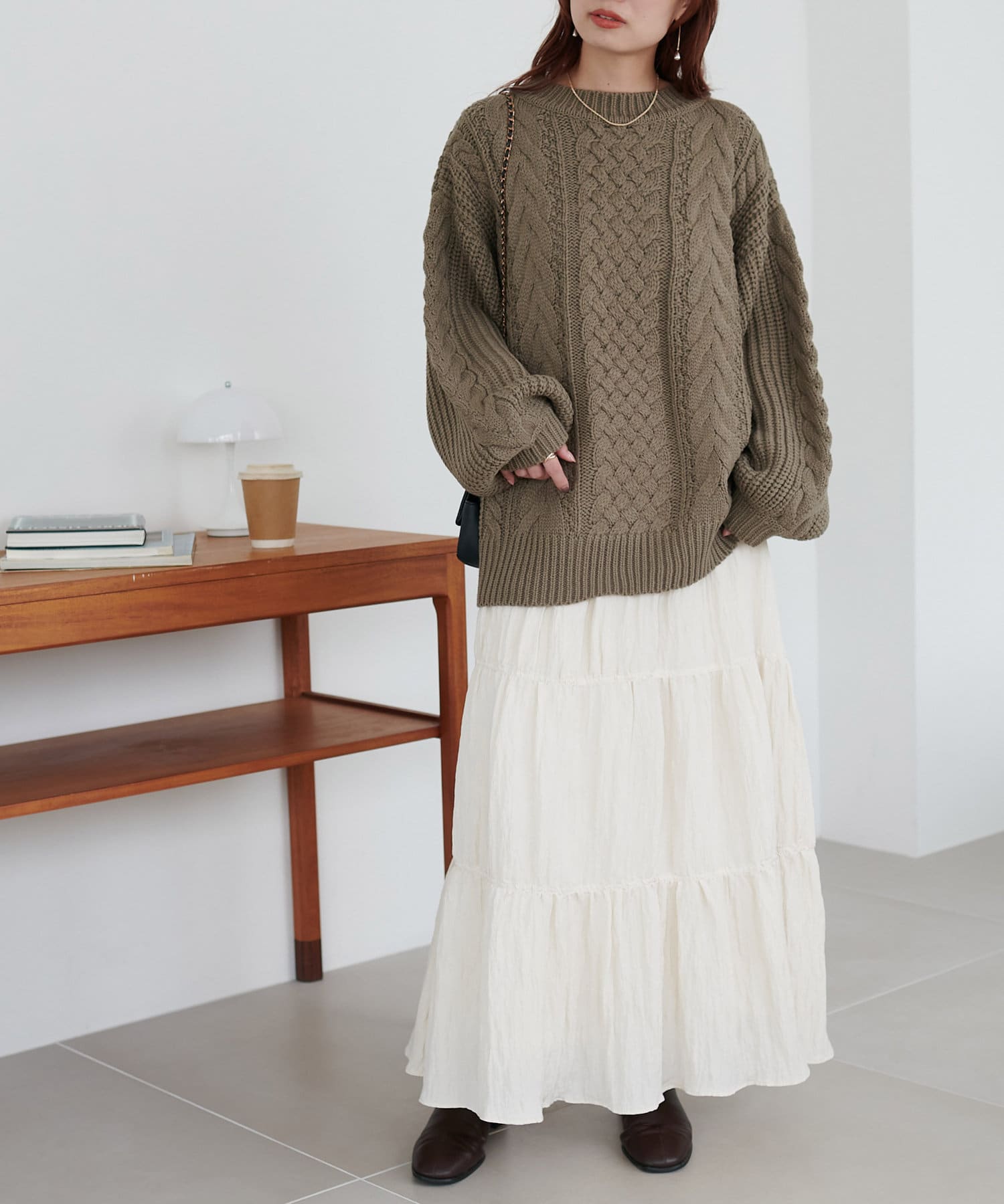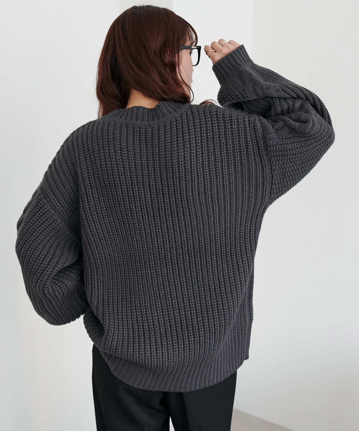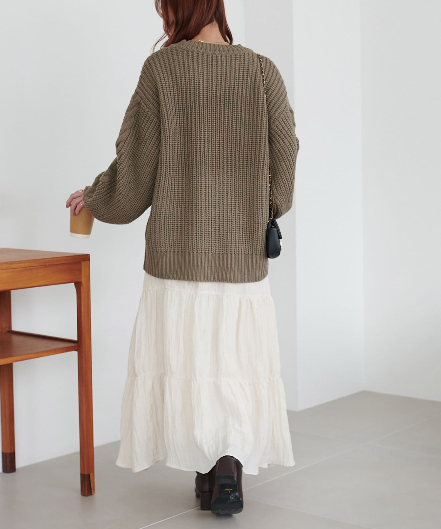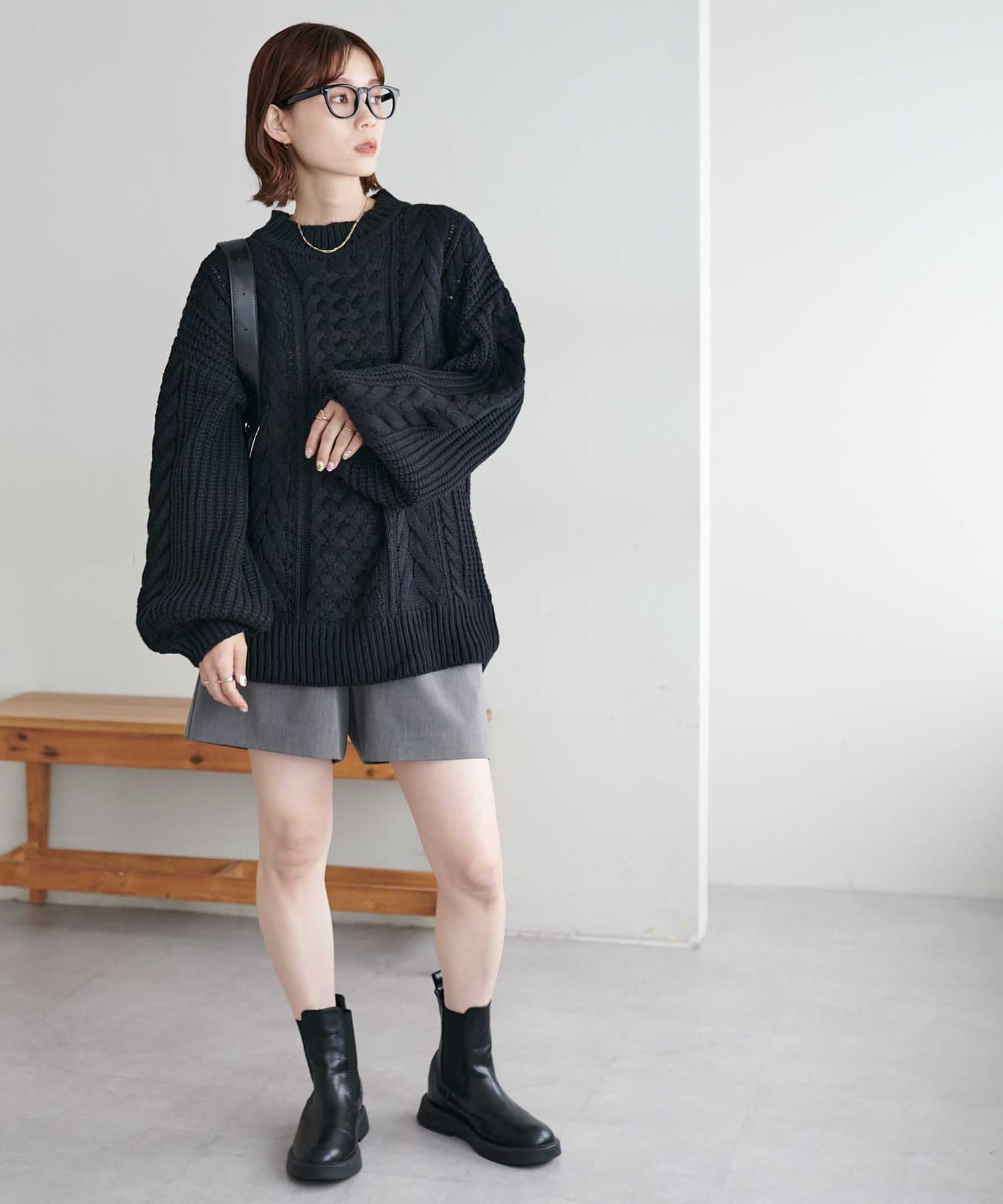 オーバーサイズでたぽっとしたシルエットが可愛いケーブルルーズニット。