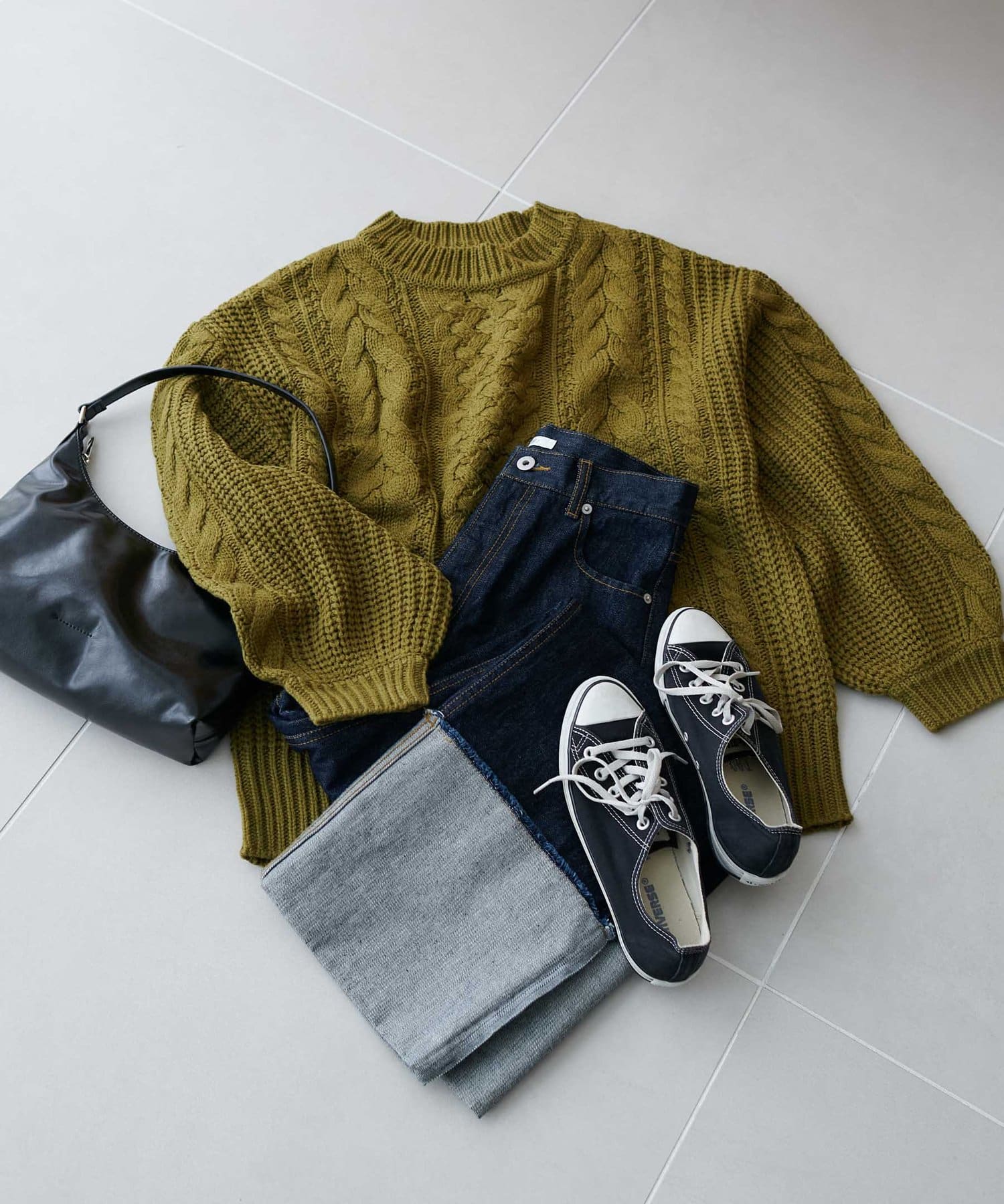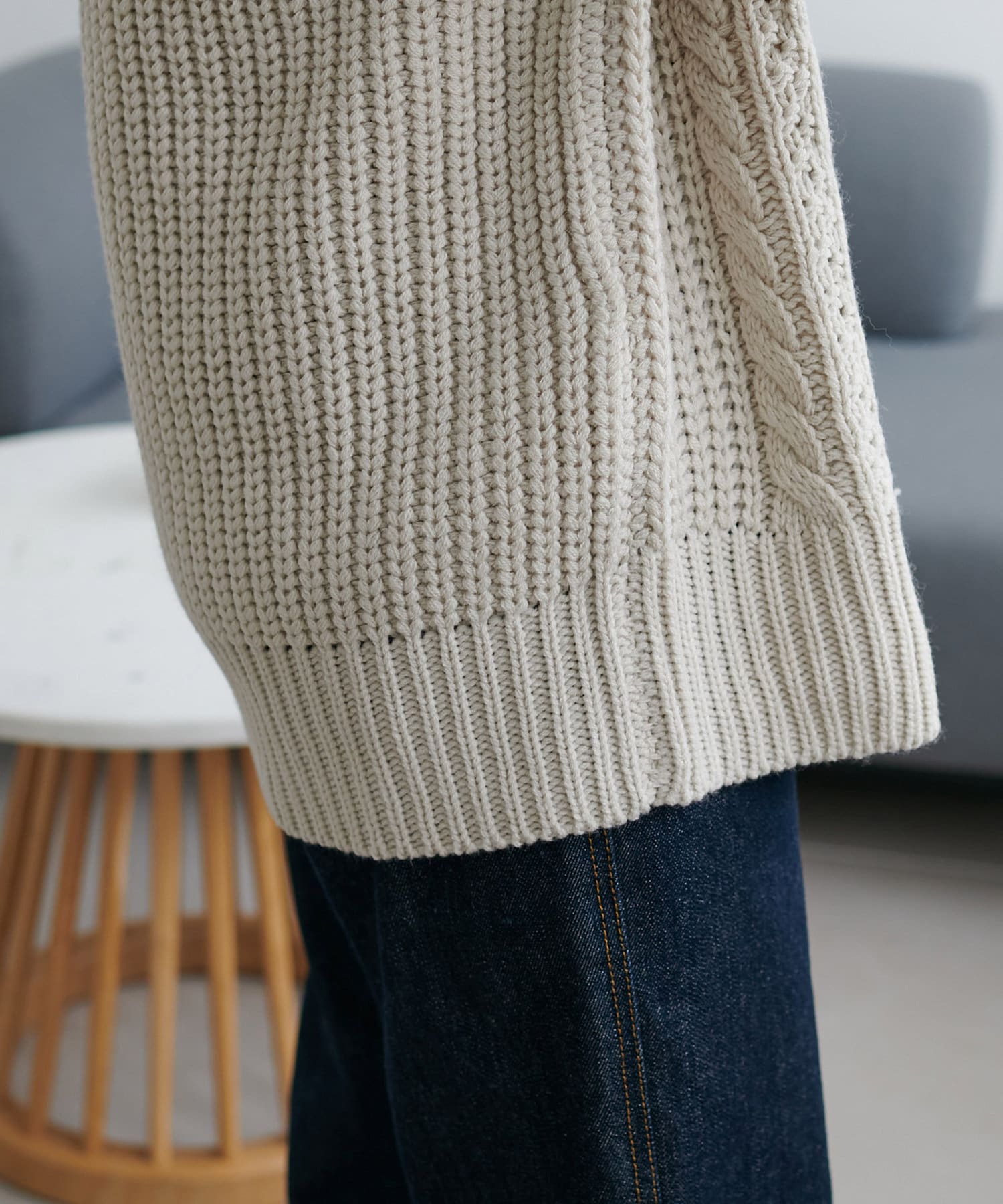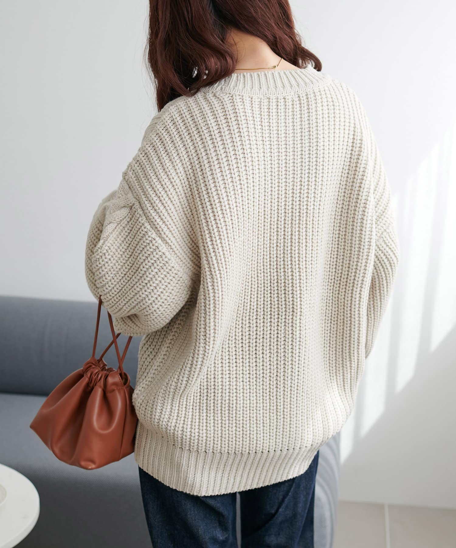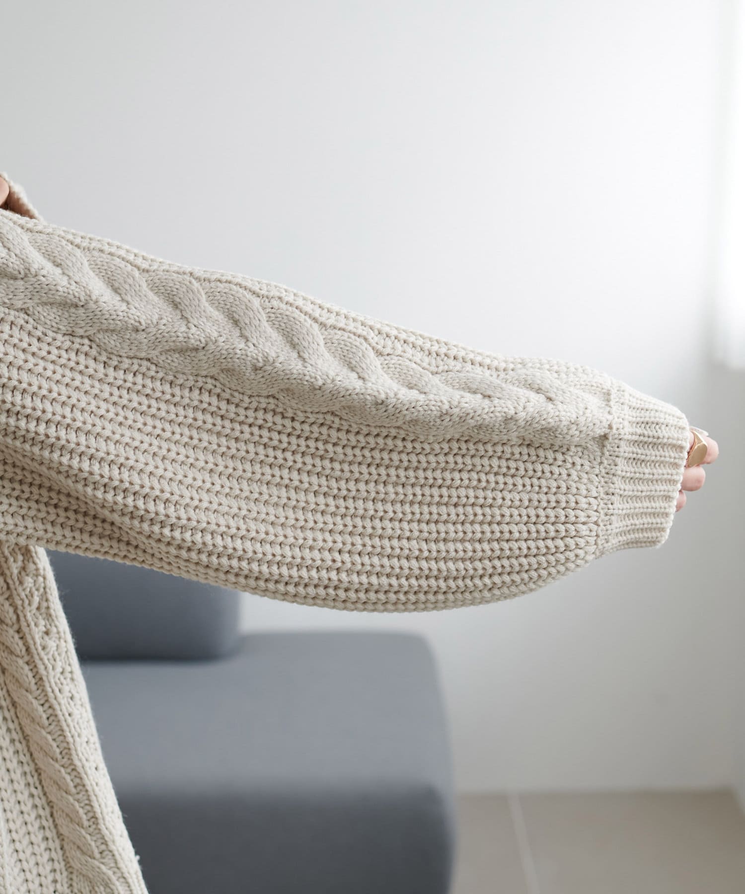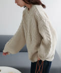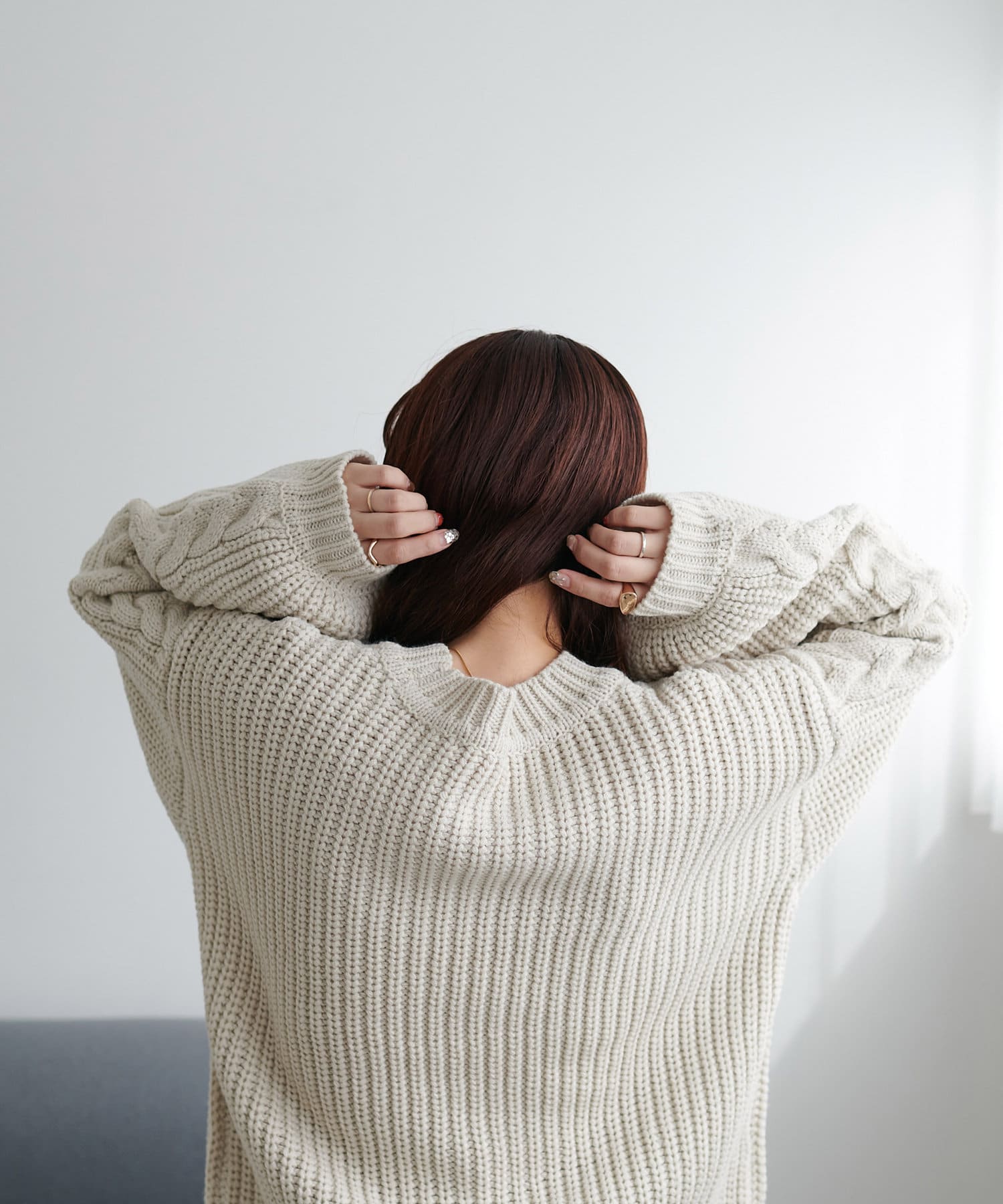 オーバーサイズでたぽっとしたシルエットが可愛いケーブルルーズニット。