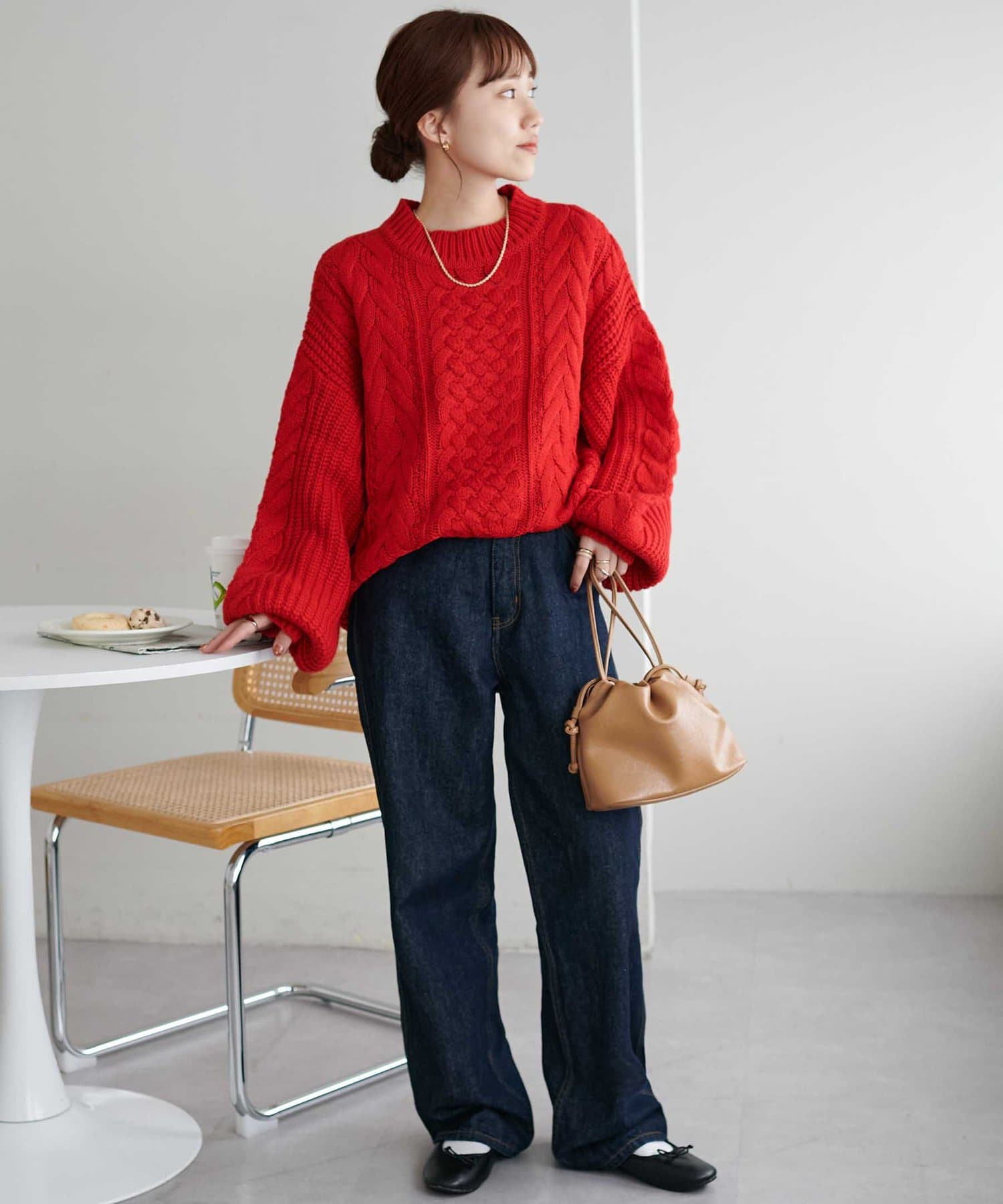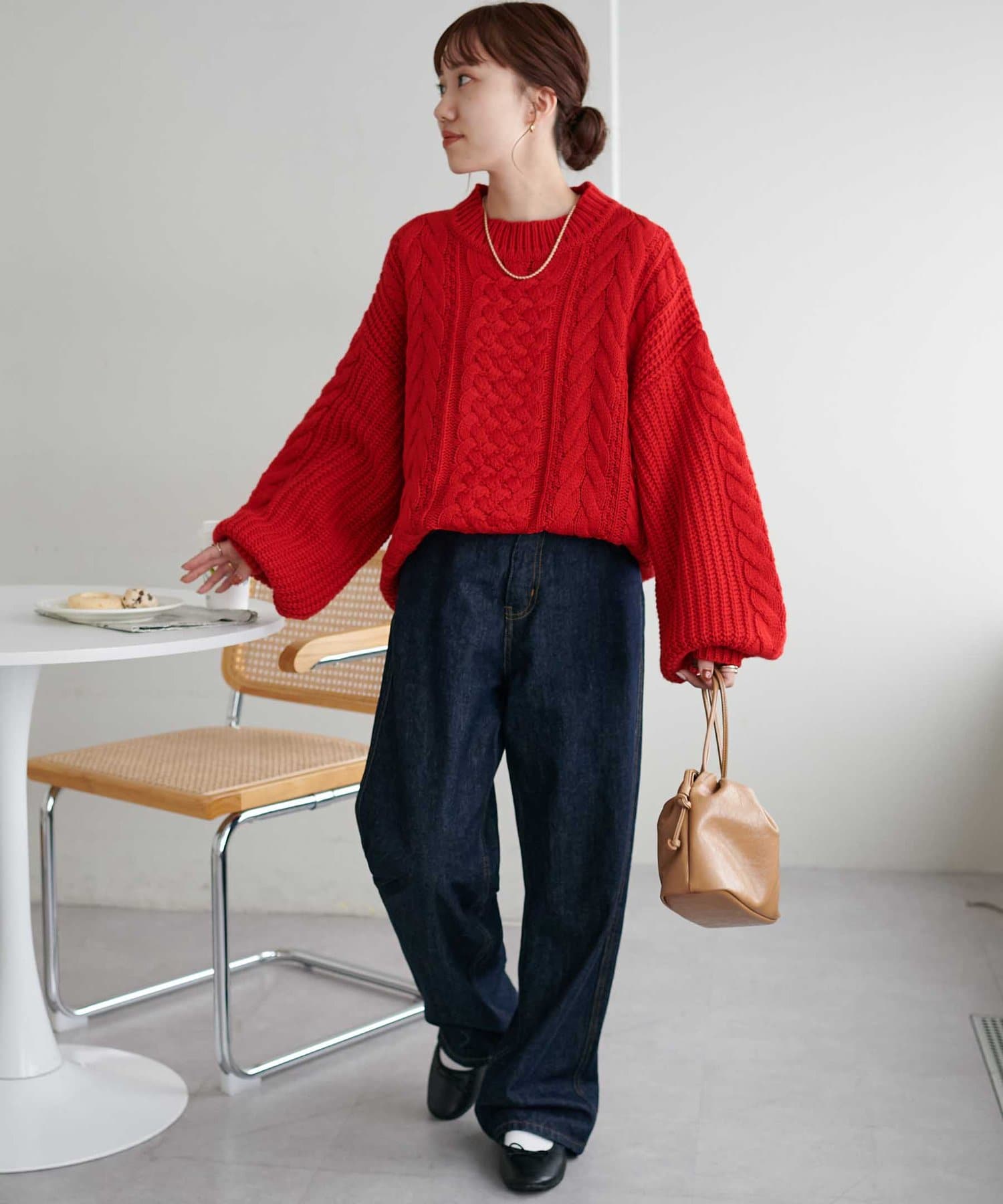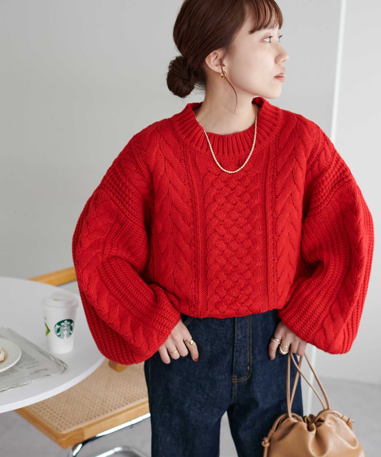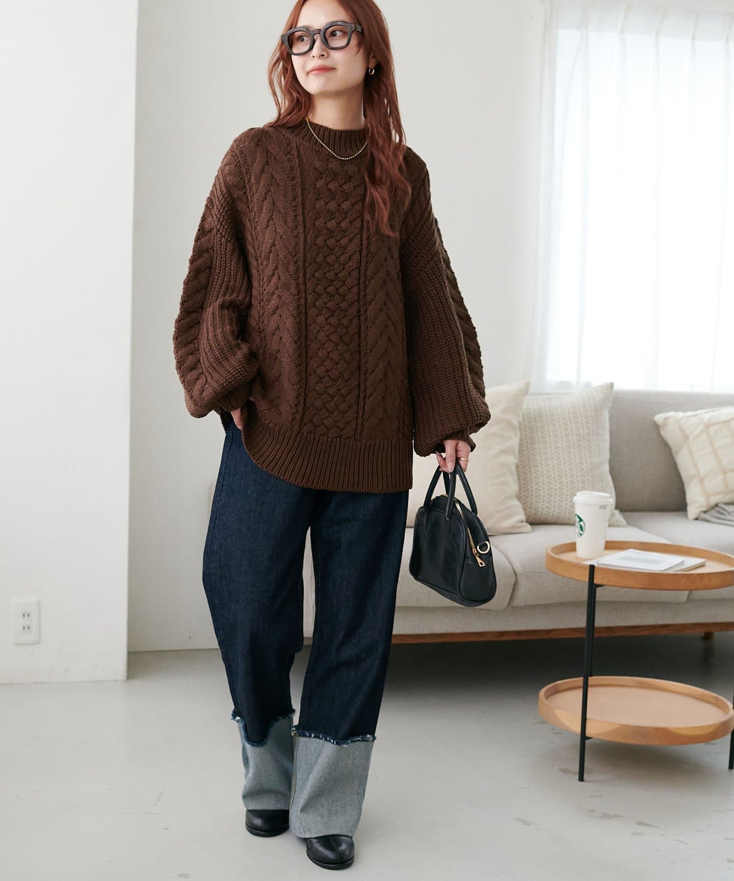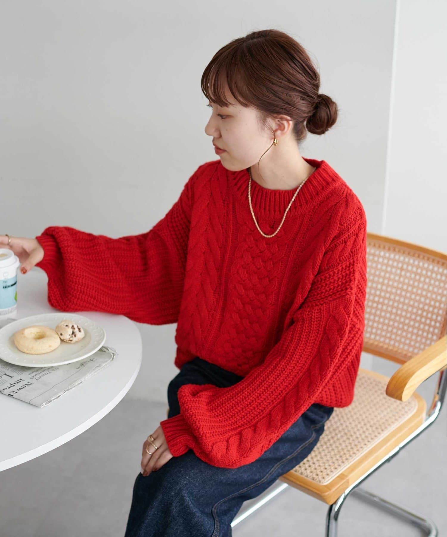 【冬の定番ニット/10色展開】ケーブルルーズニット《WEB限定》