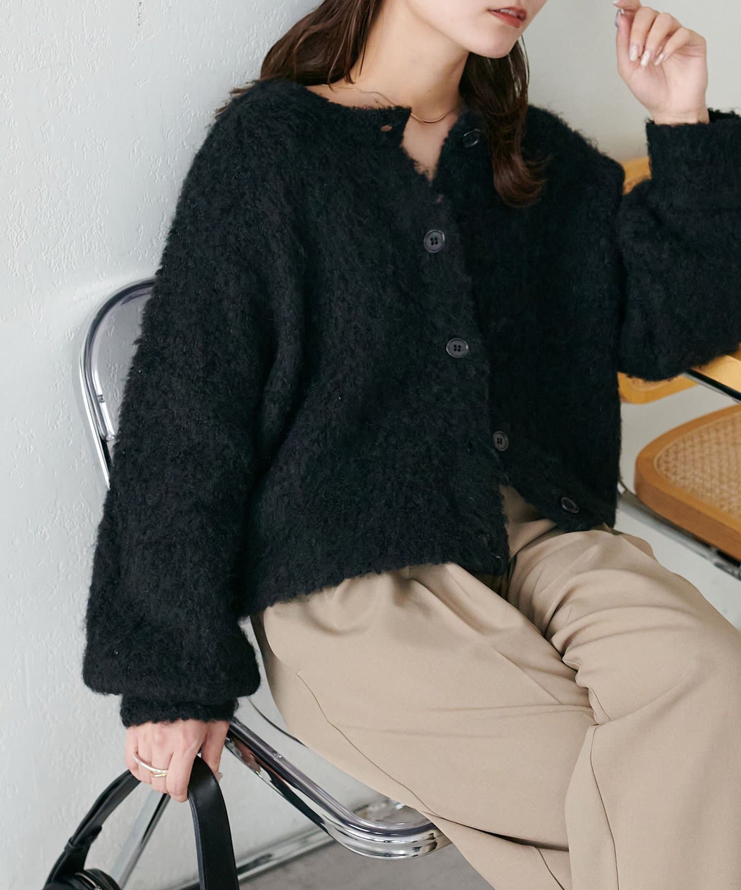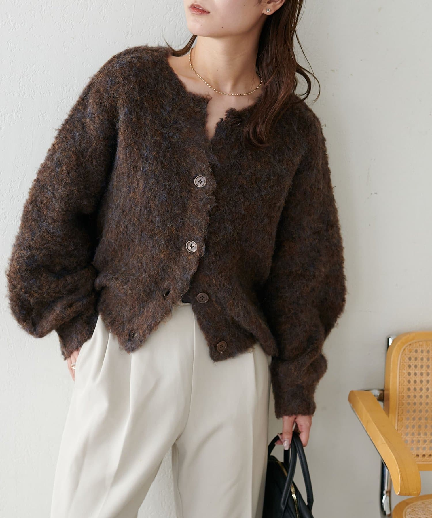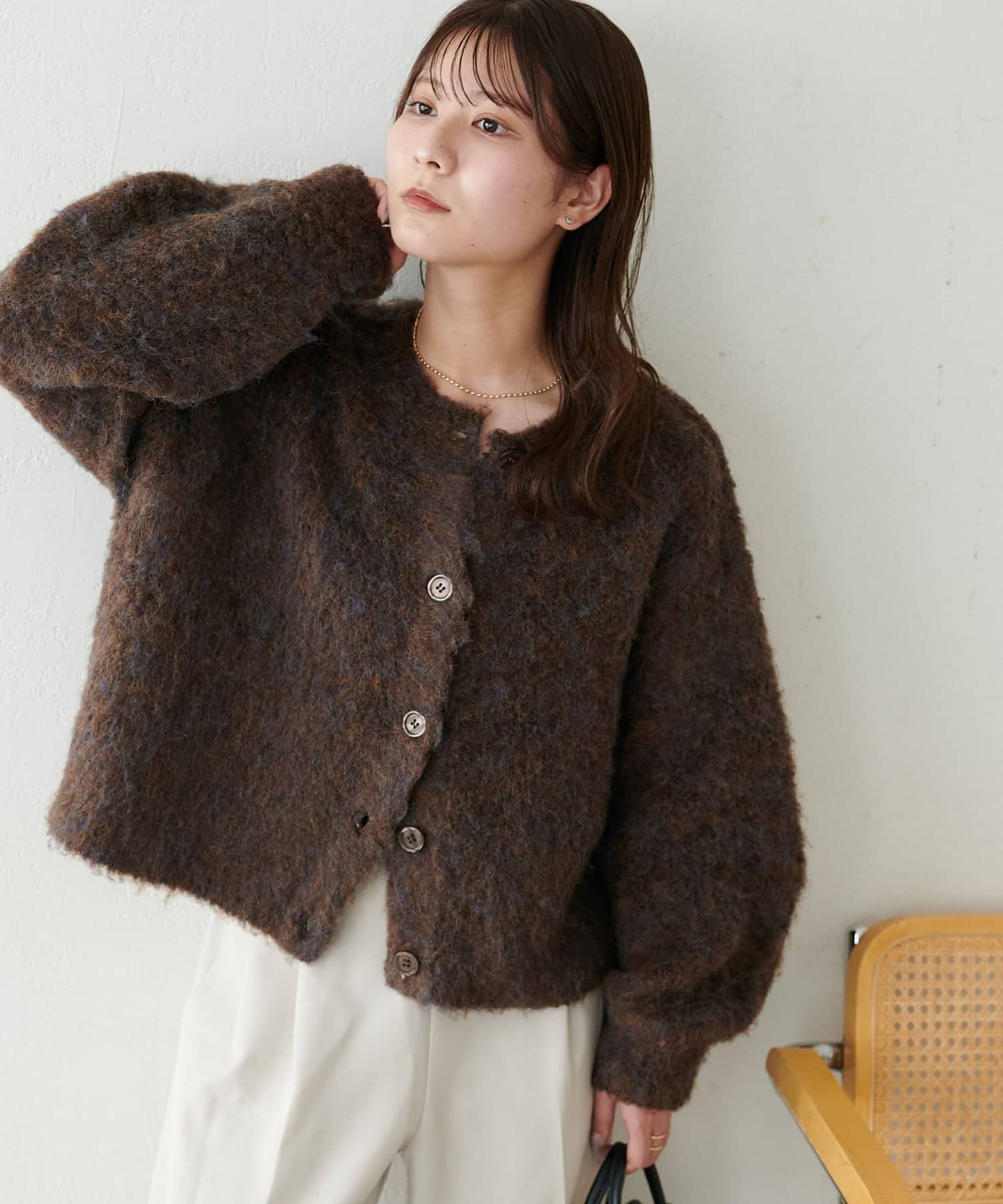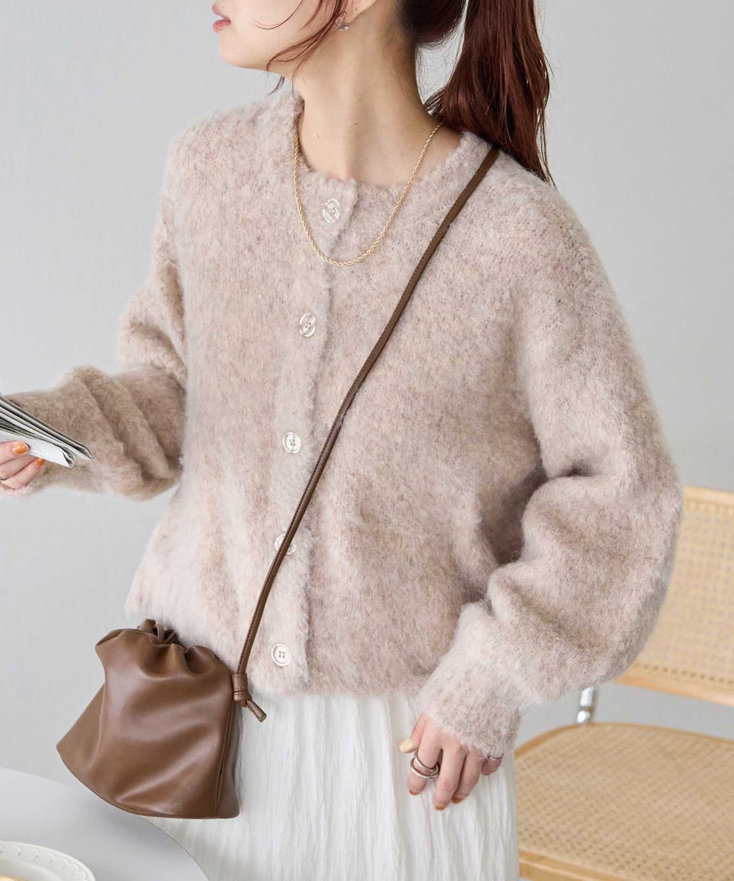 ふんわりとした起毛感が魅力のニットカーディガン