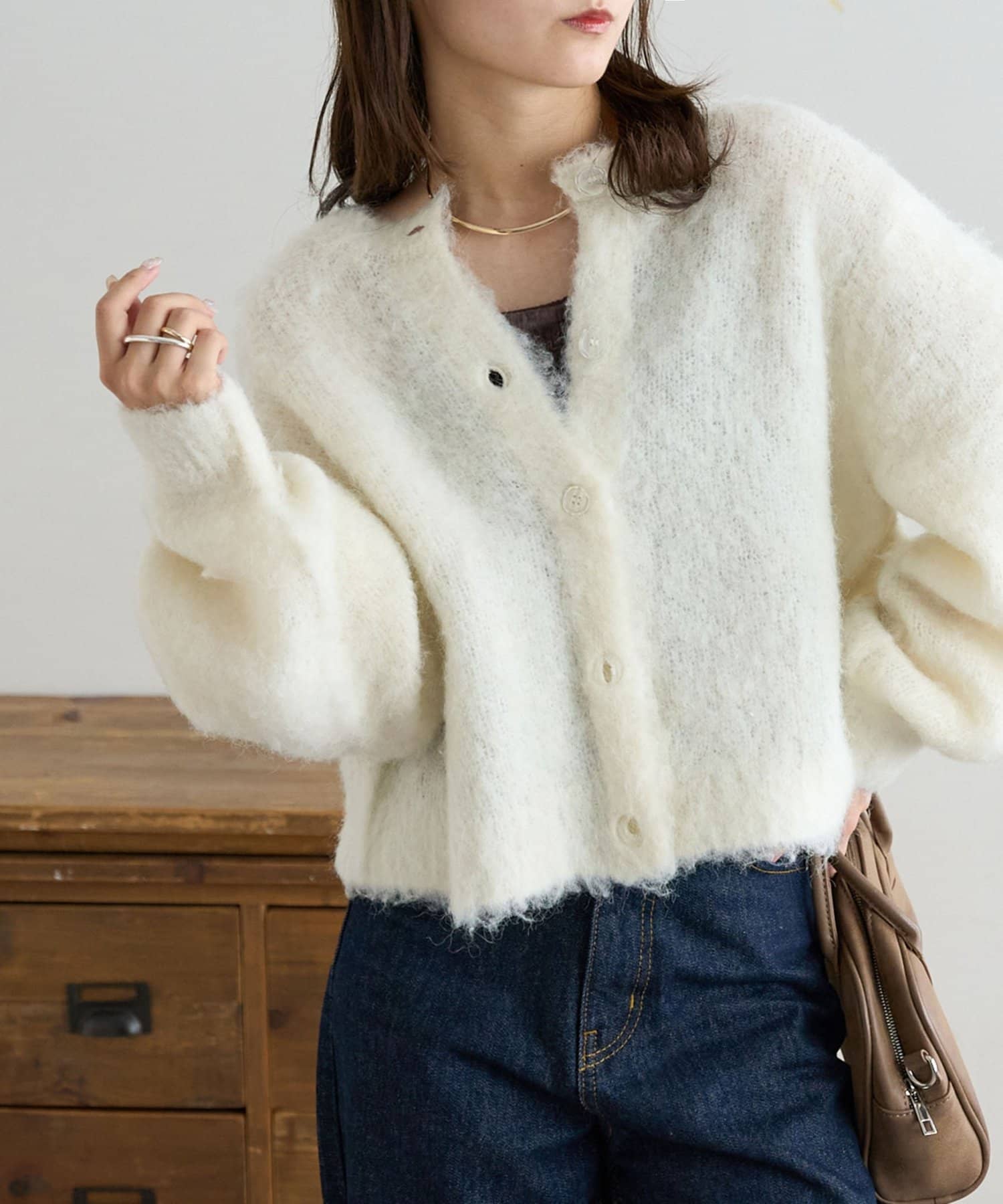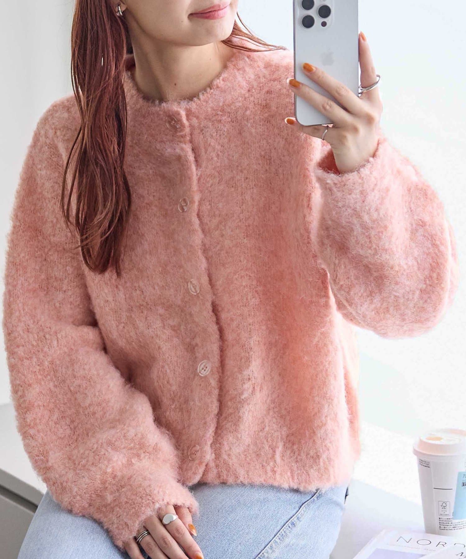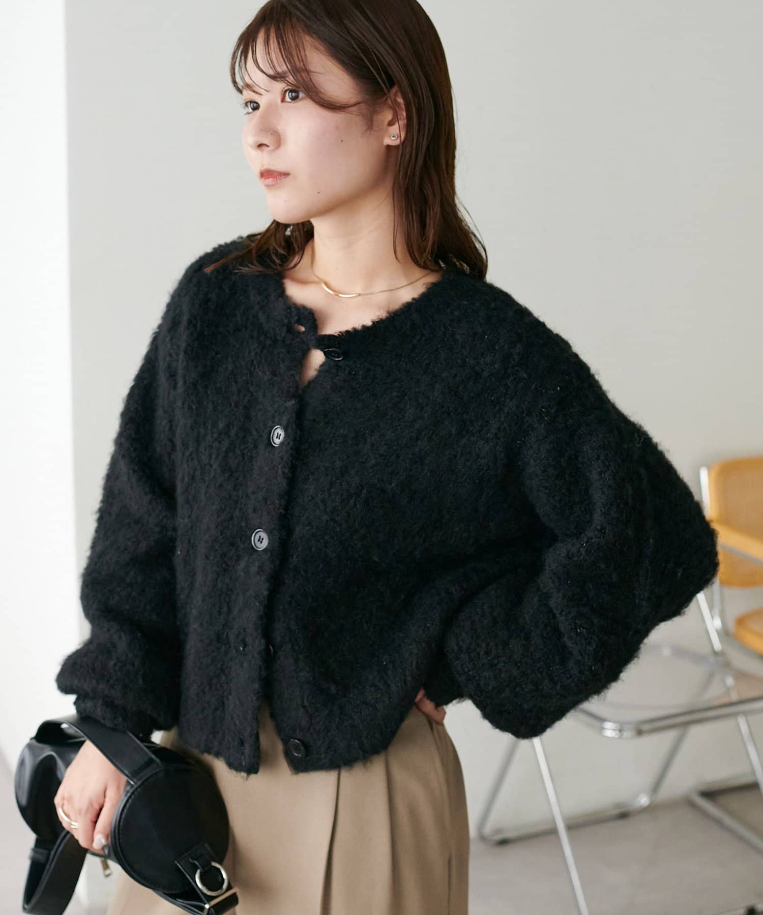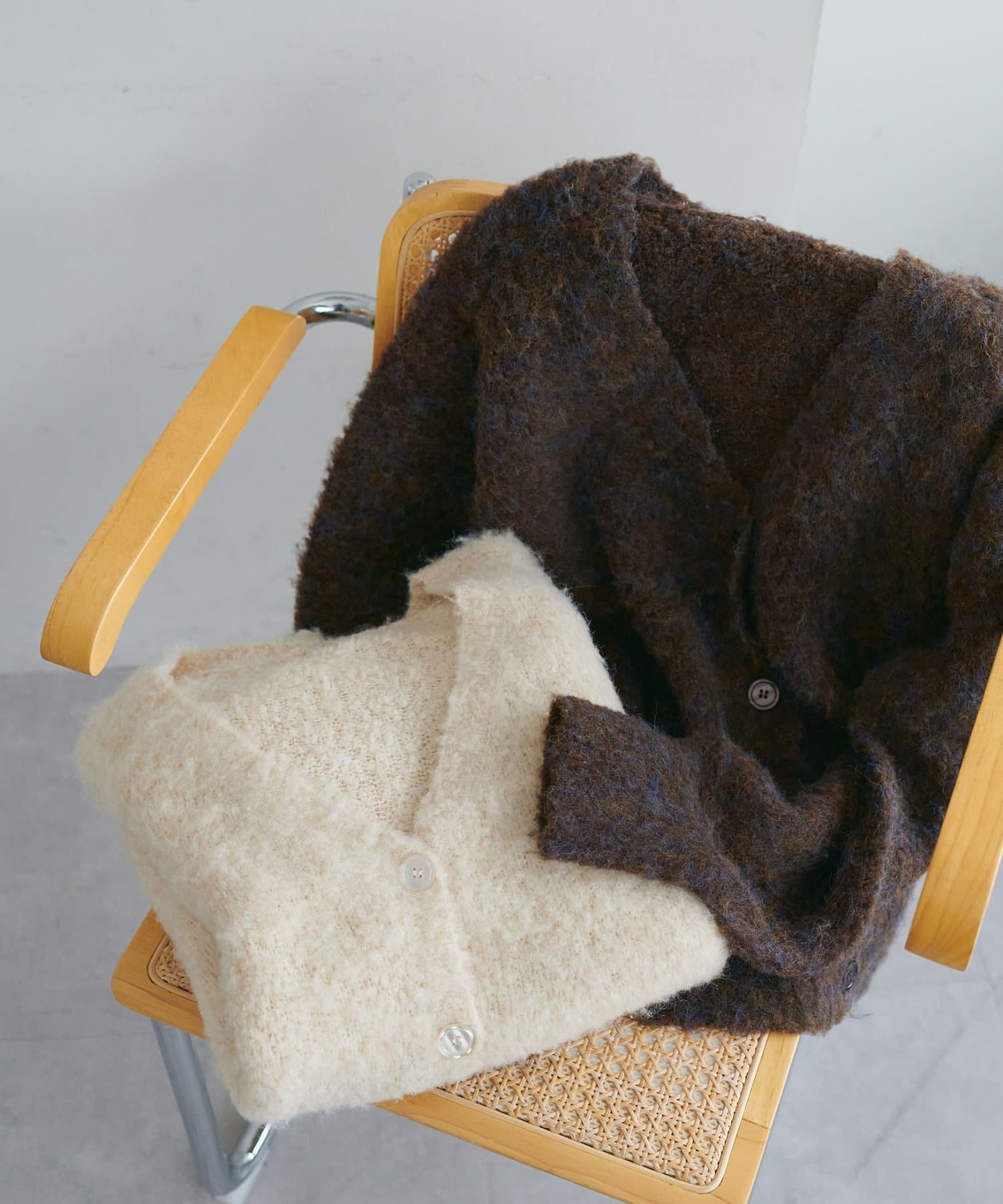 ふんわりとした起毛感が魅力のニットカーディガン