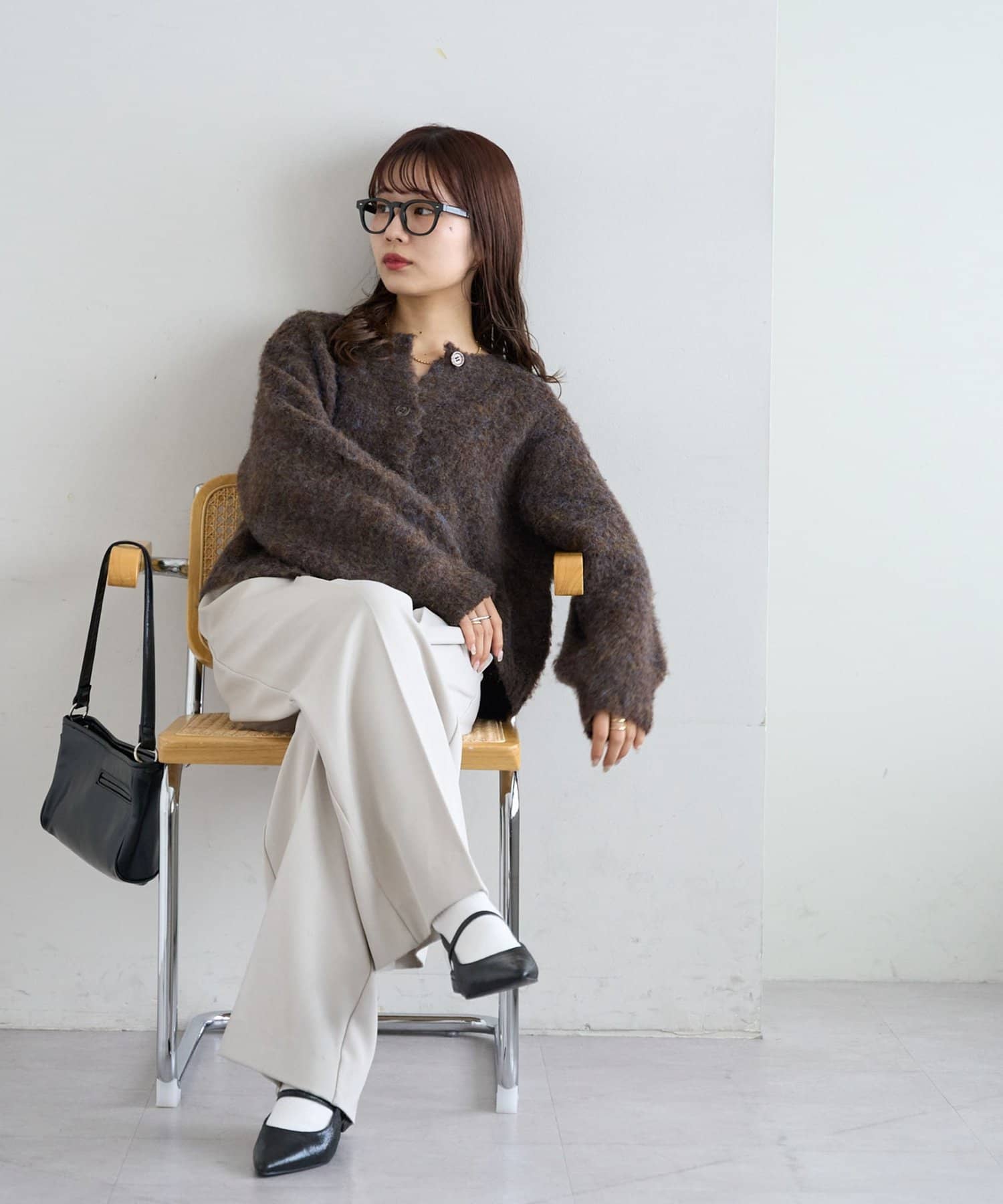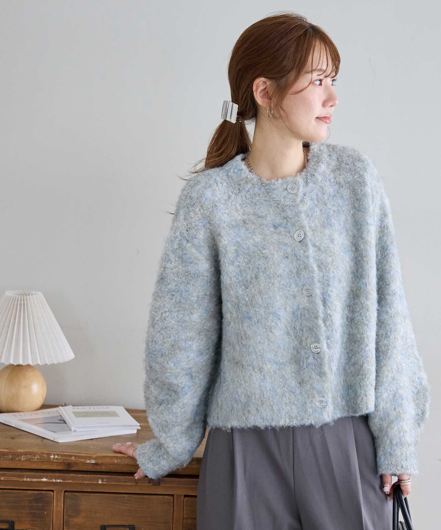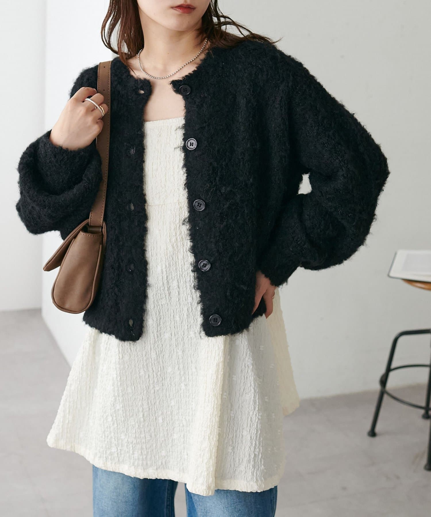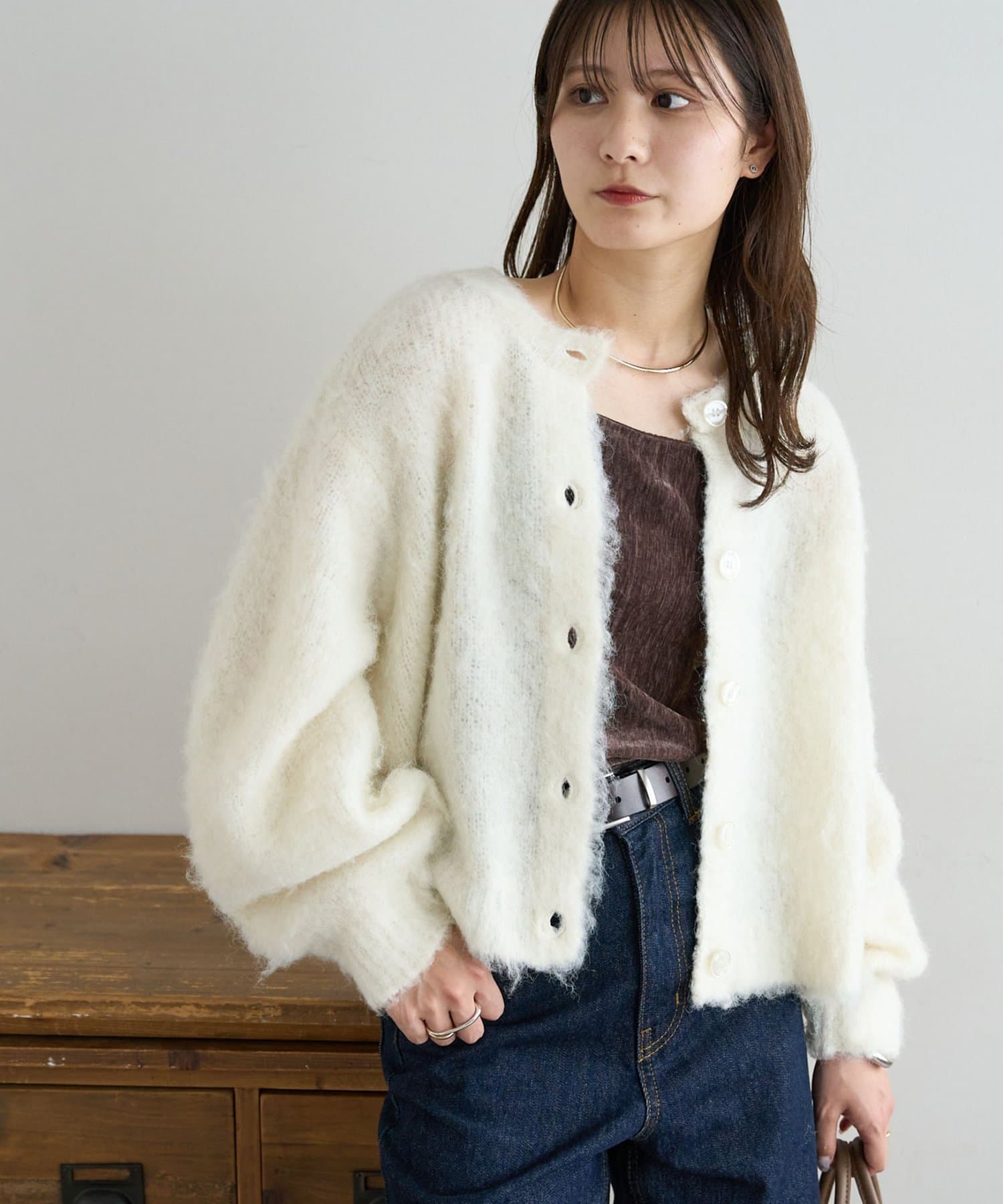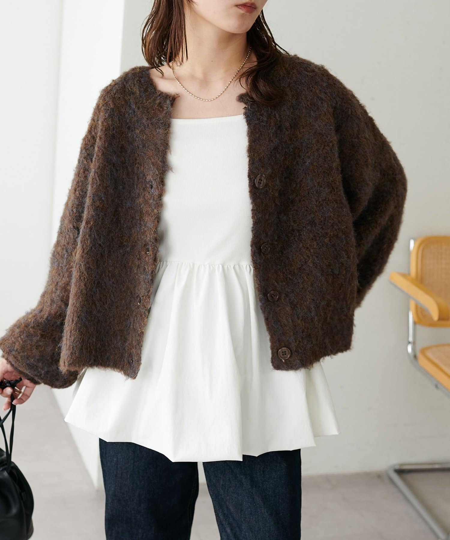 ふんわりとした起毛感が魅力のニットカーディガン