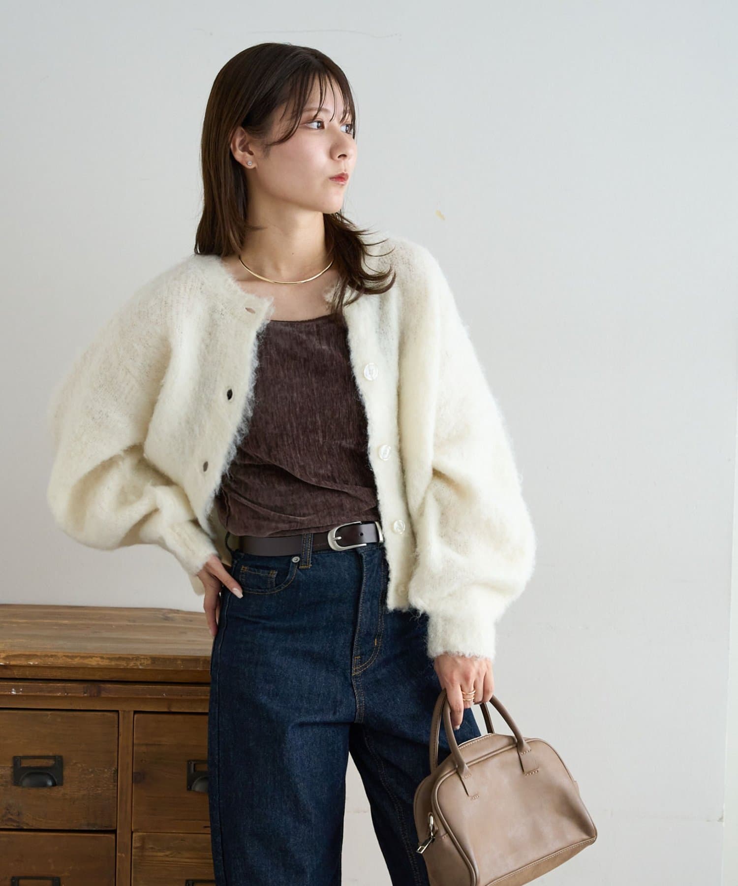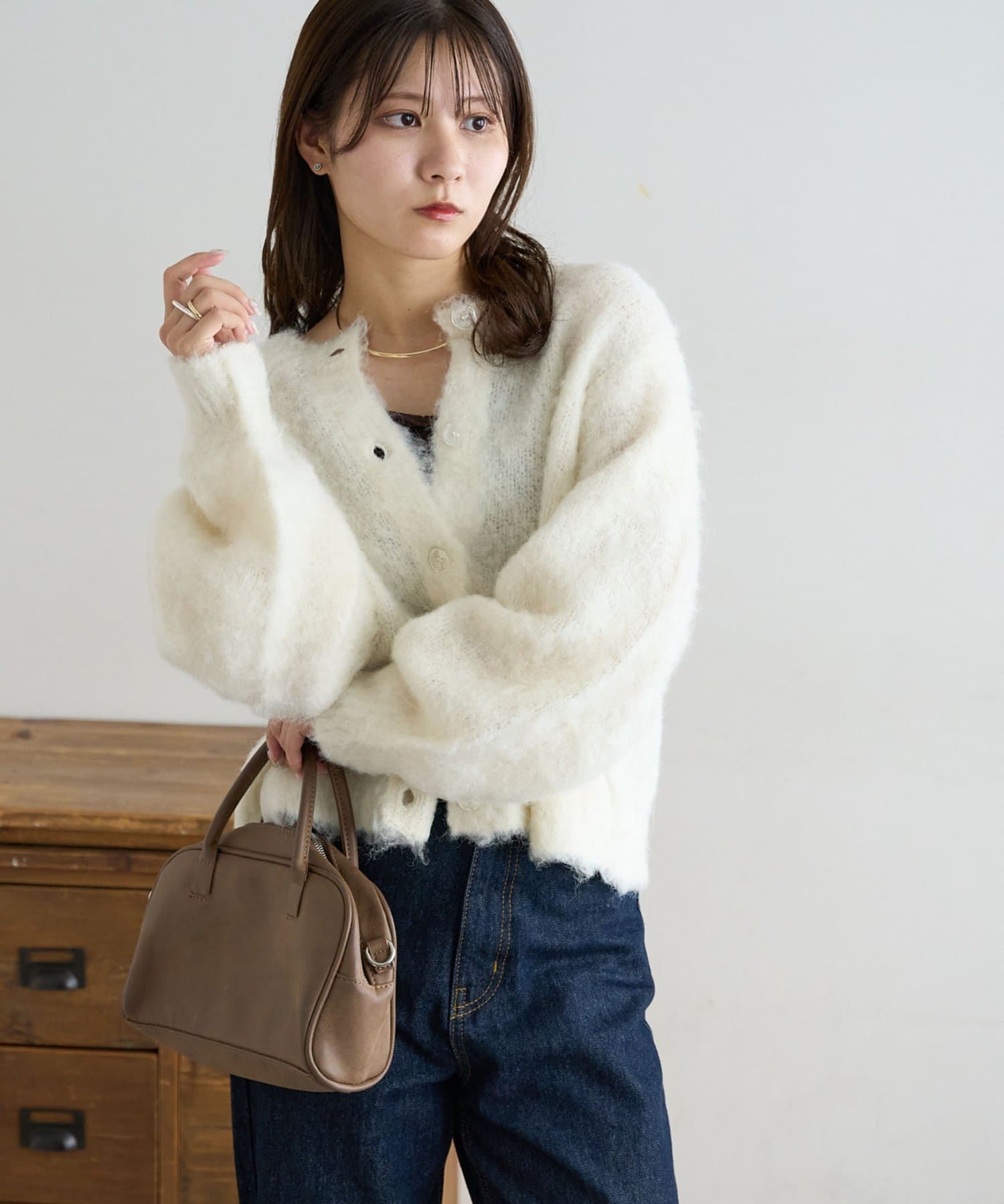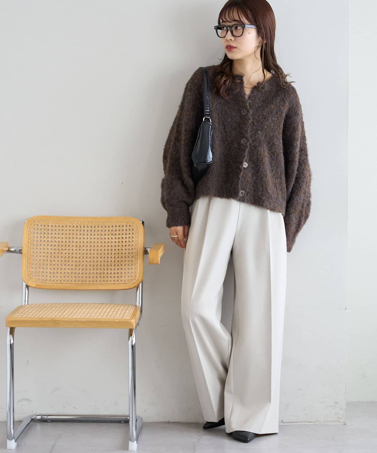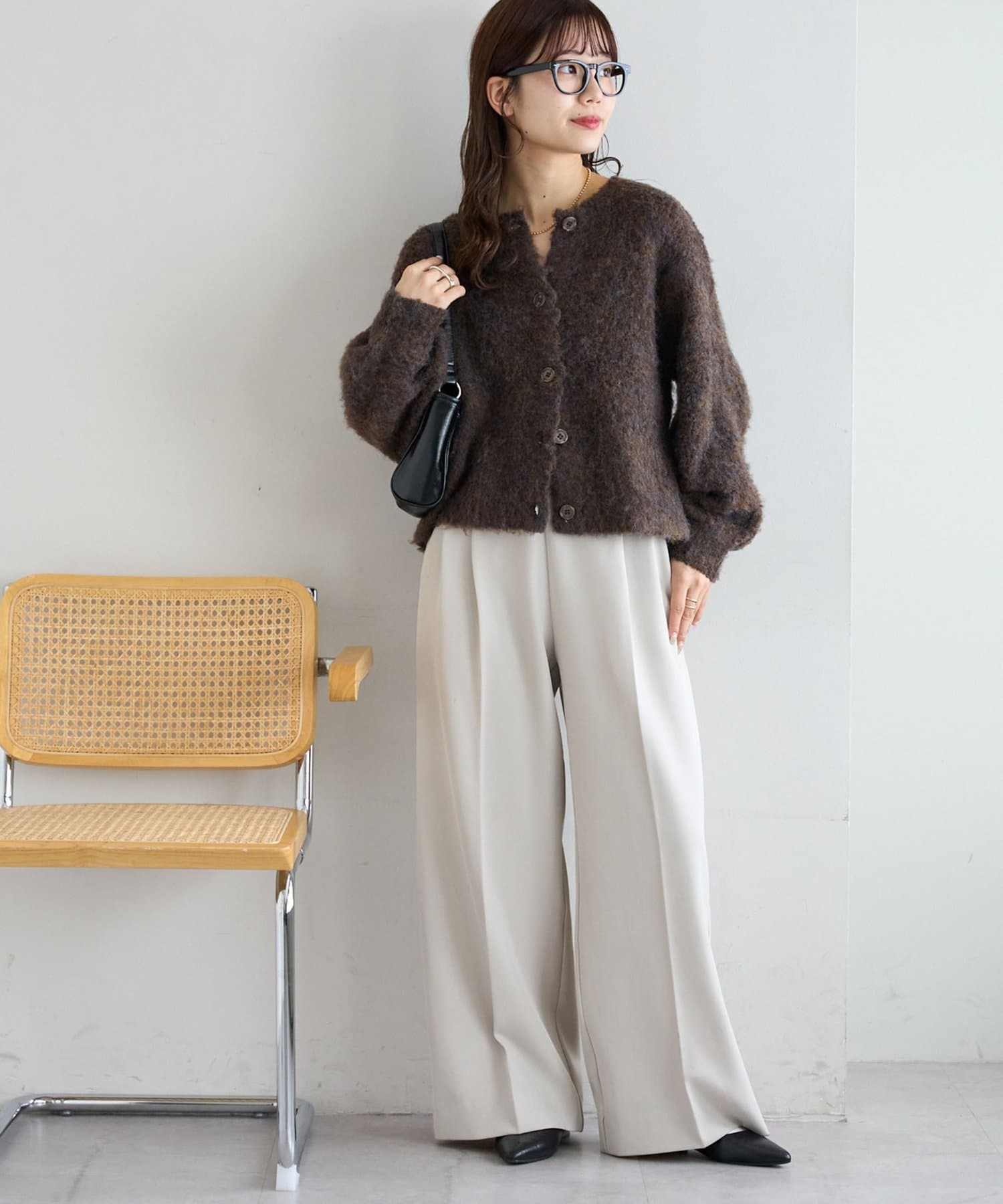 ふんわりとした起毛感が魅力のニットカーディガン