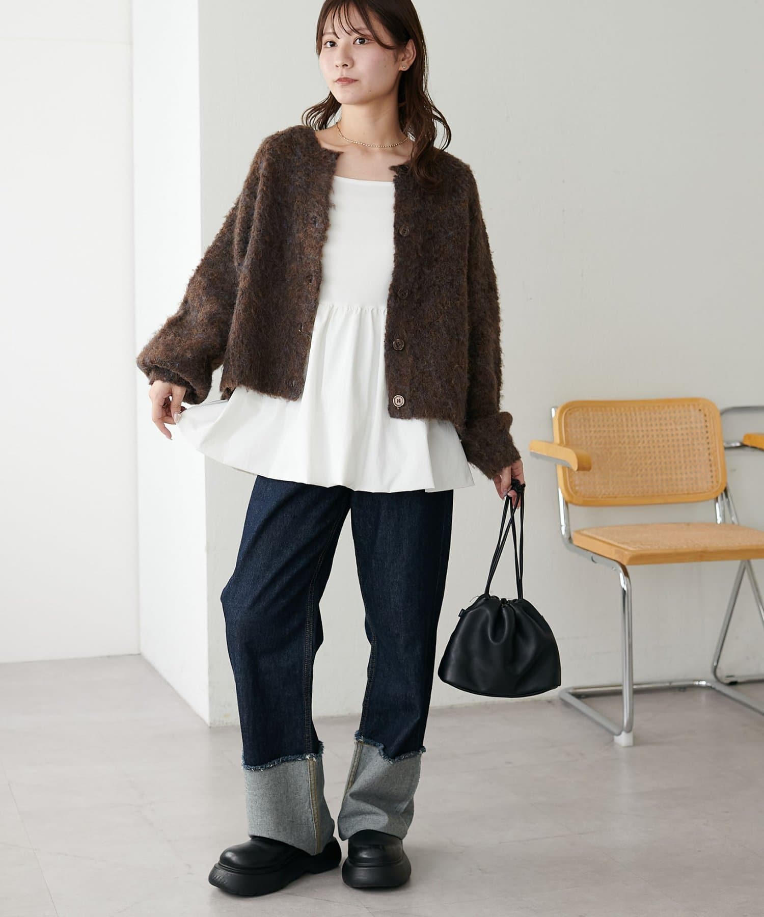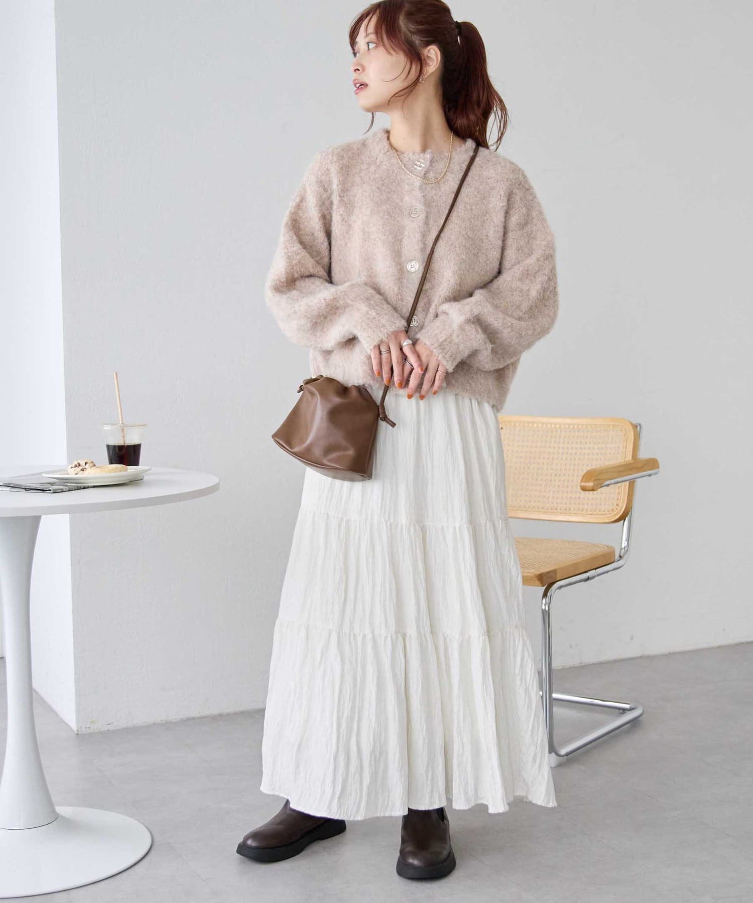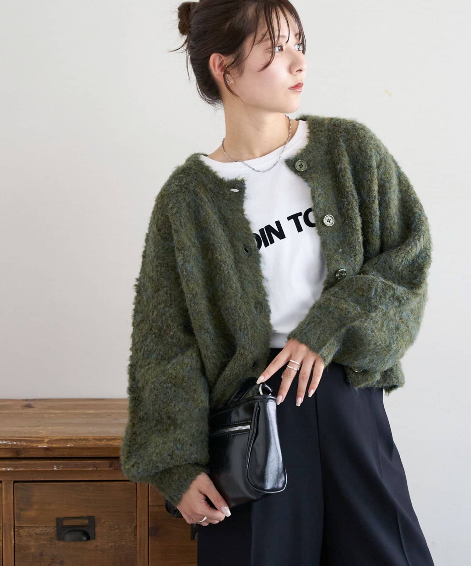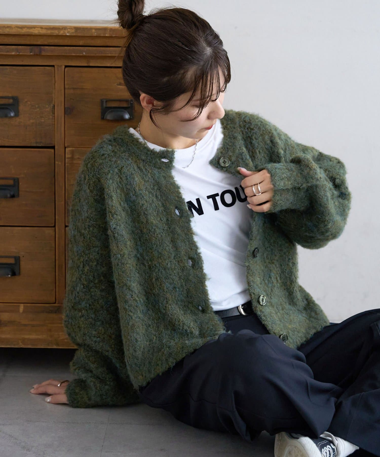 ふんわりとした起毛感が魅力のニットカーディガン