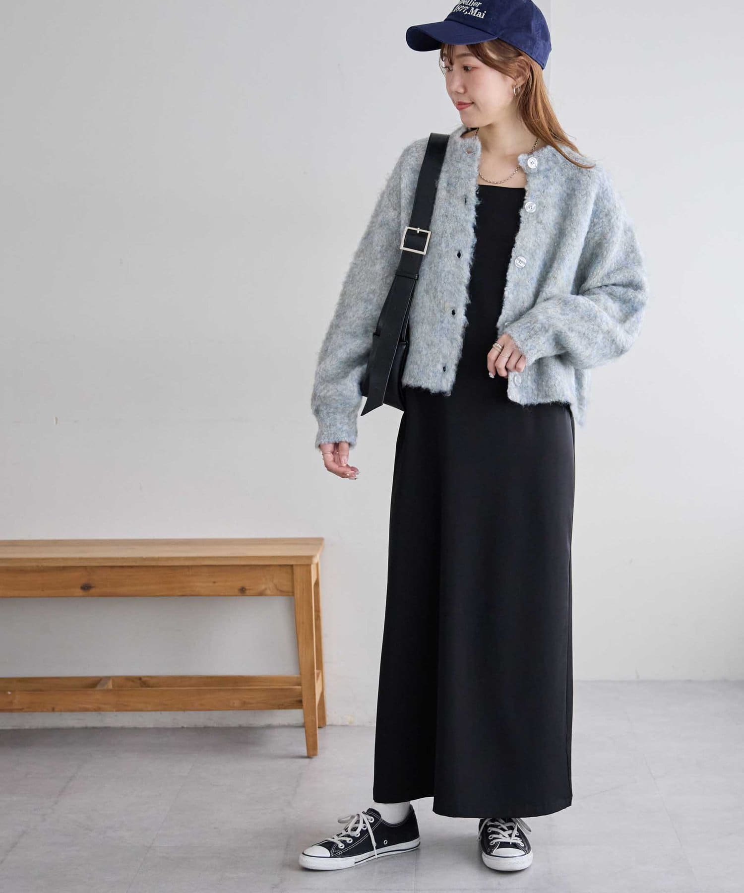 ・163cmスタッフ:着丈は腰にかかるくらいで、パンツにもスカートにも合わせやすい長さです。