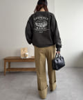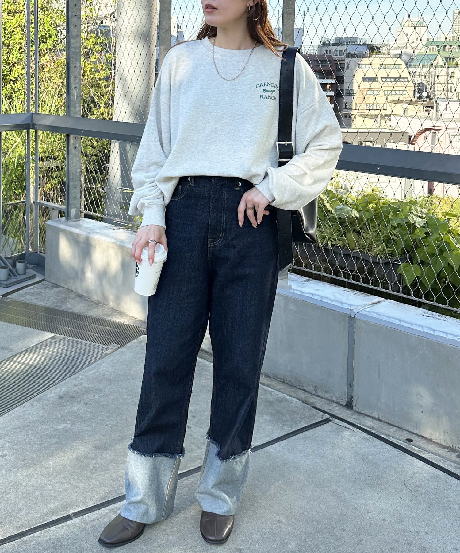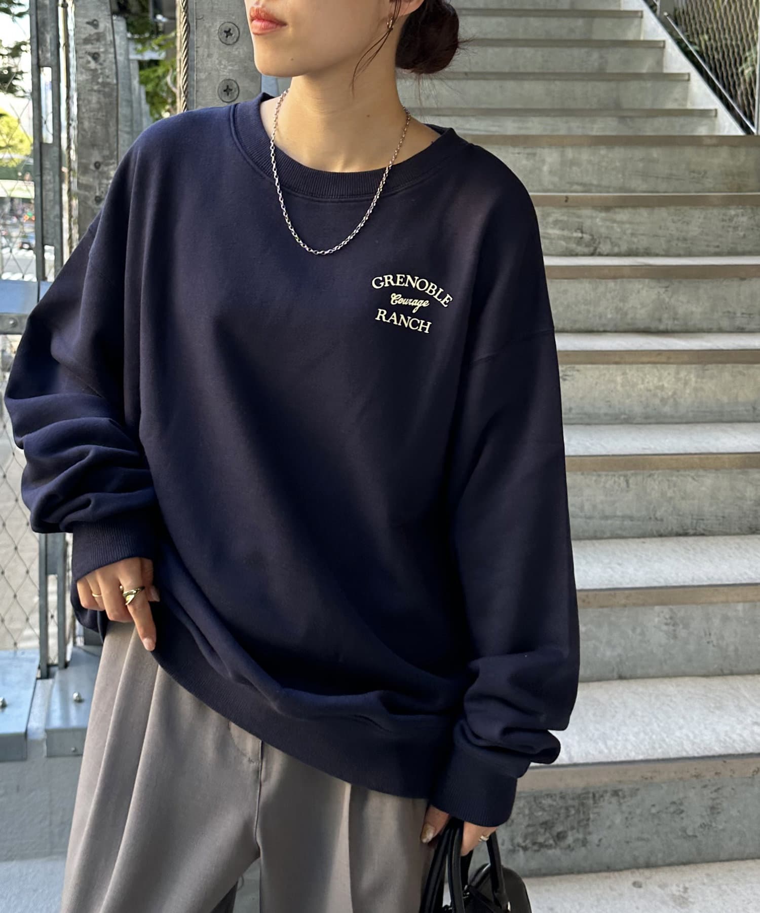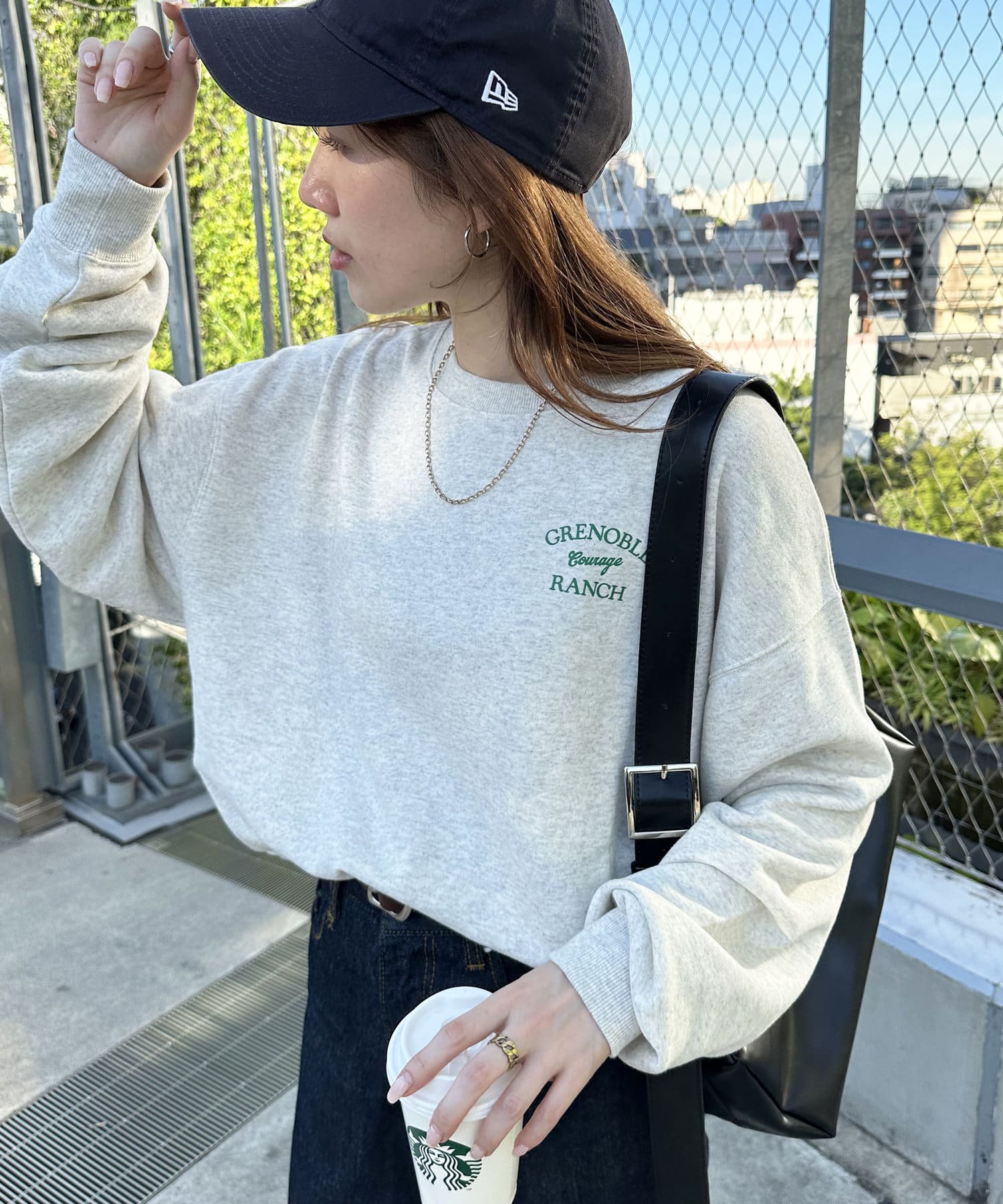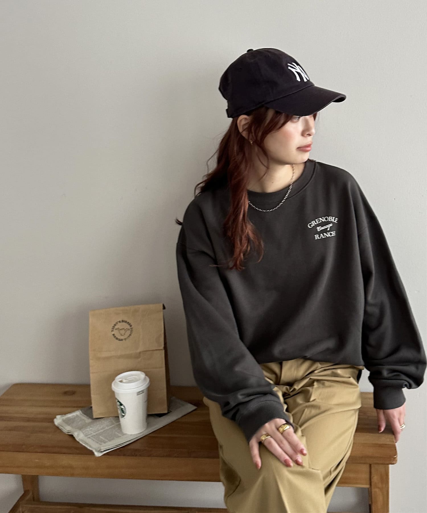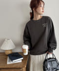 155㎝スタッフ: ゆるっと感のでるシルエットが、コーデに抜け感を出してくれるスウェット。カジュアル過ぎないロゴなので、甘めカジュアルなスタイリングが好きな方にもおすすめですよ◎