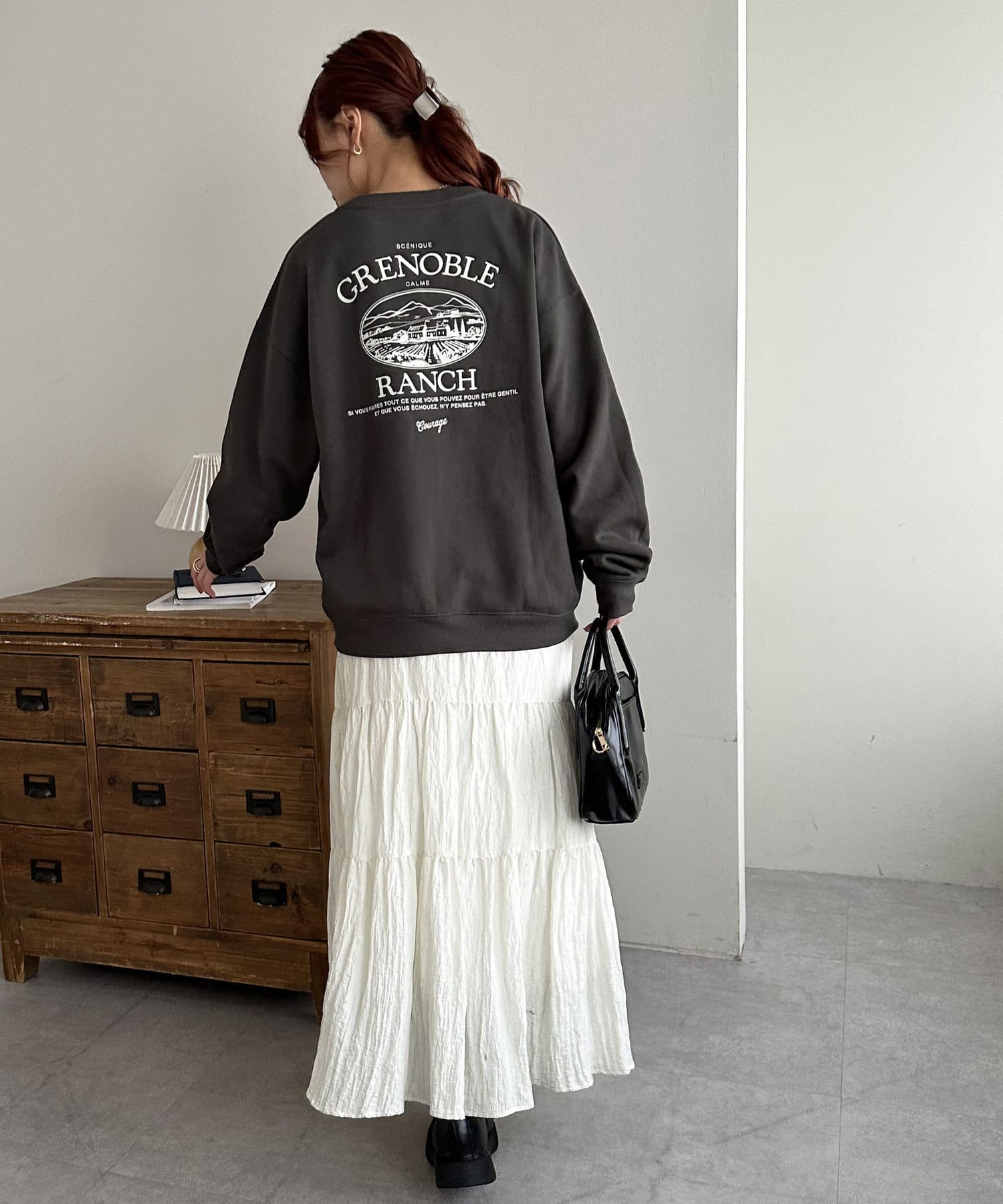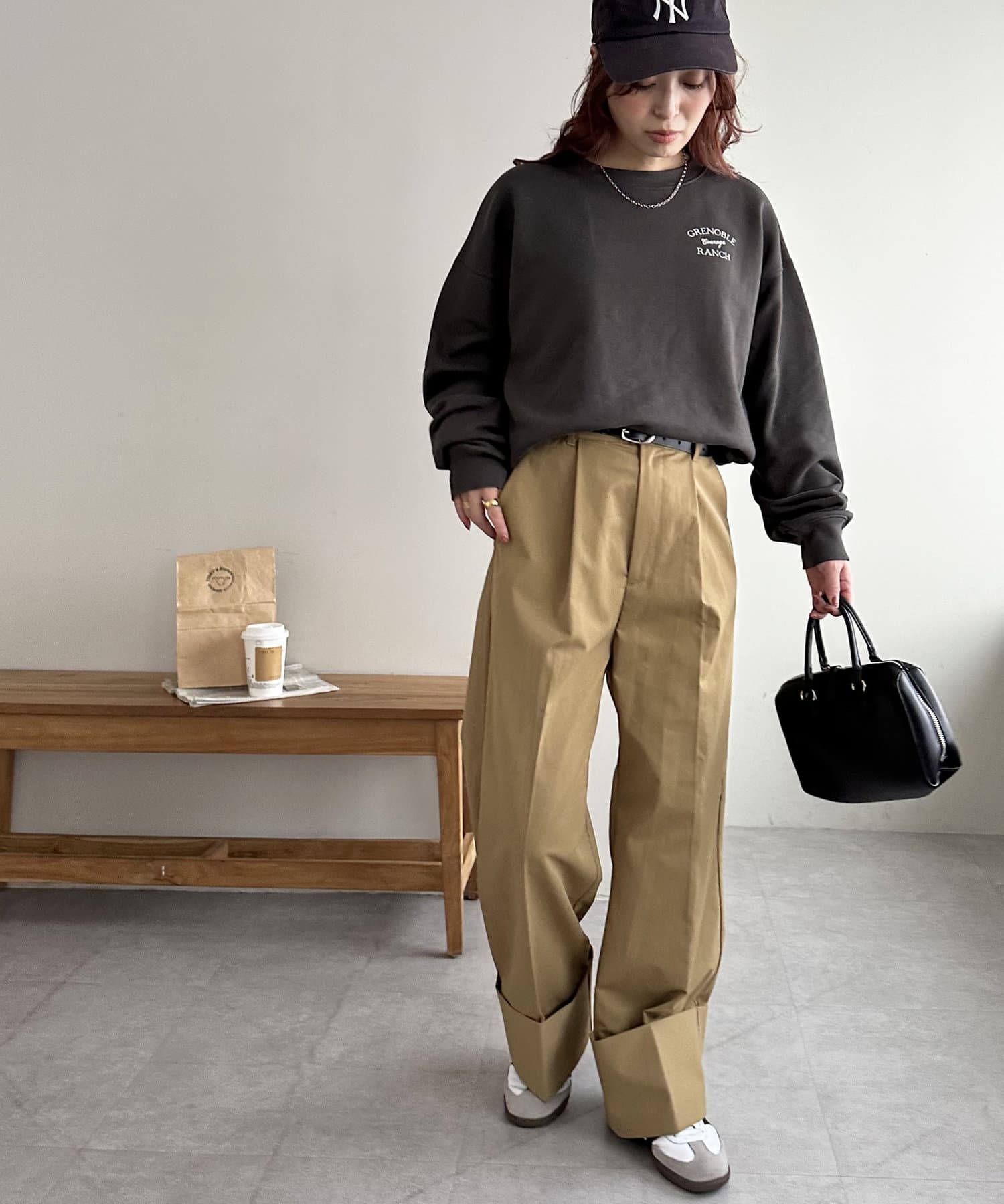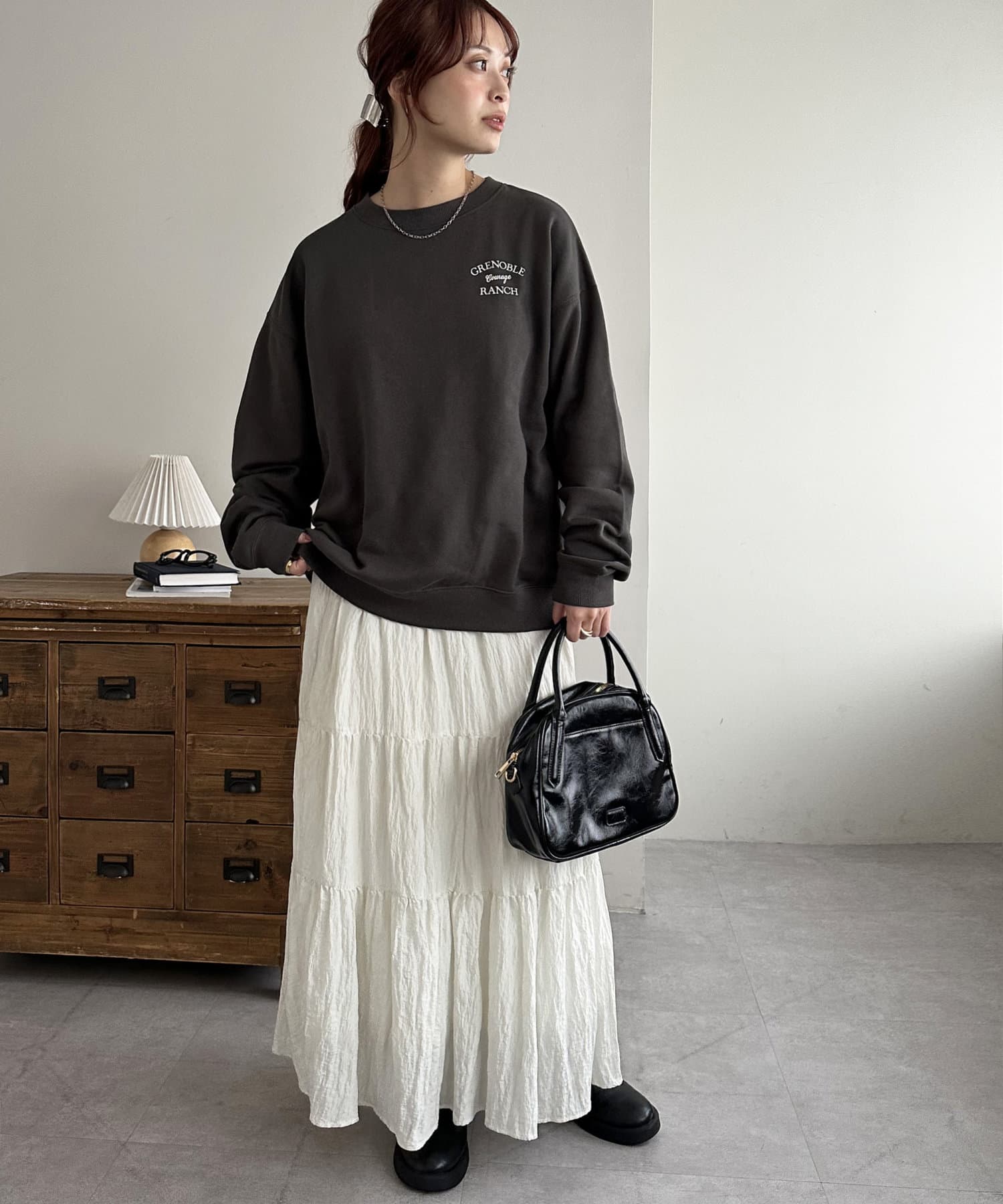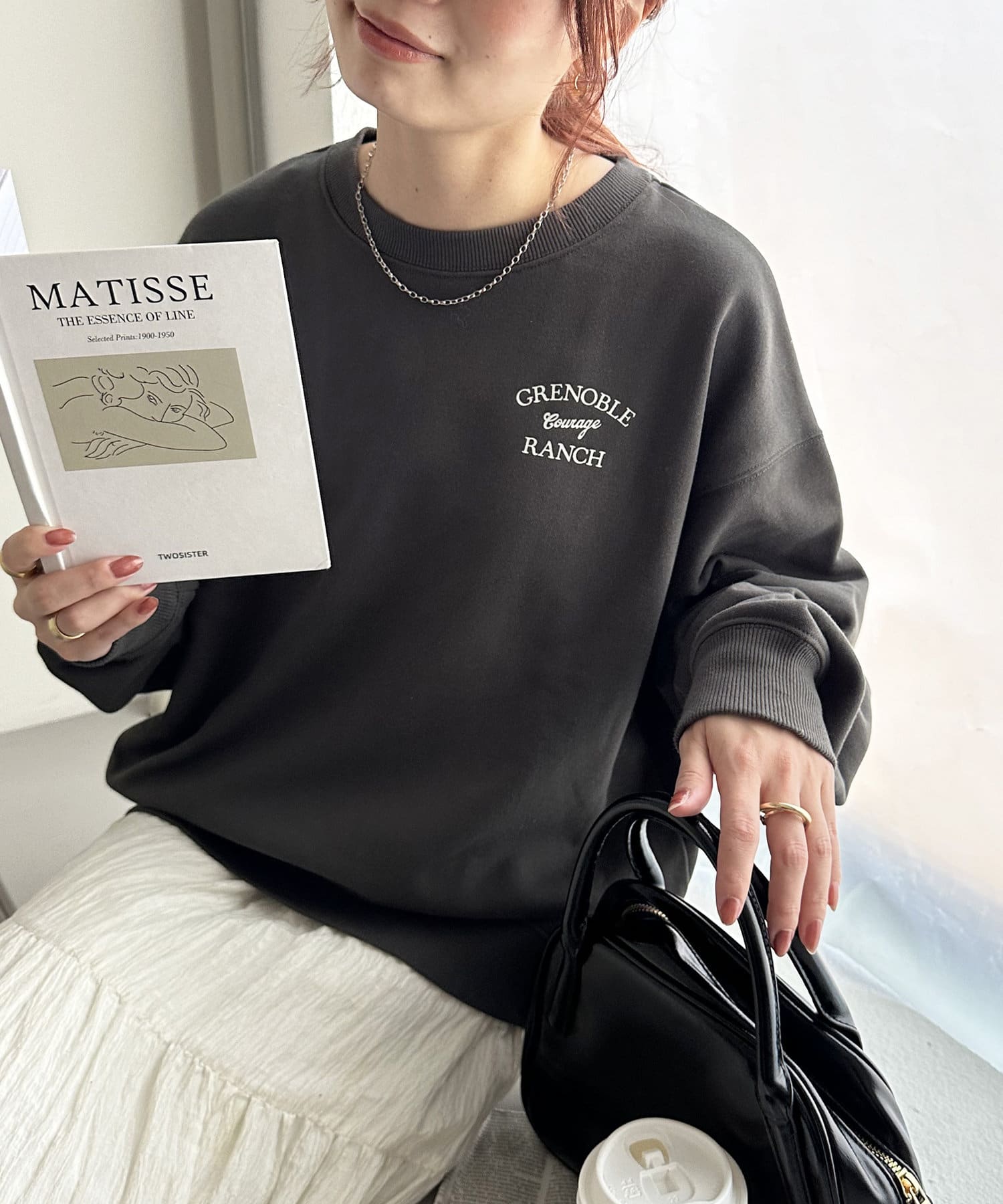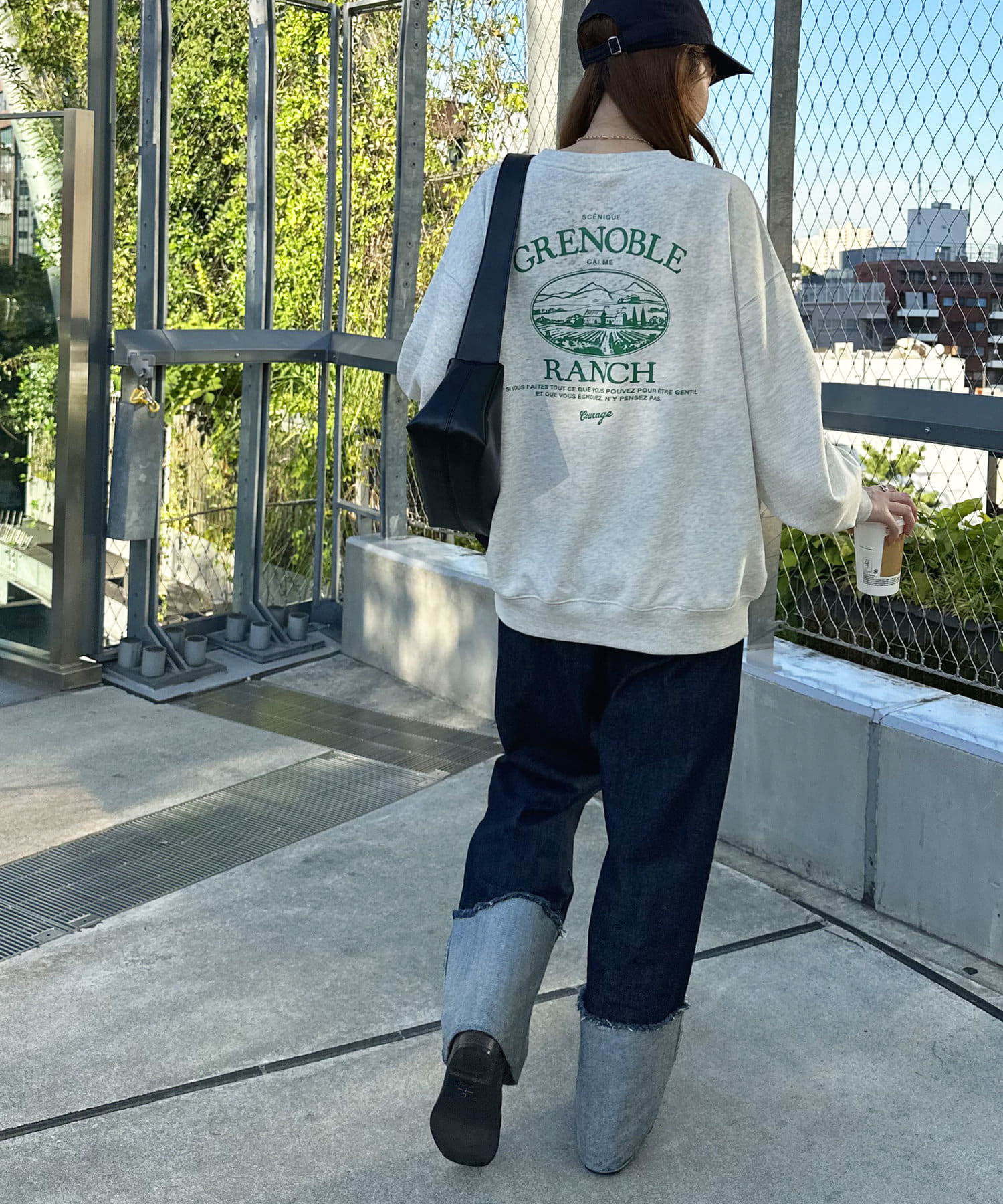 155㎝スタッフ: ゆるっと感のでるシルエットが、コーデに抜け感を出してくれるスウェット。カジュアル過ぎないロゴなので、甘めカジュアルなスタイリングが好きな方にもおすすめですよ◎