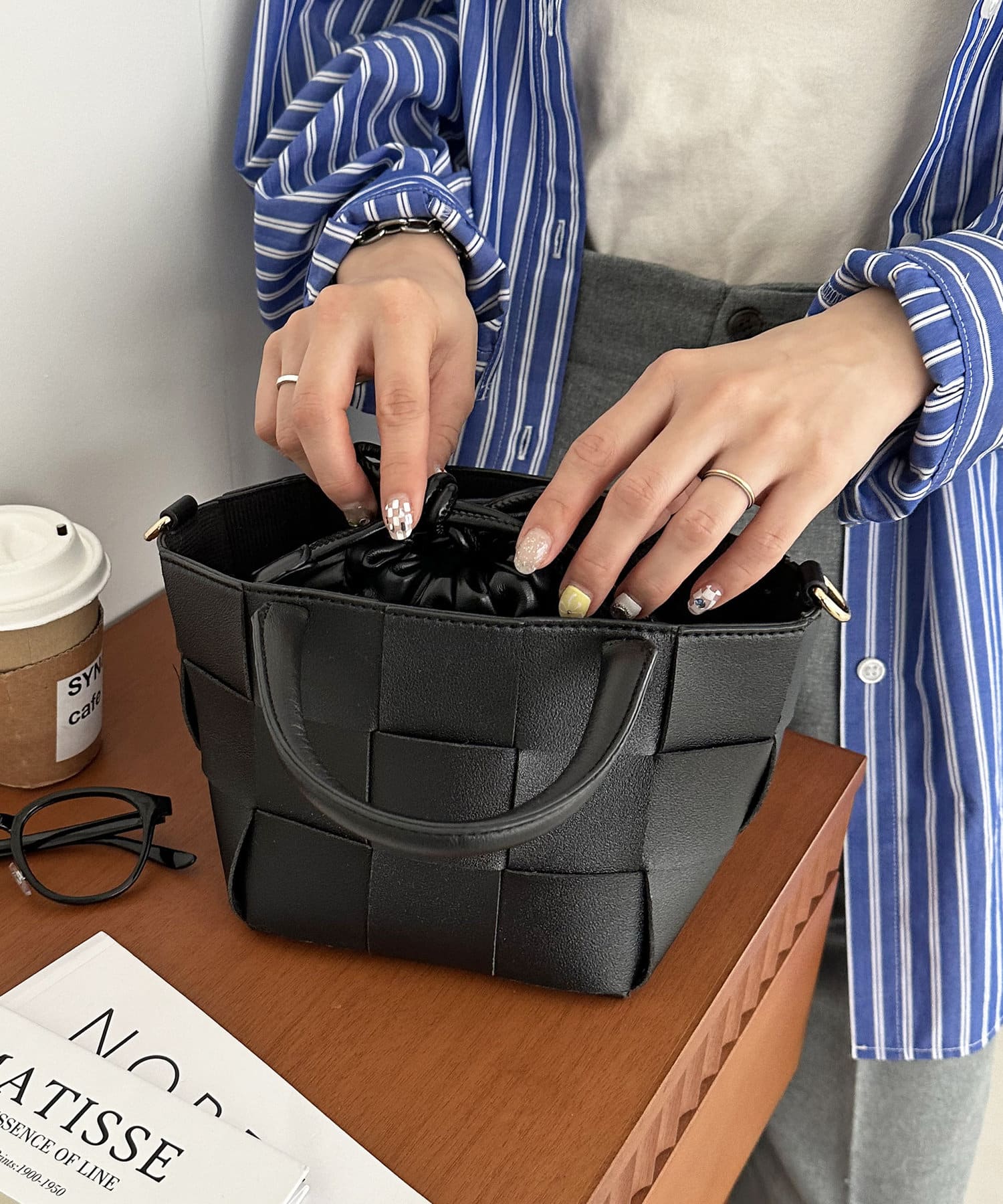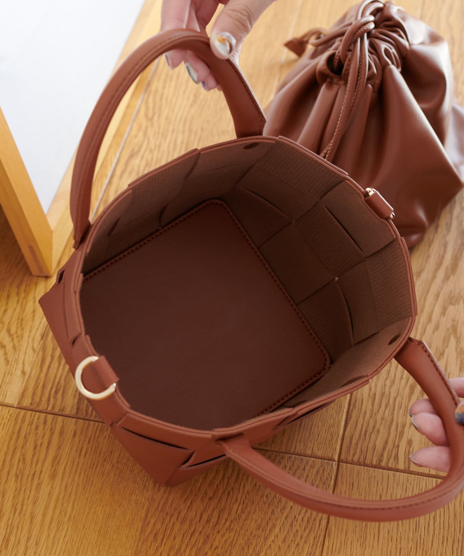 【WEB限定/4WAY/別々でも使える万能バッグ】メッシュ編み巾着ショルダーバッグ《詳細動画あり》