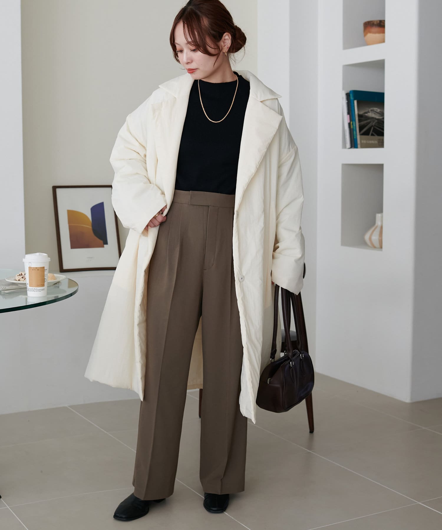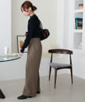 ウエストラインや腰回りが綺麗に見えるパンツなので、トップスをインしたコーデもおすすめ!