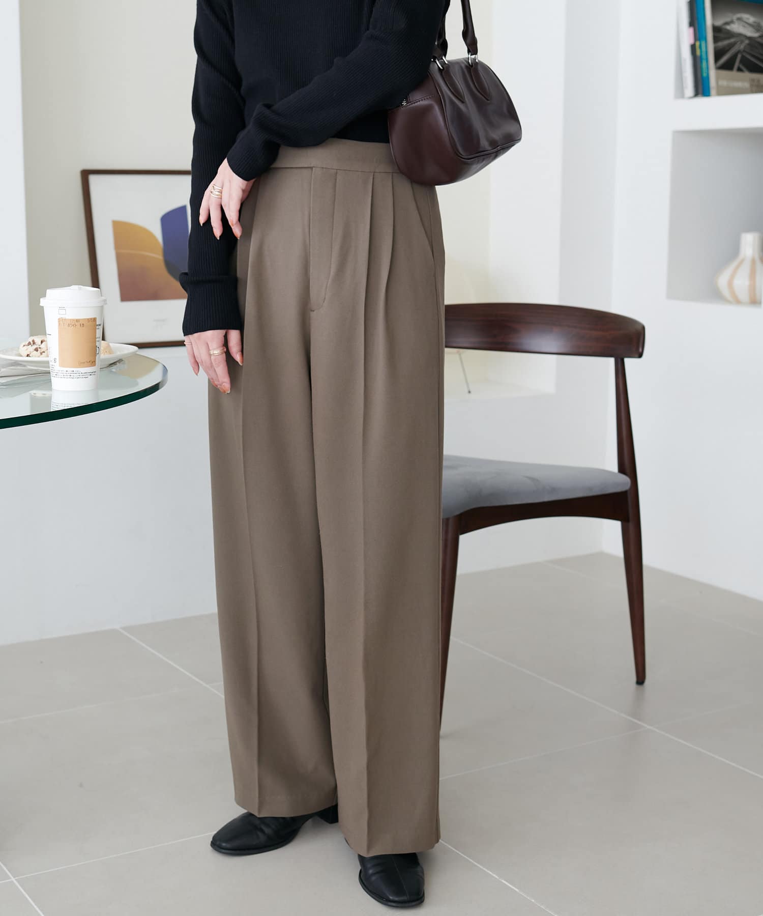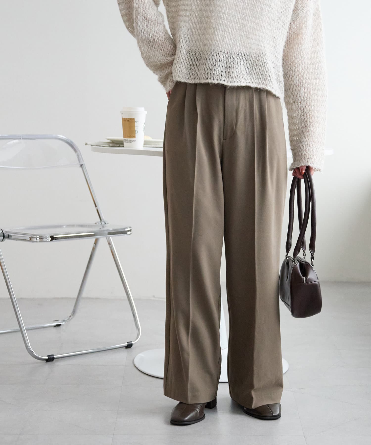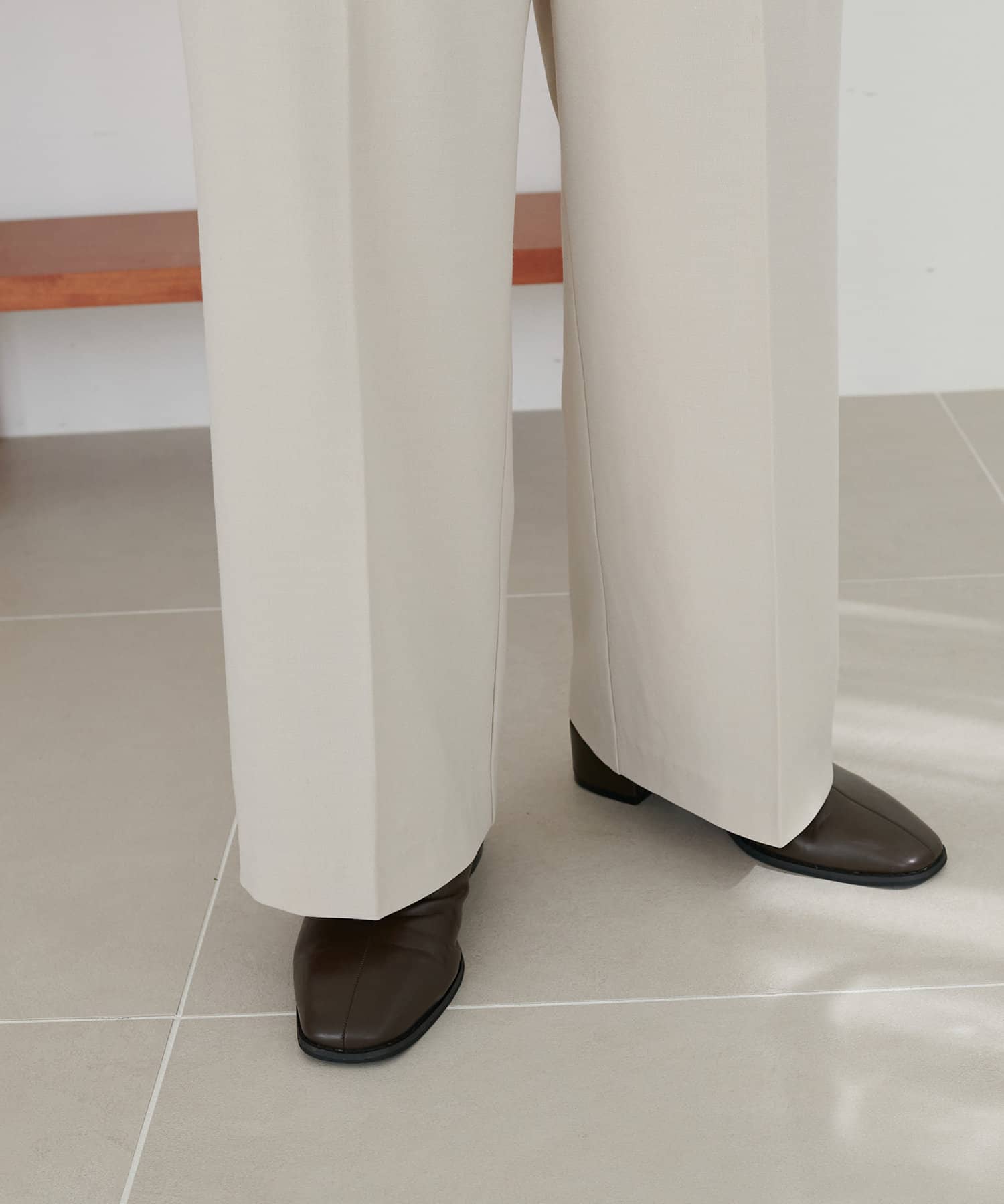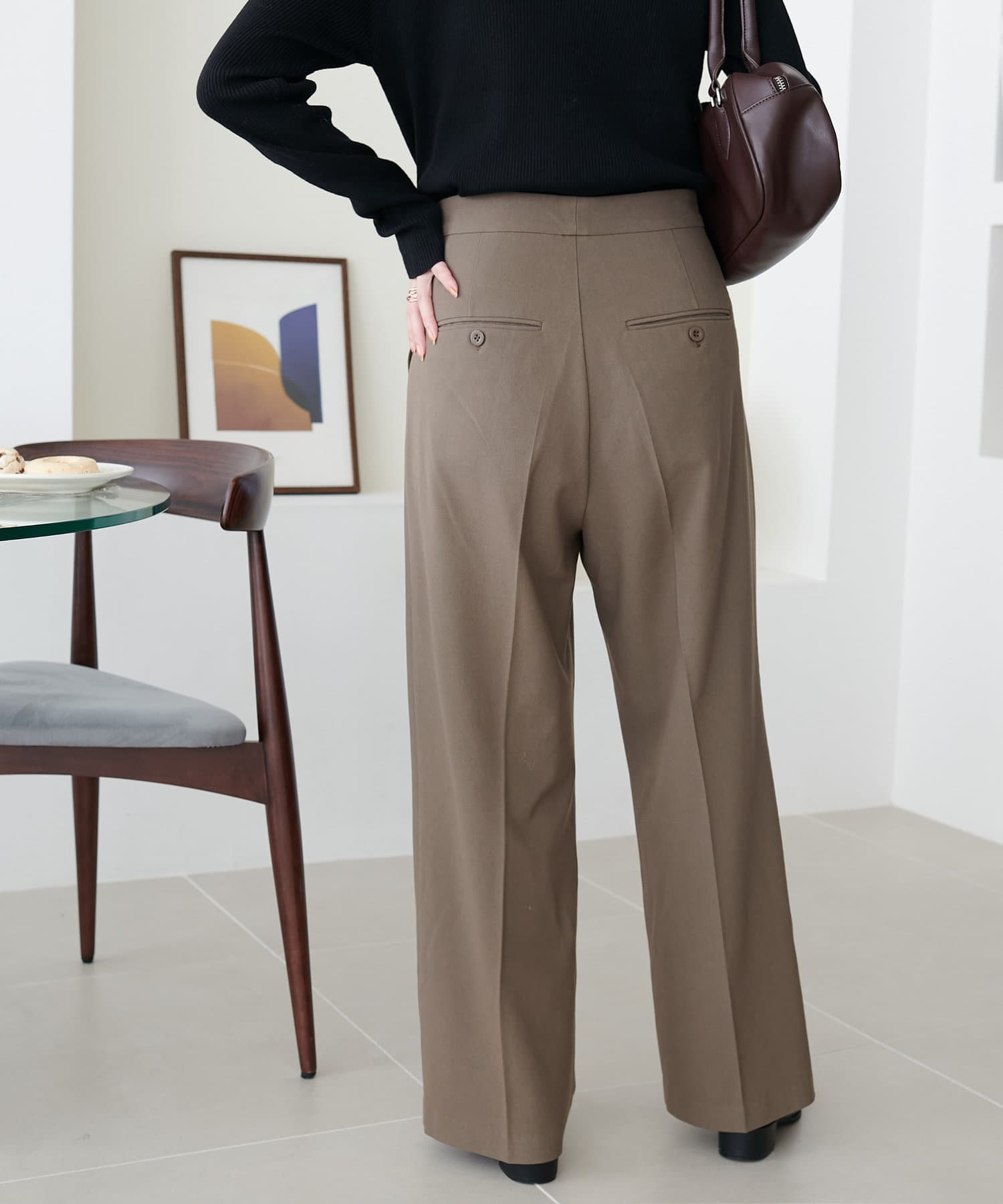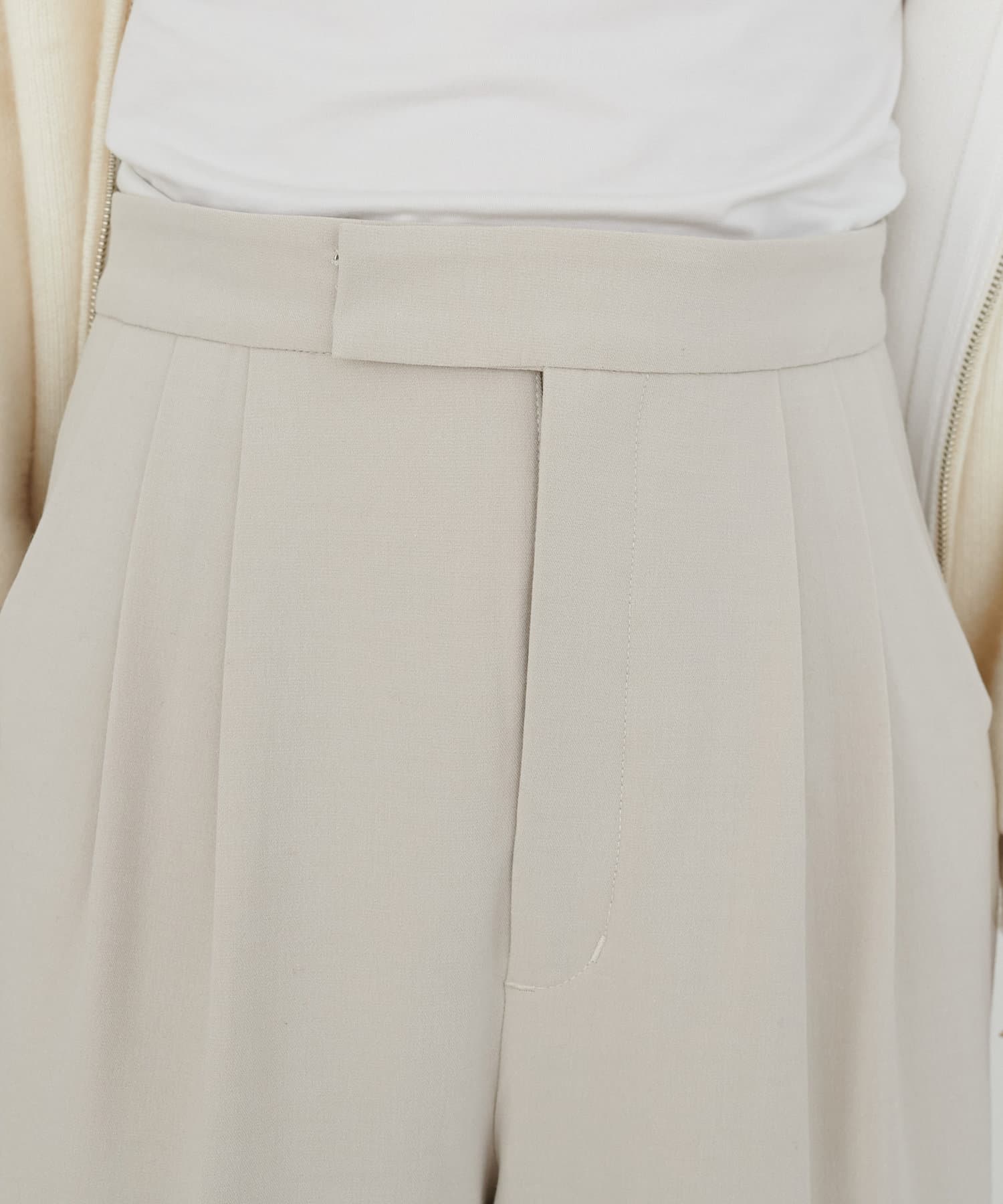 2タックデザインで腰回りをカバーし、キレイな落ち感のあるシルエットに仕上げました。