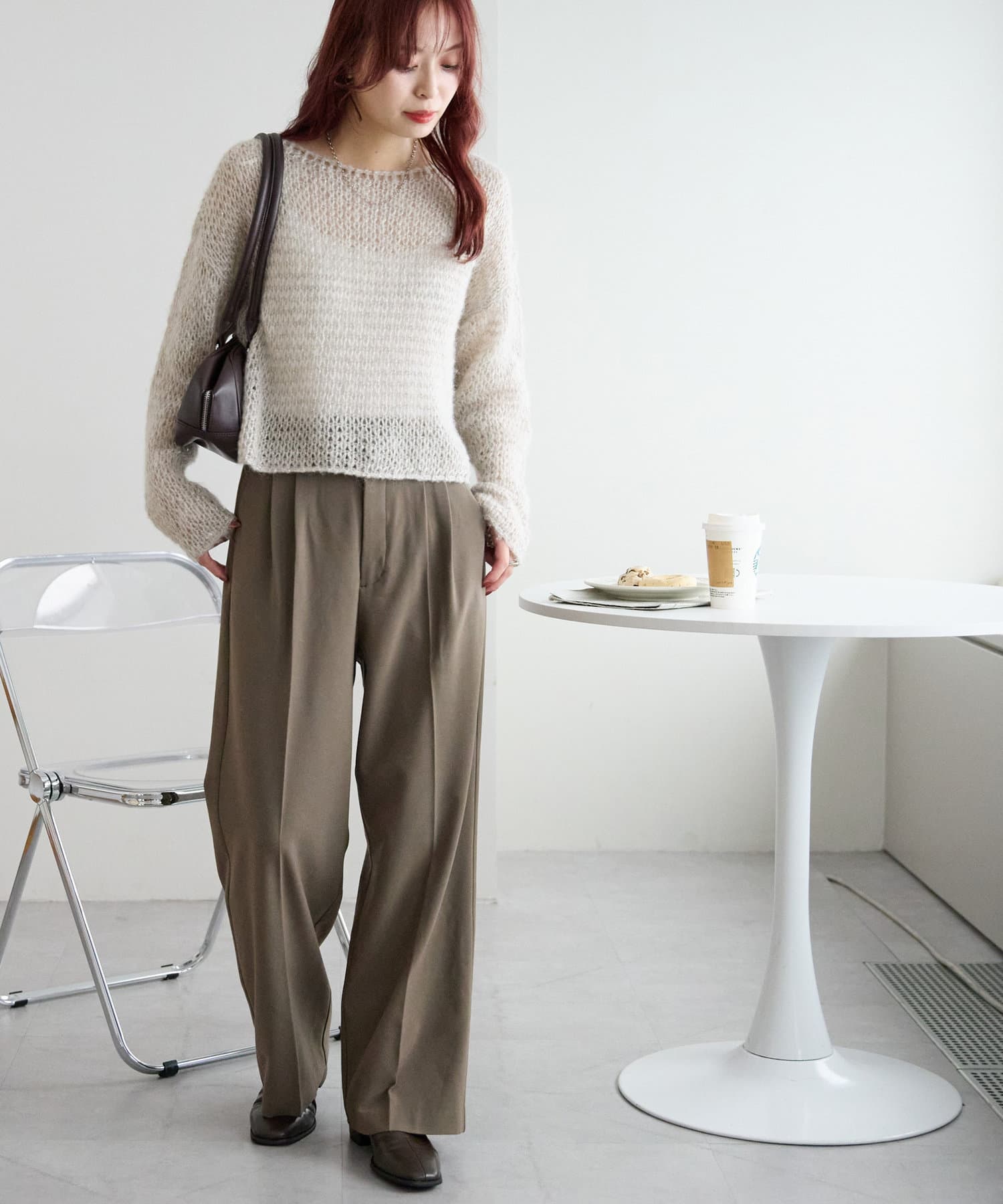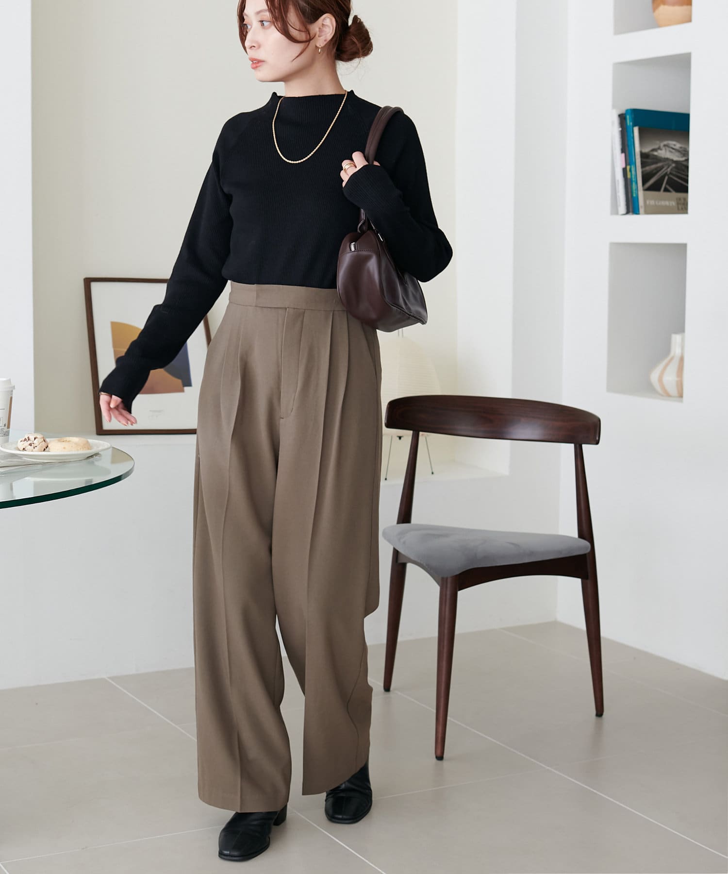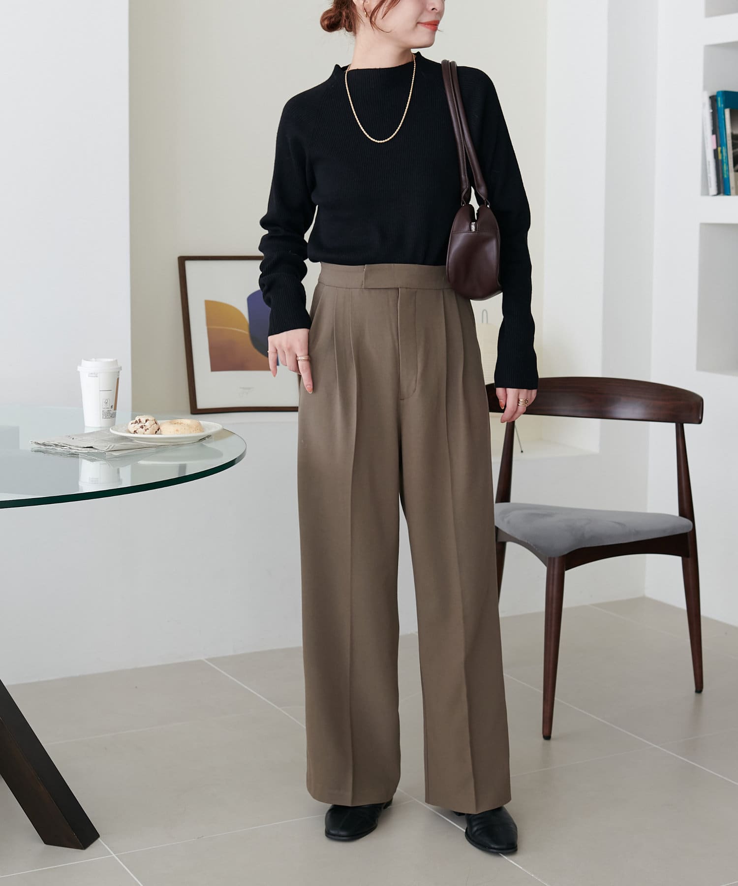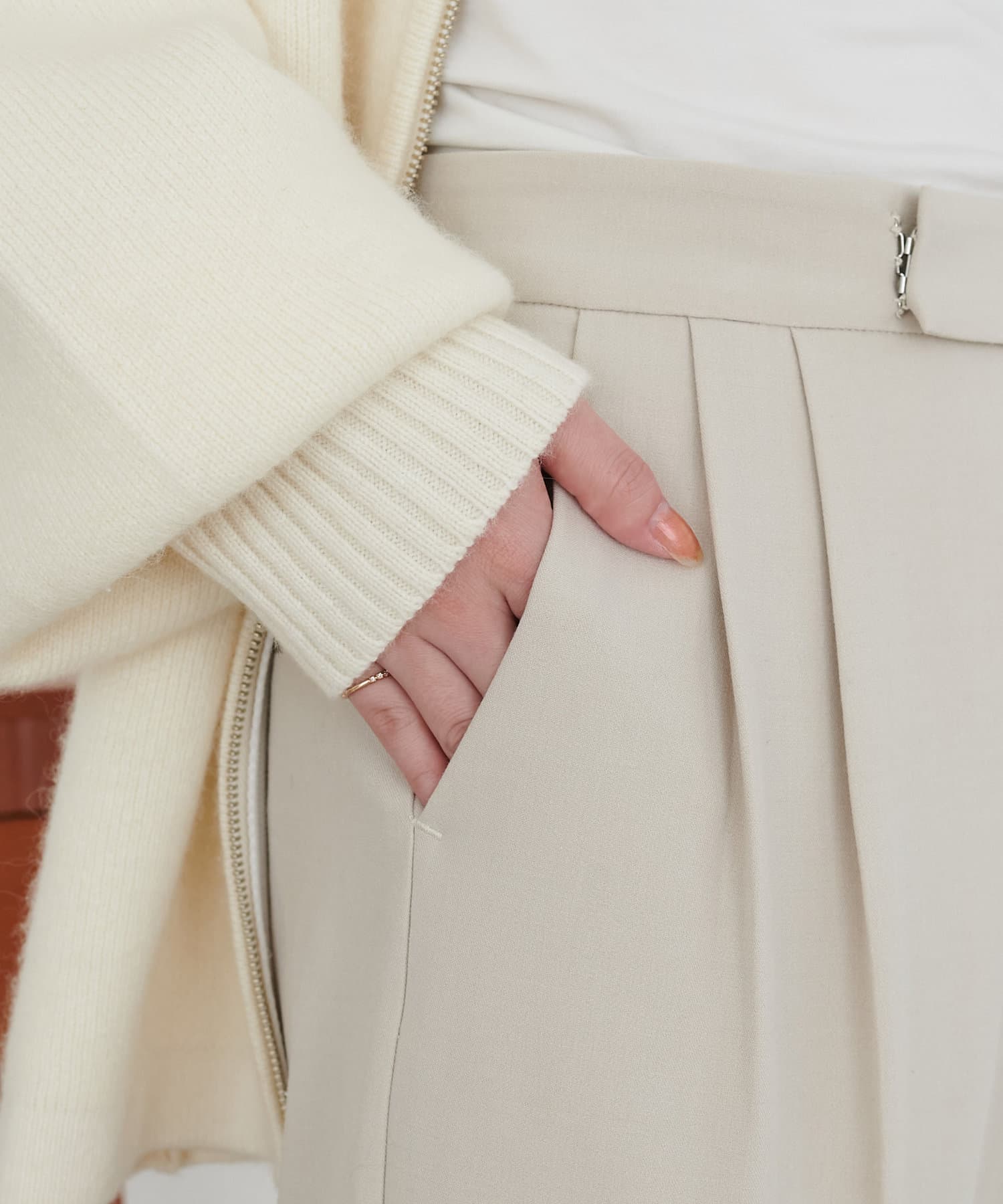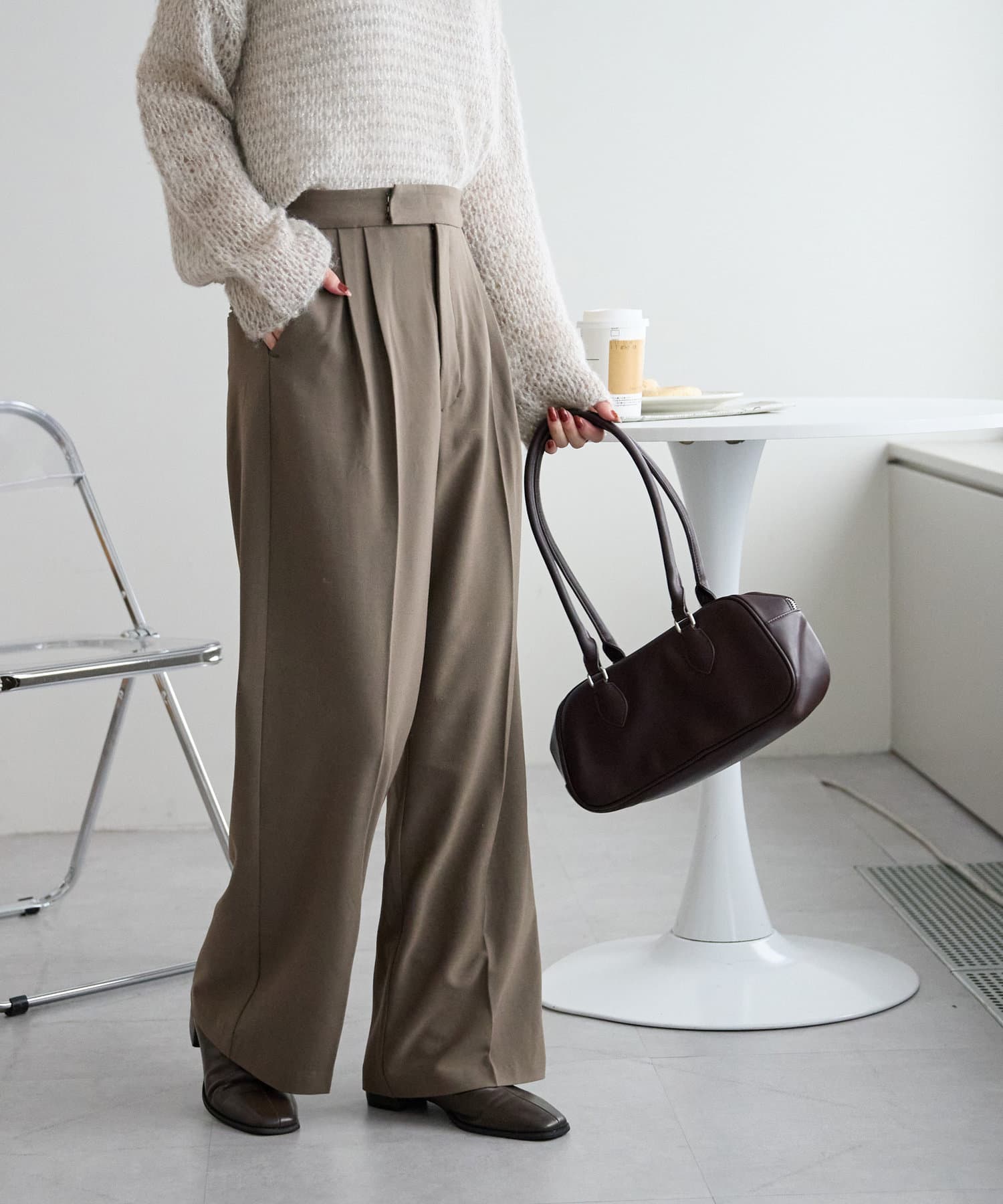 2タックデザインで腰回りをカバーし、キレイな落ち感のあるシルエットに仕上げました。