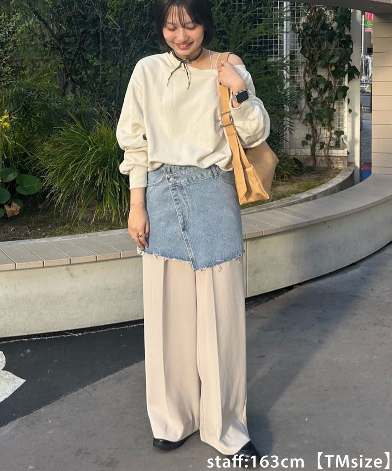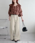 ・ワイドパンツなので、コンパクトな着丈のトップス合わせはメリハリのあるコーデに!