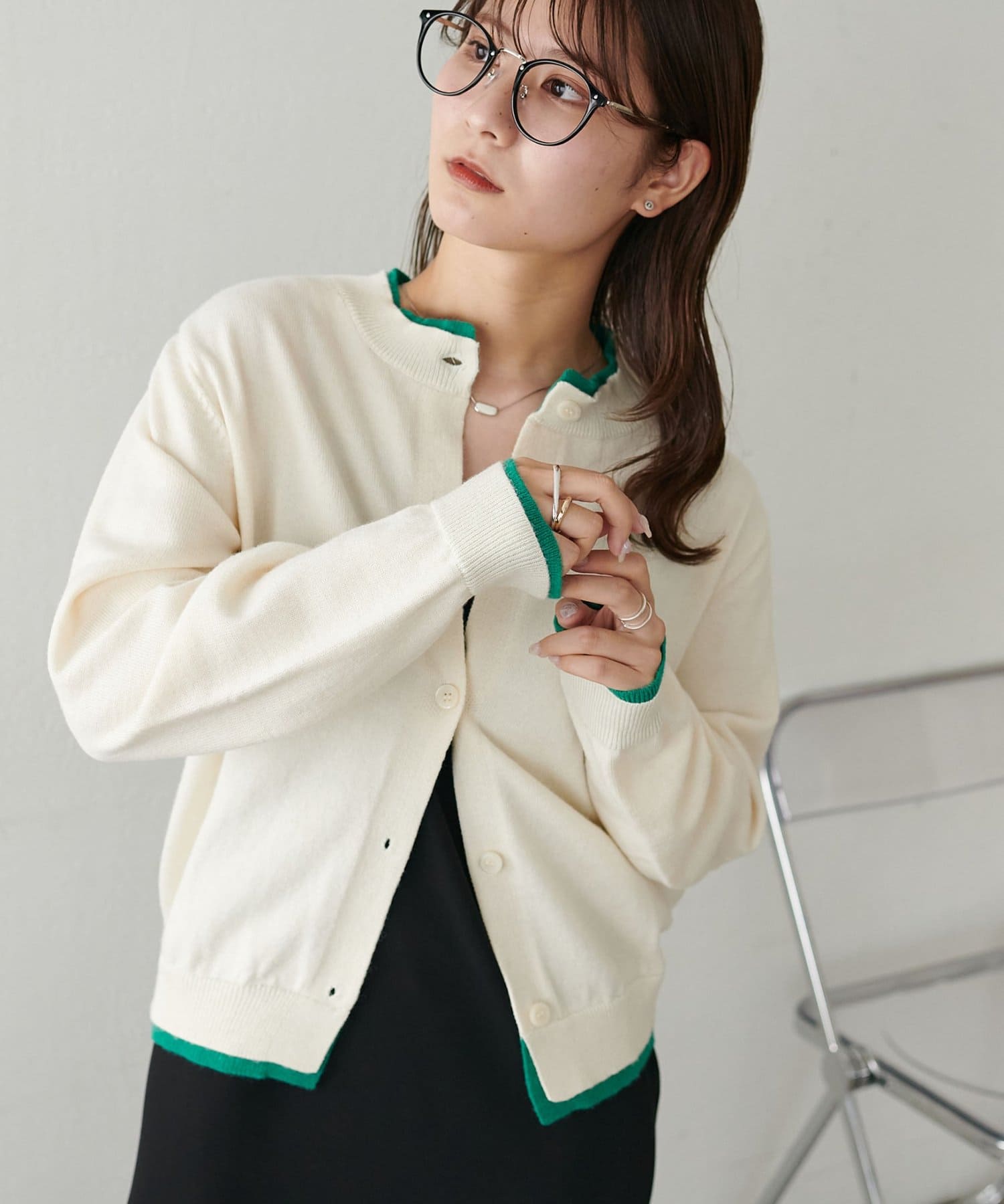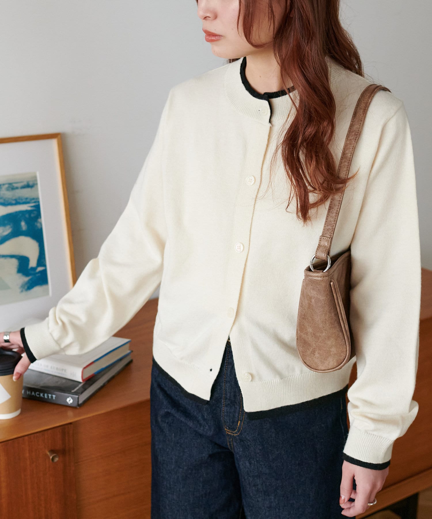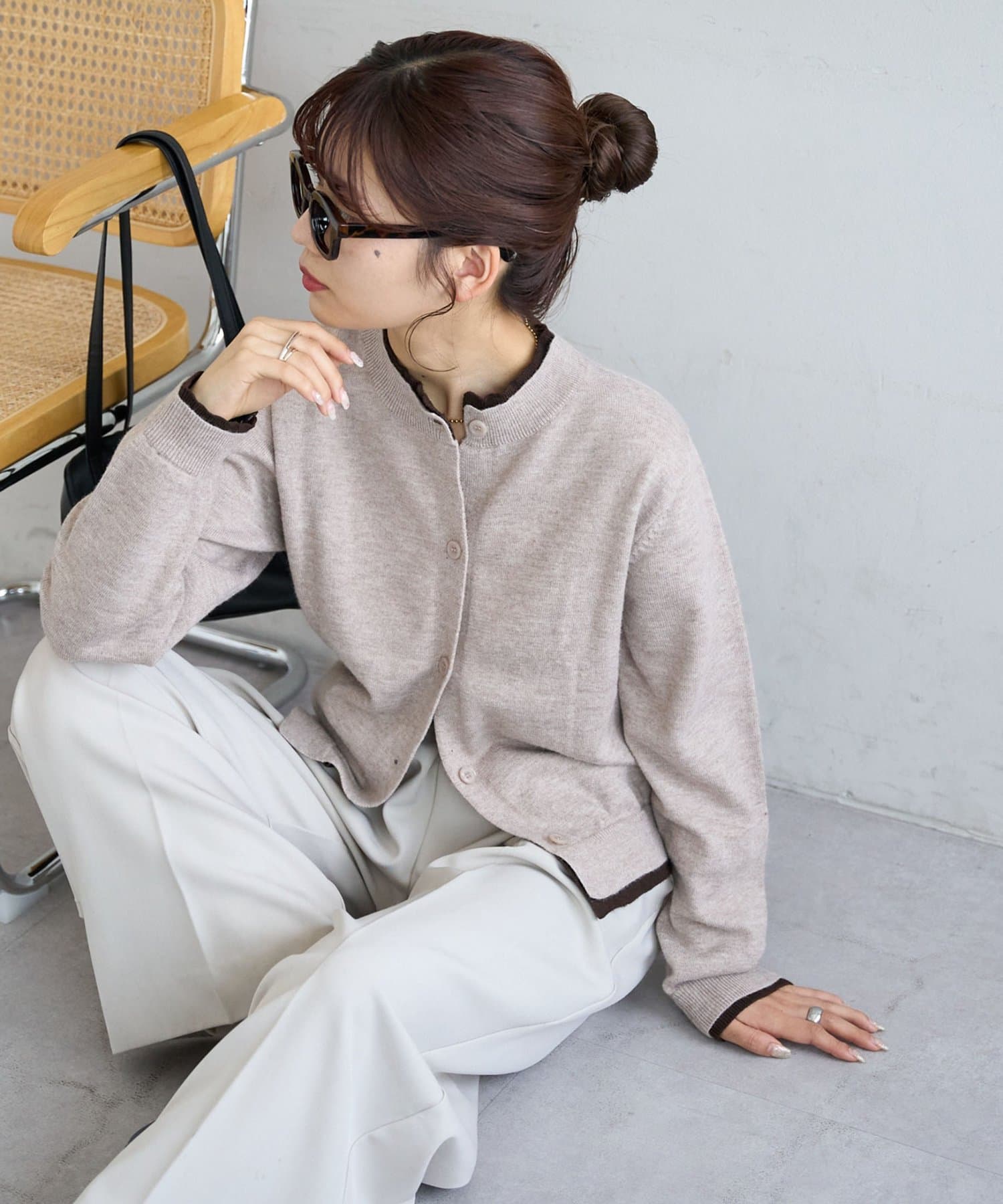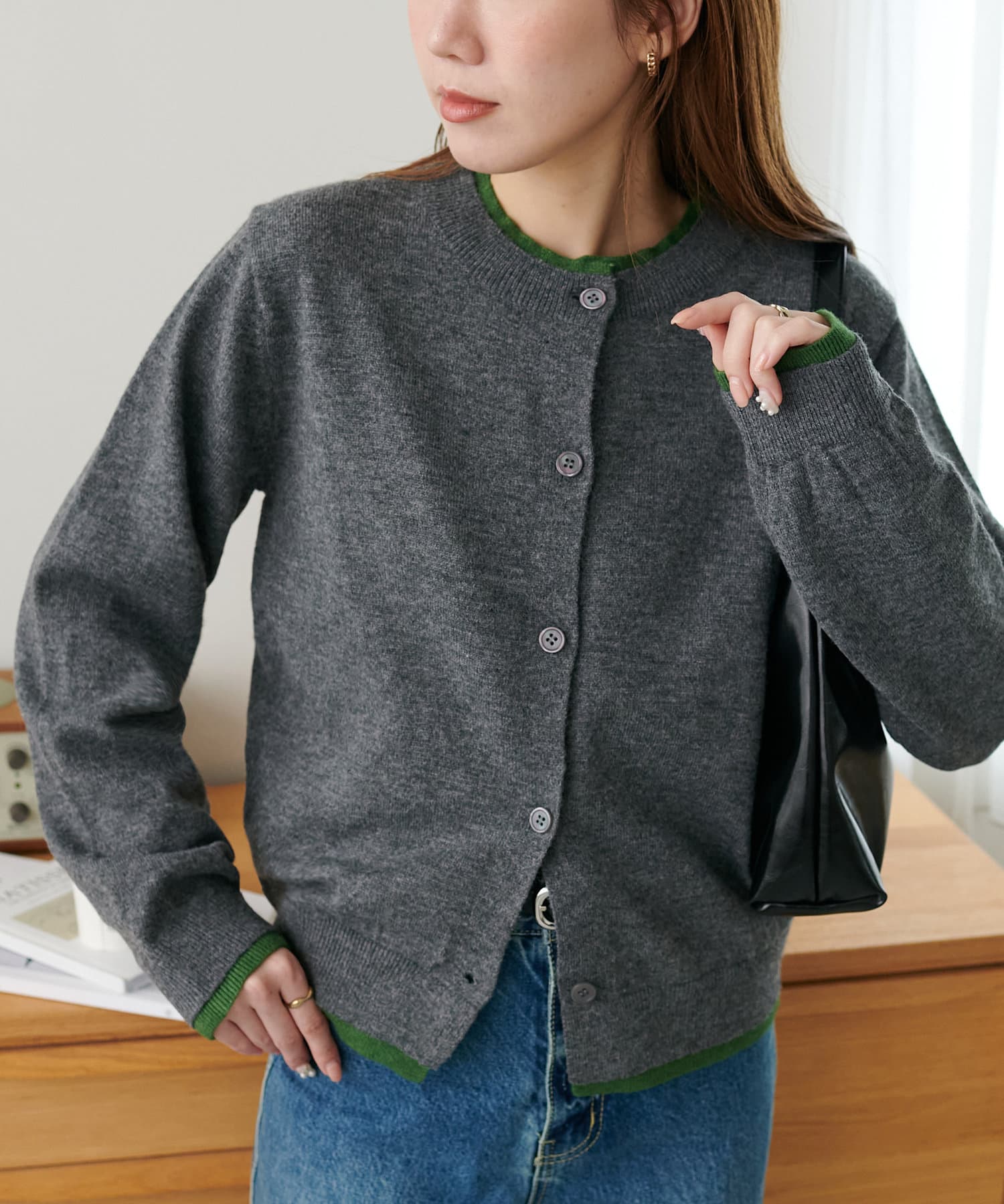 シンプルながらにデザイン性のあるクルーネックカーディガンが登場♪