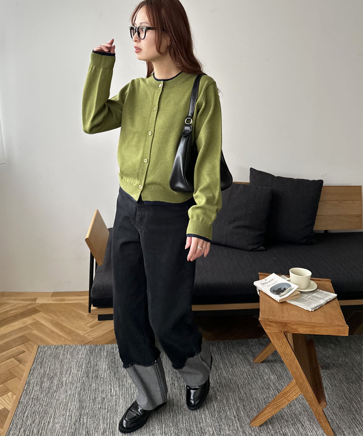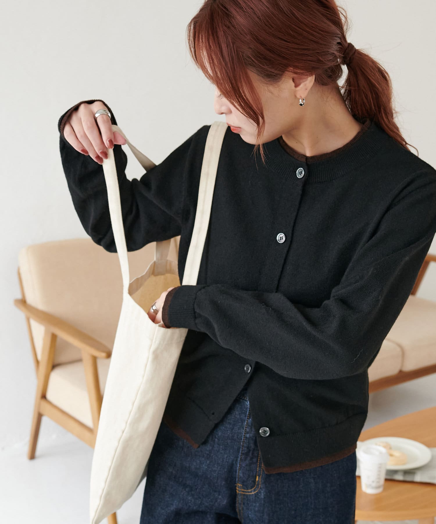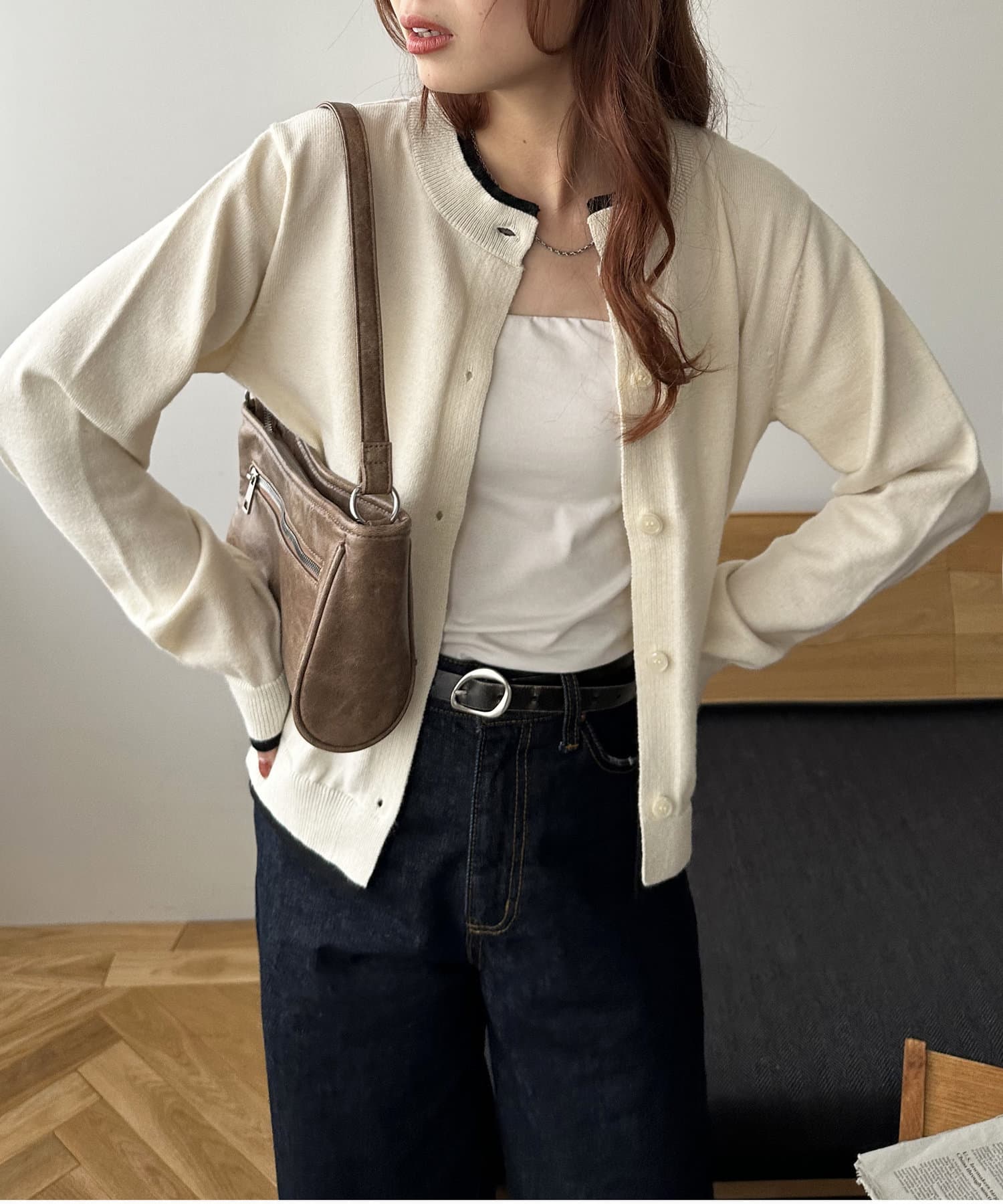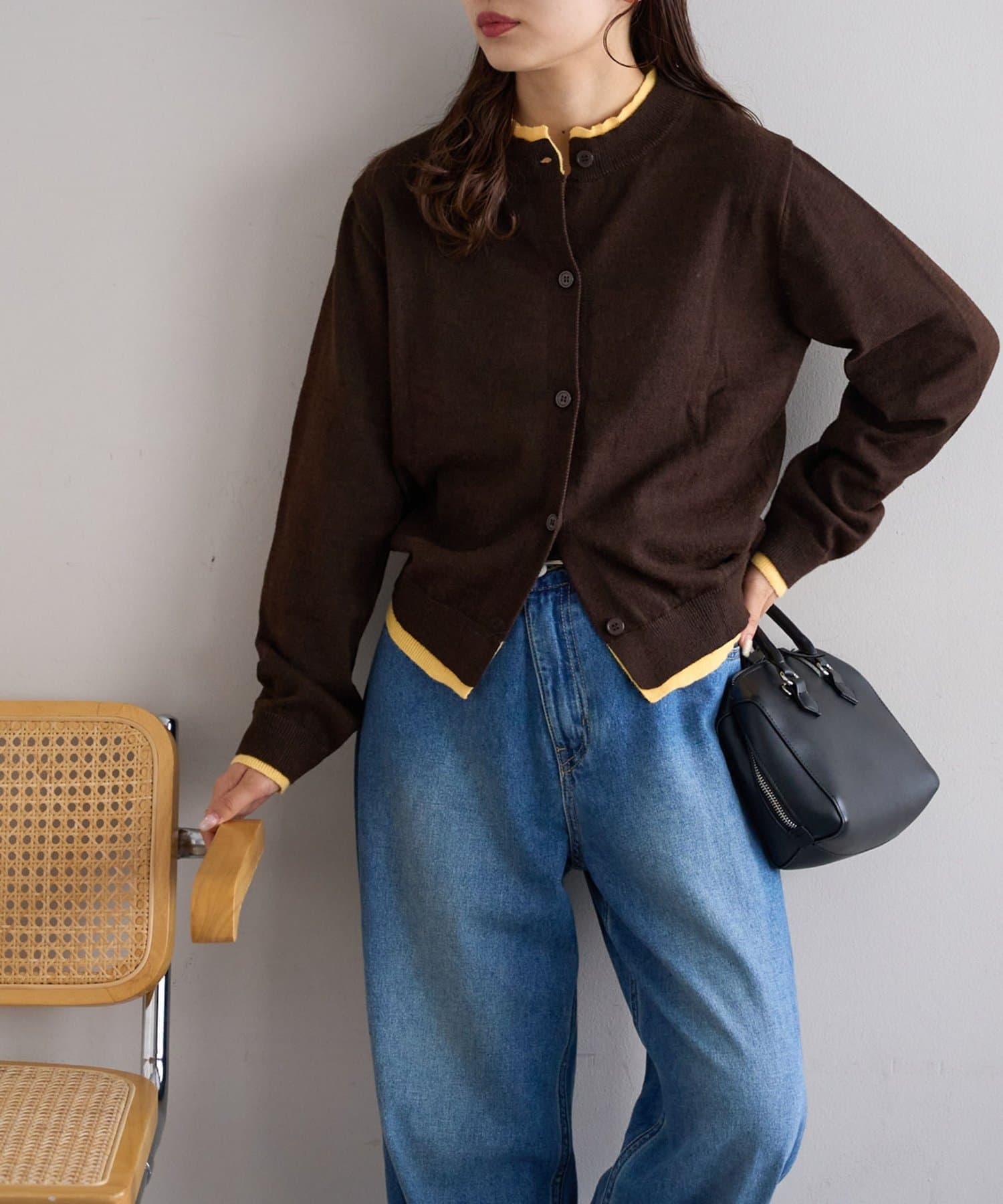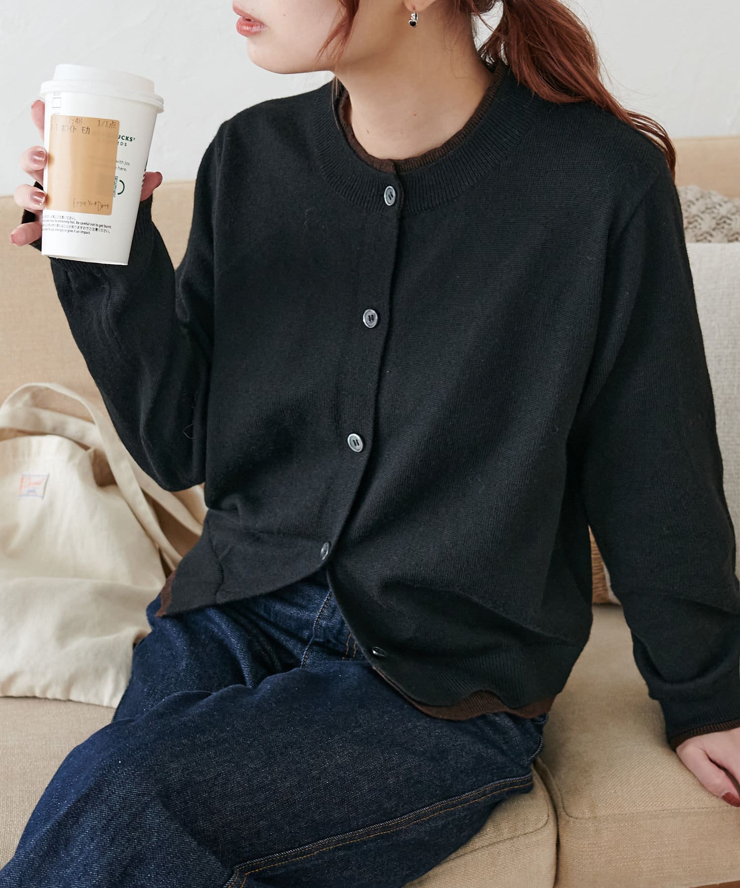 シンプルながらにデザイン性のあるクルーネックカーディガンが登場♪