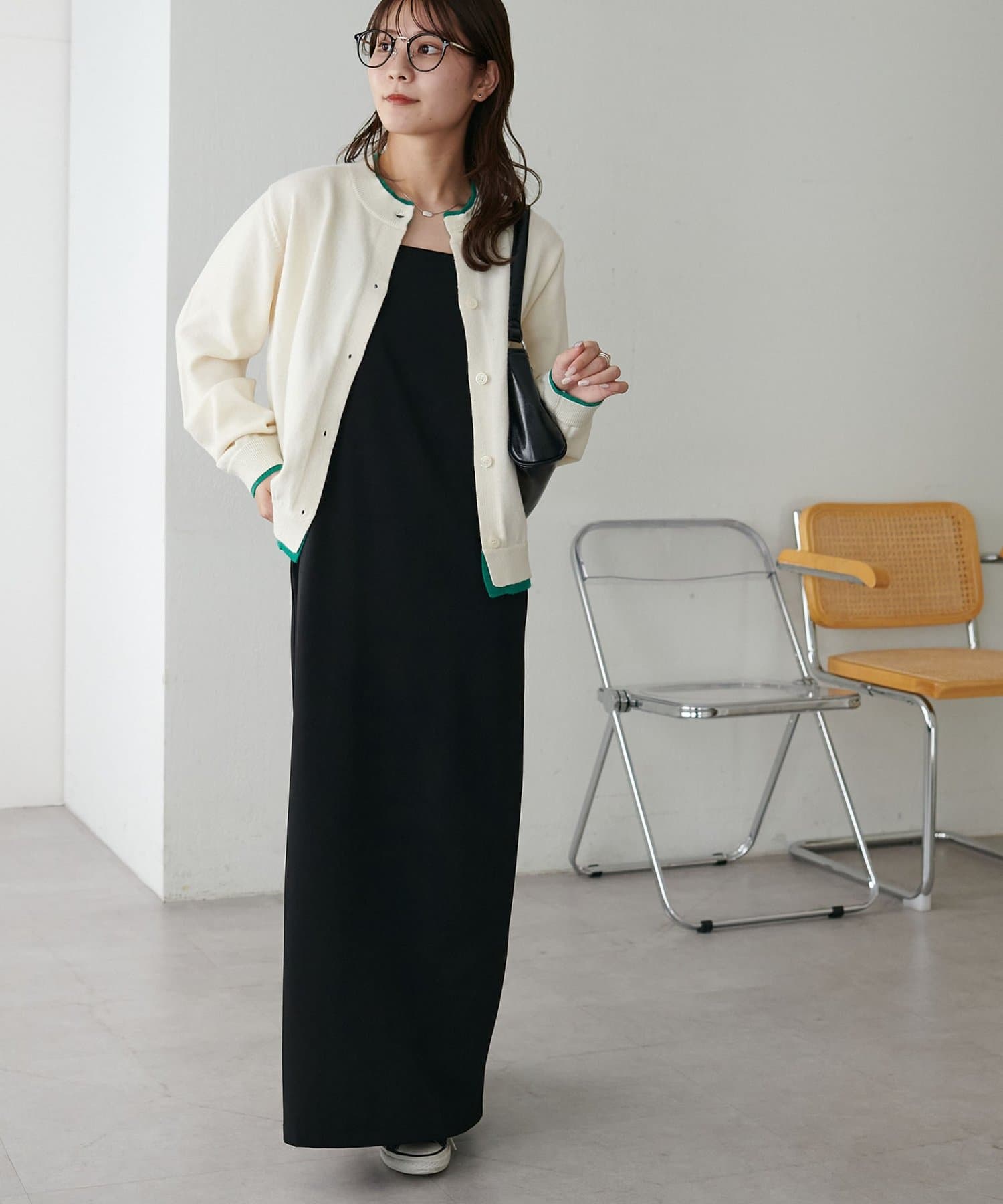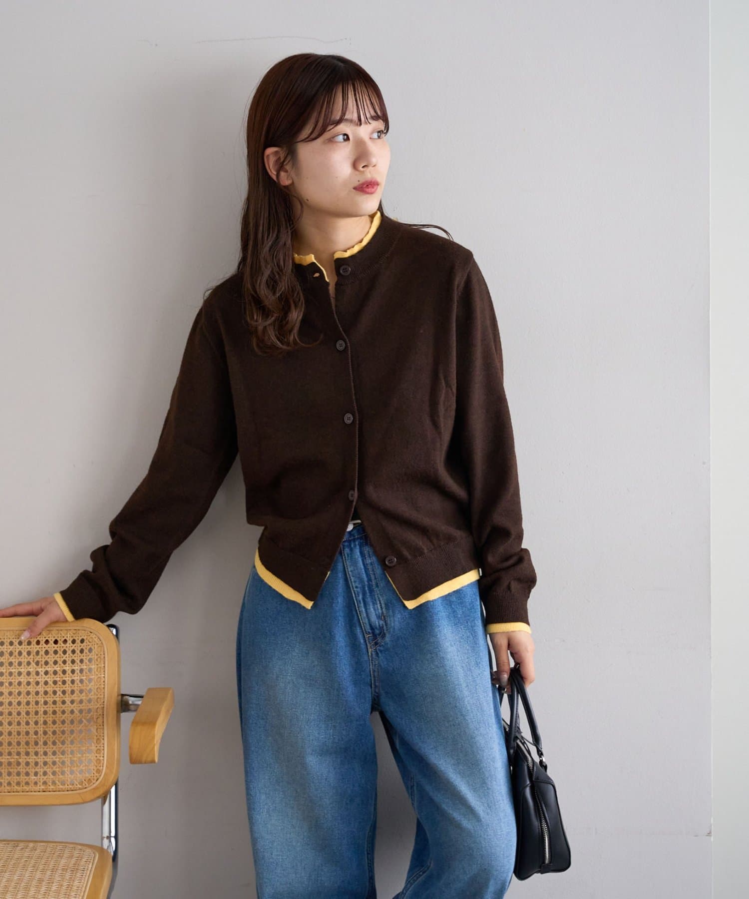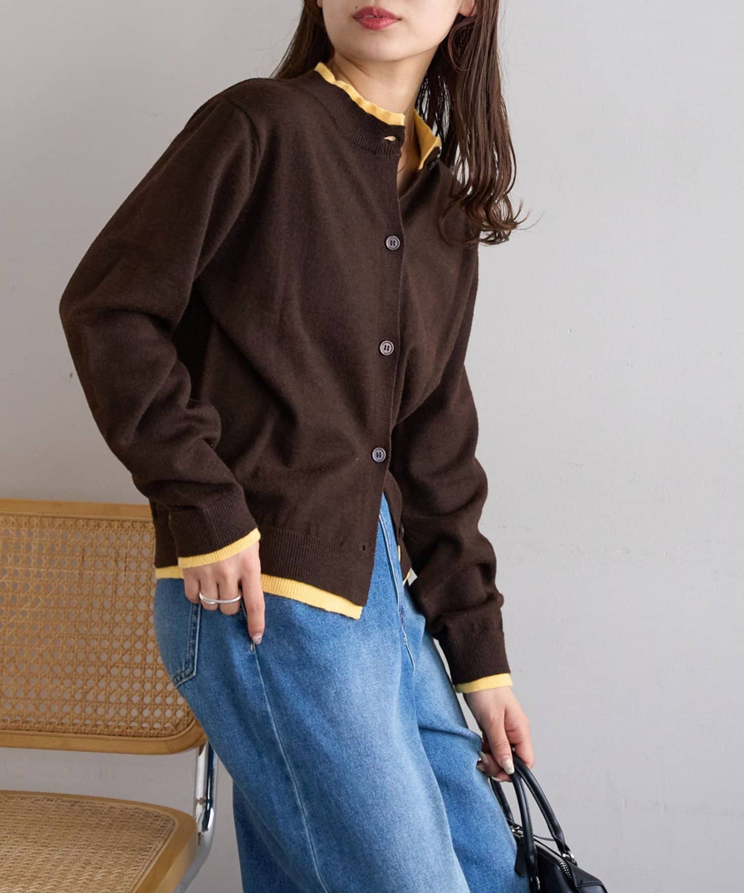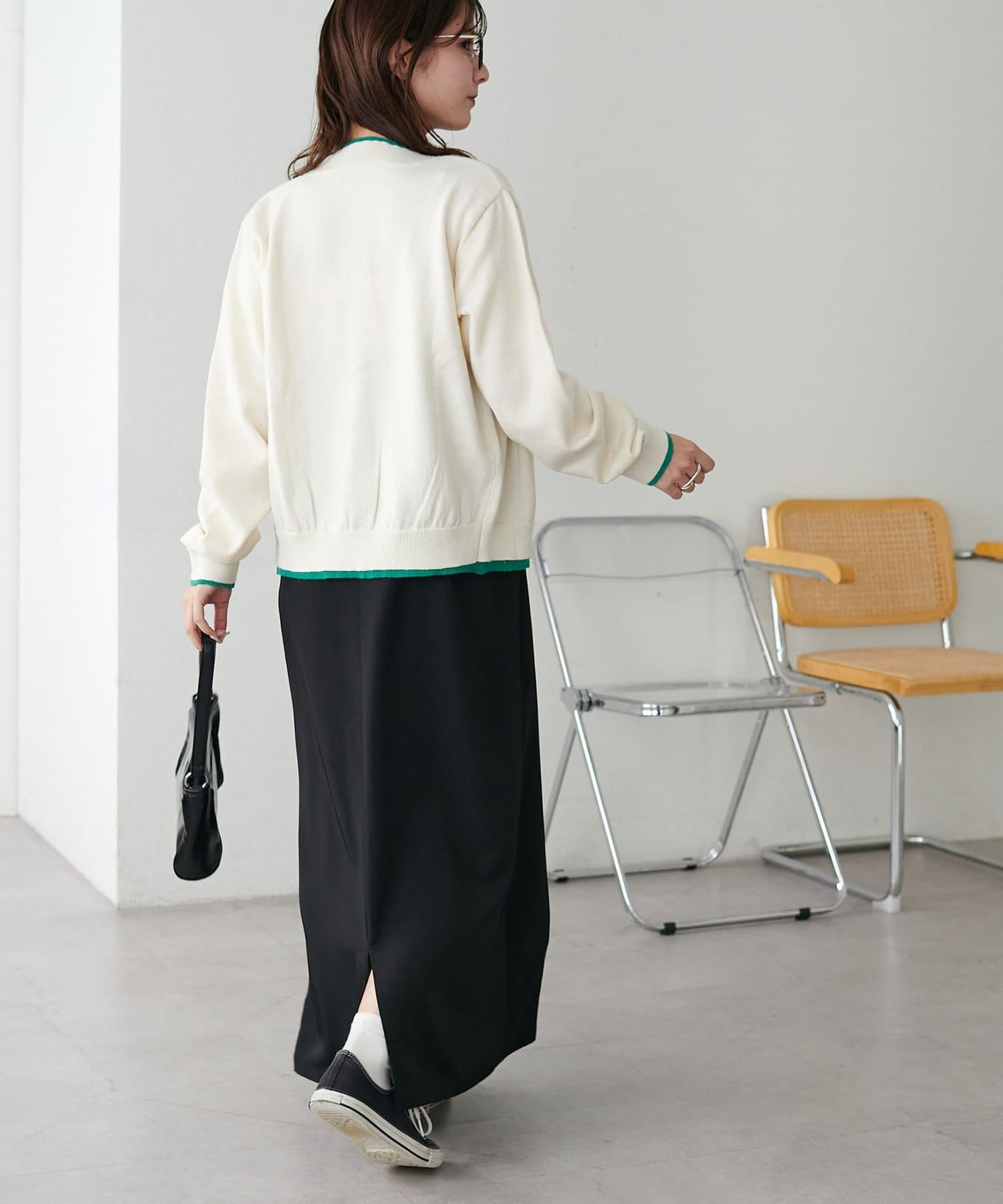 ・158cmスタッフ(Mサイズ着用): ボディラインを拾い過ぎない程よいサイズ感♪カラーによって異なるレイヤードの配色も可愛い!