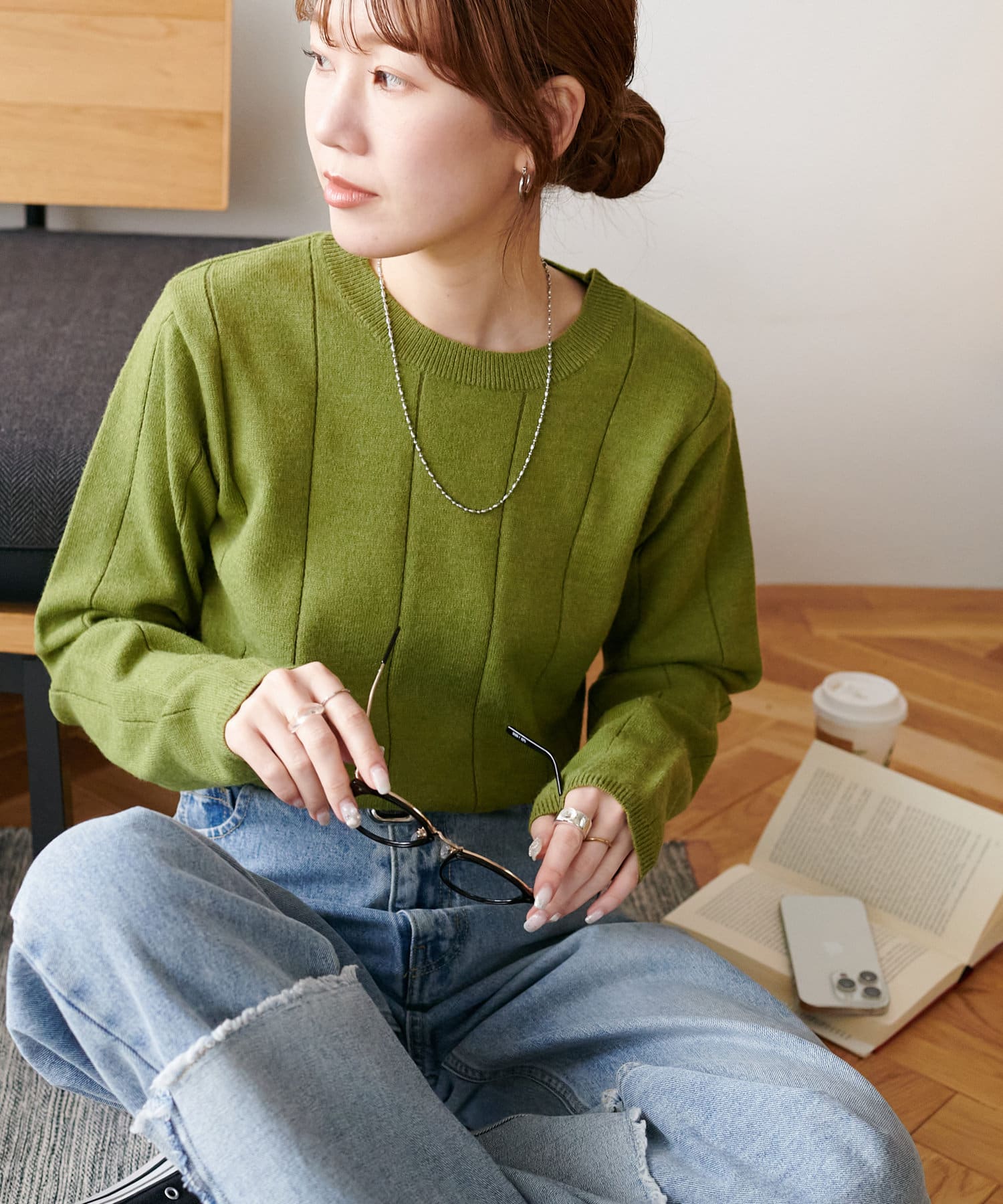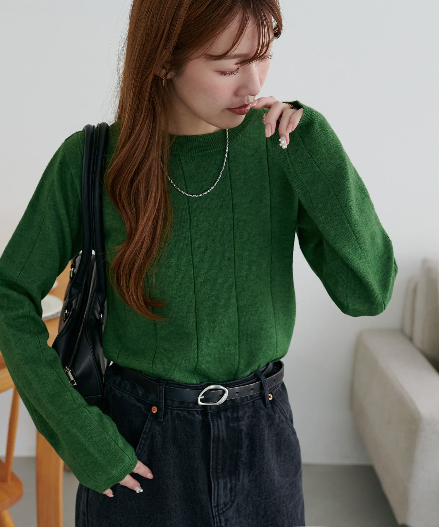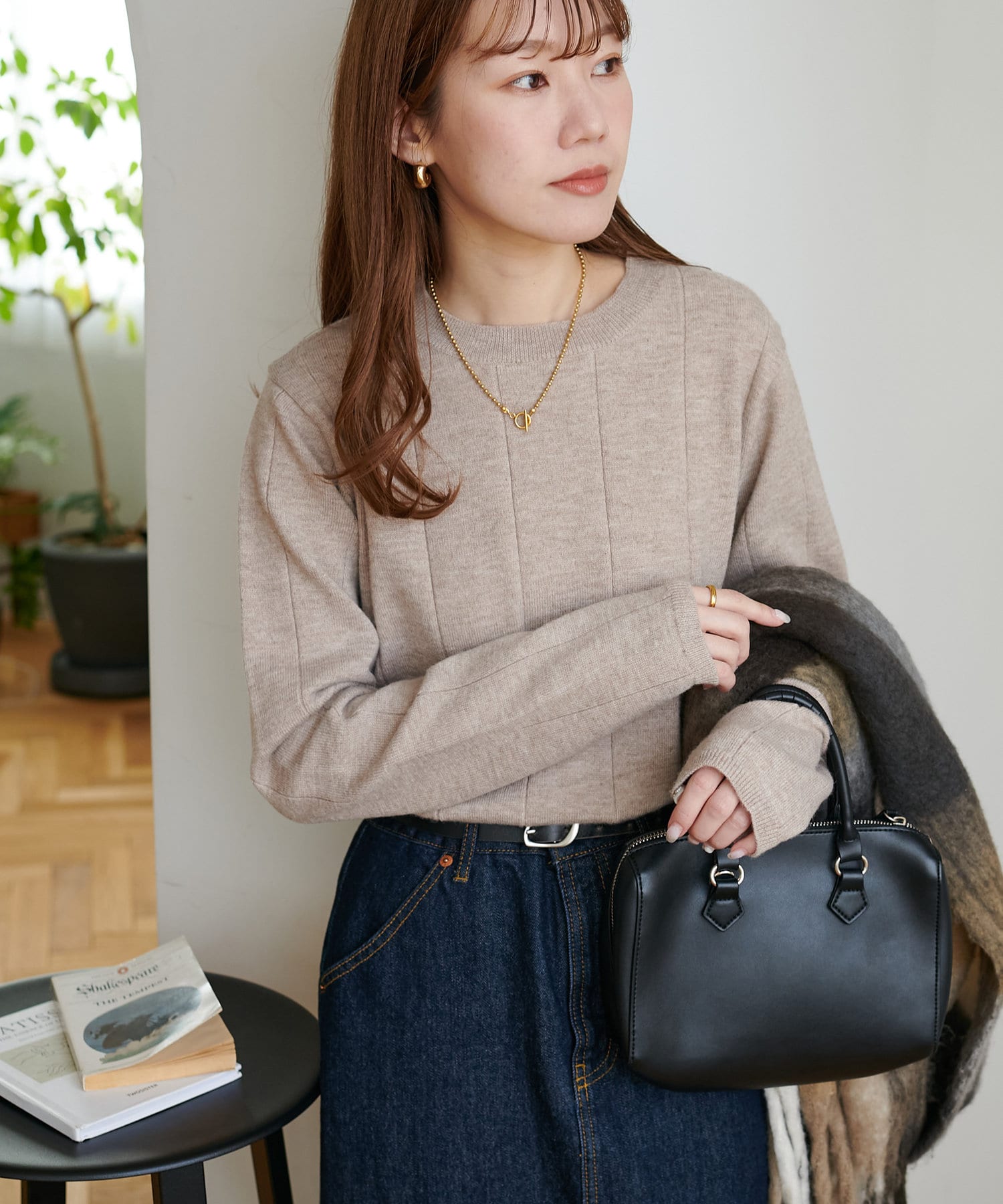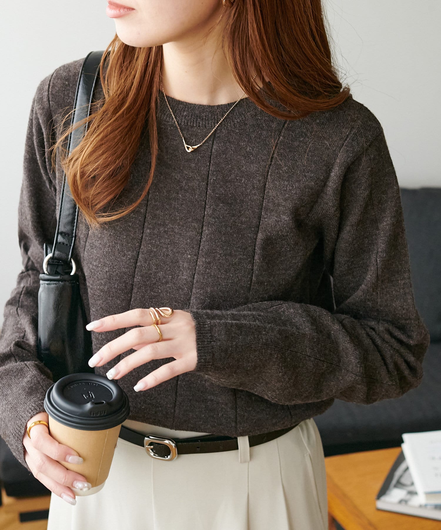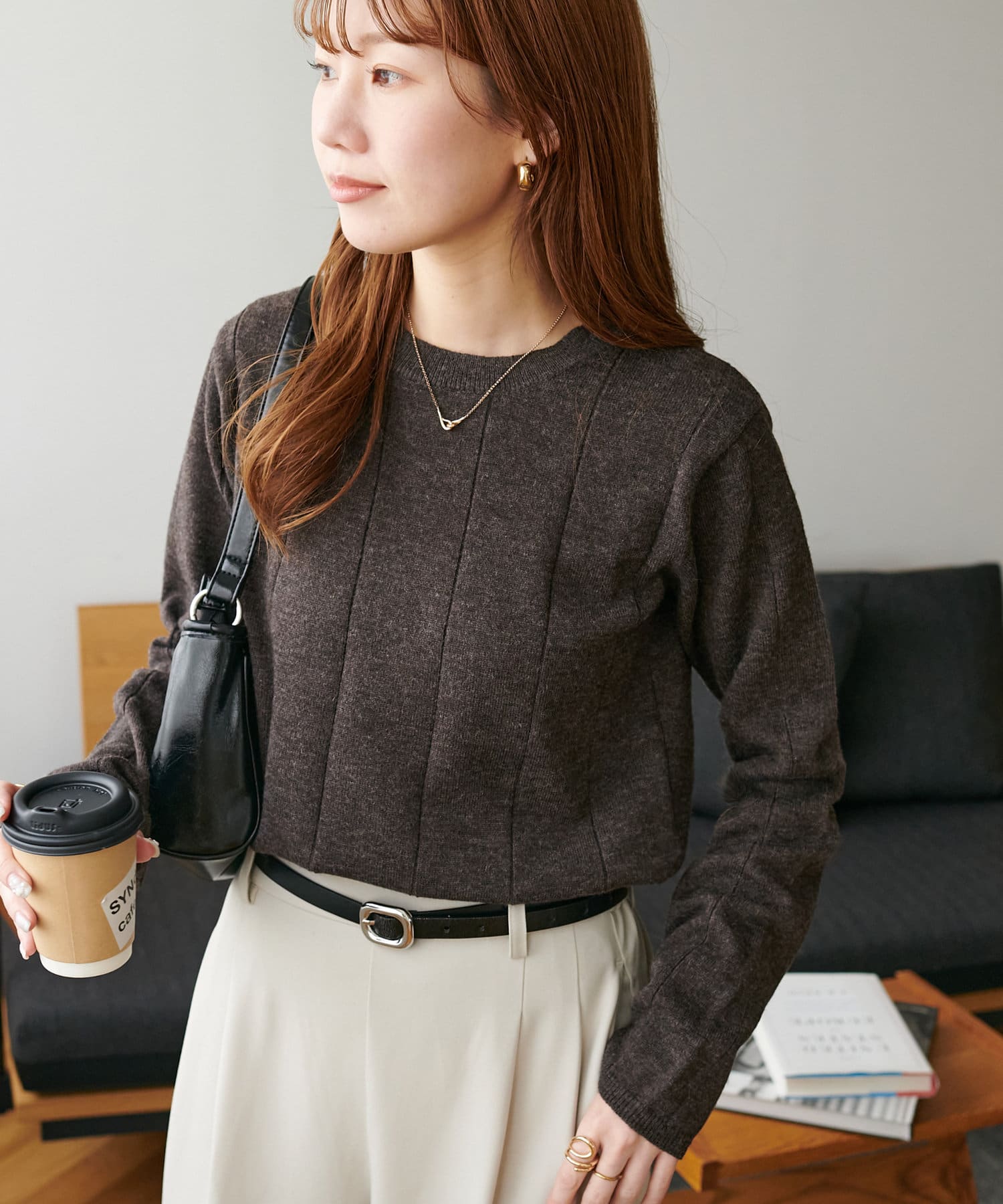 ・シンプルなデザインでどんなスタイリングにも合わせやすいウールライクプルオーバー